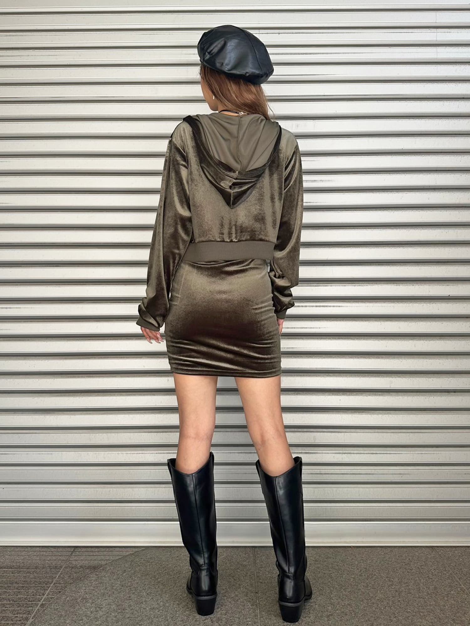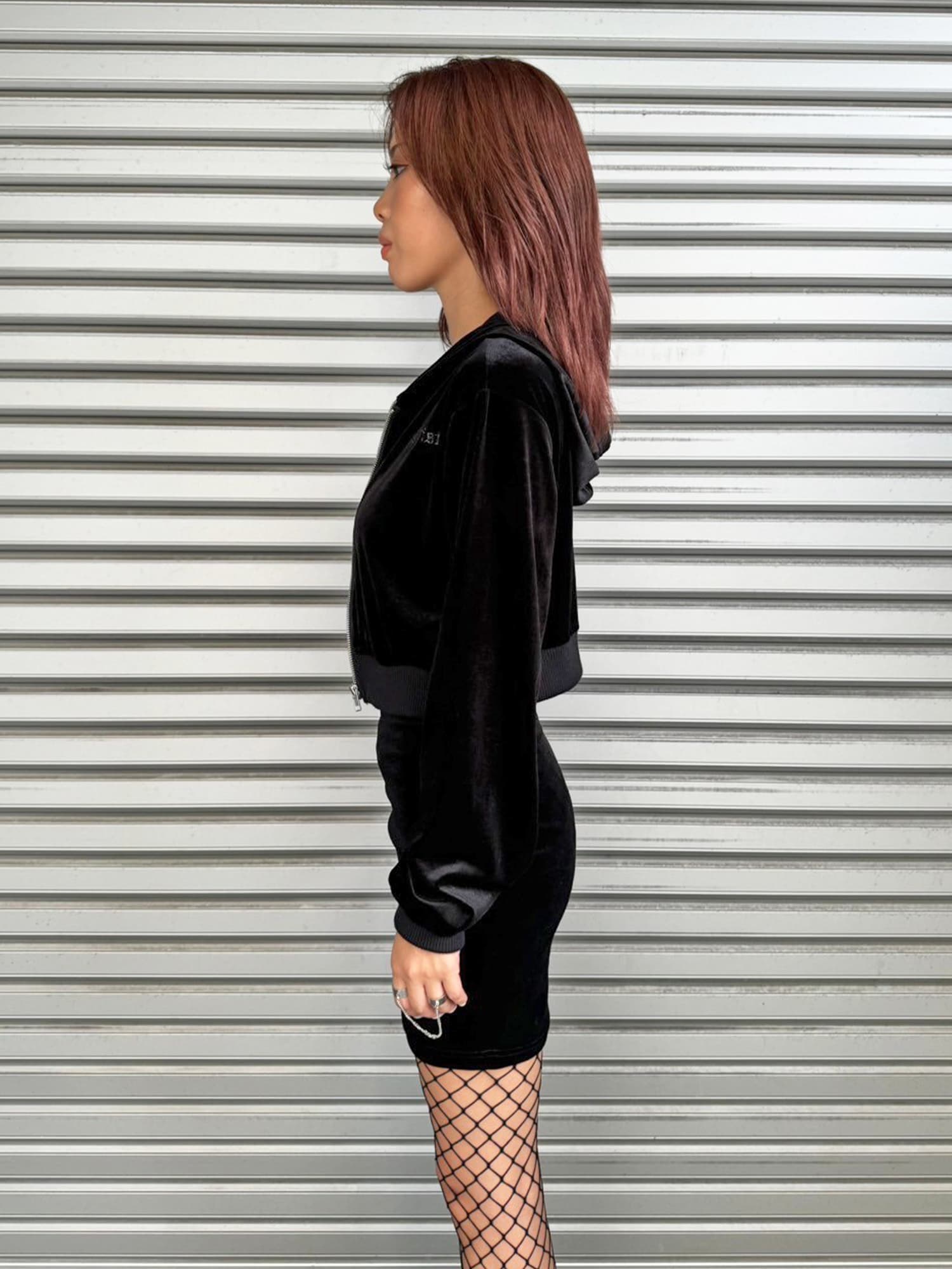 商品説明 程よく光沢感があり、肌触りの良いカットベロアを使用したフルジップパーカー。