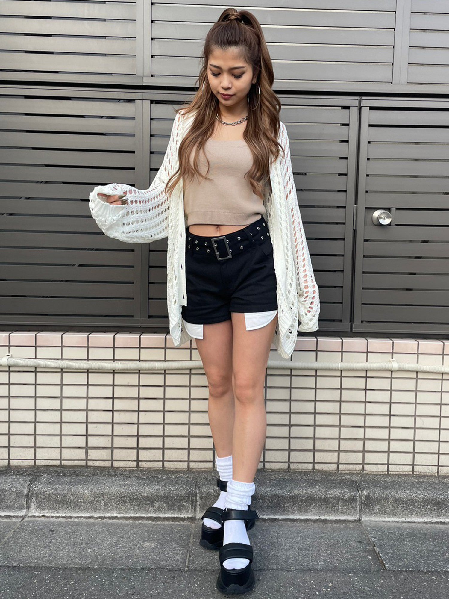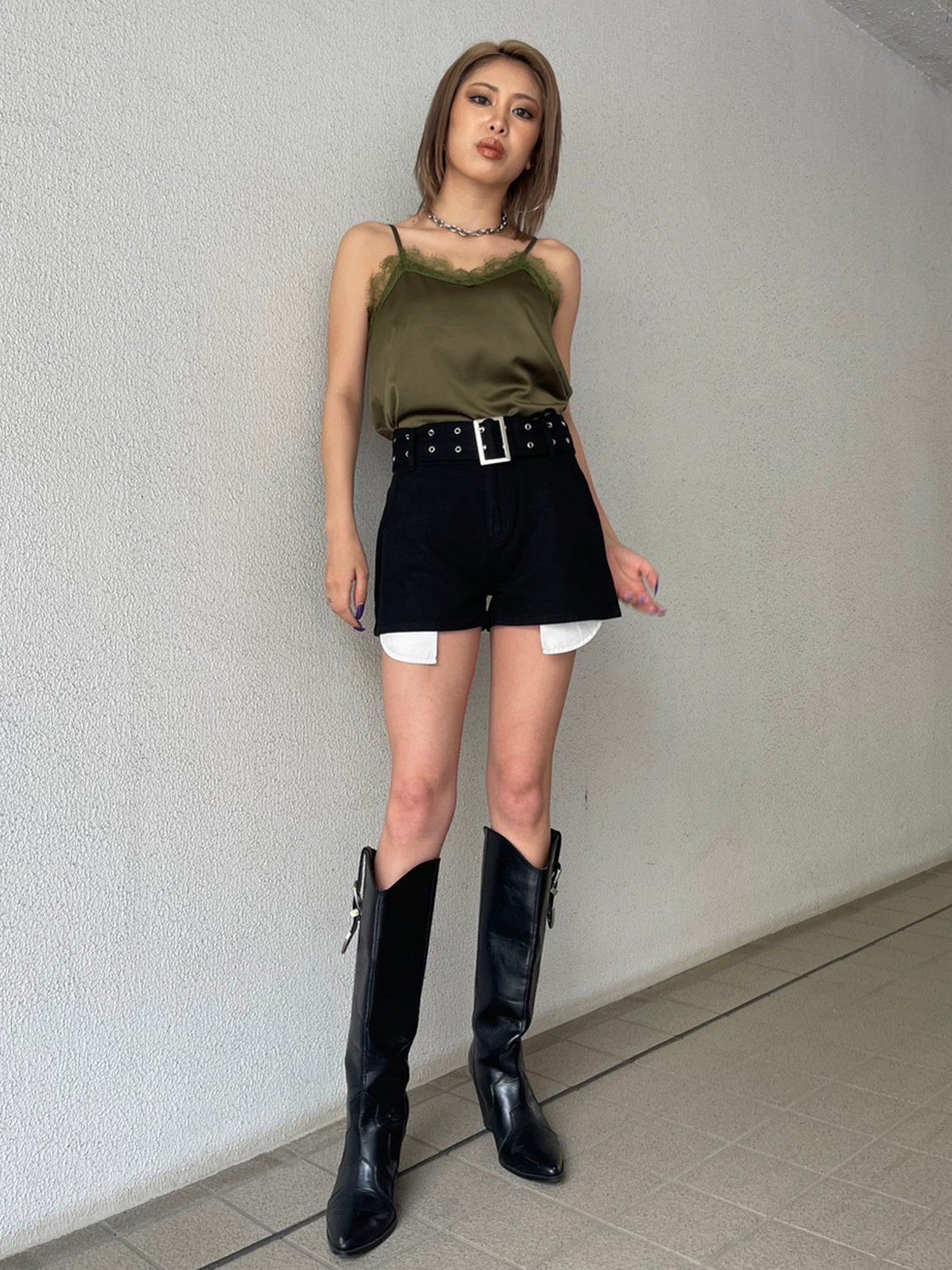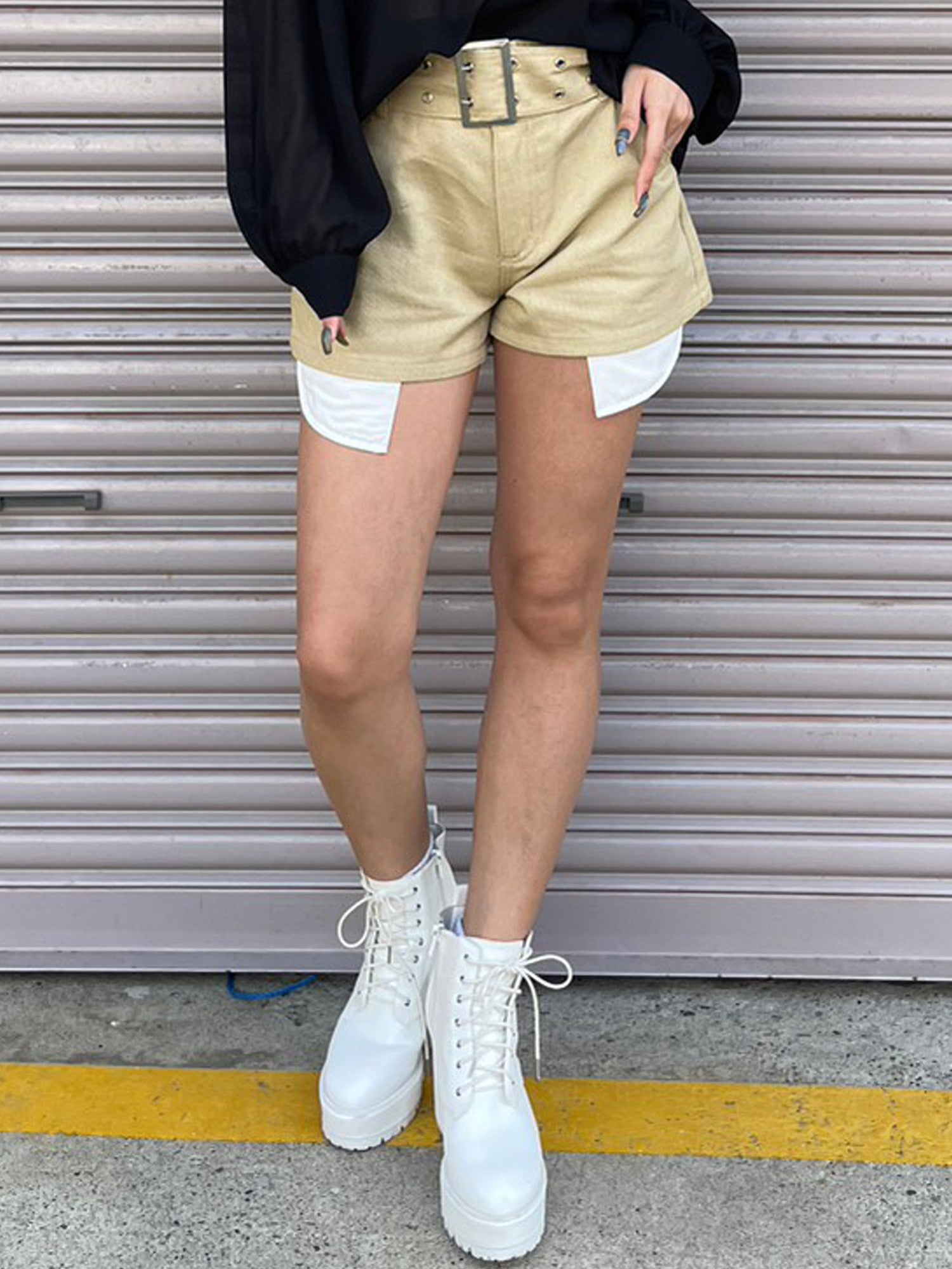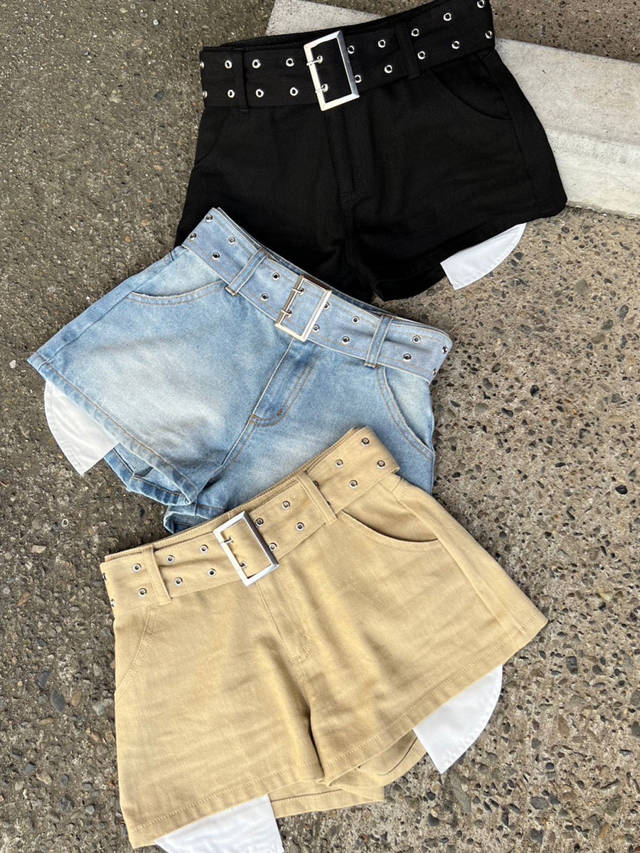 ハトメベルト付ツイルショートパンツ