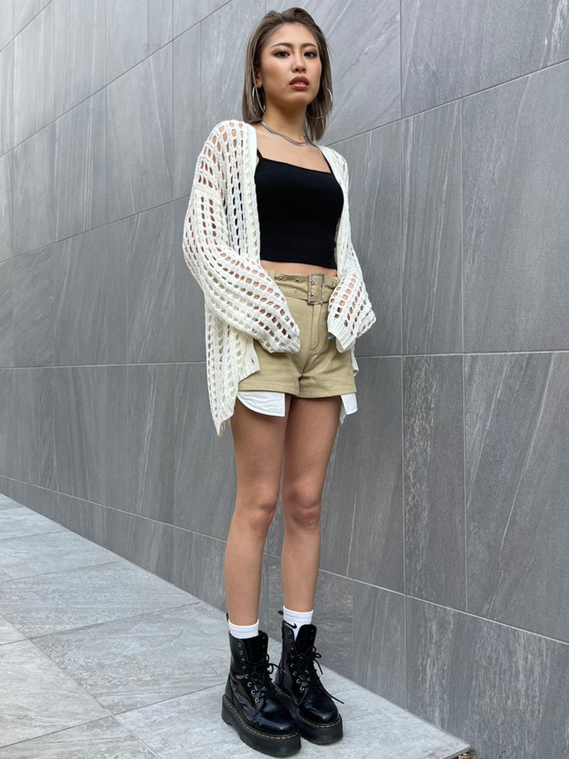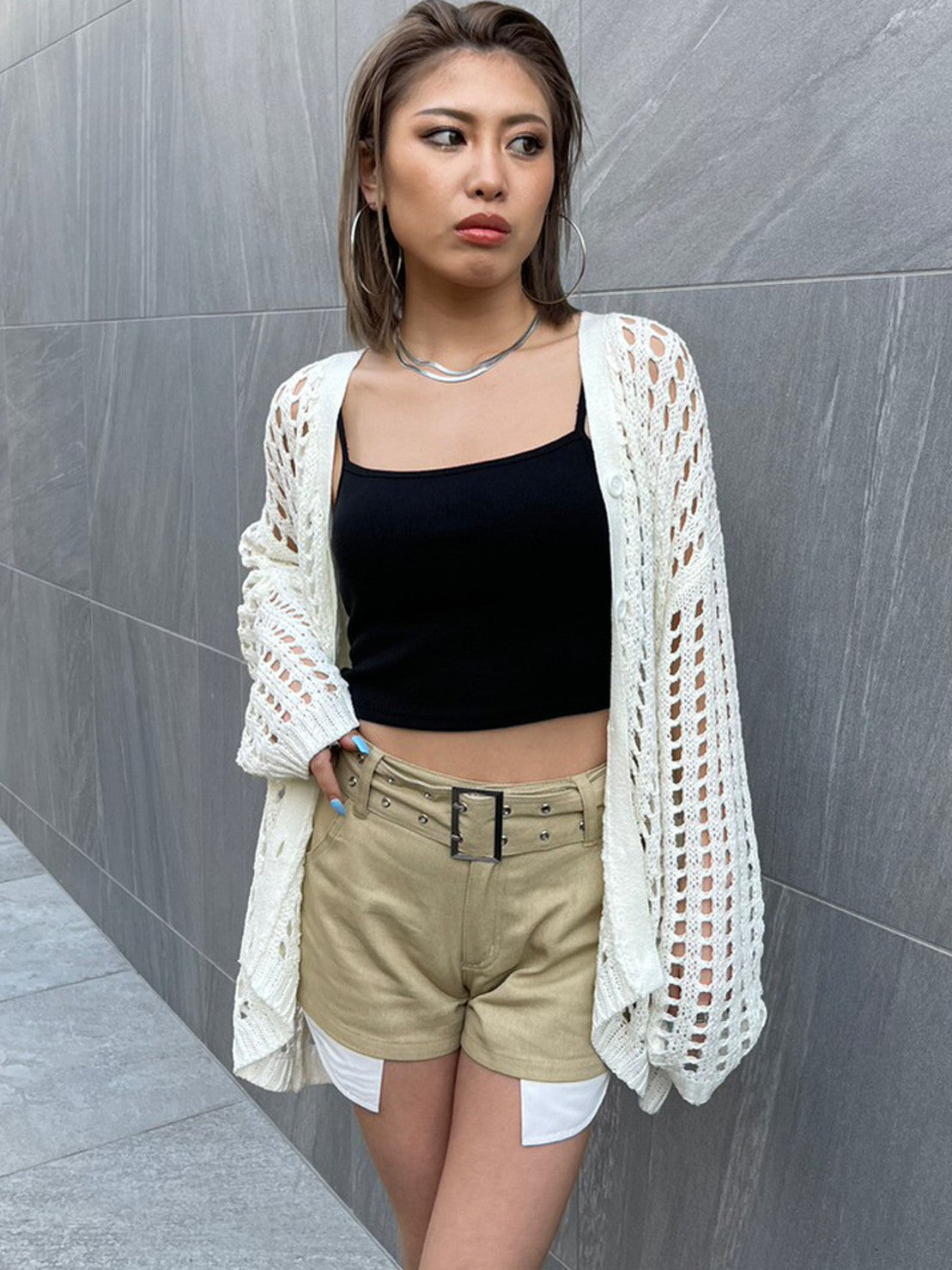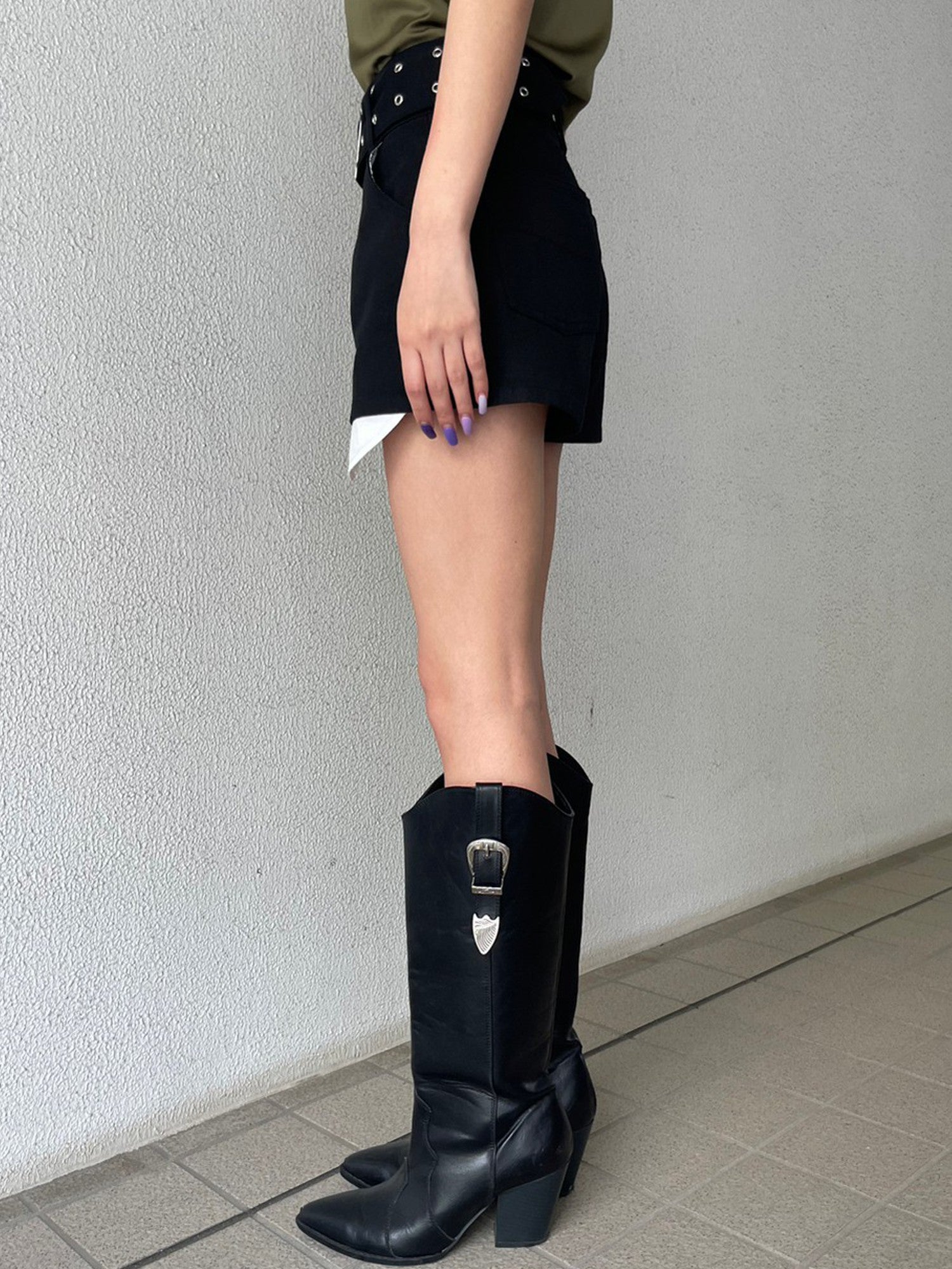 • ハトメベルト付ツイルショートパンツ