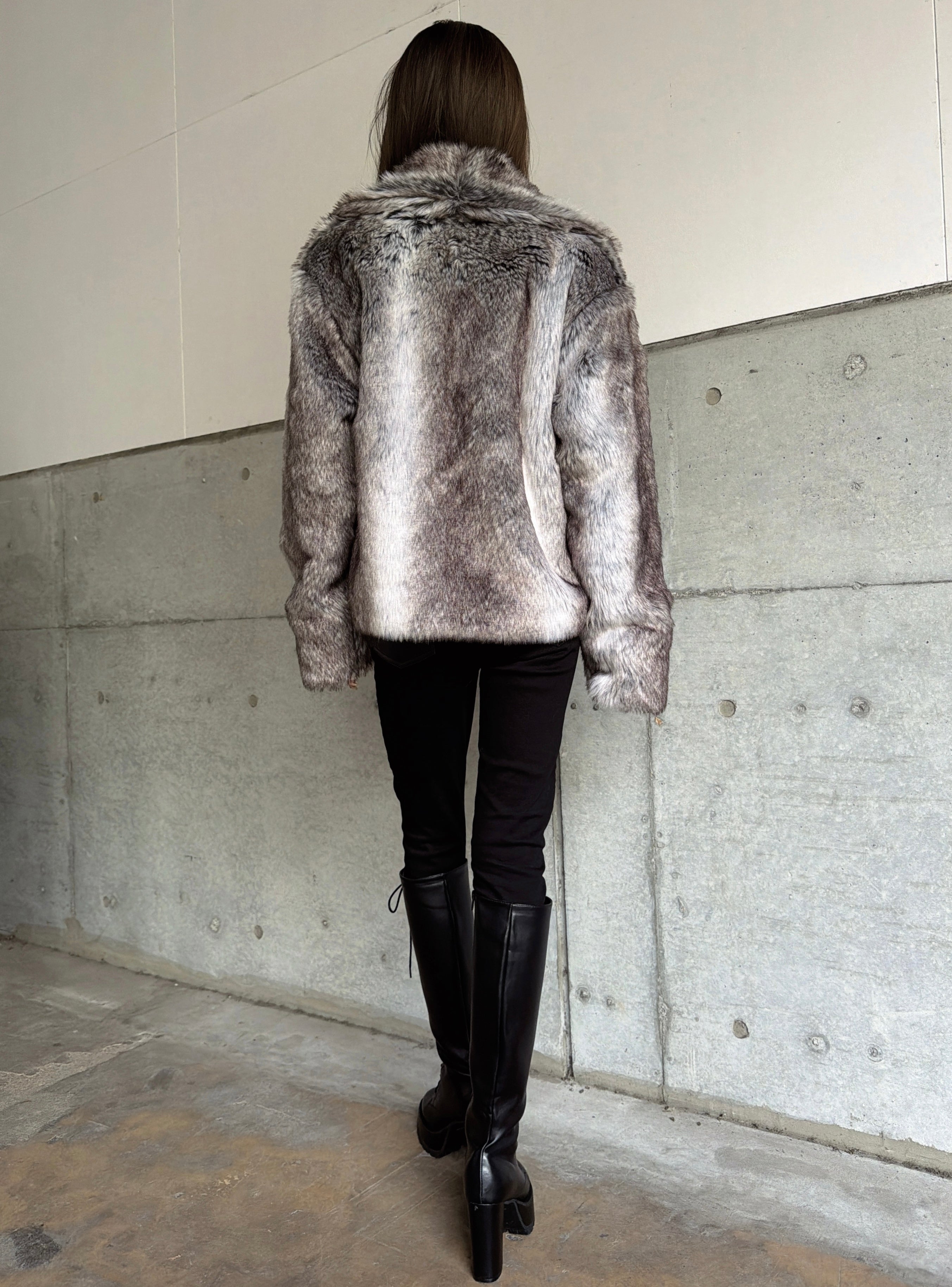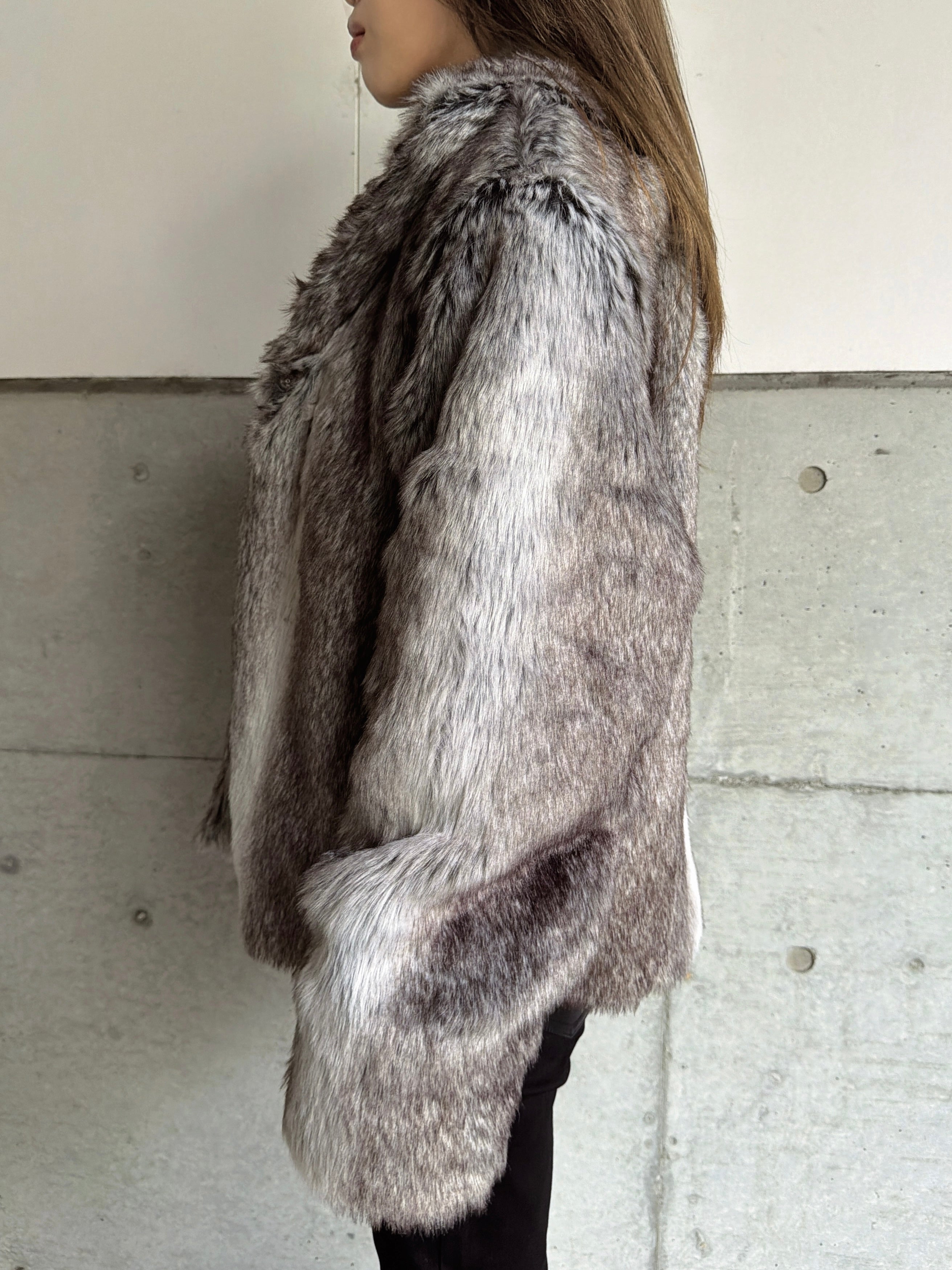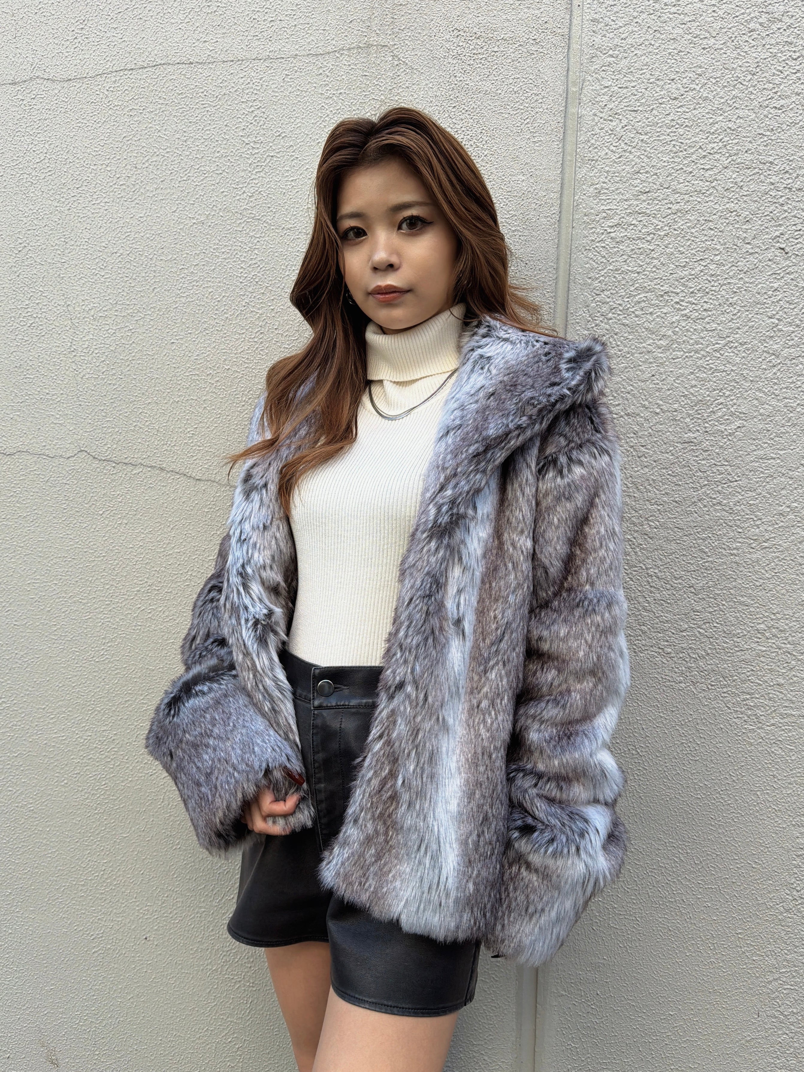 商品説明 スモーキーグレー×淡いトーンをミックスさせた色味が上品な印象のファーコート。曖昧な色味が特徴のニュアンスカラーは光の当たり方で色が変化して見えます。首回りにボリュームを出して膨張するのは避けたい!でも小顔効果も欲しい!そんな両極端な要望にも応えられるよう、衿の形や大きさを細かく調整しバランスよく整えました。袖口は2枚構造になっており、内側はリブでキュッと止まるので袖口から風が侵入せず防寒効果もばっちり。身頃部分には裏地が付いているので風通しも防いでくれます。フロントはスナップボタン仕様で、着脱がスムーズ。ファーコートはボリュームが出やすいのでボトムはすっきりとミニマルに。綺麗めに着こなしたい方はスキニーパンツ、タイトワンピース、ミニボトムの合わせがオススメです。全体をモノトーンにまとめて大人な余裕感を演出するのも◎