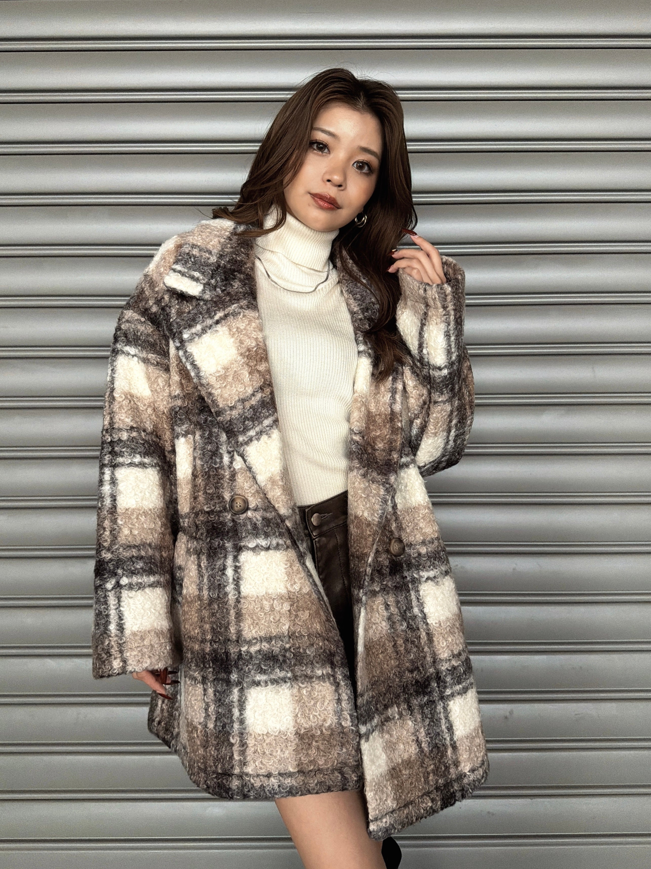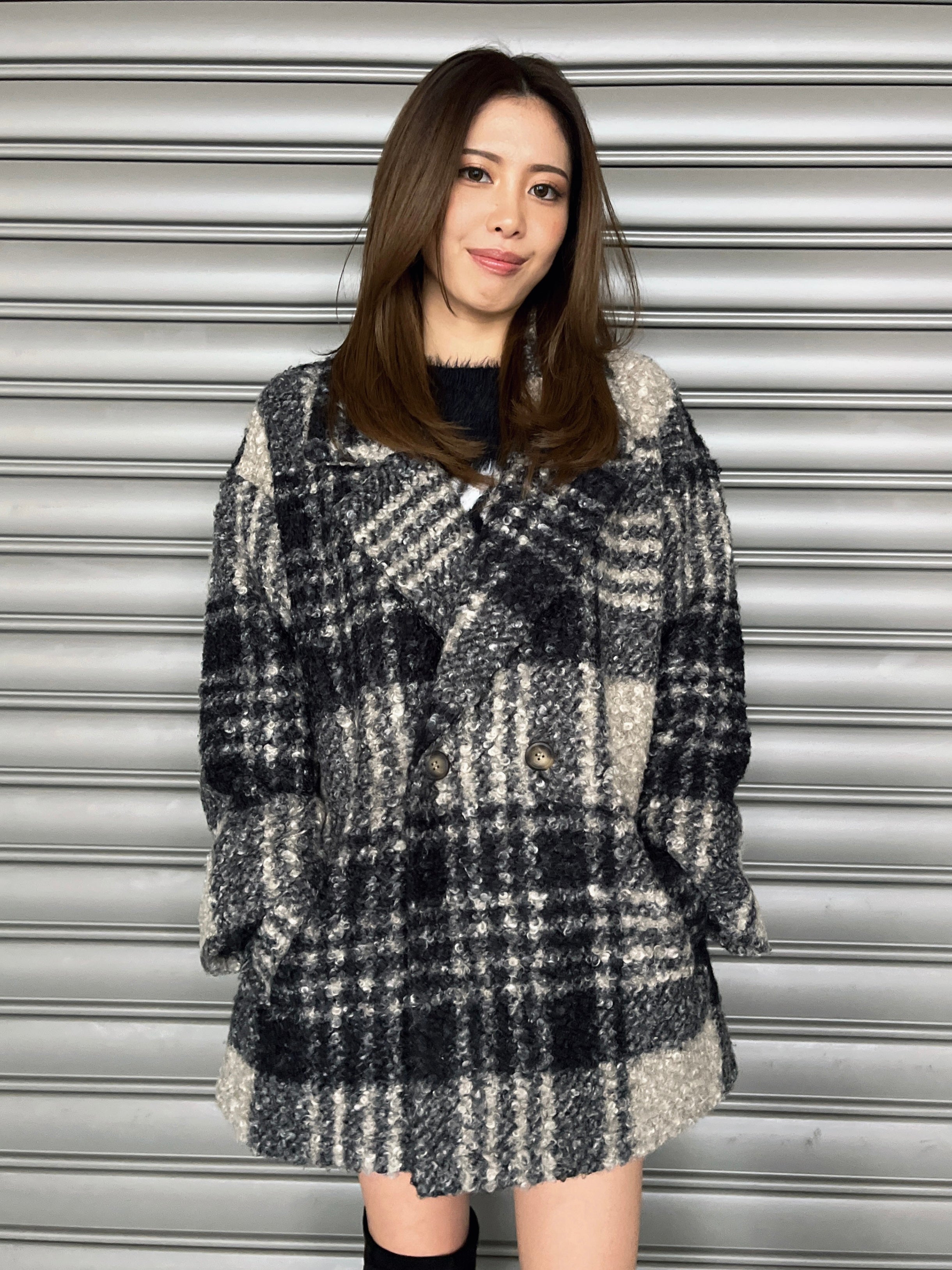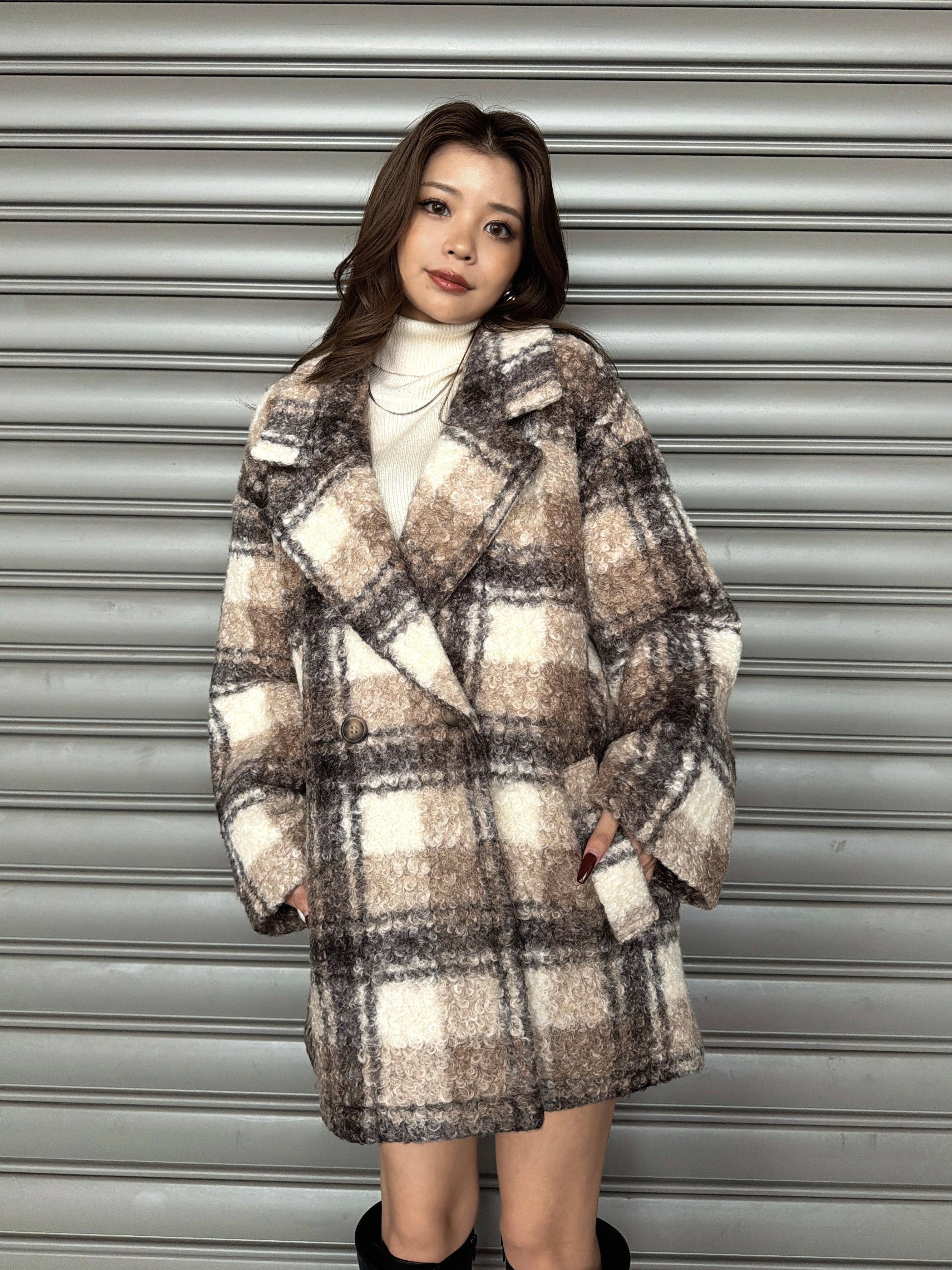 商品説明 大柄のチェック柄が目を惹くコートは膨らみ感があり、表面を起毛させた暖かみのある素材を使用。羽織るだけでサマになり、女性らしさを際立てます。ゆったりとしたサイジングながらもレディライクで大人な印象のシルエットを意識したデザインに仕上げました。大きめの衿で小顔効果も抜群。首元があくのでタートルネックのトップスやストールなどの合わせも◎袖回りもゆったりしているので厚手ニットの上からでも羽織りやすいです。ミドル丈なので冬のマストアイテムのロングブーツと相性が良いのも嬉しいポイント。柄もののアウターはシンプルなコーデにプラスするだけで一気にこなれ感がでます。