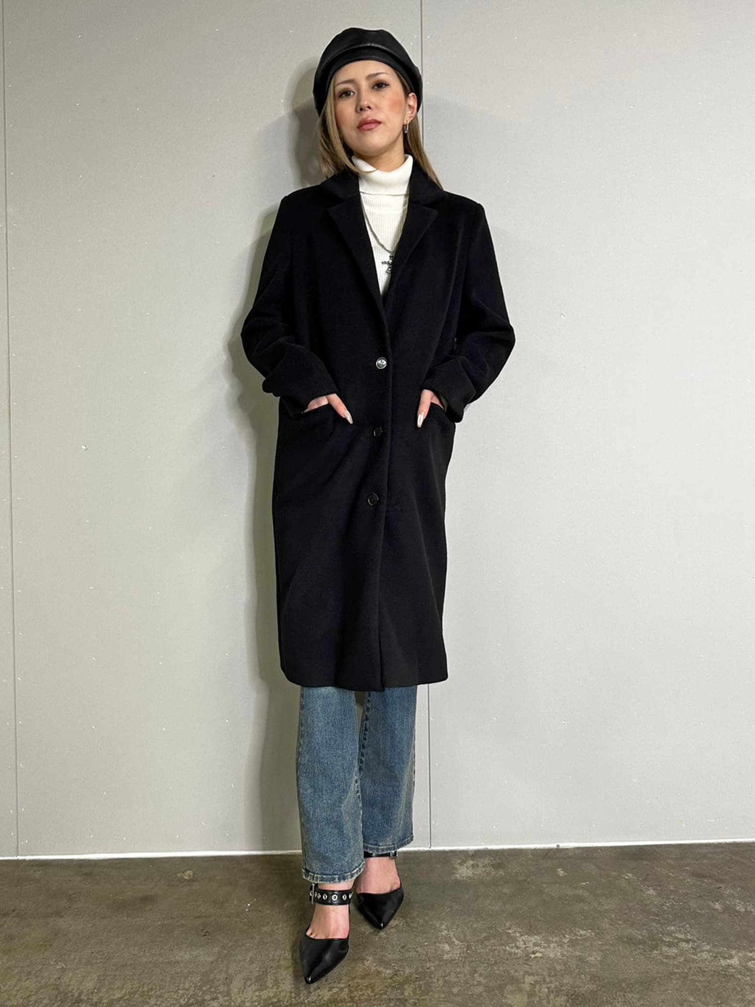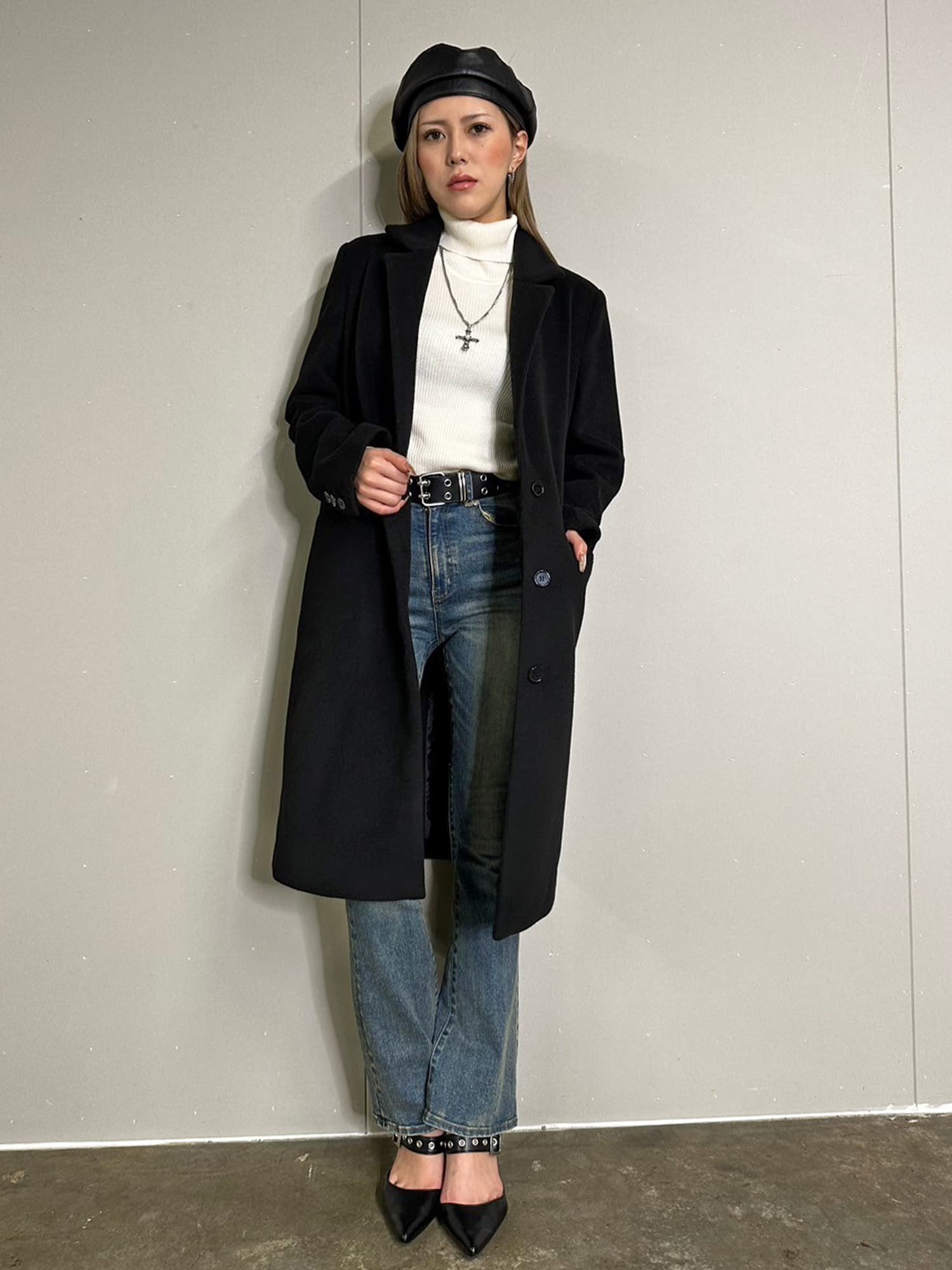 Iラインを綺麗に見せてくれるので、タイトなインナーでスタイリッシュに着こなすのがマスト。