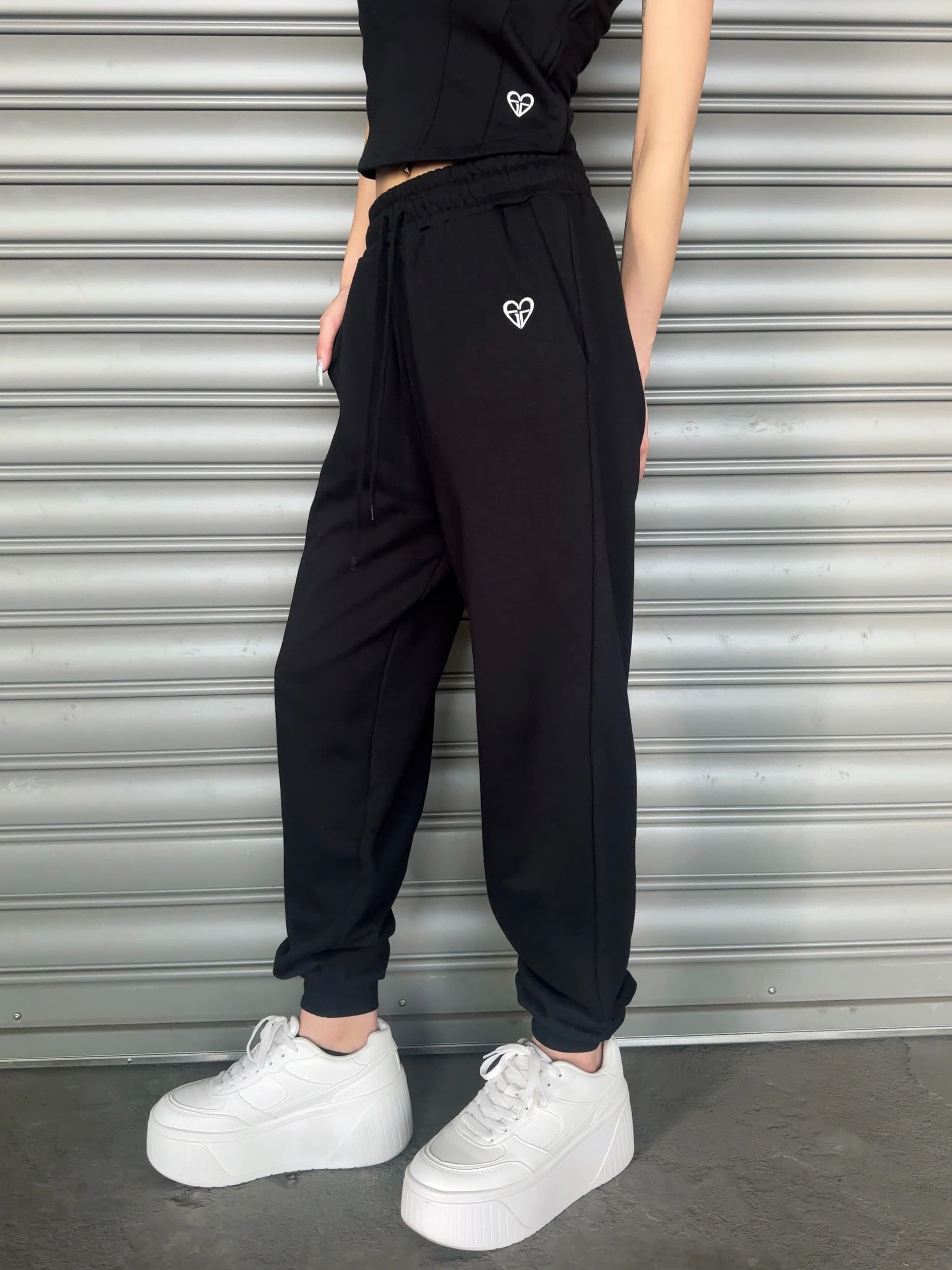 商品説明 左脇のオリジナルHEARTロゴ刺繍がワンポイントになった裏毛ジョガーパンツ。