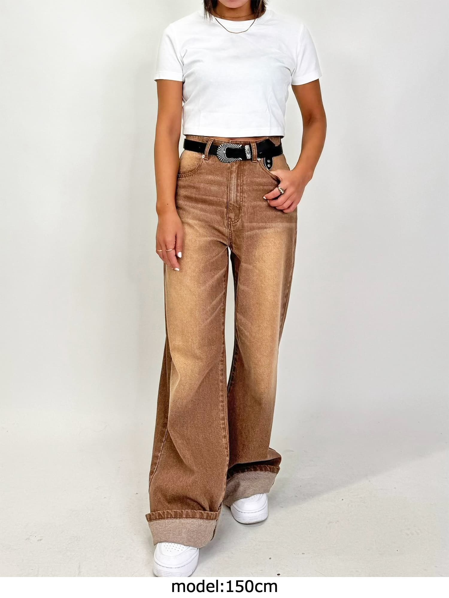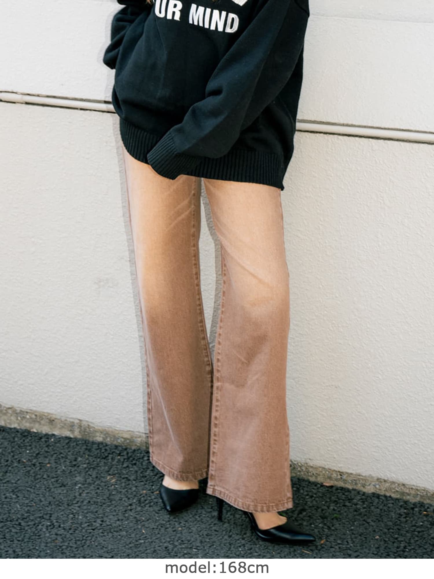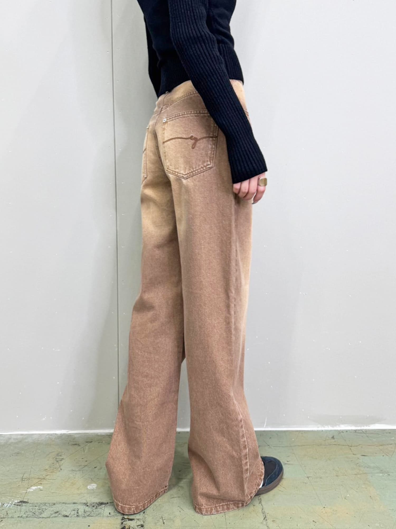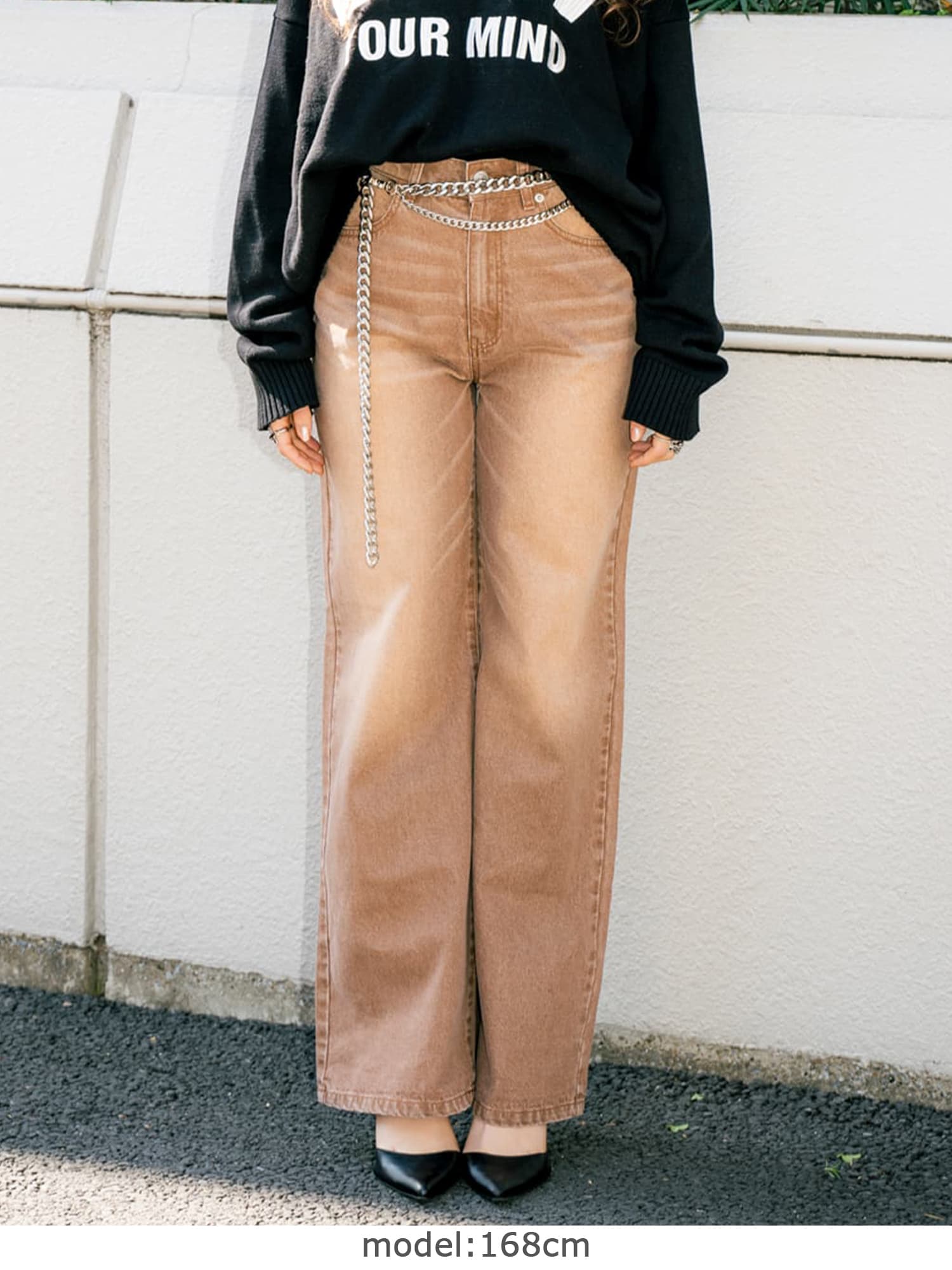 ジャストウエストなのでウエスト周りの安定感もあり、幅広いカテゴリーのトップスと相性抜群。