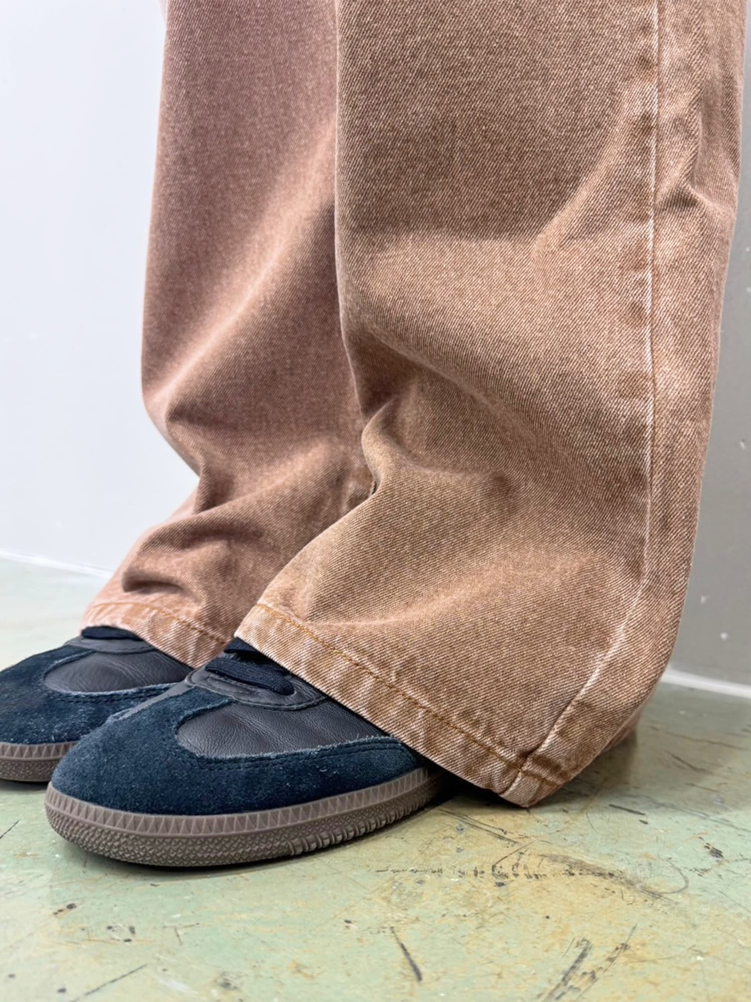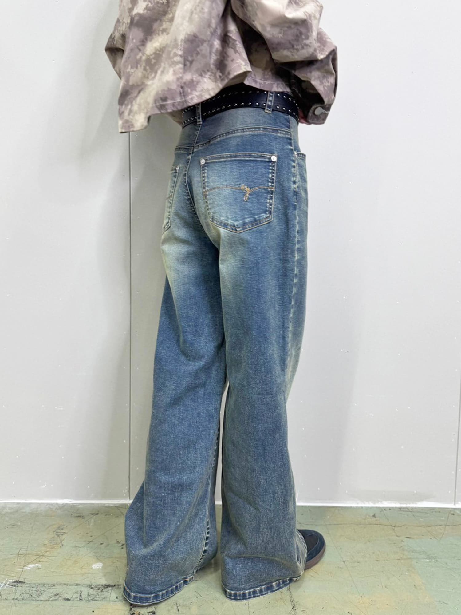 商品説明 加工で色落ちさせ、何年も履きこなしたかのようなヴィンテージ調の風合いが特徴となっているワイドパンツ。