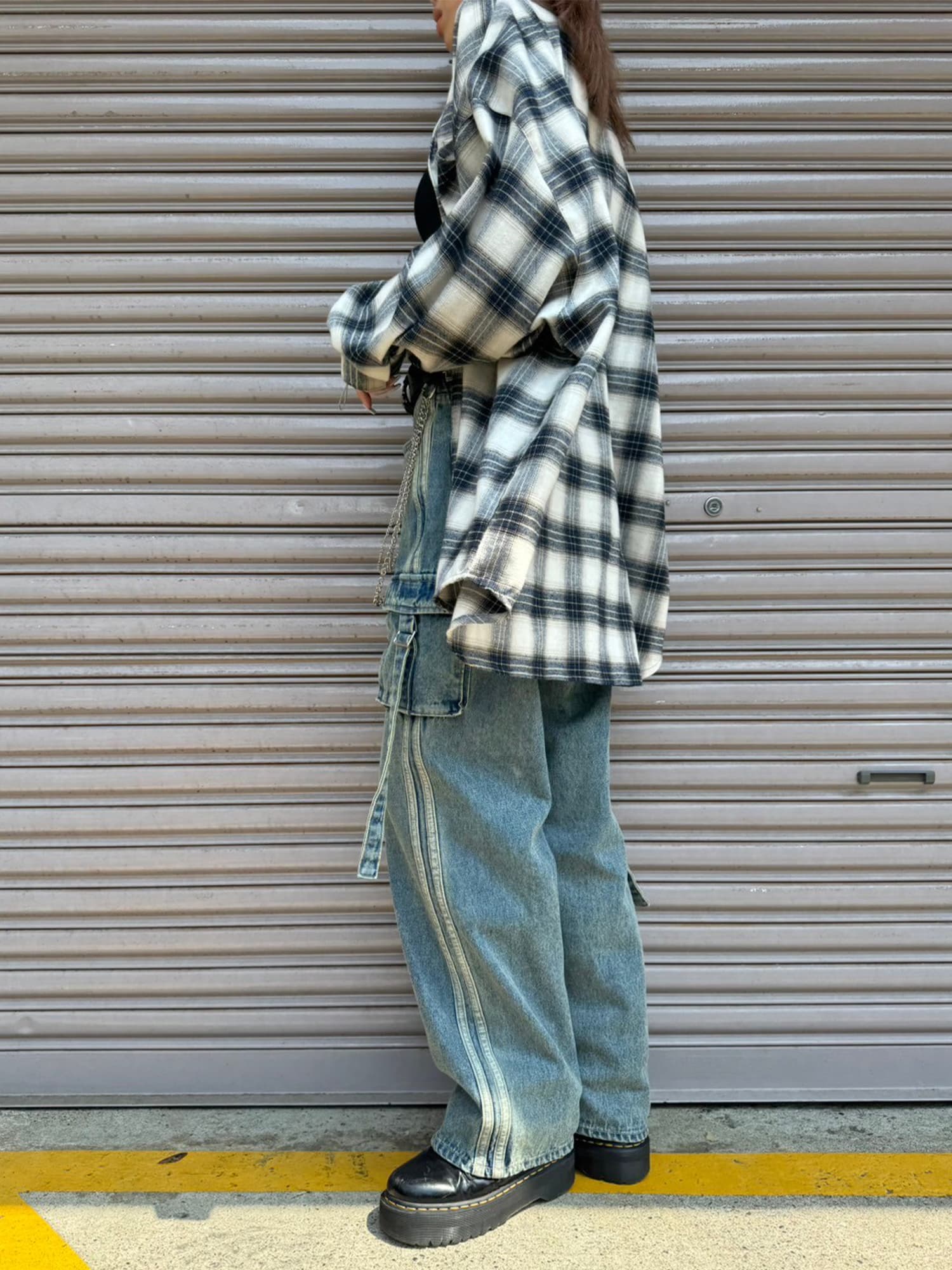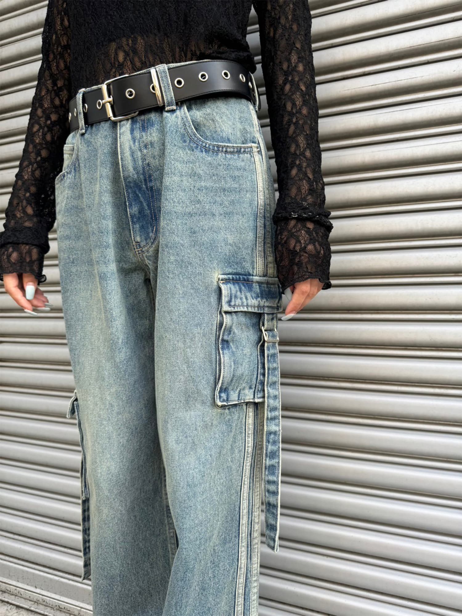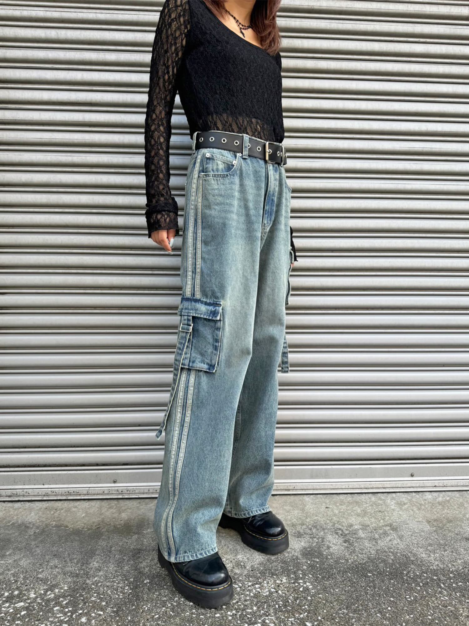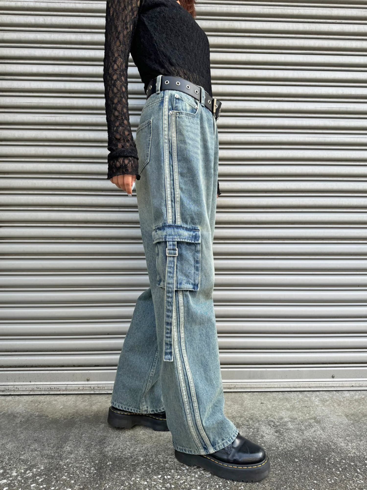 商品説明 左右非対称の位置にあるBIGサイズのカーゴポケットがインパクトのあるワイドデニムパンツ。脇には濃淡が異なる共地の細テープを2本たたきつけスポ―ティ要素もプラス。共地テープにすることでヴィンテージな風合いを邪魔することなく馴染んでいます。ヴィンテージ感漂う色味と加工具合がグランジファッションにぴったり。綿100%なので履き込むほどに味がでるので経年劣化すらもお楽しみ頂けるアイテム。トレンドライクなワイドシルエットでゆるく履きこなして頂けます。