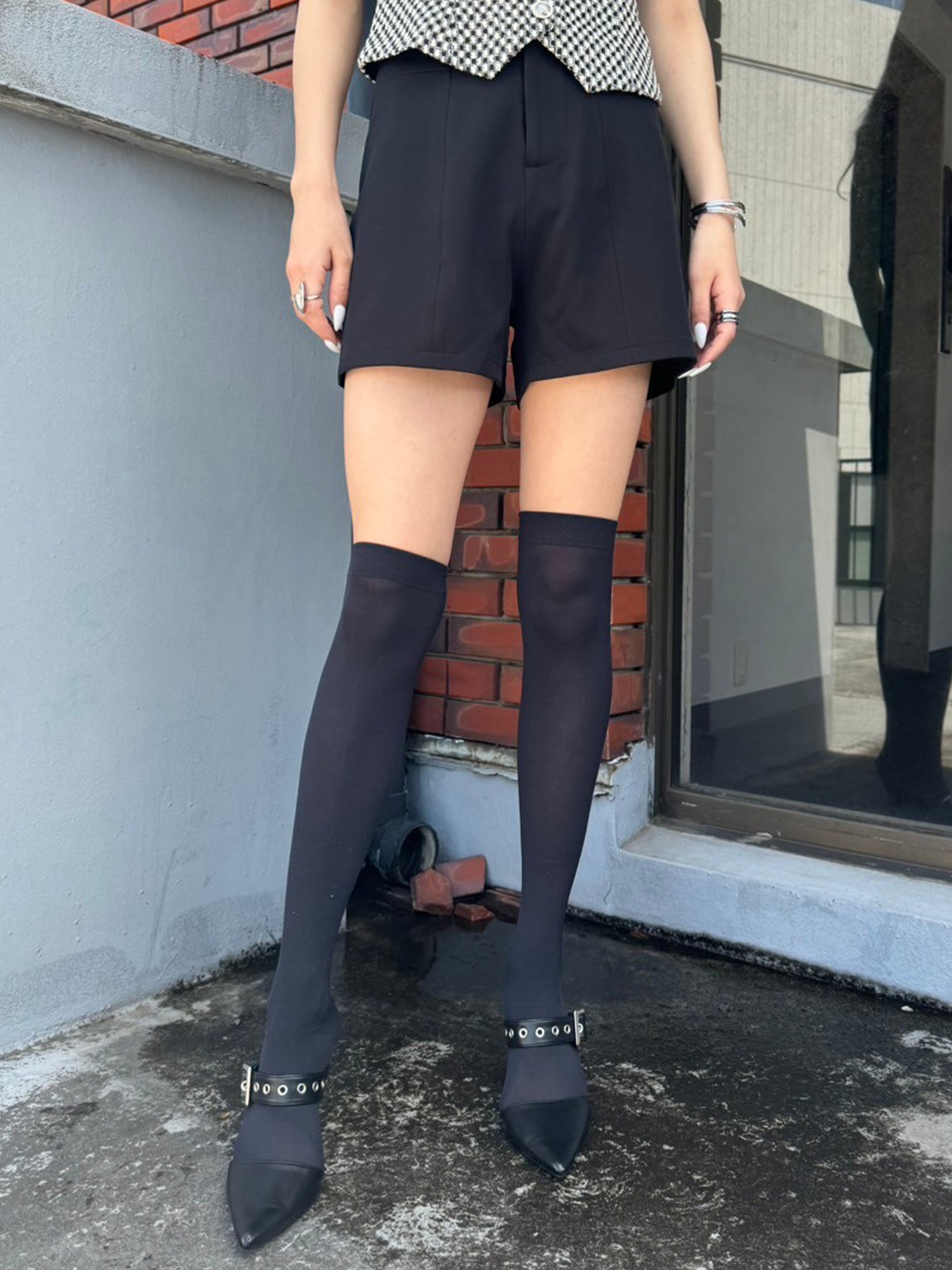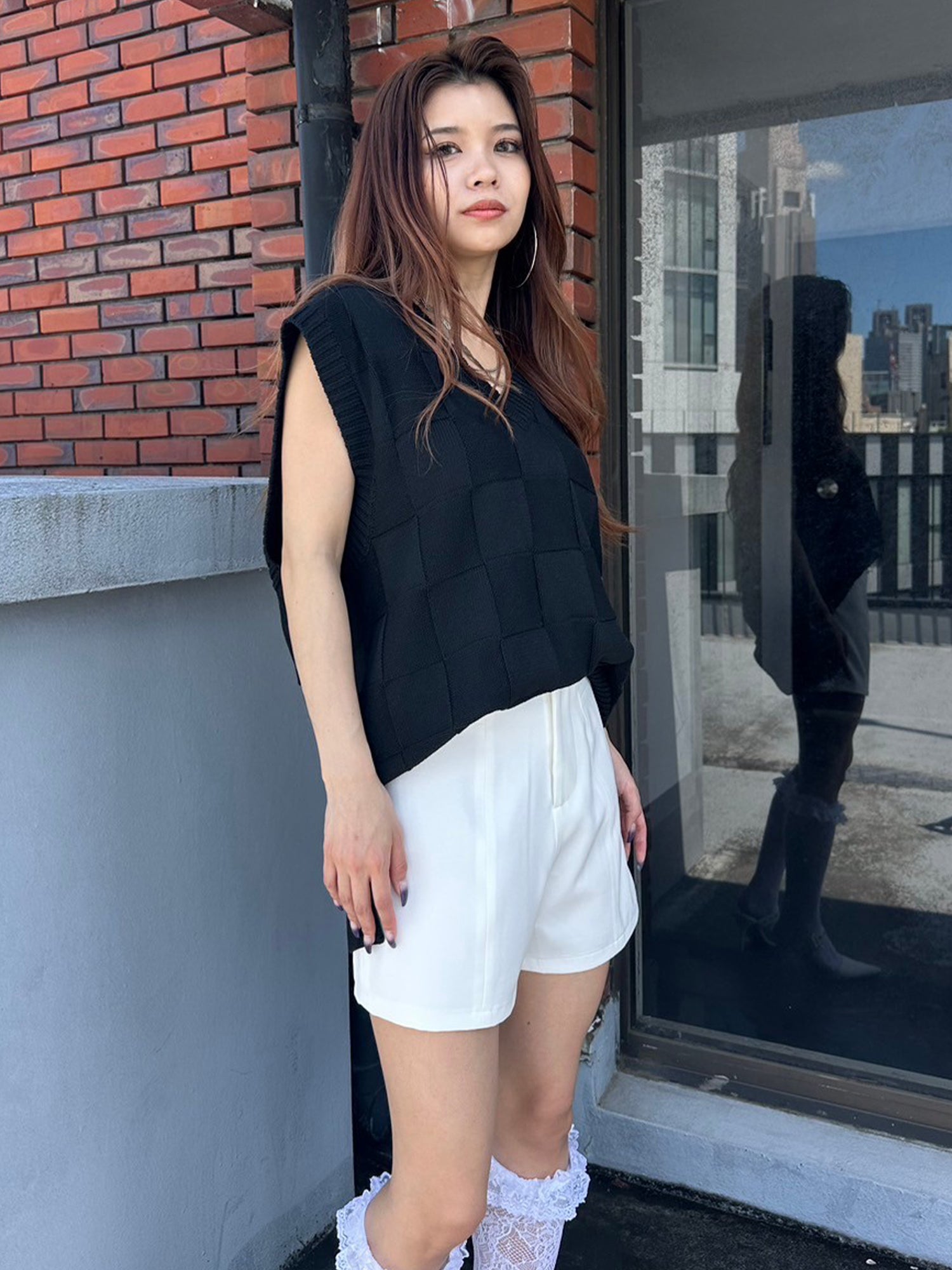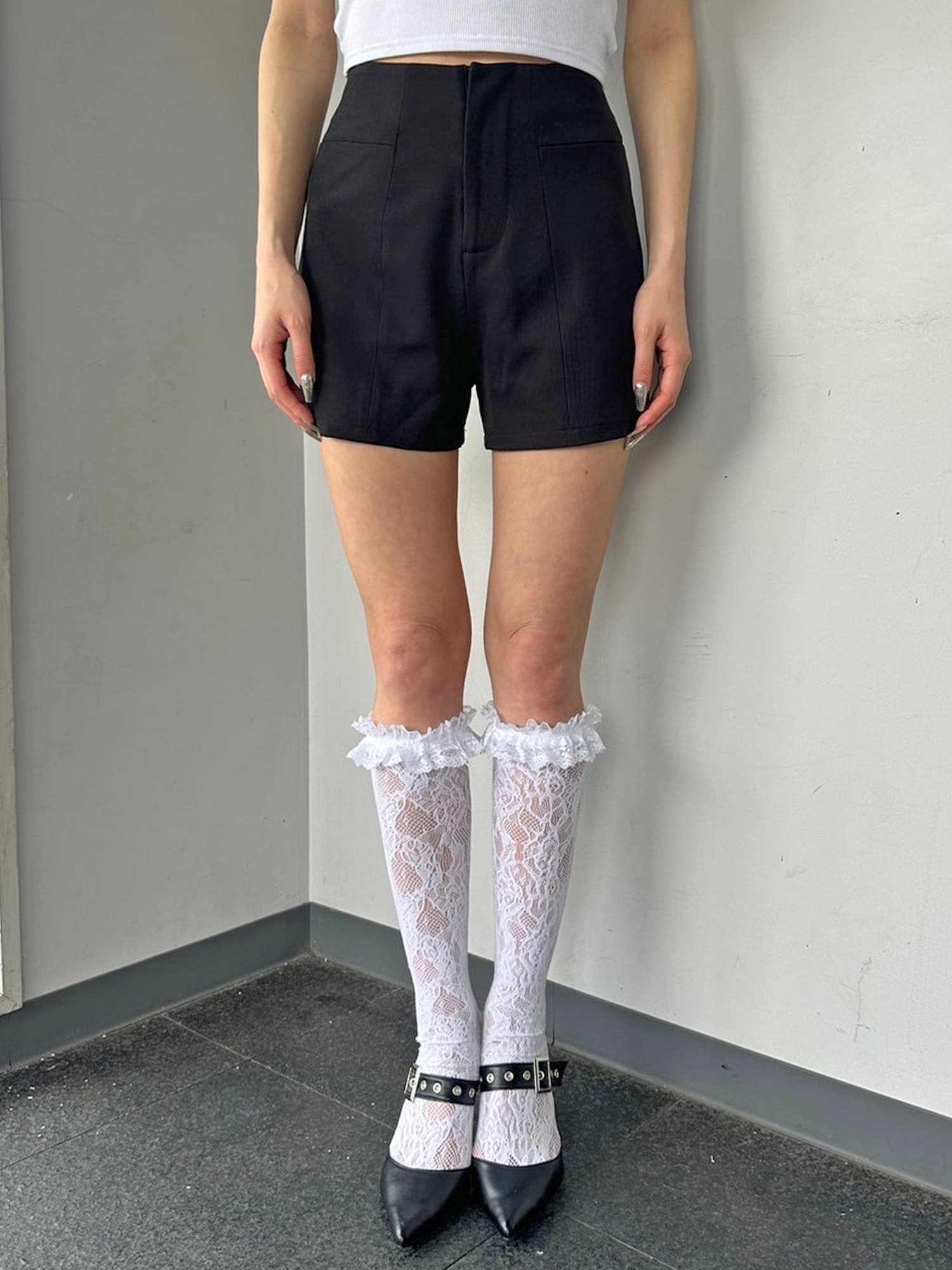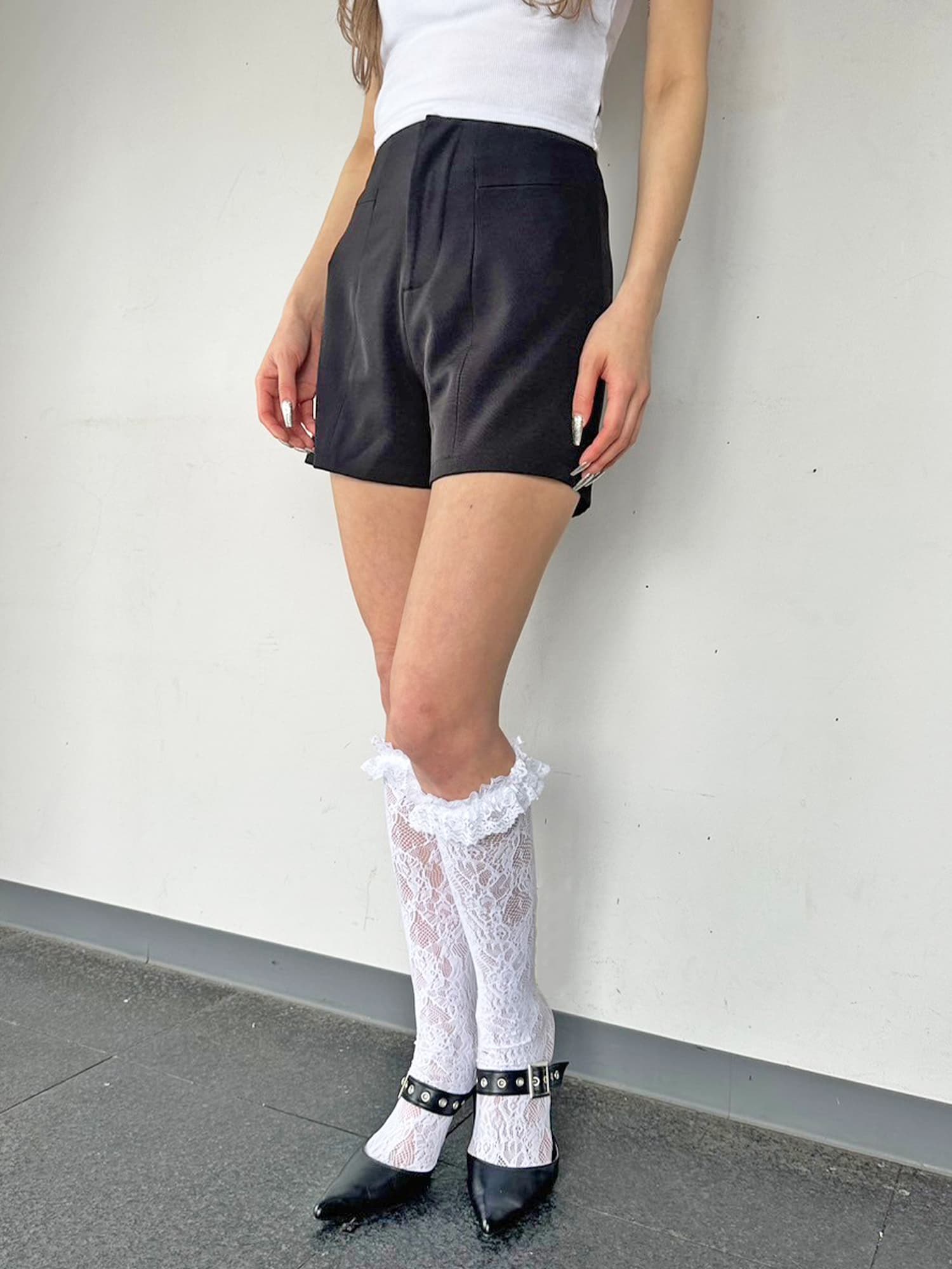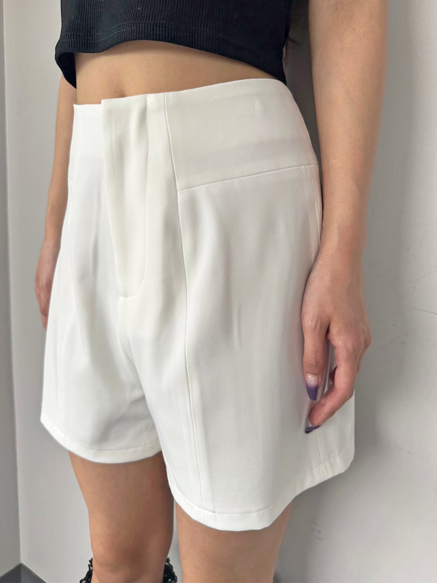 素材感が際立つシンプルなデザインのハイウエストショートパンツ。