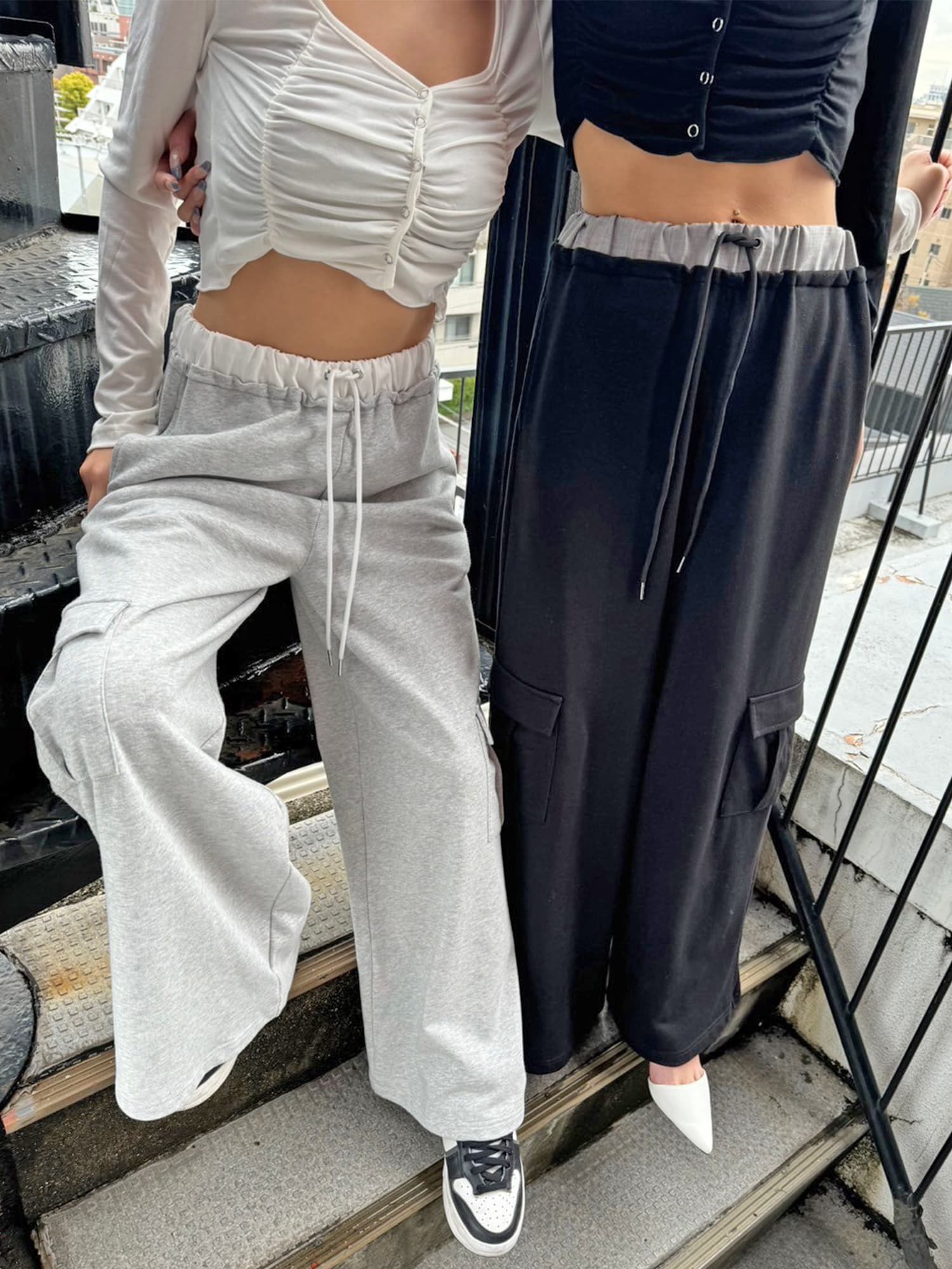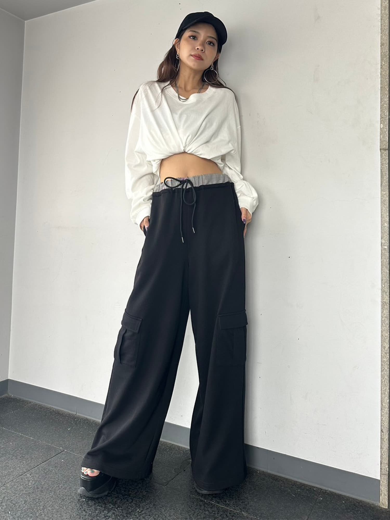 - コントラストトリムスウェットカーゴパンツ