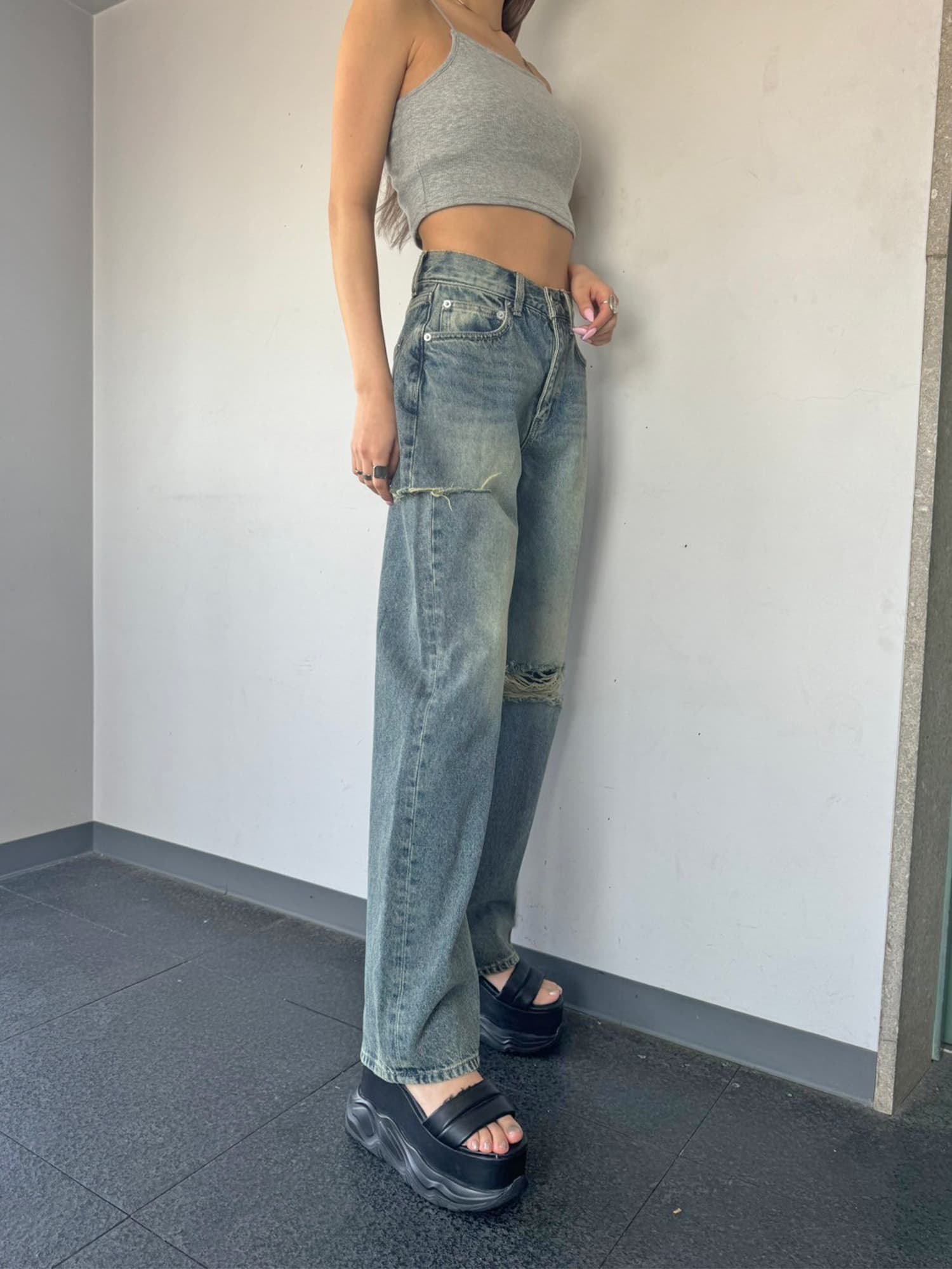 ずるっとルーズなストレートワイドシルエットでトレンド要素をプラスし、