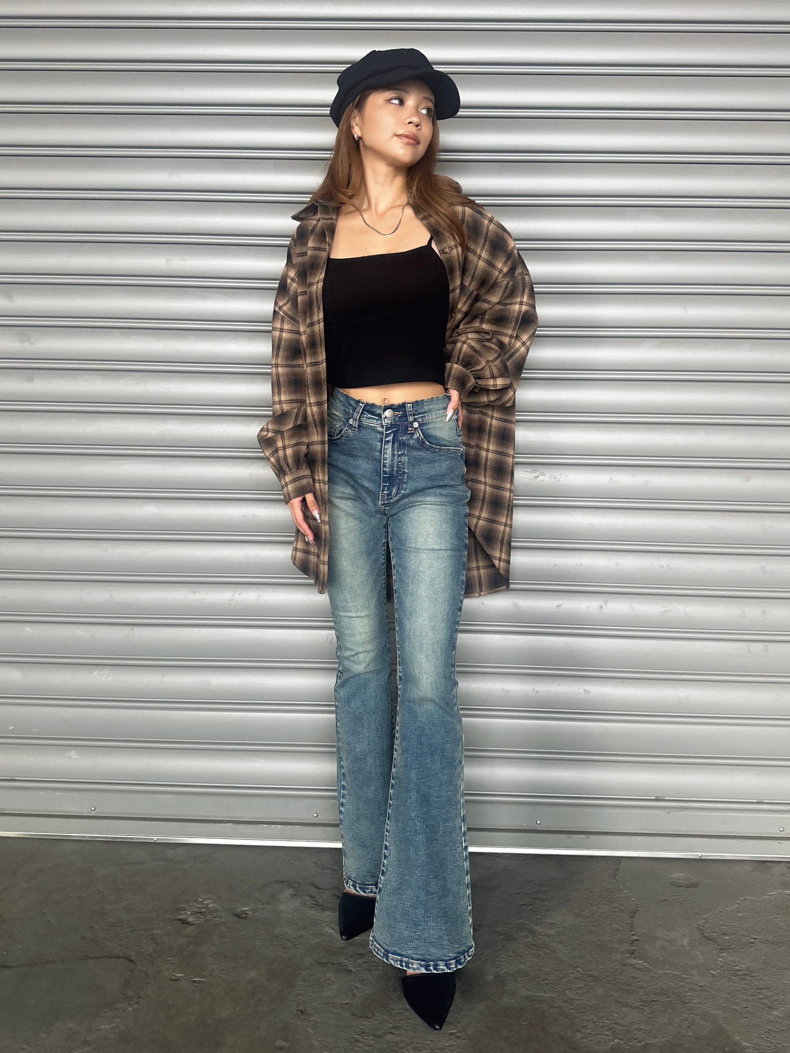 商品説明 ヒップまでしっかり隠れるBIGシルエットが今っぽいチェック柄シャツ。
