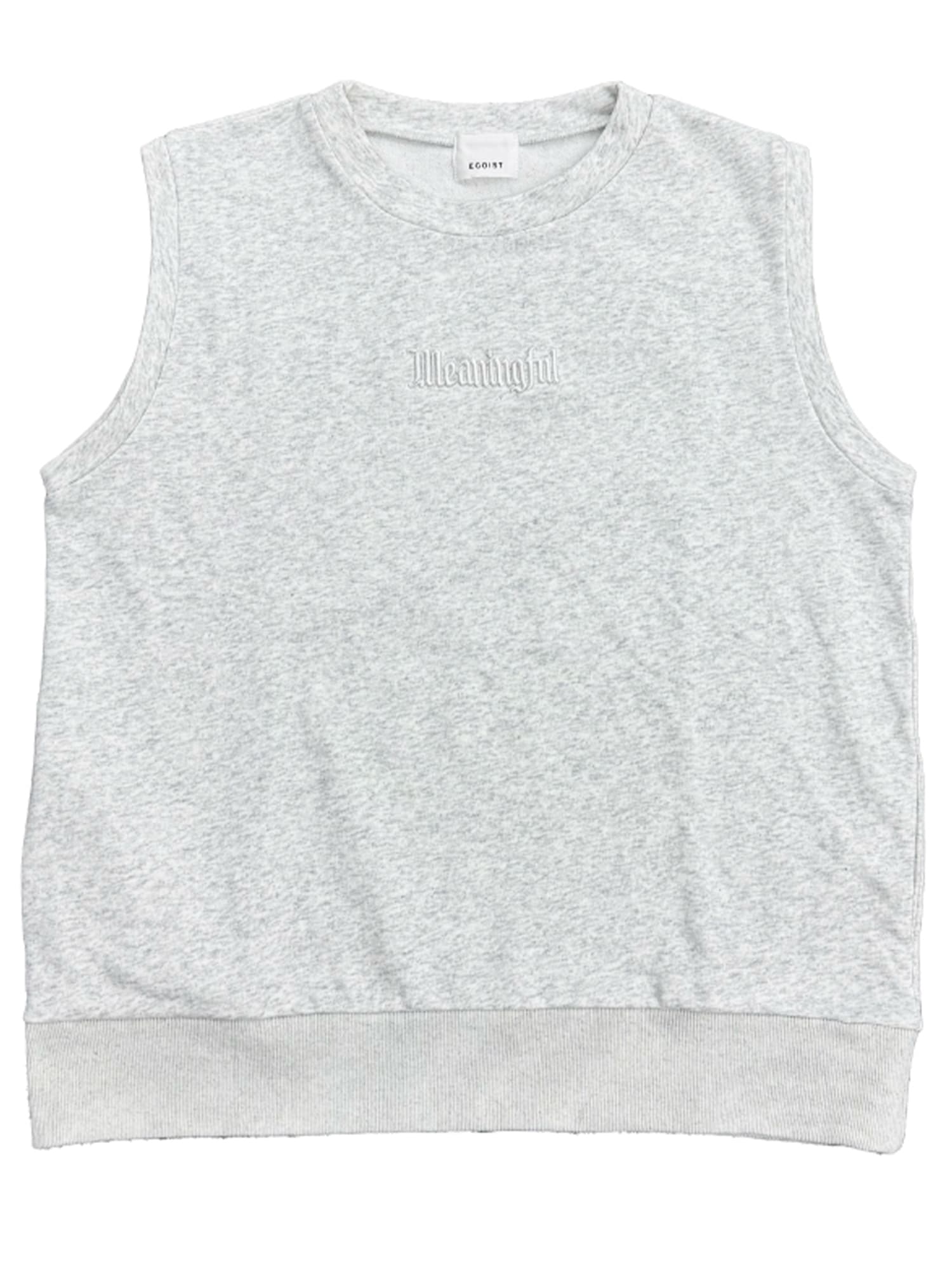 商品説明 meaningful(有意義な)の文字をフロントに配色ロゴ刺繍でいれたデザインがワンポイントになった裏毛タンクトップス。