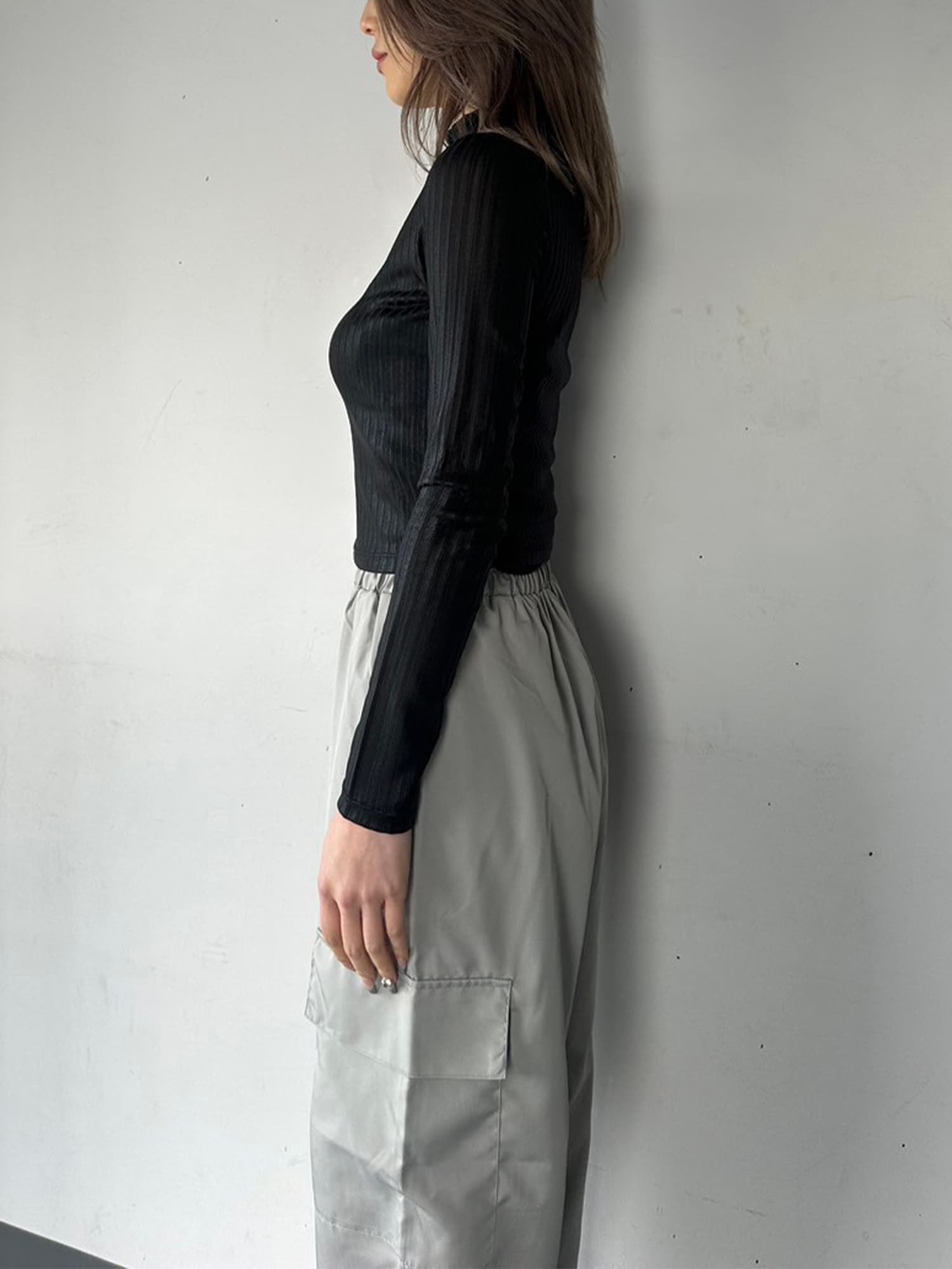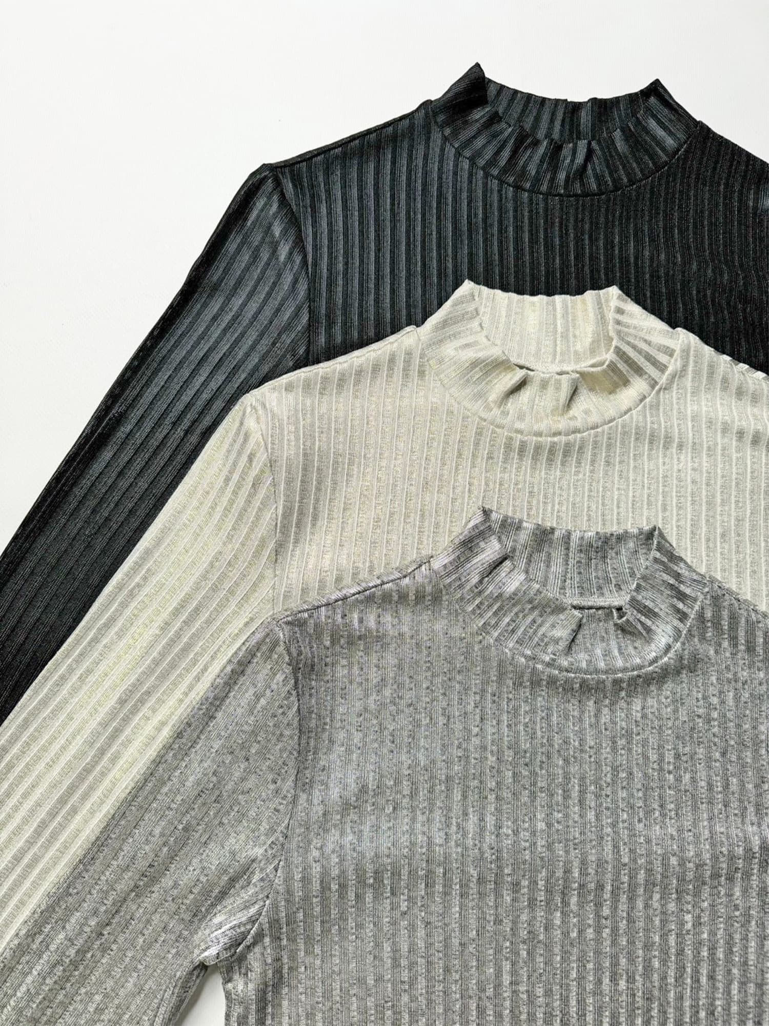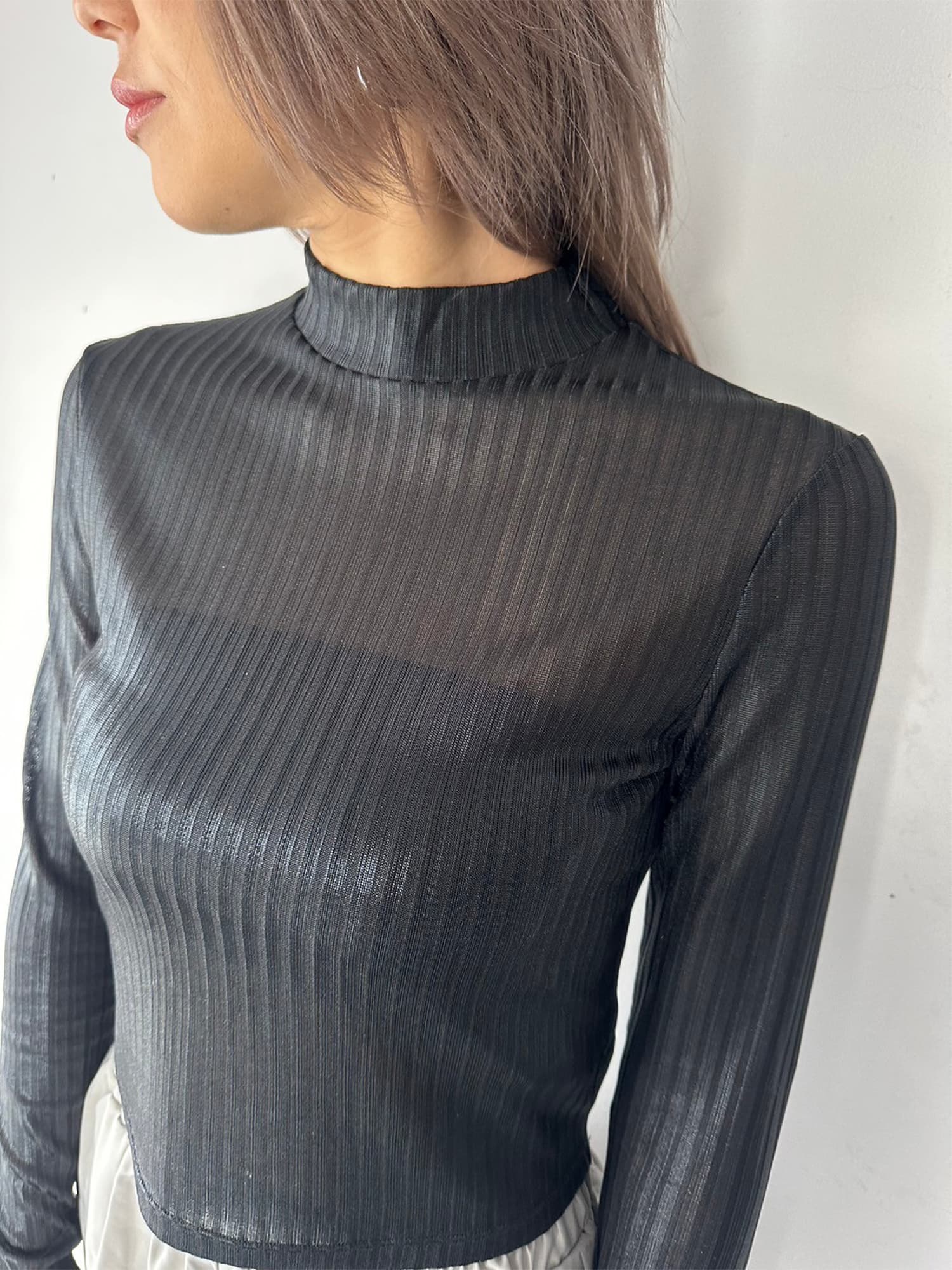 - ボトルネックホイルプリントリブトップス– EGOIST