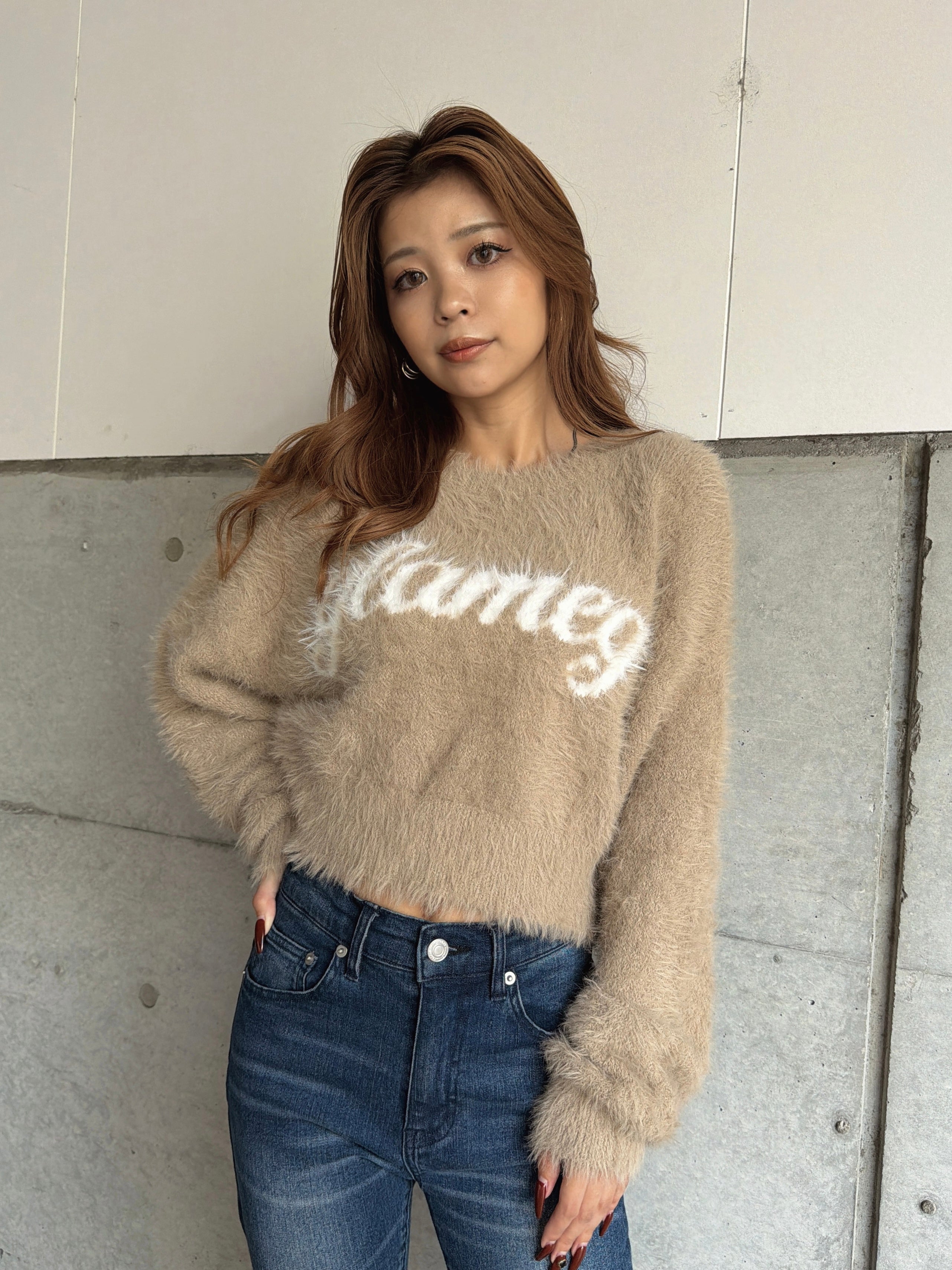 思わず触れたくなるようなシャギーの柔らかな質感が魅力的なニットトップス。フロントロゴ【glameg】はEGOISTのブランドコンセプトであるglam sexyの【glam】とEGOISTの【EG】を掛け合わせた造語にしました。カジュアルになりすぎないよう筆記体ロゴにし、上品で落ち着いた雰囲気に。毛足が長すぎず、程よいボリューム感なので着膨れせずに着用できるのも嬉しいポイント。ショート丈でトレンド感を取り入れつつ、上質なシャギーニット素材で大人っぽく仕上げた一枚です。存在感のあるシャギーニットは一枚で旬なスタイリングが完成するので重宝すること間違いなし。ハイウエストボトムとの相性も良く、スタイルアップ効果抜群です。