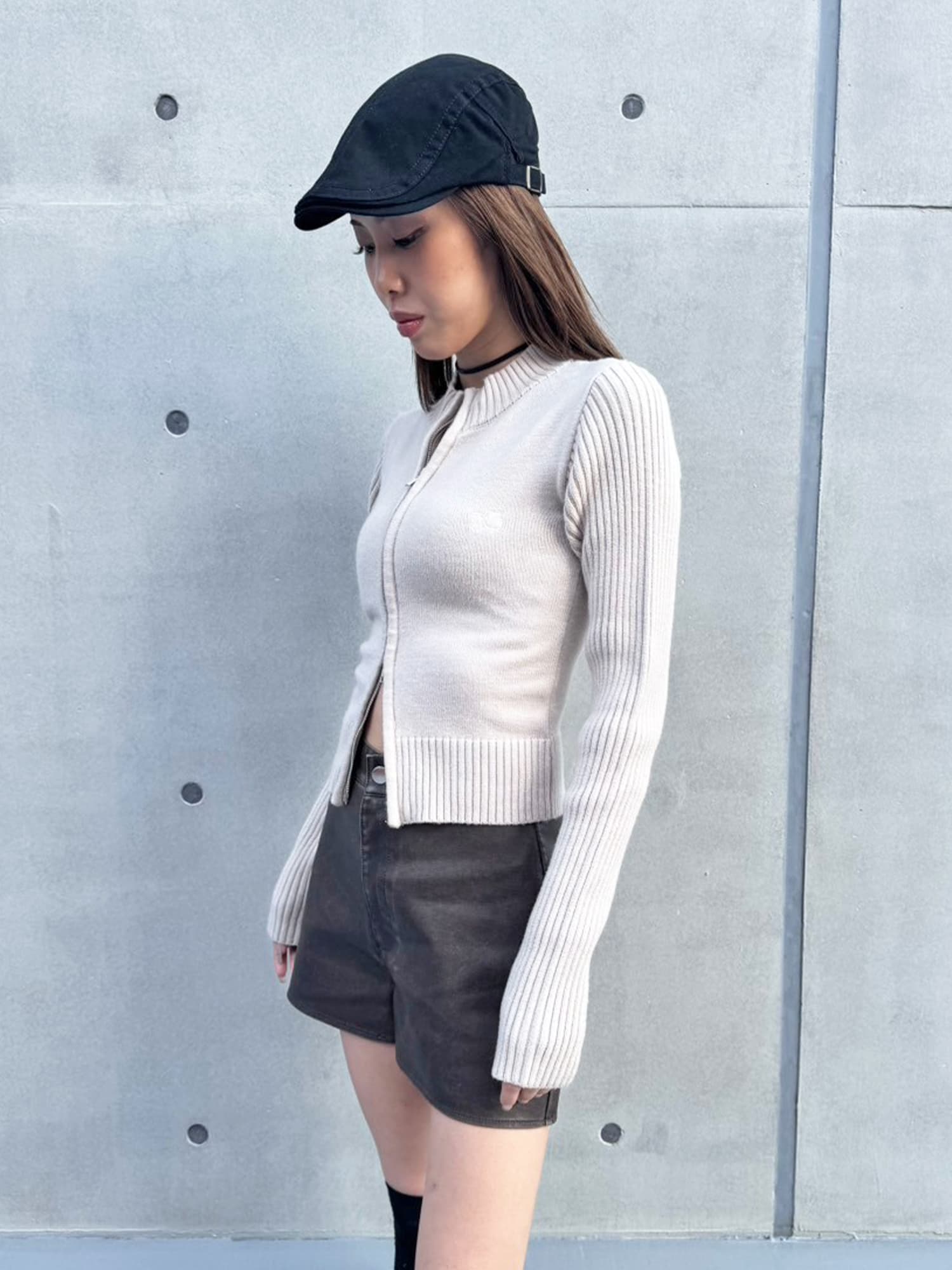 商品説明 シンプルな編地の身頃に対し、衿&袖&裾は細めのリブ編みにし変化を付けました。左胸には同色ロゴ刺繍を施し、さりげないワンポイントに。ボディラインに沿ったシルエットが女性らしい魅力を最大限に引き立たせてくれます。もちっとやわらかく肌触りも抜群のニットは伸縮性もあるのでタイトラインでも窮屈感なく着心地がいいです。フロントは逆開ZIPになっているので、裾と衿はお好みの開き具合に調整できるのも嬉しいポイント。