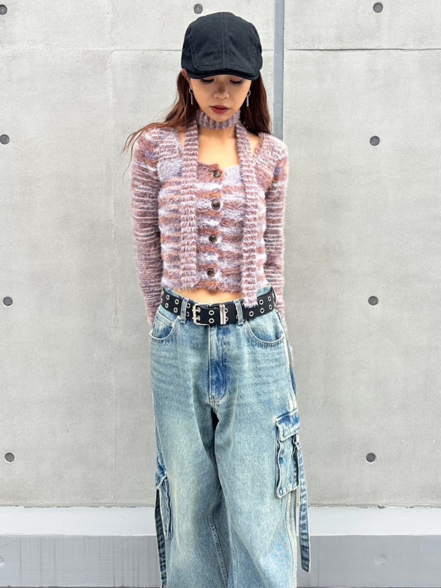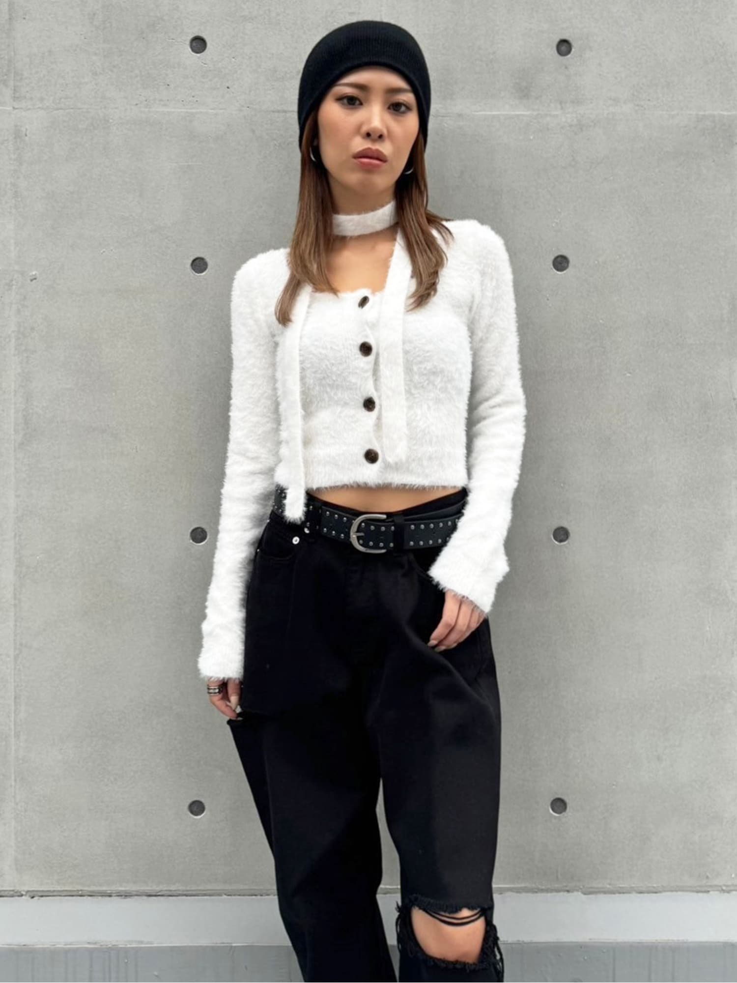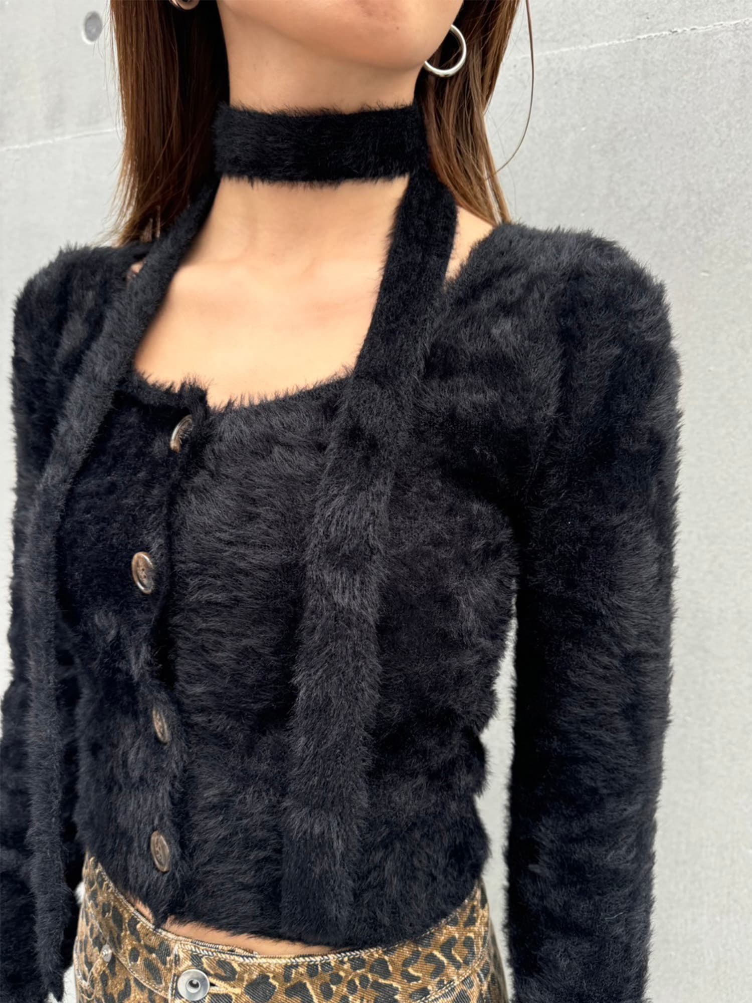 商品説明 共糸のストールが付いたスクエアネックのニットトップス。着膨れしない程度にほどよく長い毛足のシャギーニットがシーズンムード漂う1着。フロントのマーブル釦がワンポイントになっています。スクエアネックでデコルテも綺麗に見えます。その日の気分でストールを巻いても良いですし、巻かずにアクセサリーを付けても◎すっきりとしたシルエットでボトム選びに困りません。ふわっと柔らかく伸縮性があるので細身でも窮屈感なく着やすいです。