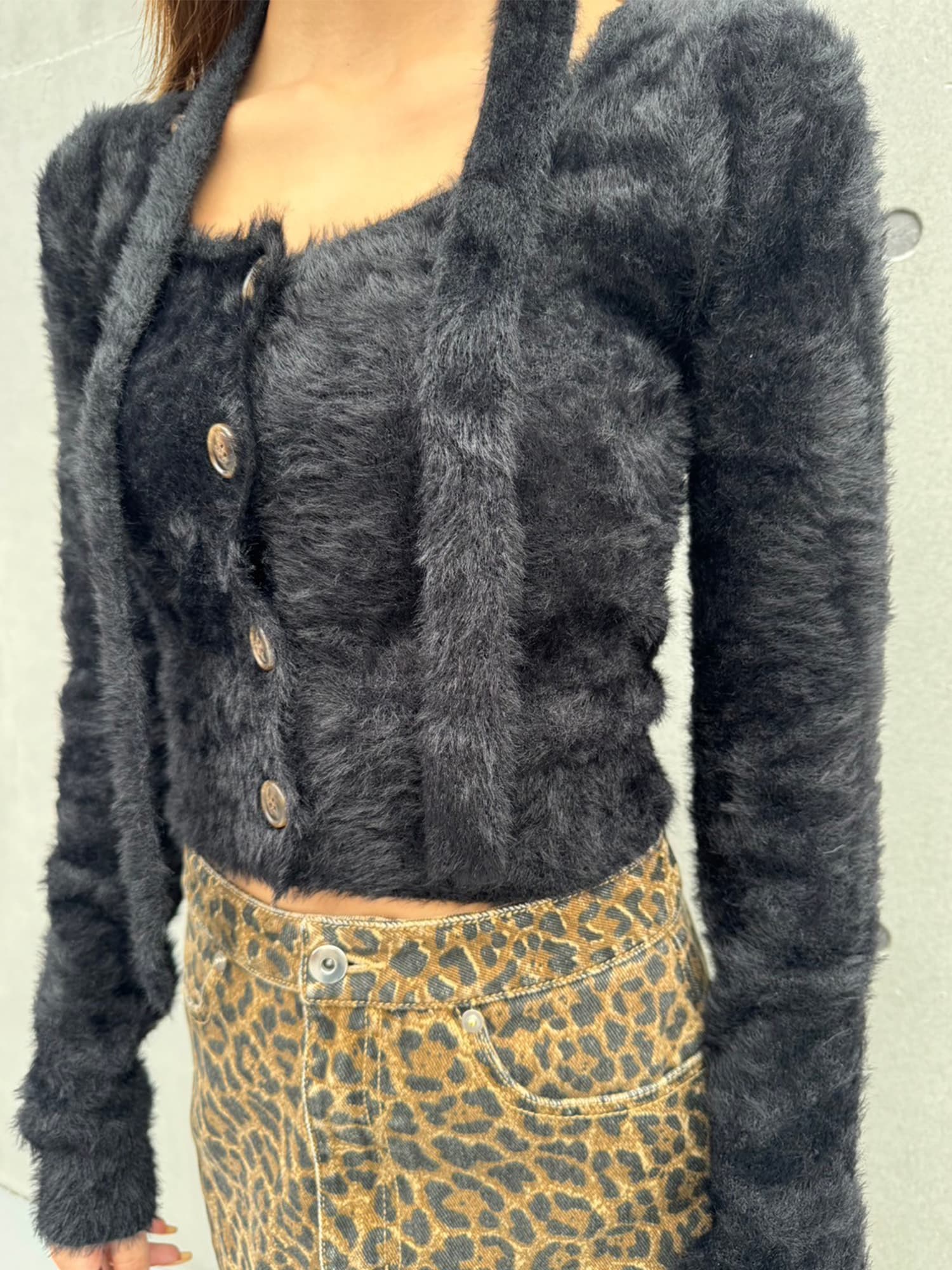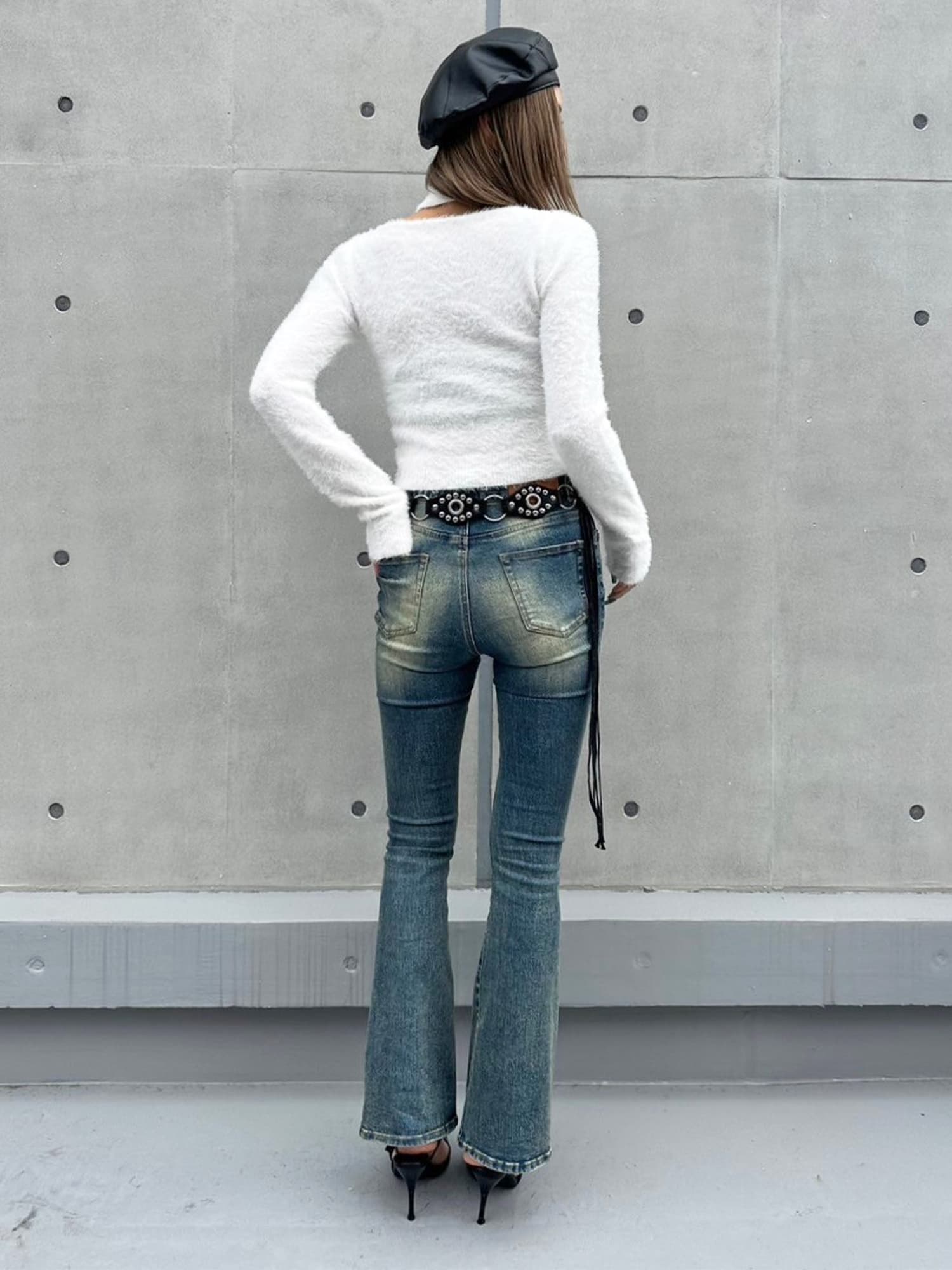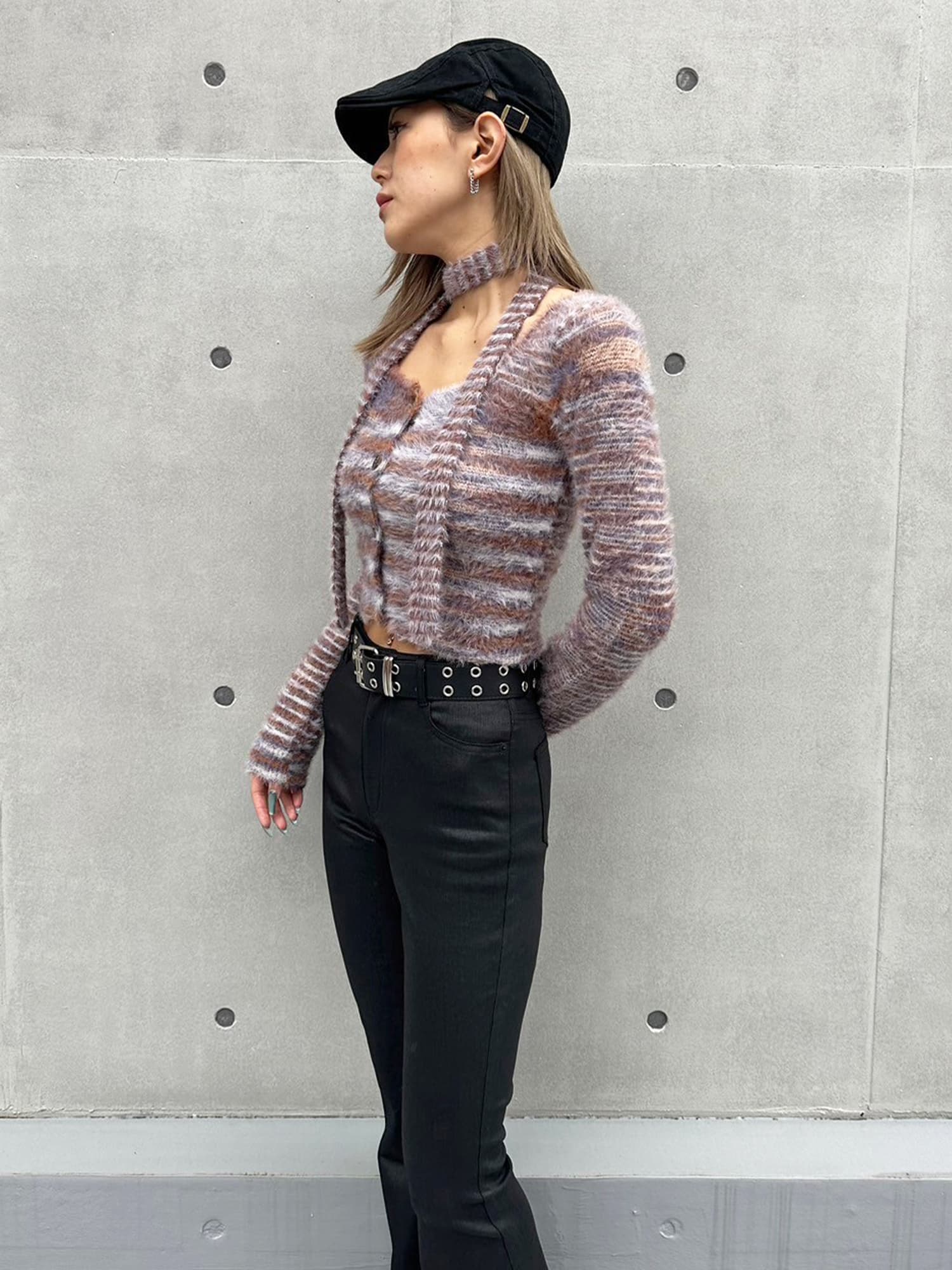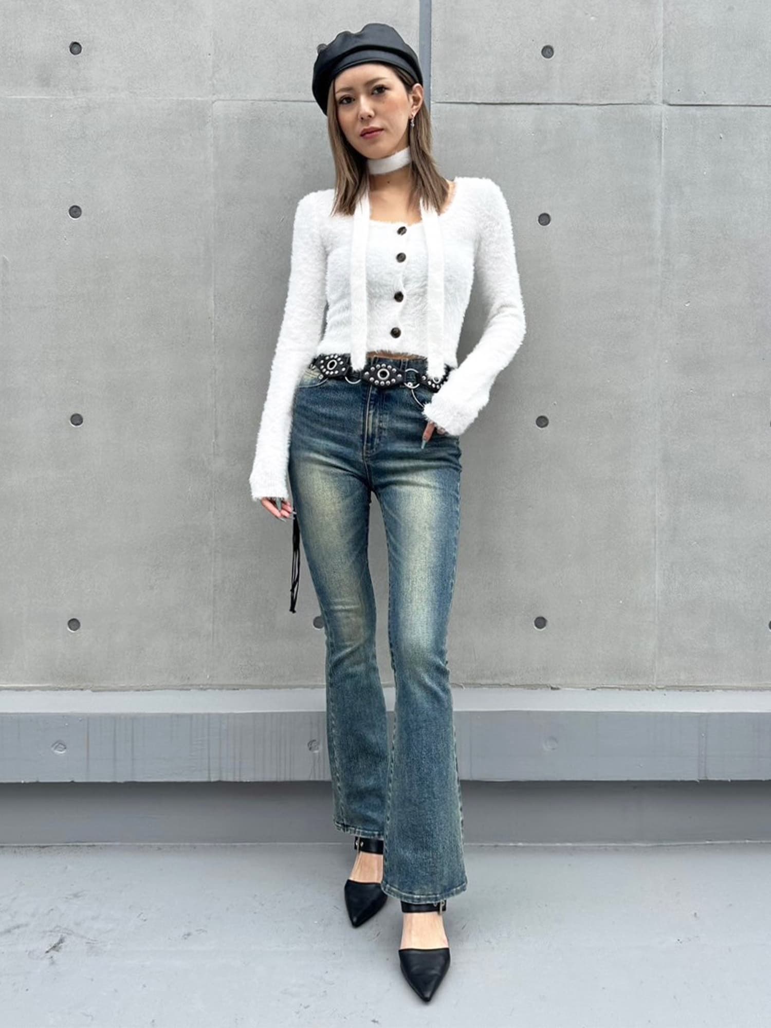 商品説明 共糸のストールが付いたスクエアネックのニットトップス。着膨れしない程度にほどよく長い毛足のシャギーニットがシーズンムード漂う1着。フロントのマーブル釦がワンポイントになっています。スクエアネックでデコルテも綺麗に見えます。その日の気分でストールを巻いても良いですし、巻かずにアクセサリーを付けても◎すっきりとしたシルエットでボトム選びに困りません。ふわっと柔らかく伸縮性があるので細身でも窮屈感なく着やすいです。