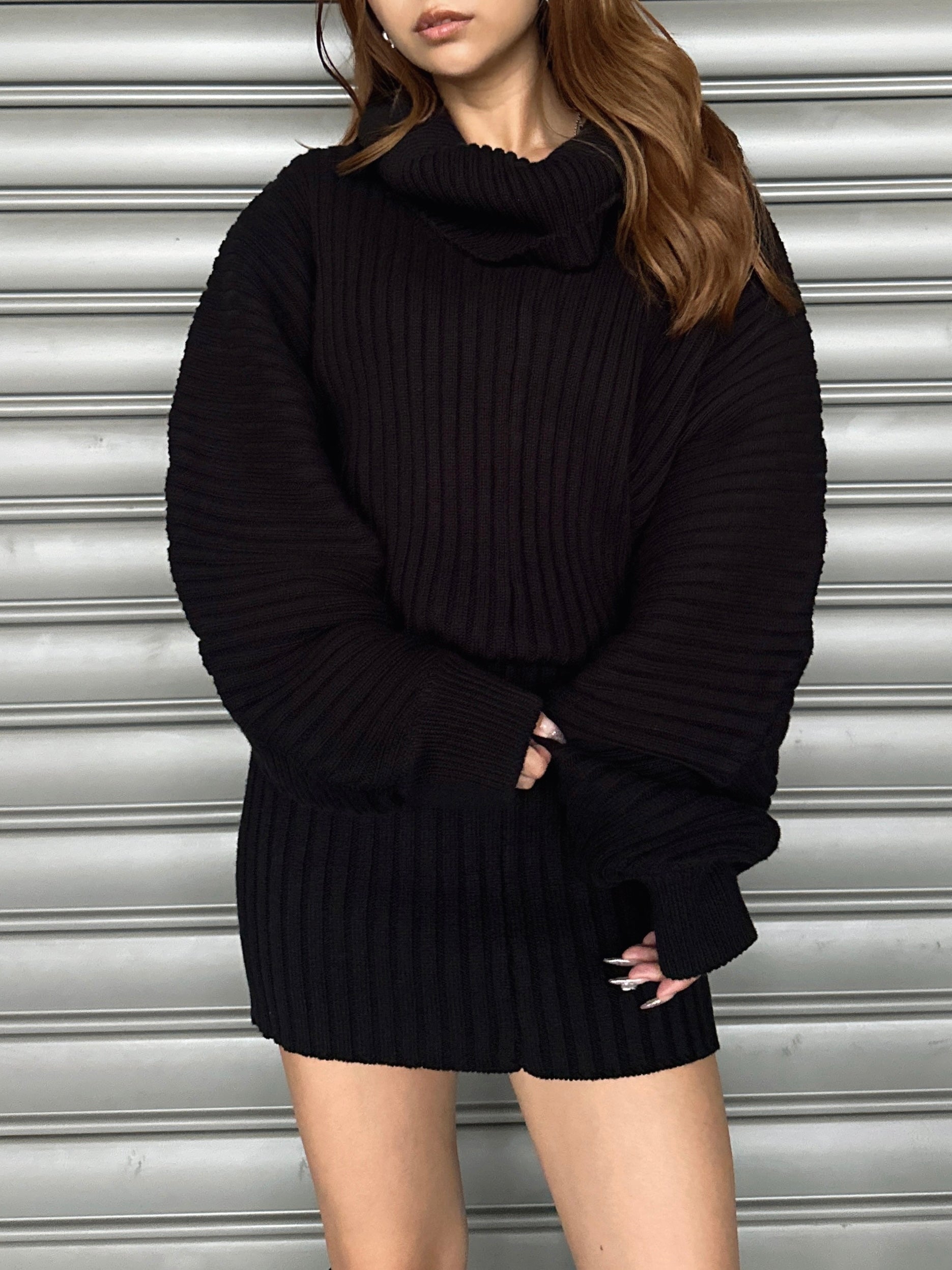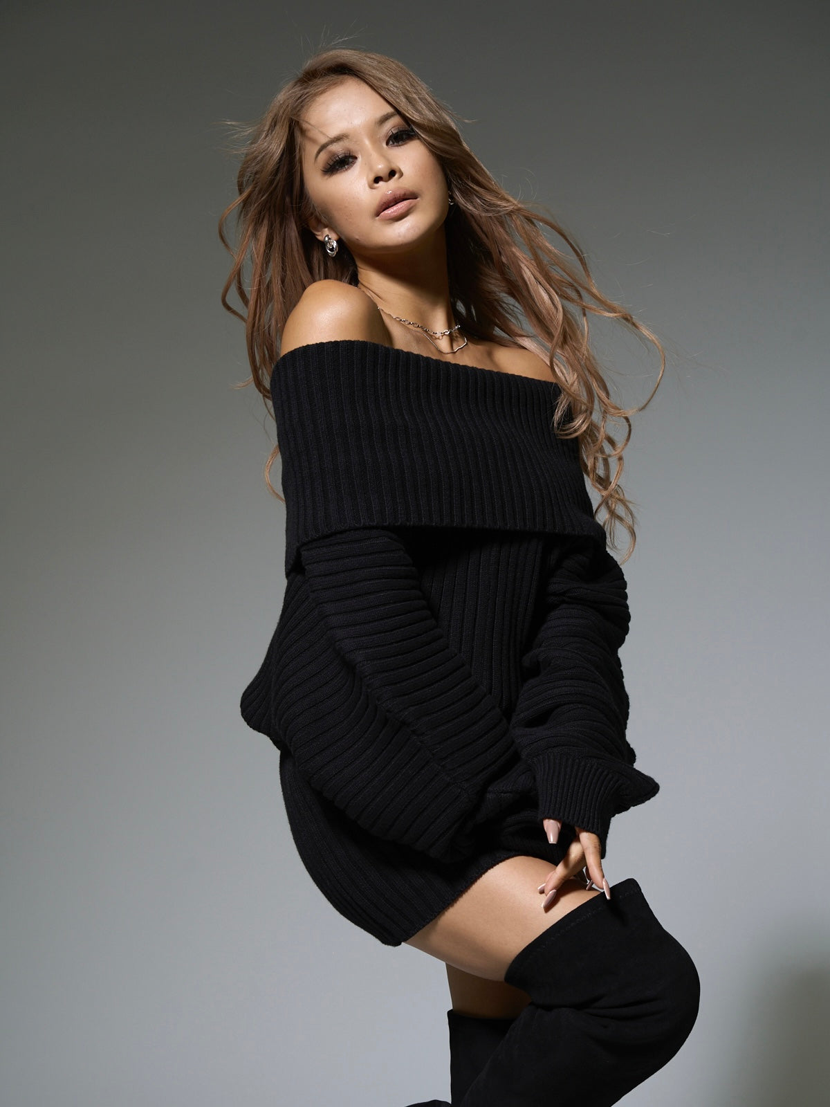 商品説明 EGOIST27周年を記念し、2003年~2008年のSEXY&GLAMAOROUS時代のHIT商品を復刻版として再現しました。折り返しタートルとオフショルの2WAYで着用出来るニットミニワンピース。身頃部分はリブの縦ラインでスリムなボディを強調。厚手ニットなので下着のラインが響きにくいです。袖はドルマンスリーブでボリュームを出しました。タートルとオフショルで表情が全く違うので、シーンに合わせて着回しできるのが嬉しいポイント。起毛感のない綿アクリル糸を使用しているので、毛玉にもなりにくく長持ちします。ウエストにはゴム性の糸を絡ませているのでストンと落ちることなく、ウエストでしっかり固定されブラウジングできるようになっています。BLACKの色味が甘さを主張しすぎず、クールにきめてくれます。強さと可愛らしさを兼ね備えたワンピースはまさにEGOISTらしい1着となっています。小物使いで雰囲気もがらりと変わるので、色んなアイテムとの合わせをお楽しみいただけます。