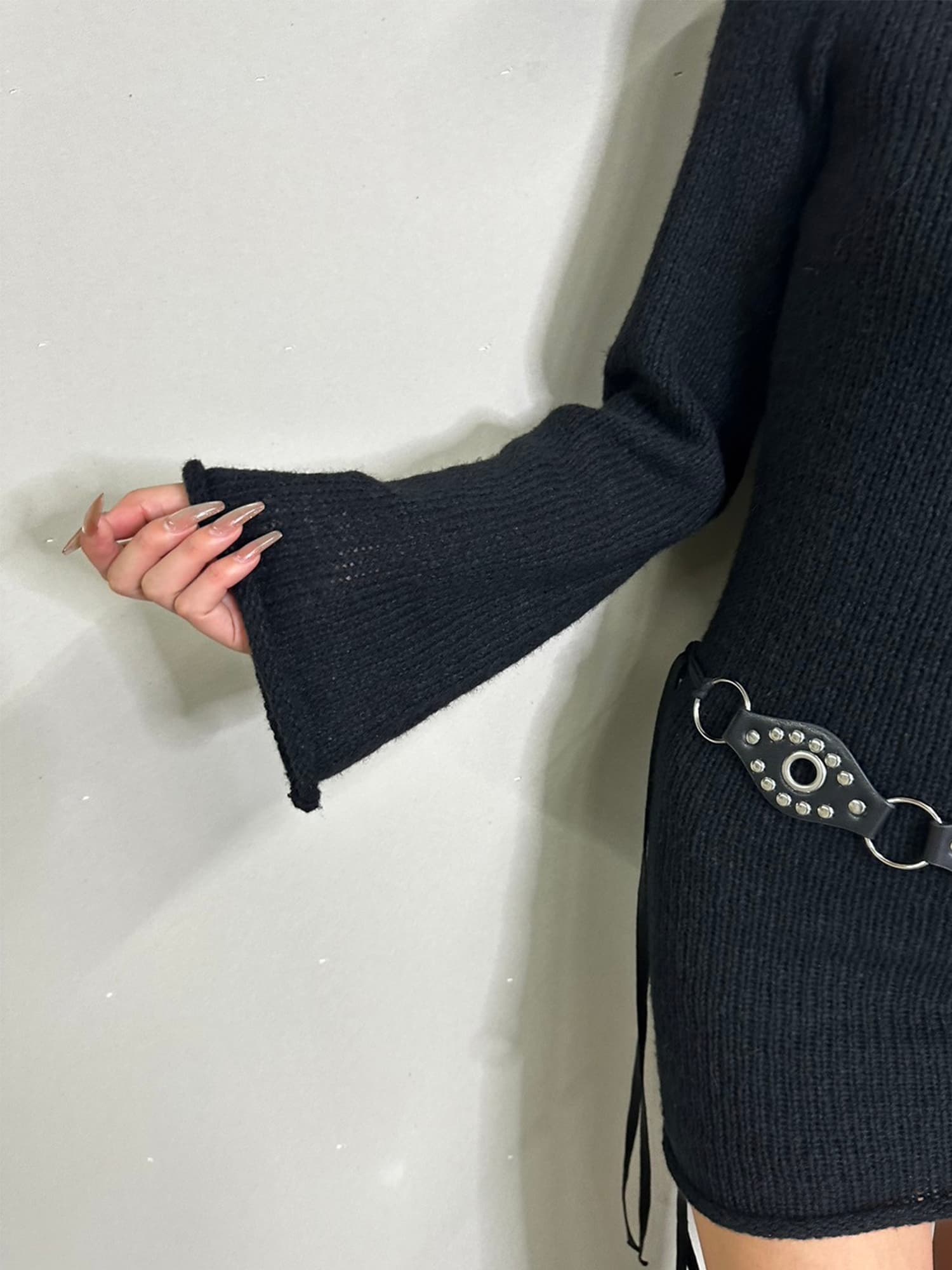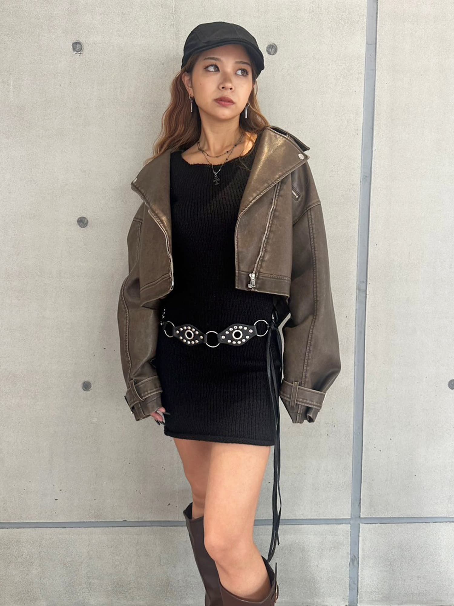 商品説明 背中が大胆に開いたデザインがインパクトのあるニットワンピース。程よい透け感が楽しめる透かし編みニットはインナー付きなので下着が見える心配がないのも嬉しいポイント。タイトなボディーに対してワイドなフレアスリーブがメリハリのあるシルエットを演出。大胆なバックスタイルとは対照的にフロントはシンプルなデザインにしているのでデザイン性の強いアウターも合わせやすいです。広めにあいた背中も紐が付いているので肩が抜ける心配もありません。ミニ丈なのでロングブーツとの合わせがオススメ。裾や袖口はロールアップ始末で抜け感を出しました。