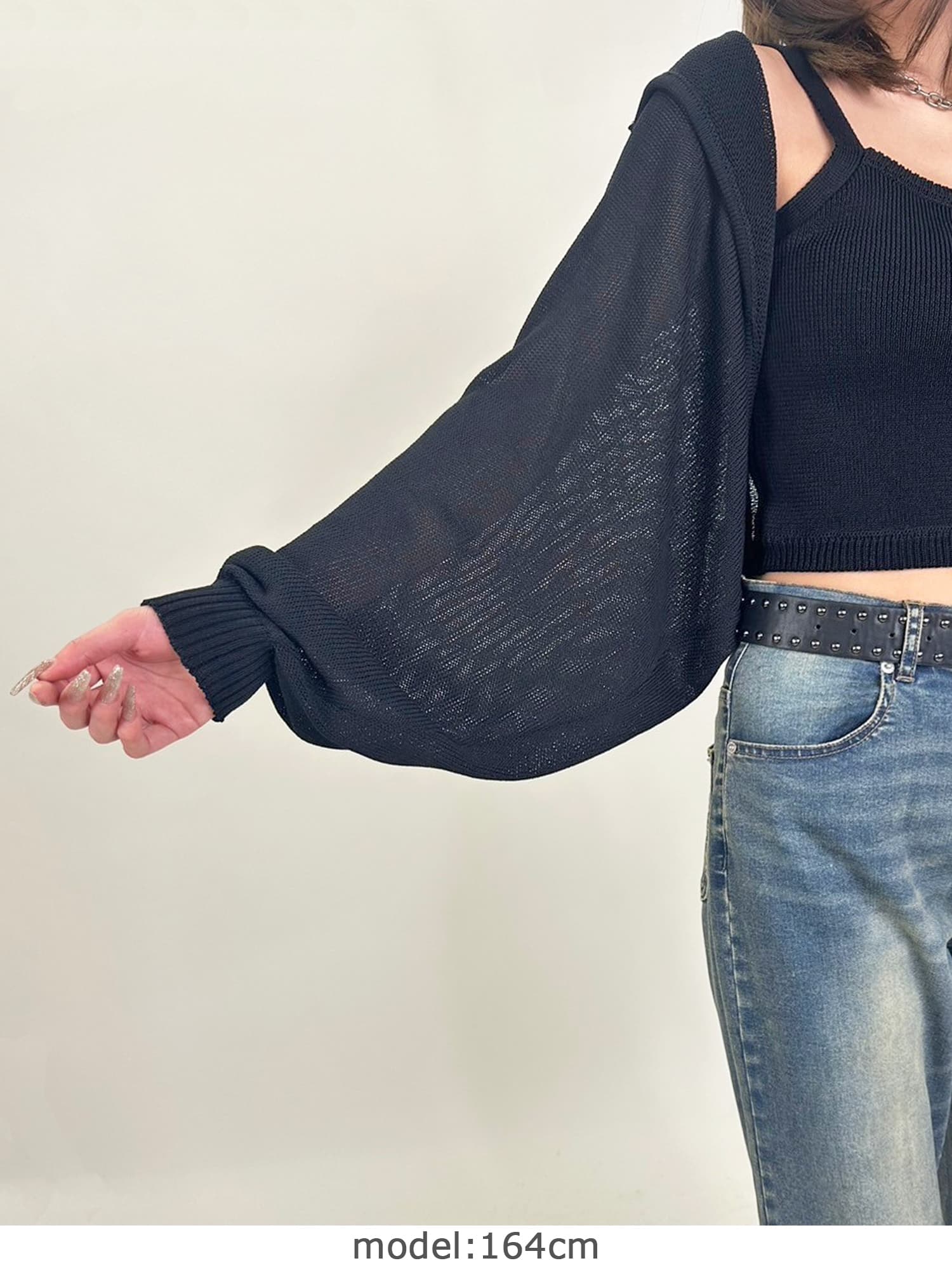 商品説明 清涼感のあるニットを使用した、フード付ニットボレロ。
