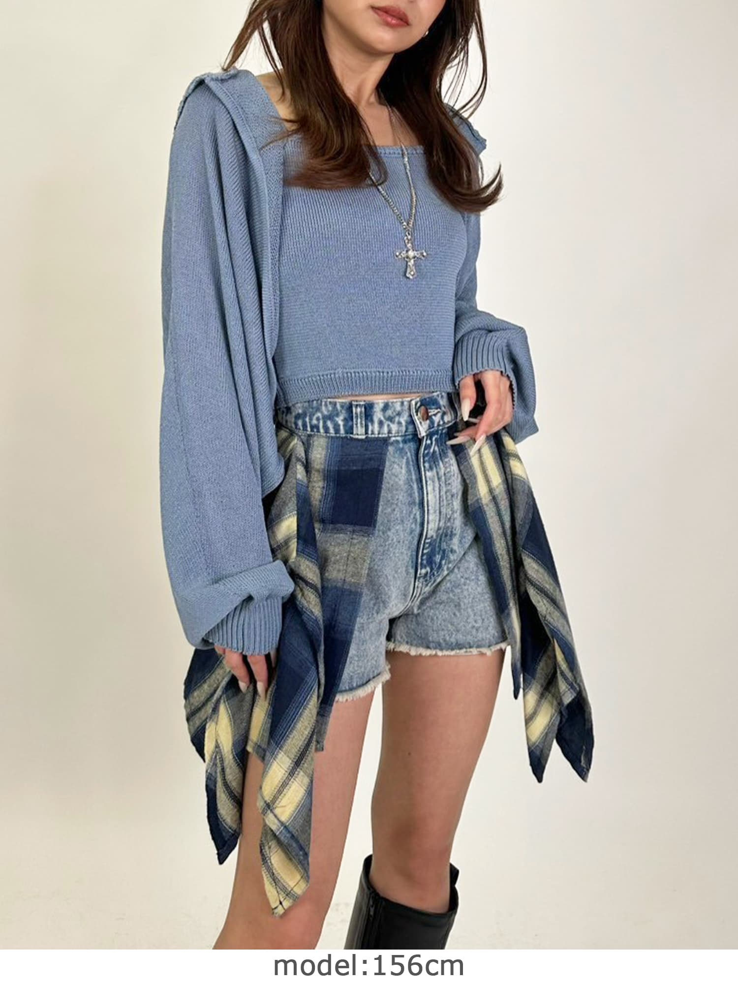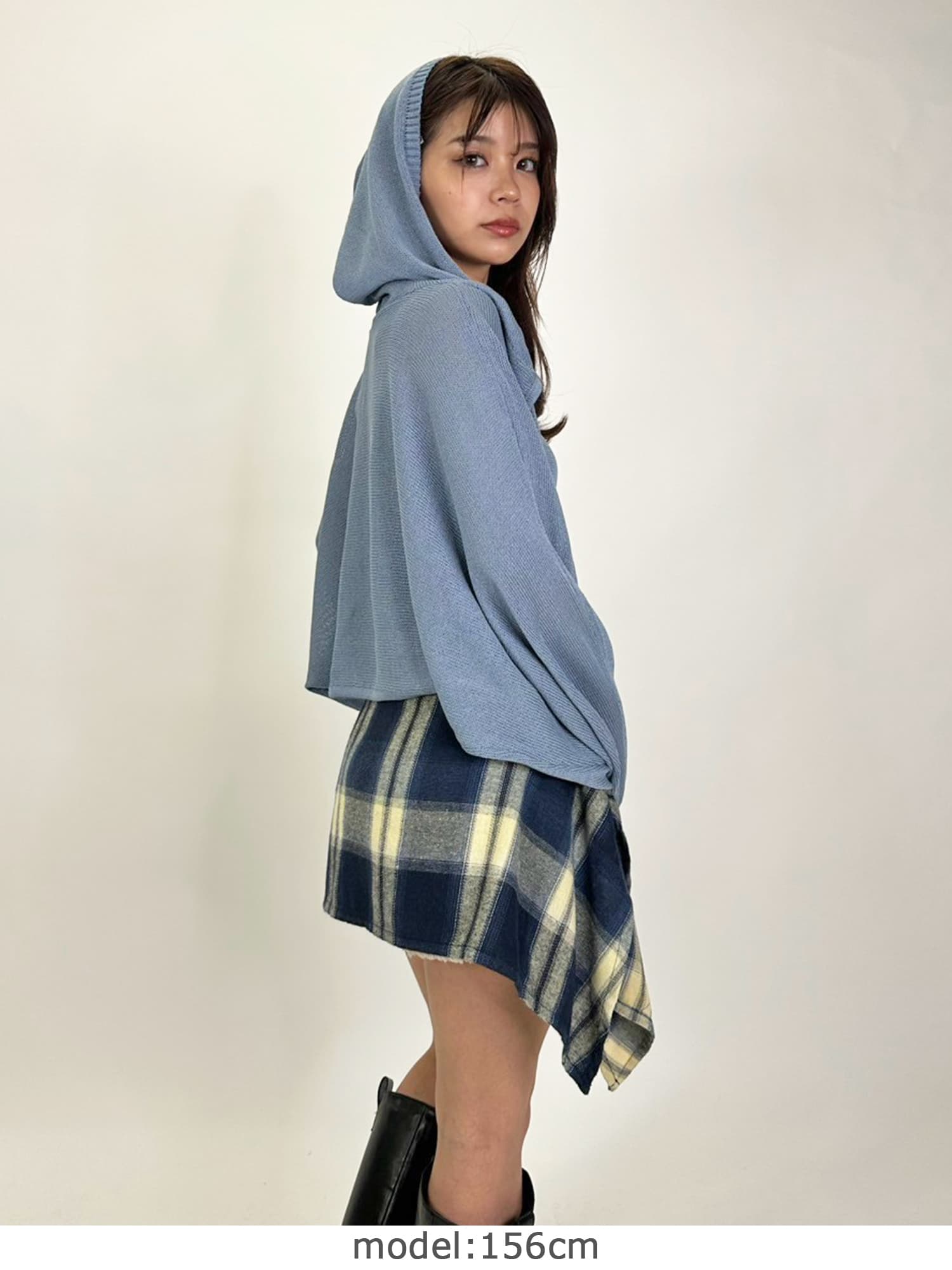 シャリ感のある薄手で通気性の良い糸を使用しています。フード付なのでカジュアルなイメージですが、ボリュームのある袖で女性らしさもプラス。ジャスト丈なので、ミニボトムからフルレングスまで様々なシルエットのボトムと相性抜群です。