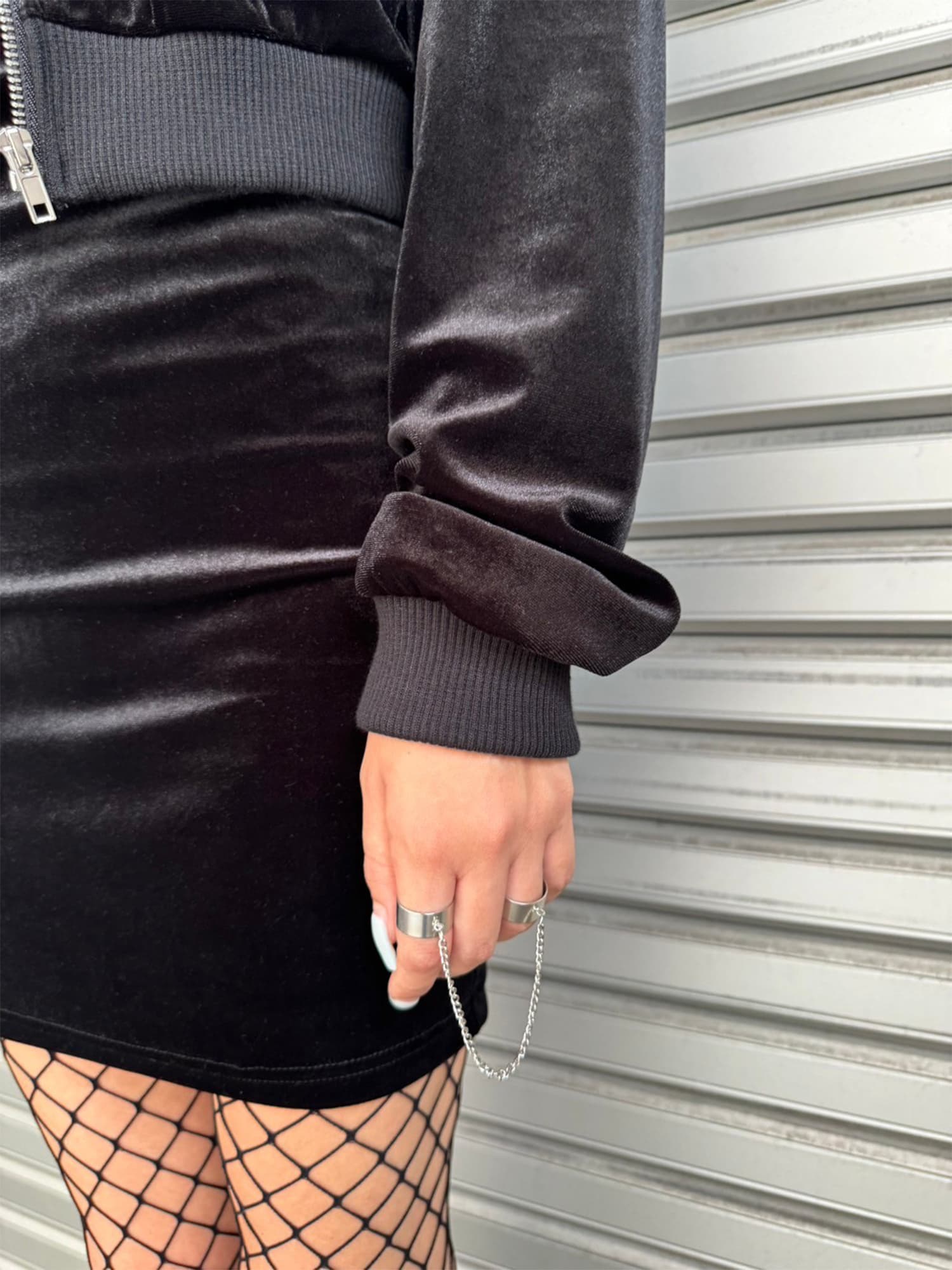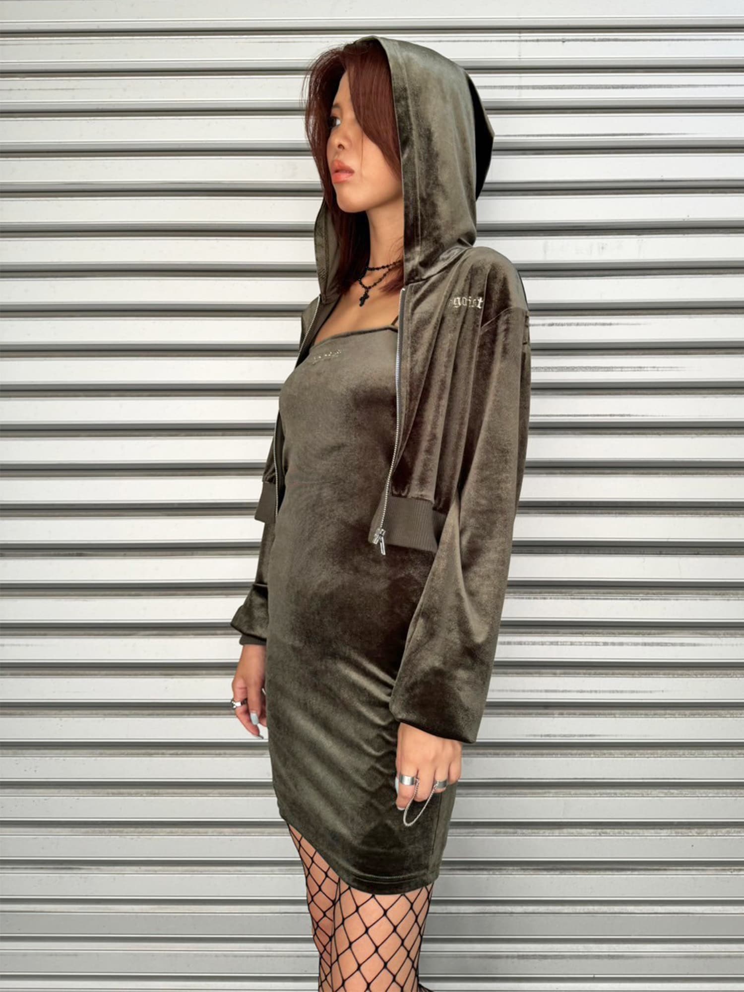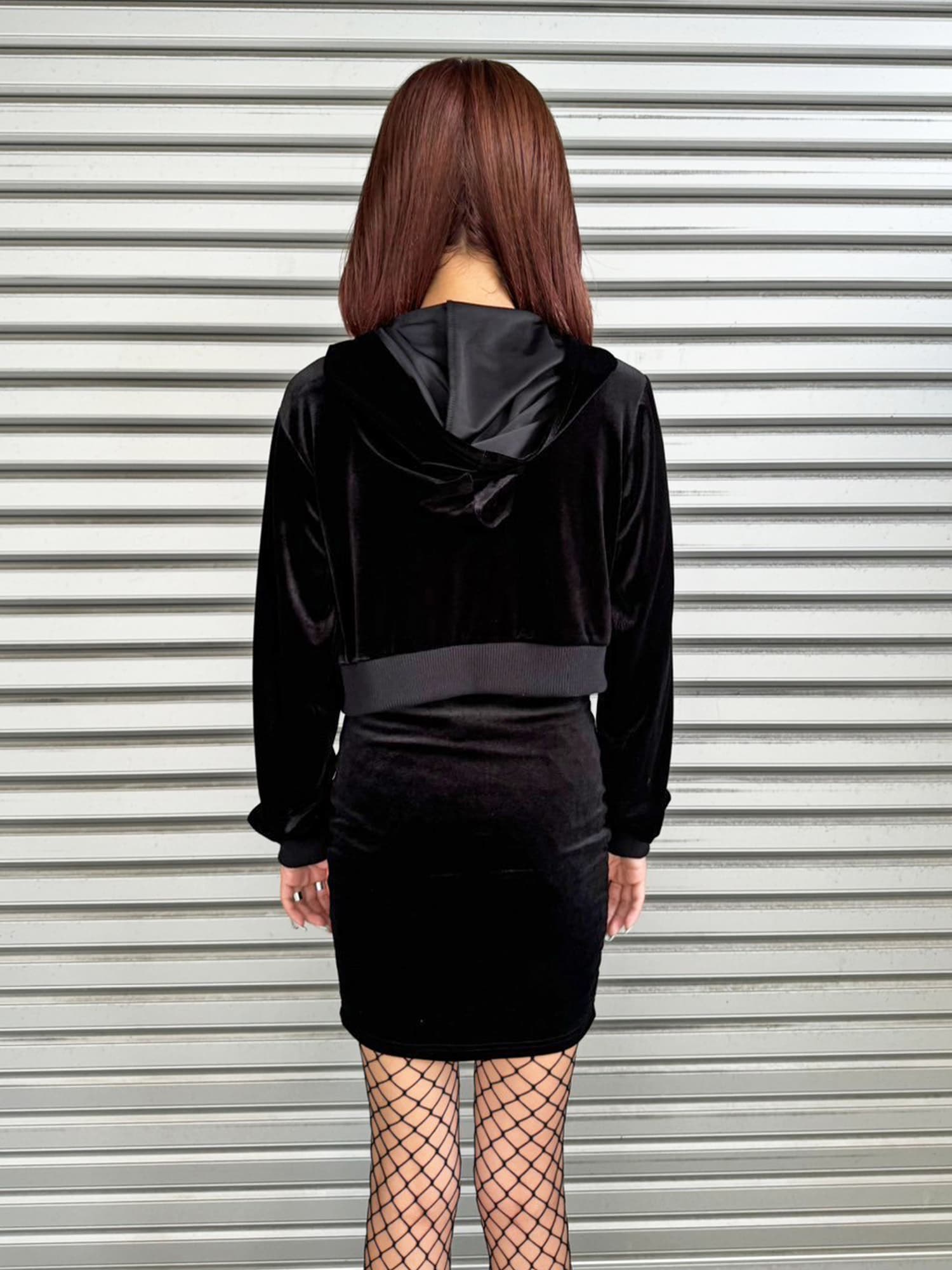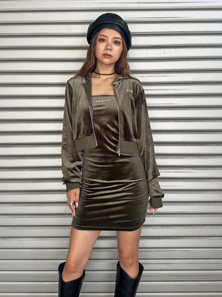 商品説明 程よく光沢感があり、肌触りの良いカットベロアを使用したフルジップパーカー。