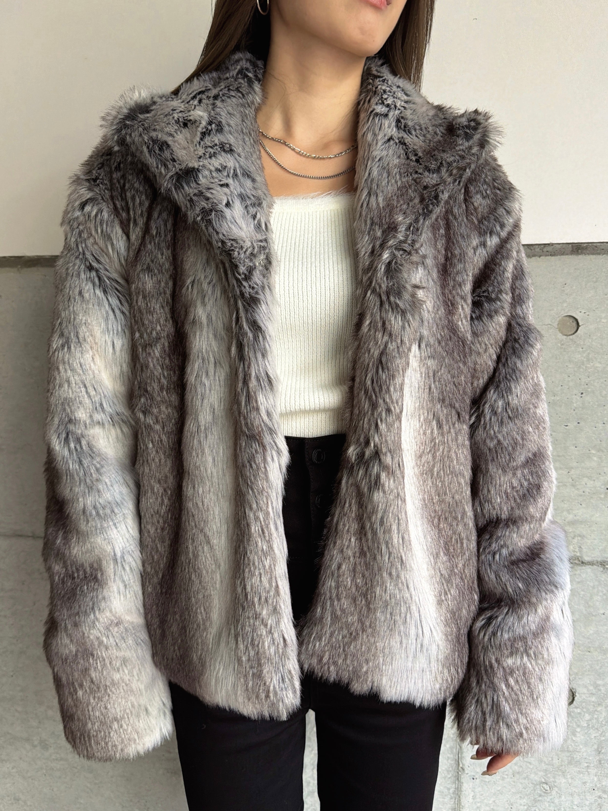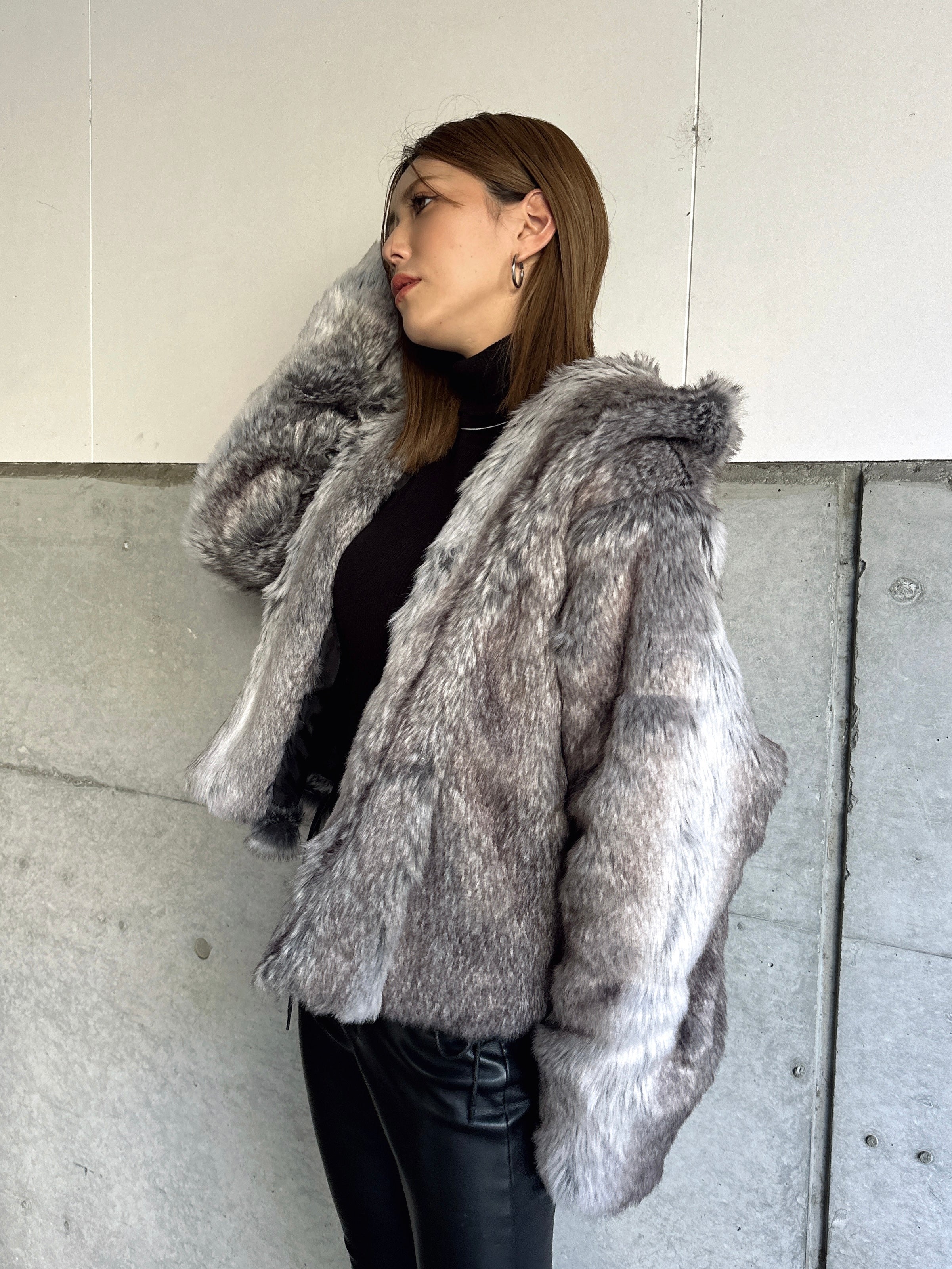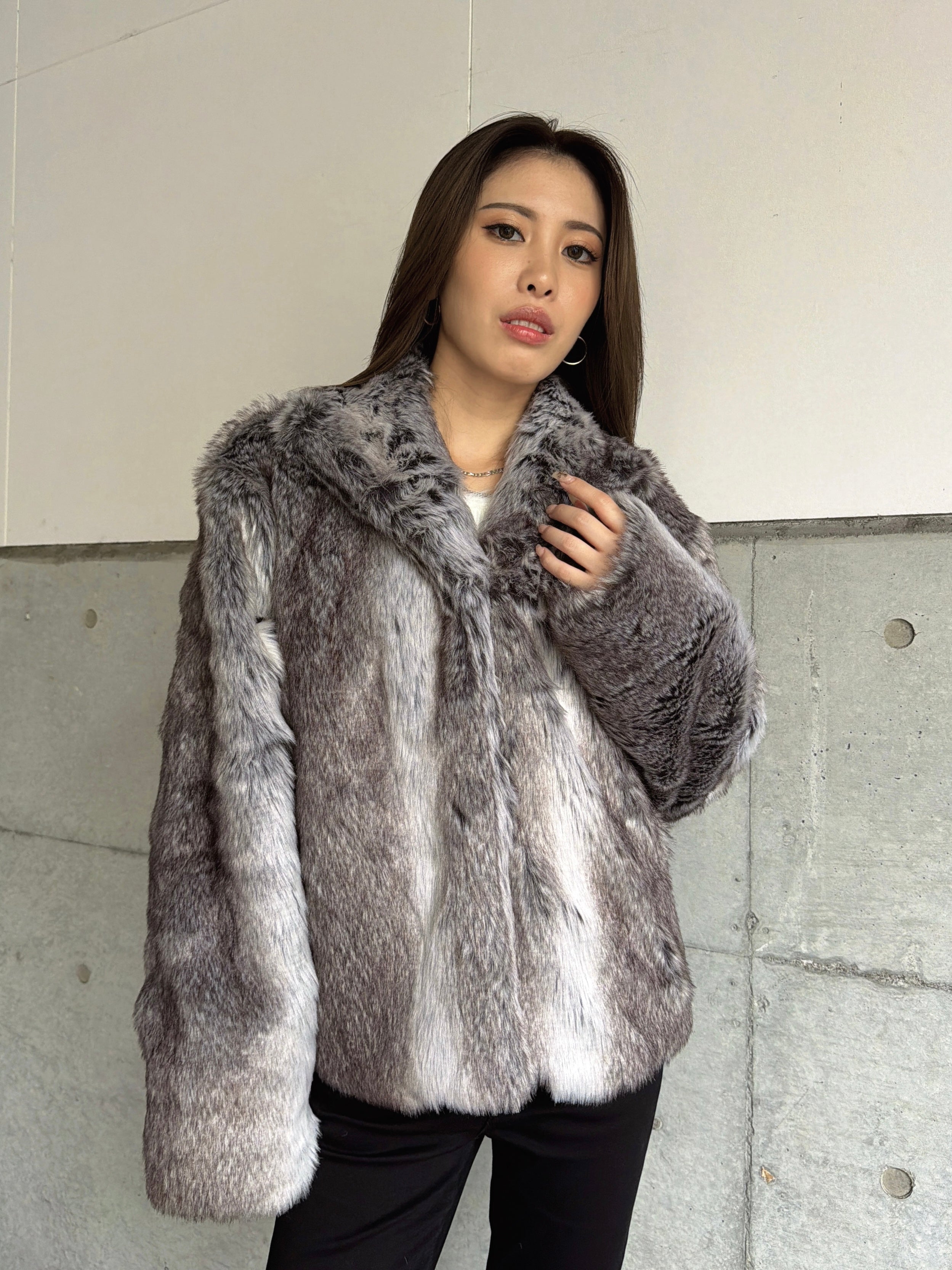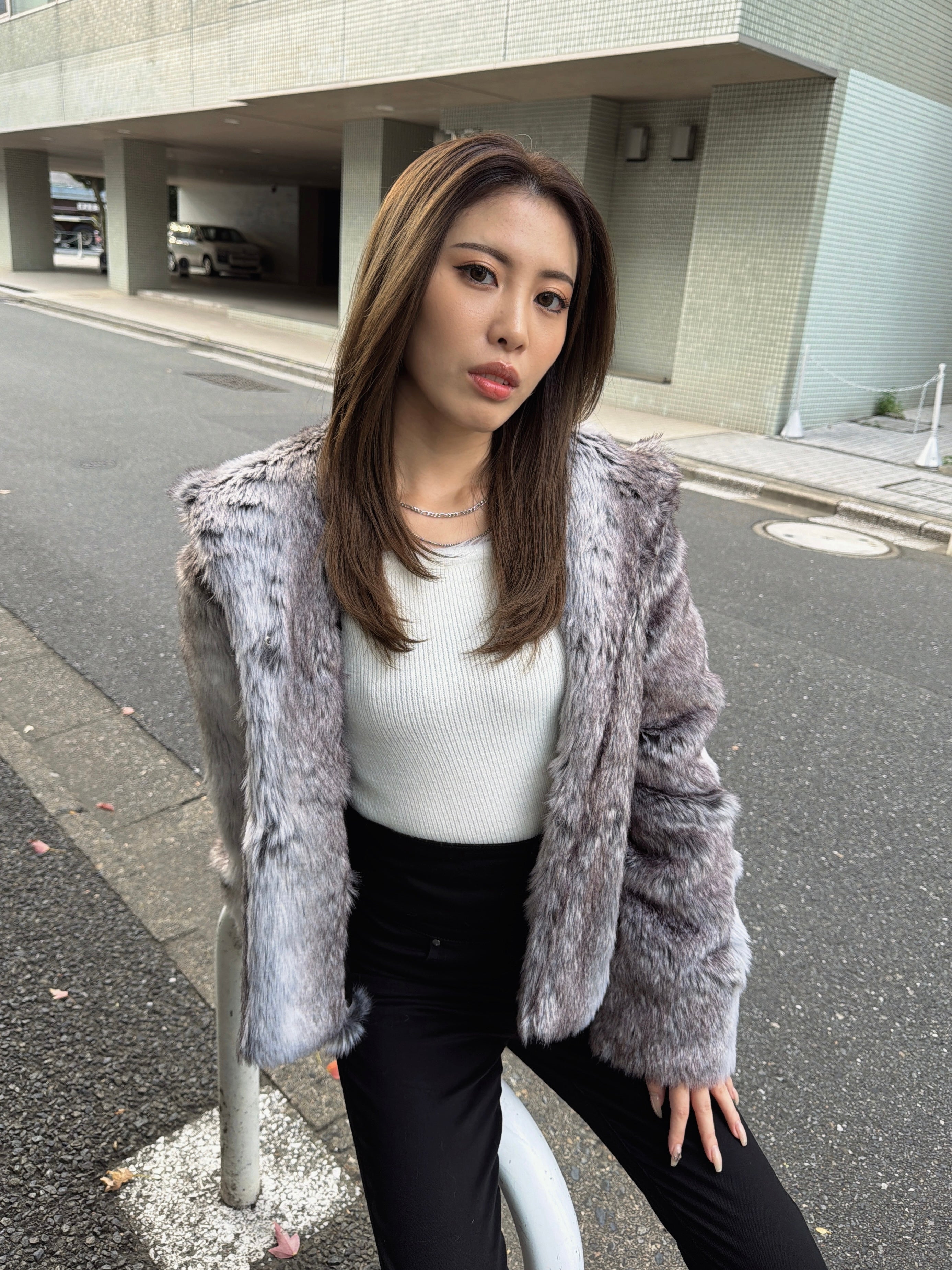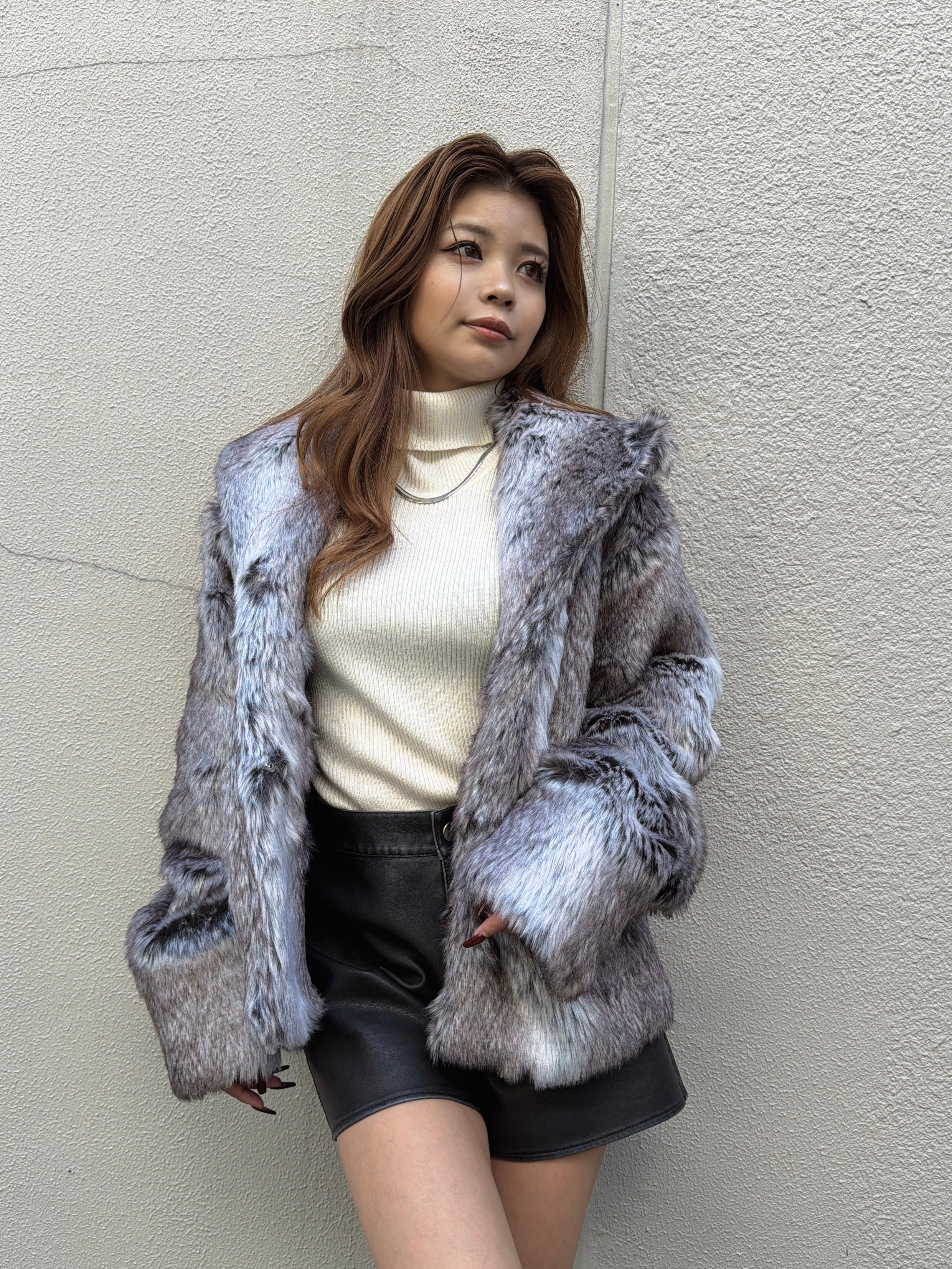 商品説明 スモーキーグレー×淡いトーンをミックスさせた色味が上品な印象のファーコート。曖昧な色味が特徴のニュアンスカラーは光の当たり方で色が変化して見えます。首回りにボリュームを出して膨張するのは避けたい!でも小顔効果も欲しい!そんな両極端な要望にも応えられるよう、衿の形や大きさを細かく調整しバランスよく整えました。袖口は2枚構造になっており、内側はリブでキュッと止まるので袖口から風が侵入せず防寒効果もばっちり。身頃部分には裏地が付いているので風通しも防いでくれます。フロントはスナップボタン仕様で、着脱がスムーズ。ファーコートはボリュームが出やすいのでボトムはすっきりとミニマルに。綺麗めに着こなしたい方はスキニーパンツ、タイトワンピース、ミニボトムの合わせがオススメです。全体をモノトーンにまとめて大人な余裕感を演出するのも◎