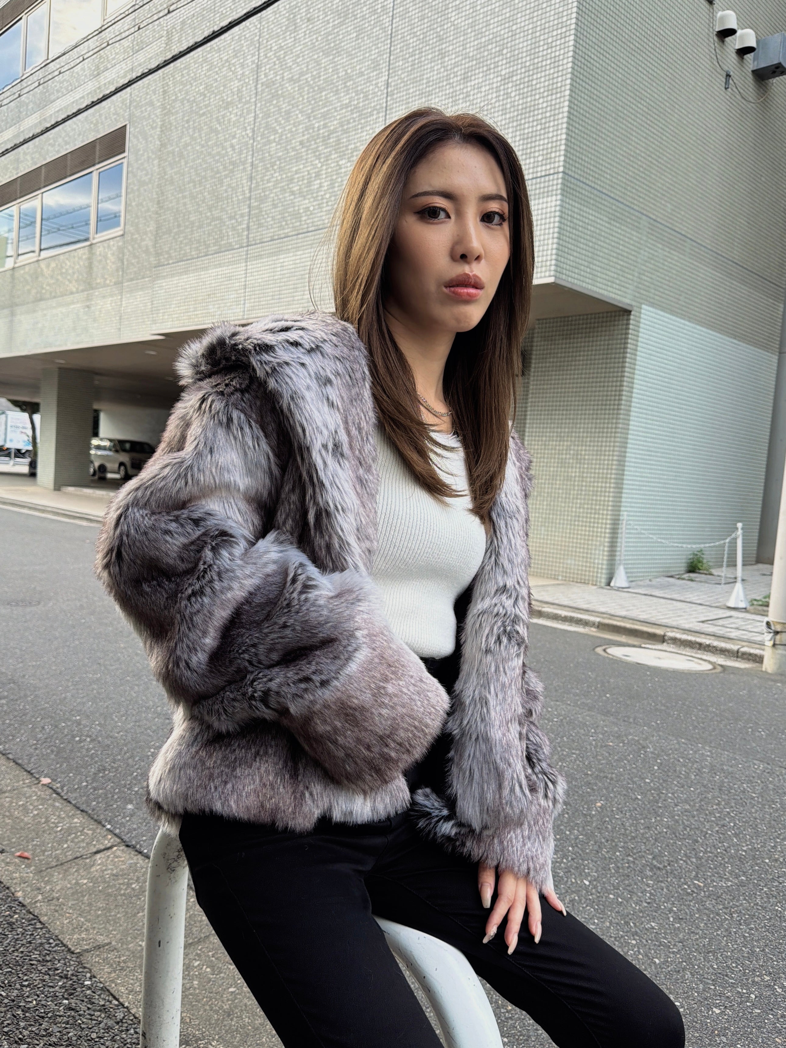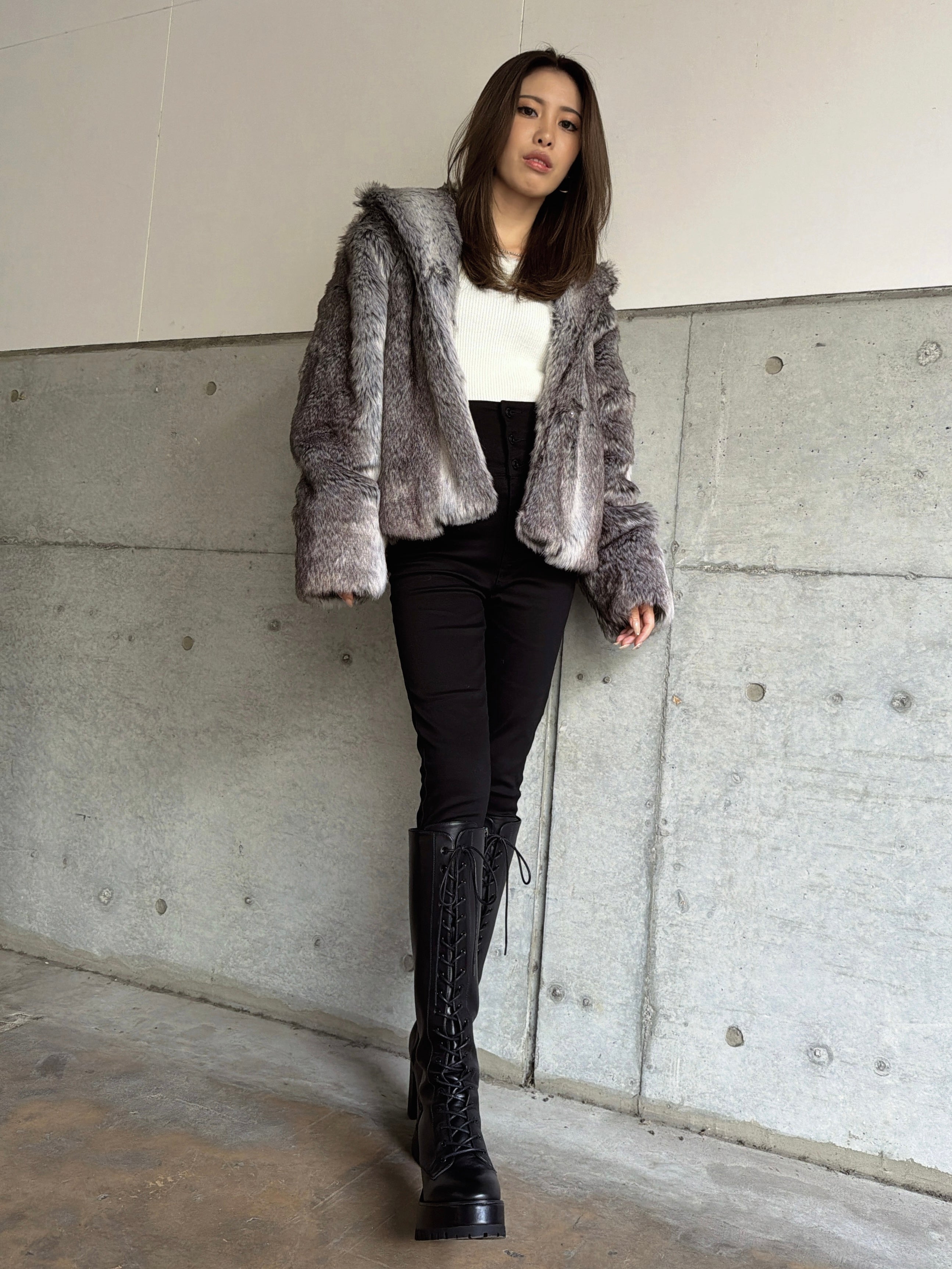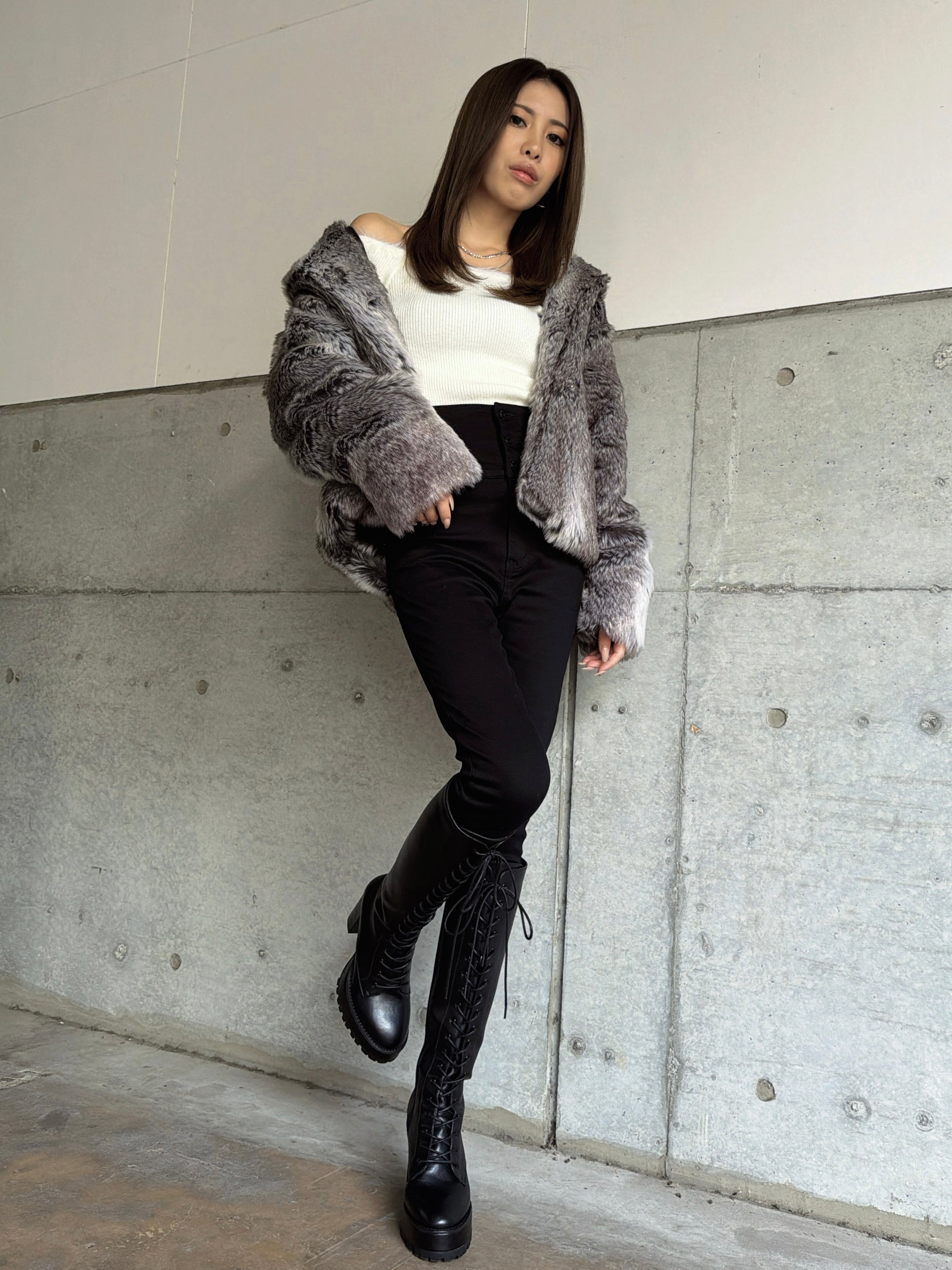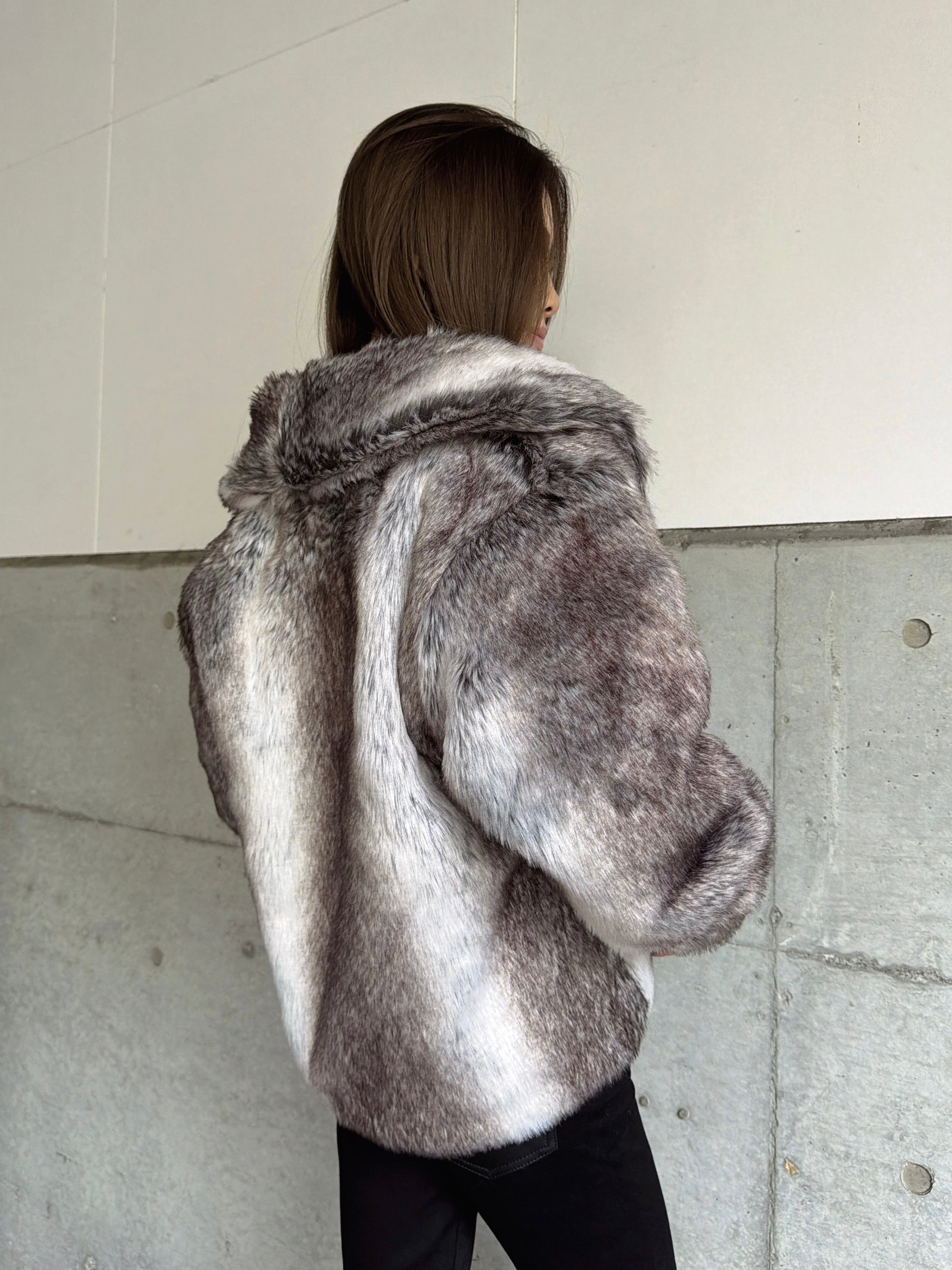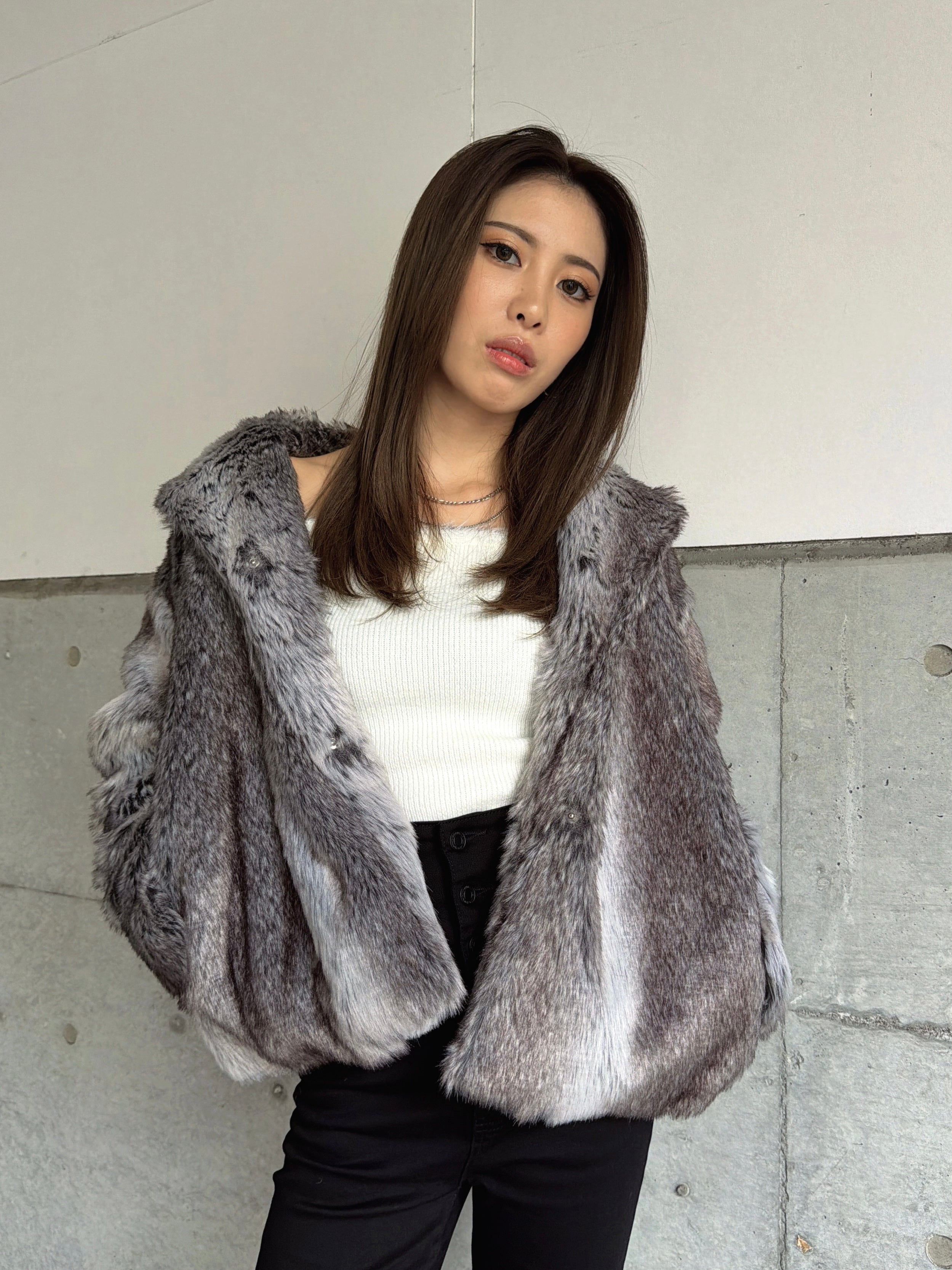 商品説明 スモーキーグレー×淡いトーンをミックスさせた色味が上品な印象のファーコート。曖昧な色味が特徴のニュアンスカラーは光の当たり方で色が変化して見えます。首回りにボリュームを出して膨張するのは避けたい!でも小顔効果も欲しい!そんな両極端な要望にも応えられるよう、衿の形や大きさを細かく調整しバランスよく整えました。袖口は2枚構造になっており、内側はリブでキュッと止まるので袖口から風が侵入せず防寒効果もばっちり。身頃部分には裏地が付いているので風通しも防いでくれます。フロントはスナップボタン仕様で、着脱がスムーズ。ファーコートはボリュームが出やすいのでボトムはすっきりとミニマルに。綺麗めに着こなしたい方はスキニーパンツ、タイトワンピース、ミニボトムの合わせがオススメです。全体をモノトーンにまとめて大人な余裕感を演出するのも◎
