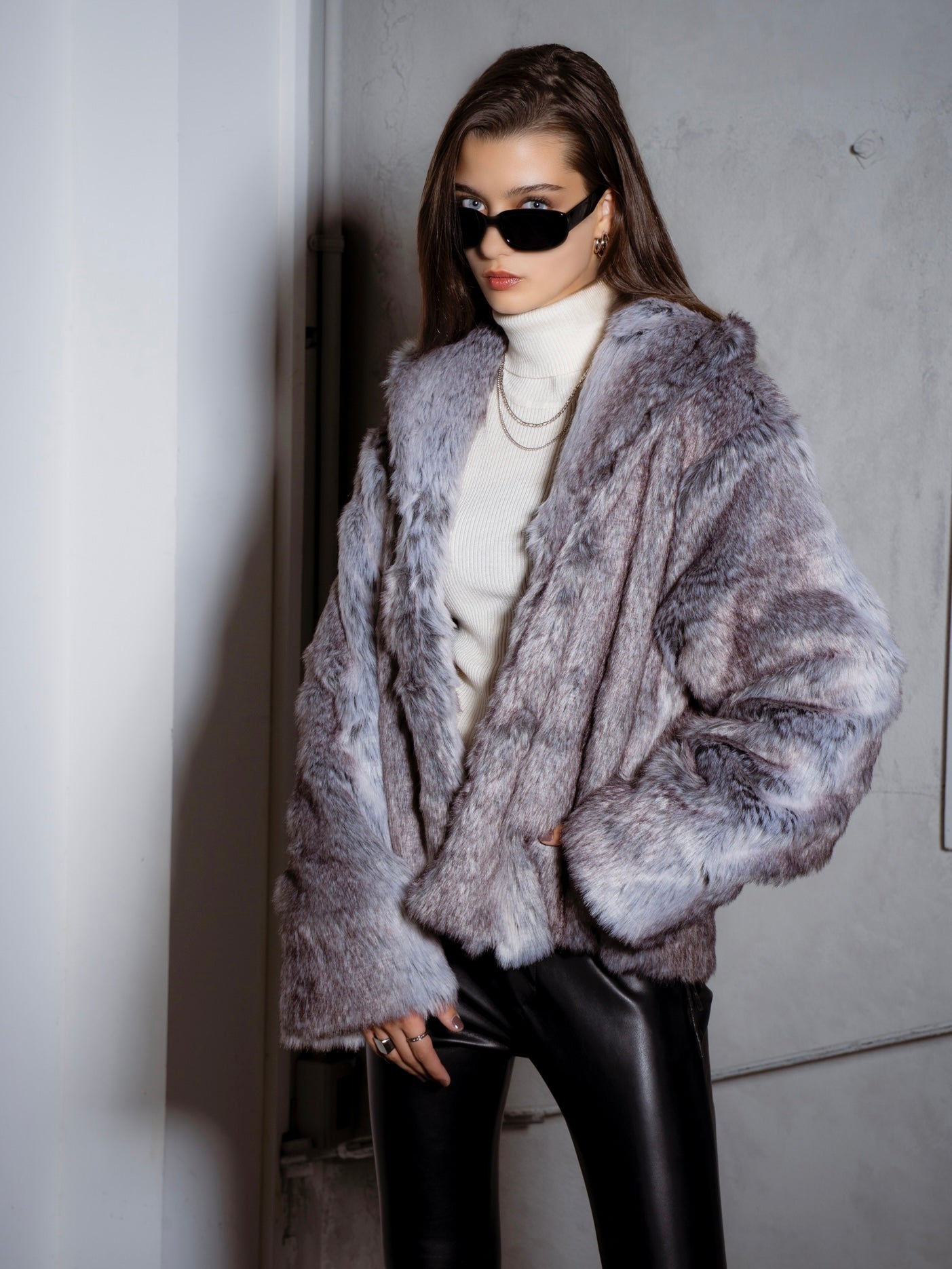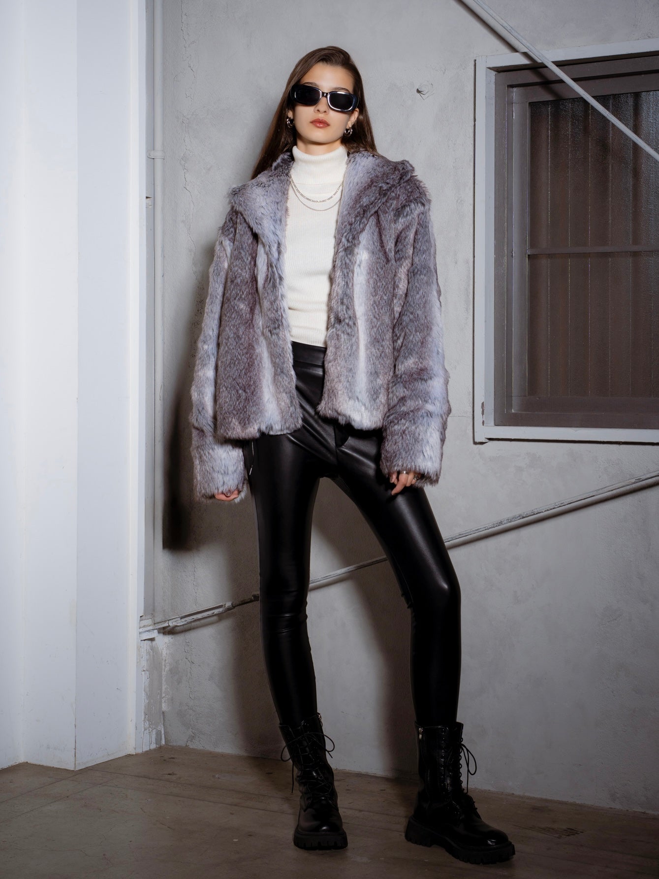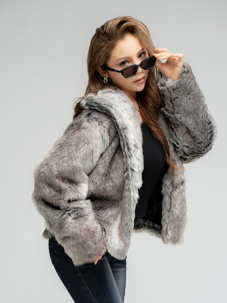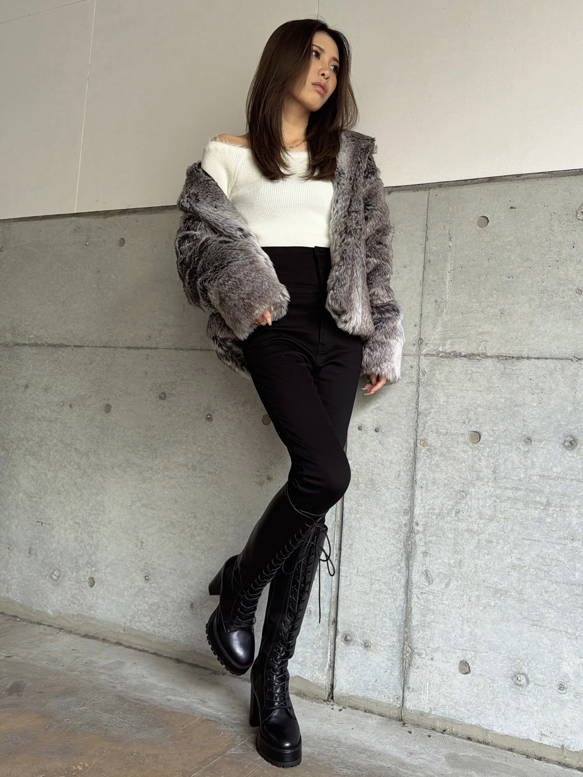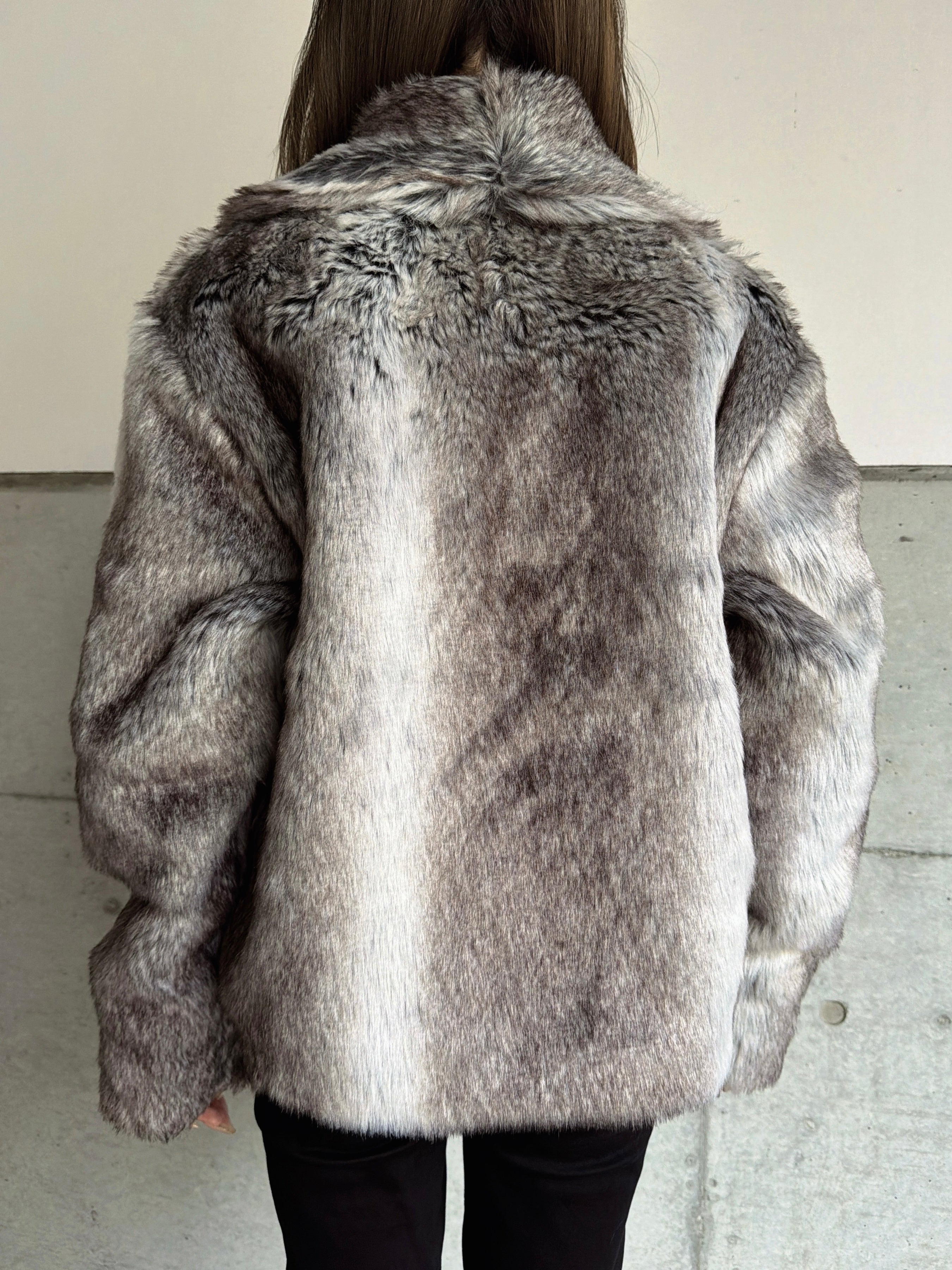 商品説明 スモーキーグレー×淡いトーンをミックスさせた色味が上品な印象のファーコート。曖昧な色味が特徴のニュアンスカラーは光の当たり方で色が変化して見えます。首回りにボリュームを出して膨張するのは避けたい!でも小顔効果も欲しい!そんな両極端な要望にも応えられるよう、衿の形や大きさを細かく調整しバランスよく整えました。袖口は2枚構造になっており、内側はリブでキュッと止まるので袖口から風が侵入せず防寒効果もばっちり。身頃部分には裏地が付いているので風通しも防いでくれます。フロントはスナップボタン仕様で、着脱がスムーズ。ファーコートはボリュームが出やすいのでボトムはすっきりとミニマルに。綺麗めに着こなしたい方はスキニーパンツ、タイトワンピース、ミニボトムの合わせがオススメです。全体をモノトーンにまとめて大人な余裕感を演出するのも◎