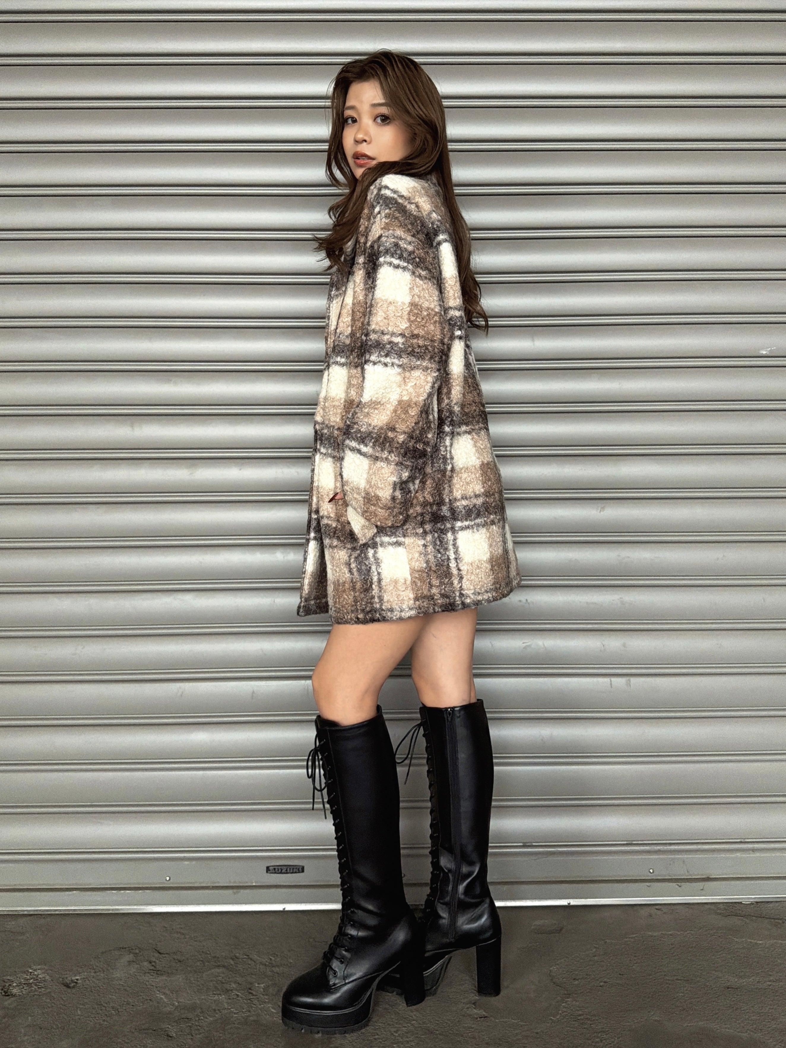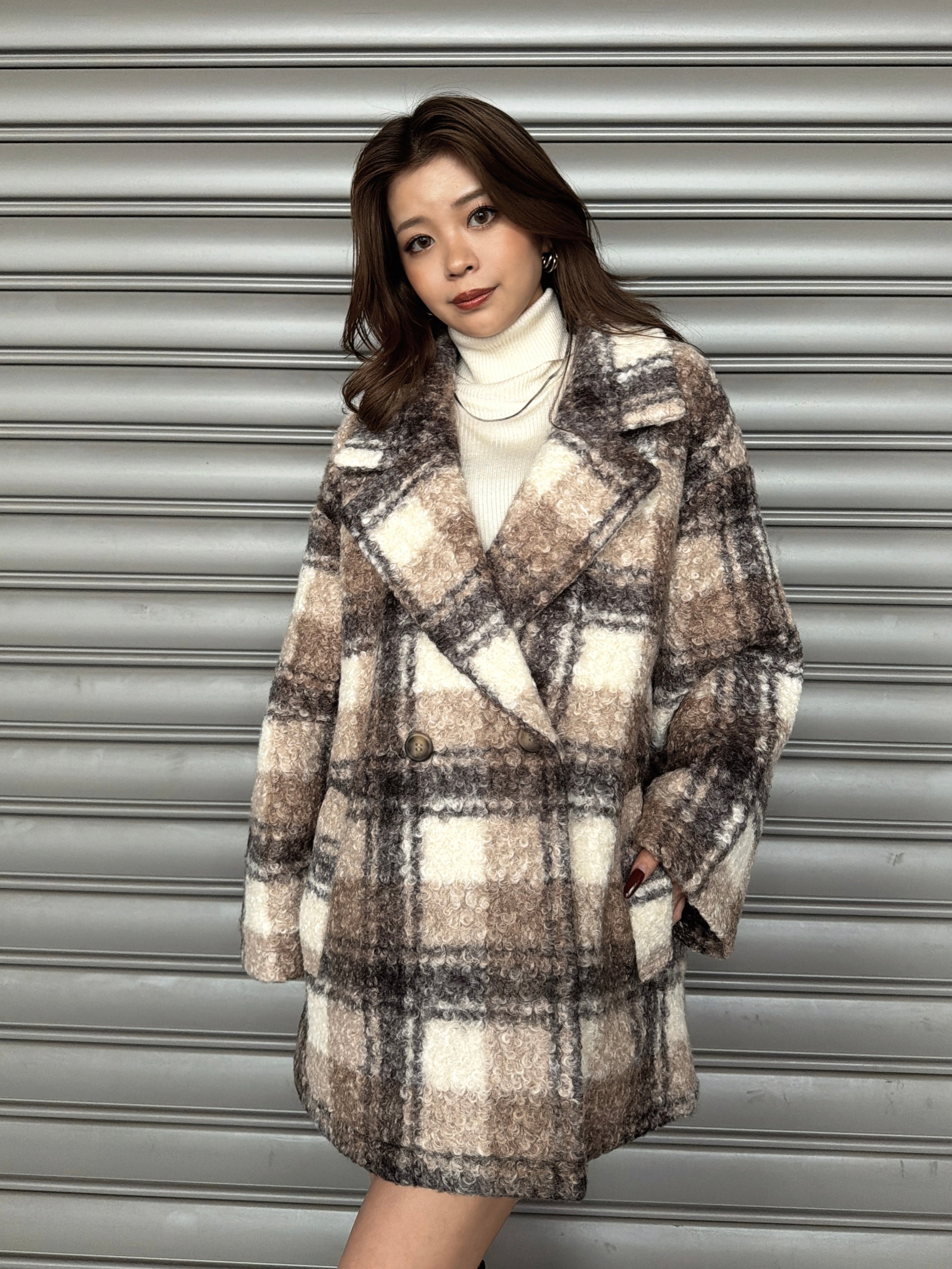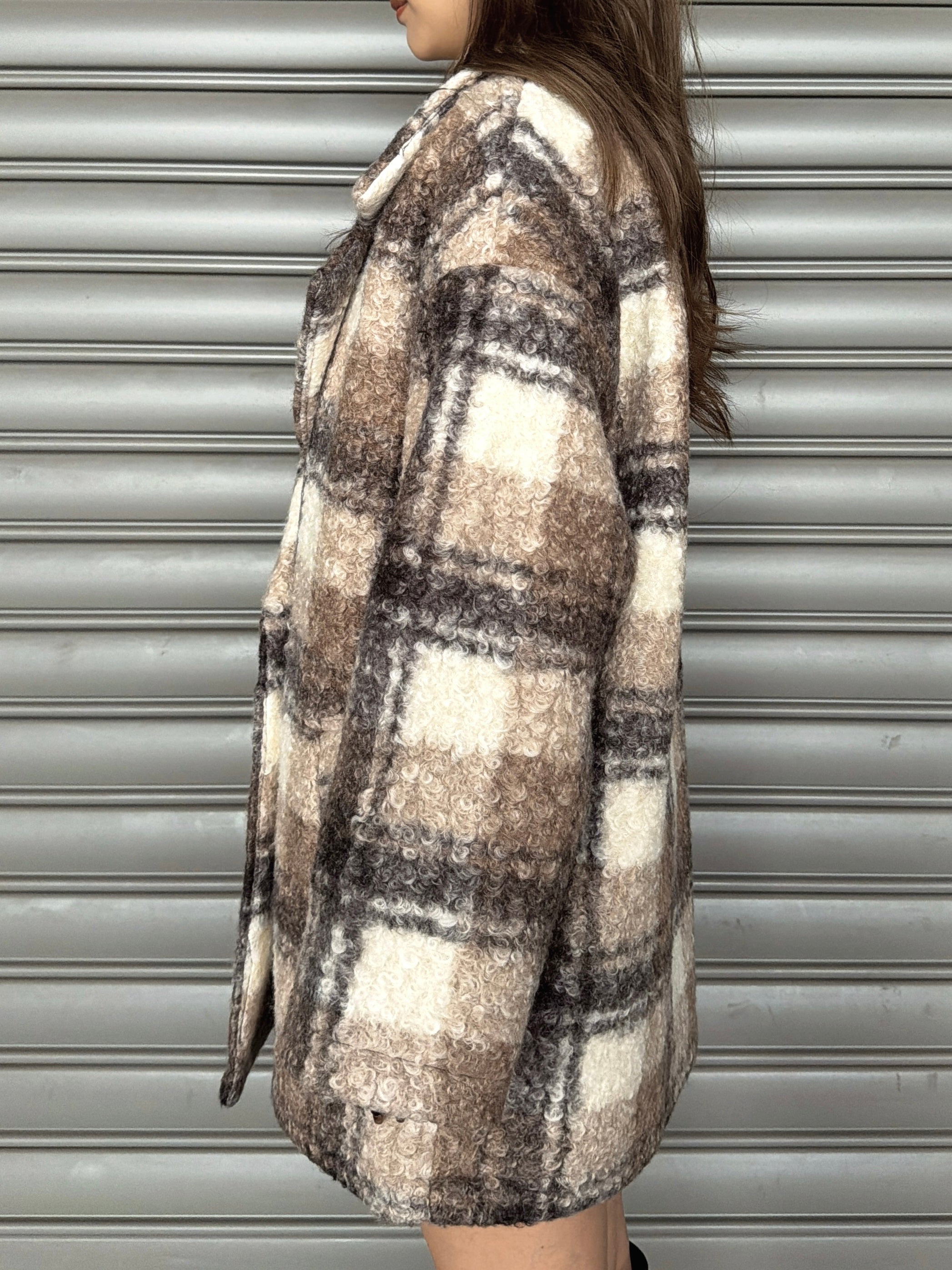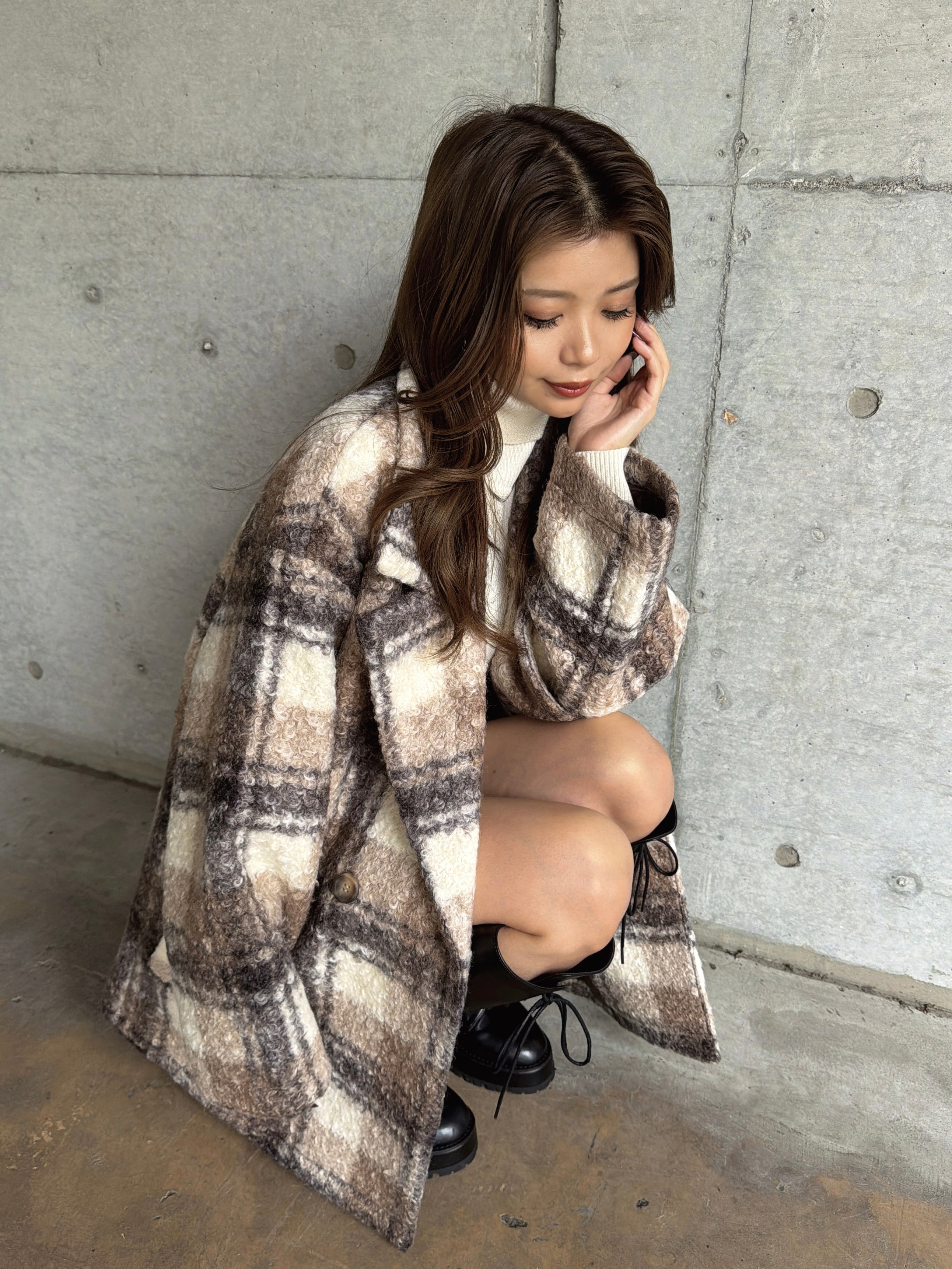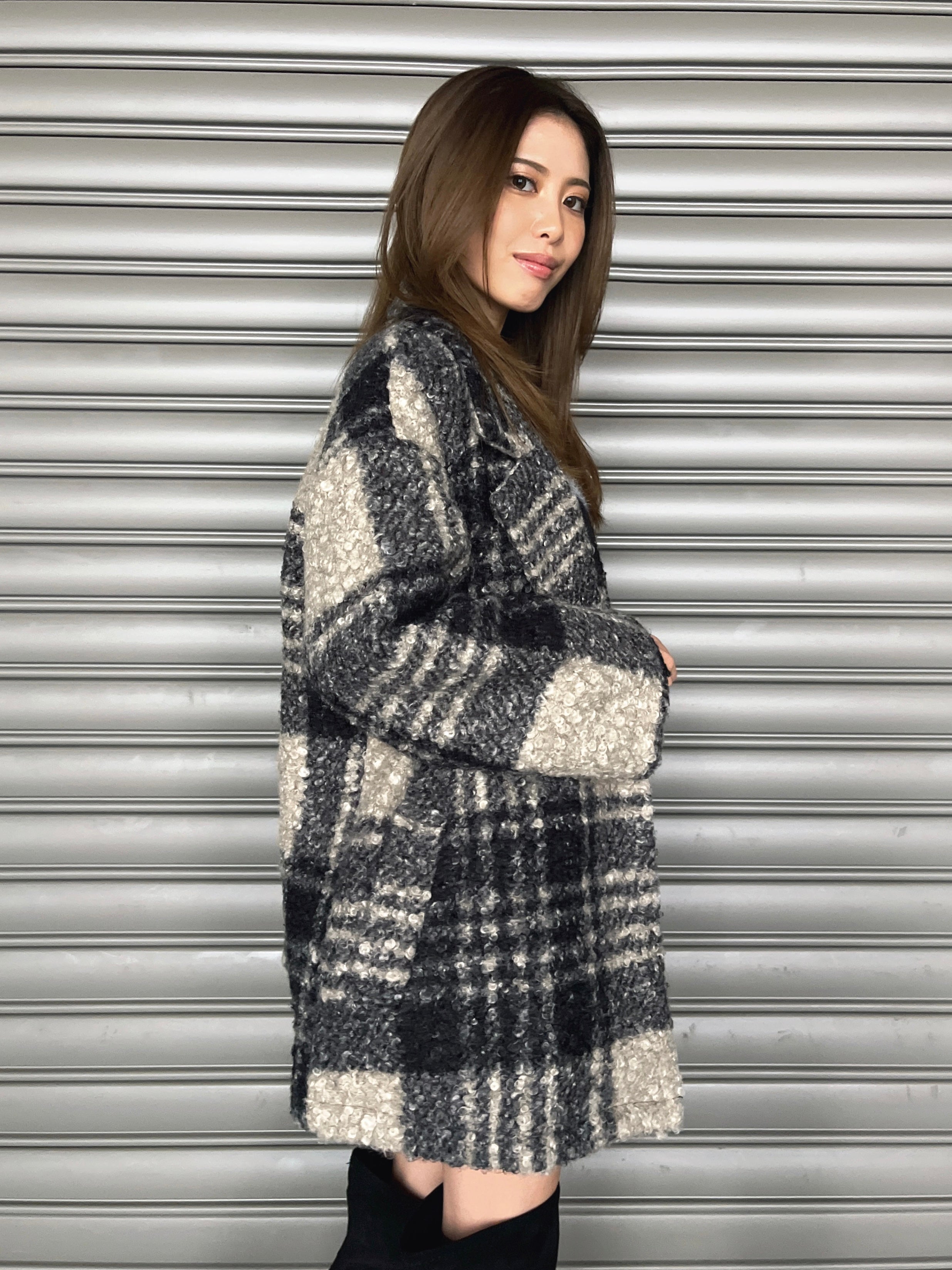 商品説明 大柄のチェック柄が目を惹くコートは膨らみ感があり、表面を起毛させた暖かみのある素材を使用。羽織るだけでサマになり、女性らしさを際立てます。ゆったりとしたサイジングながらもレディライクで大人な印象のシルエットを意識したデザインに仕上げました。大きめの衿で小顔効果も抜群。首元があくのでタートルネックのトップスやストールなどの合わせも◎袖回りもゆったりしているので厚手ニットの上からでも羽織りやすいです。ミドル丈なので冬のマストアイテムのロングブーツと相性が良いのも嬉しいポイント。柄もののアウターはシンプルなコーデにプラスするだけで一気にこなれ感がでます。