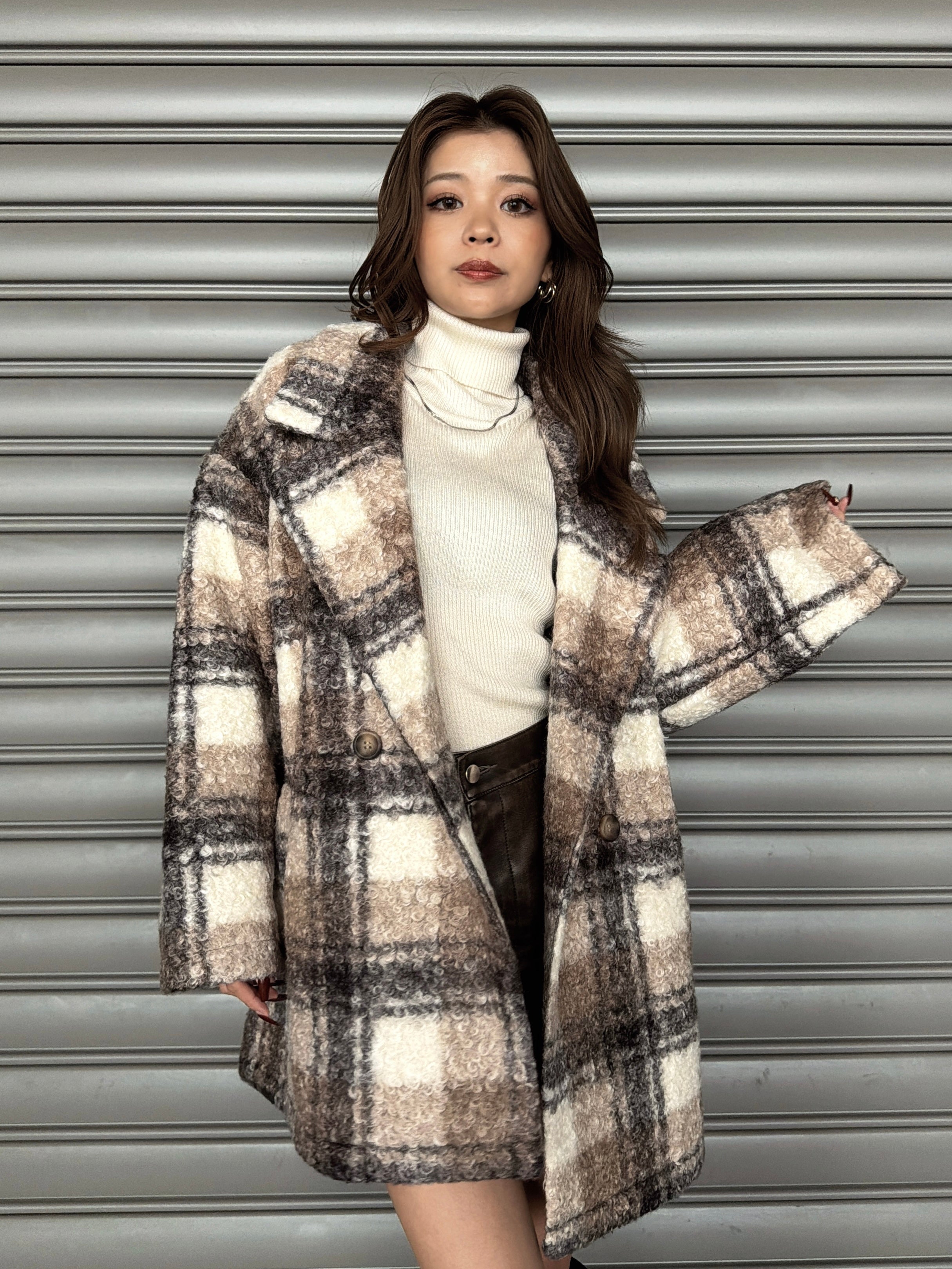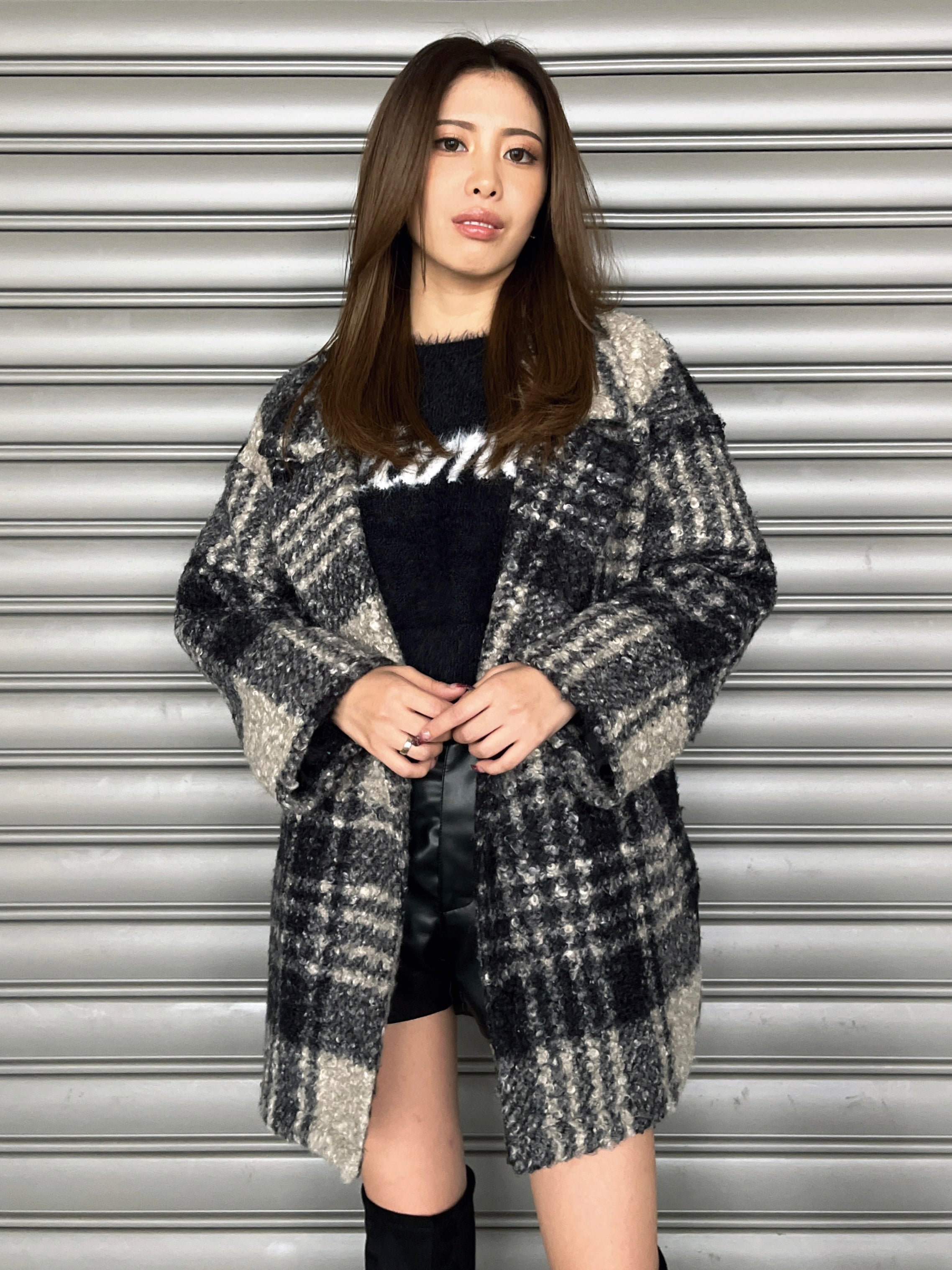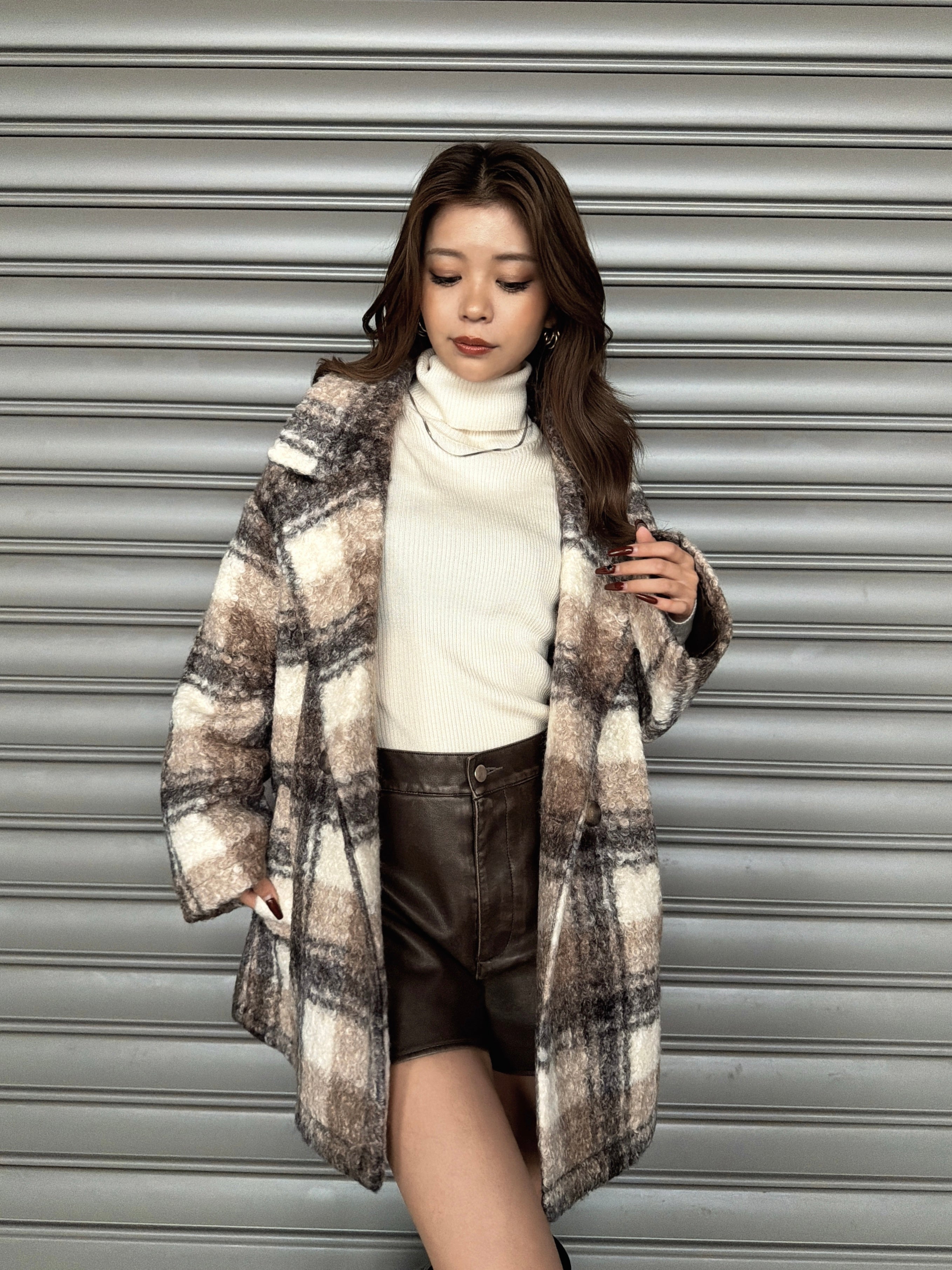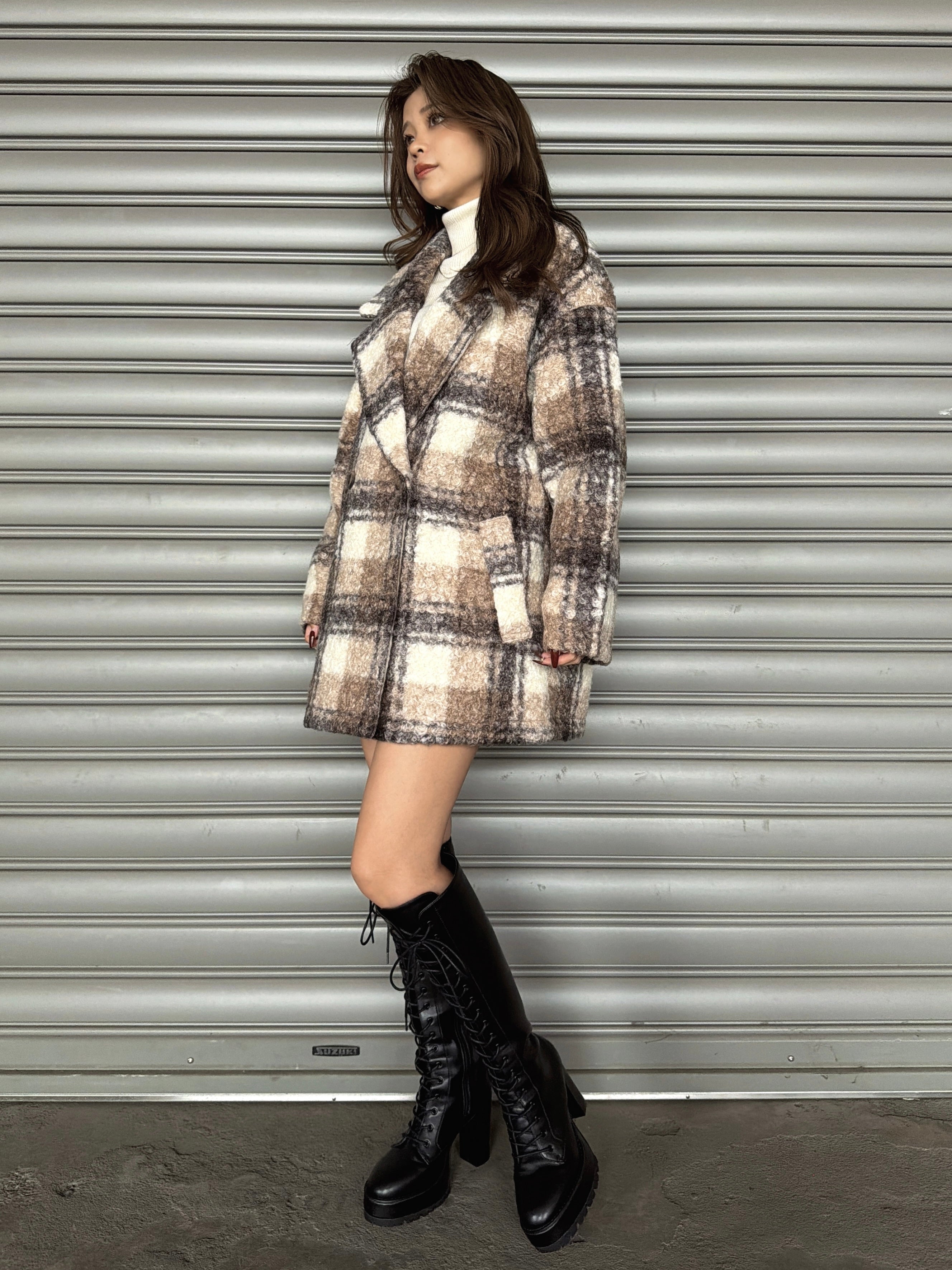 商品説明 大柄のチェック柄が目を惹くコートは膨らみ感があり、表面を起毛させた暖かみのある素材を使用。羽織るだけでサマになり、女性らしさを際立てます。ゆったりとしたサイジングながらもレディライクで大人な印象のシルエットを意識したデザインに仕上げました。大きめの衿で小顔効果も抜群。首元があくのでタートルネックのトップスやストールなどの合わせも◎袖回りもゆったりしているので厚手ニットの上からでも羽織りやすいです。ミドル丈なので冬のマストアイテムのロングブーツと相性が良いのも嬉しいポイント。柄もののアウターはシンプルなコーデにプラスするだけで一気にこなれ感がでます。