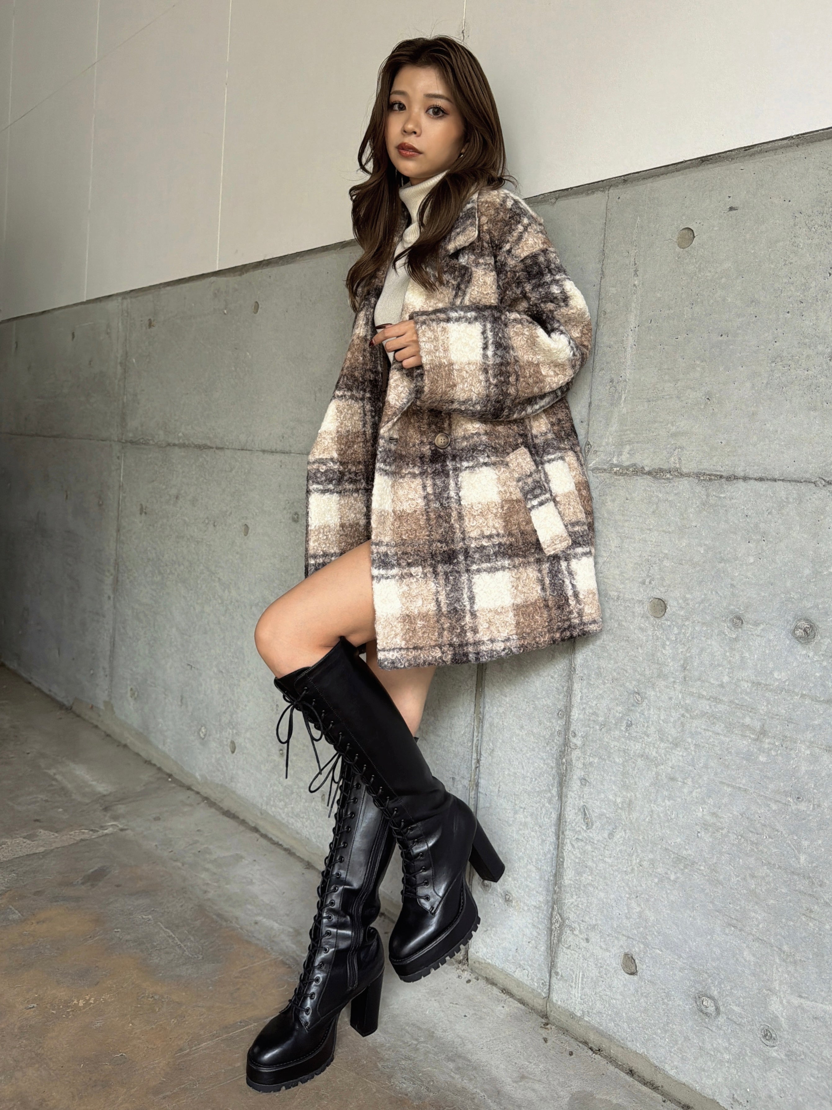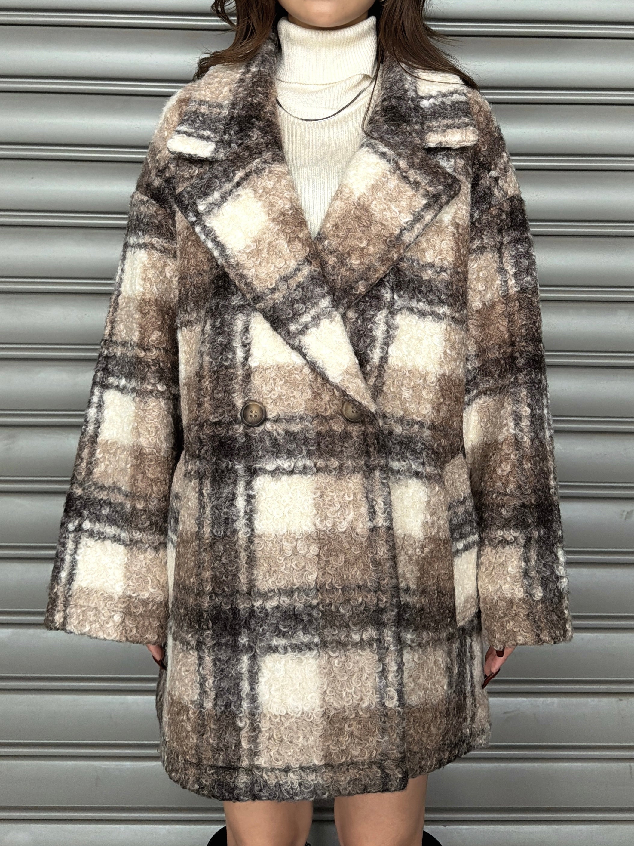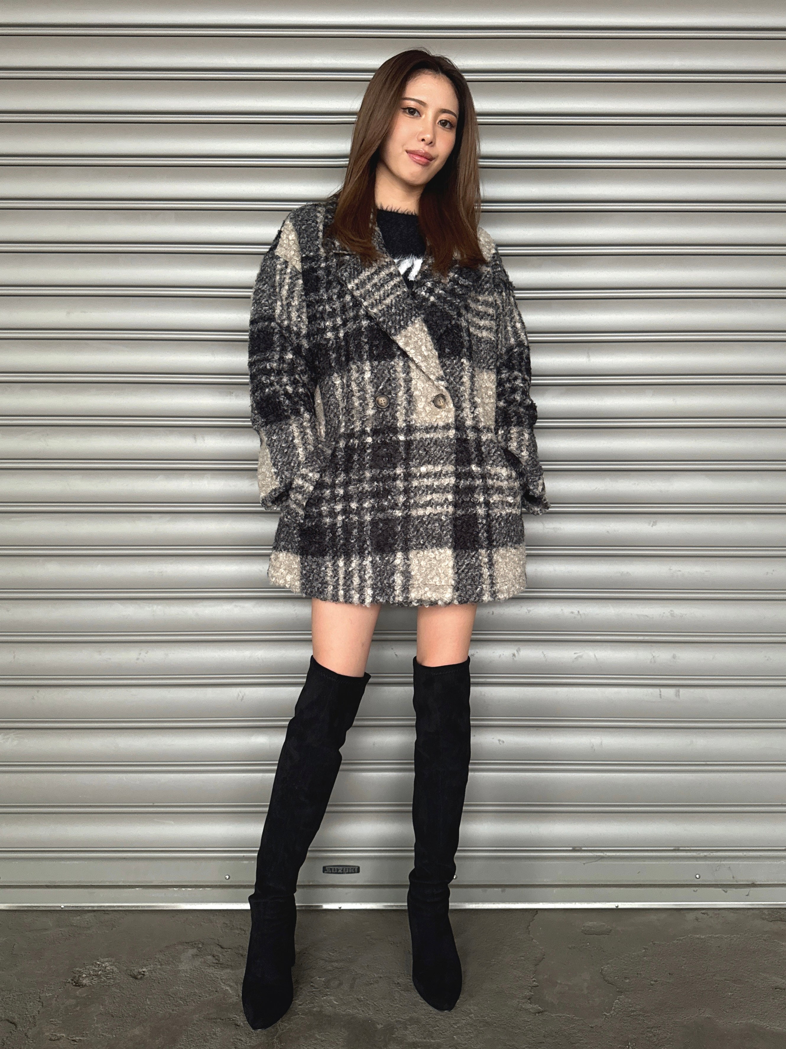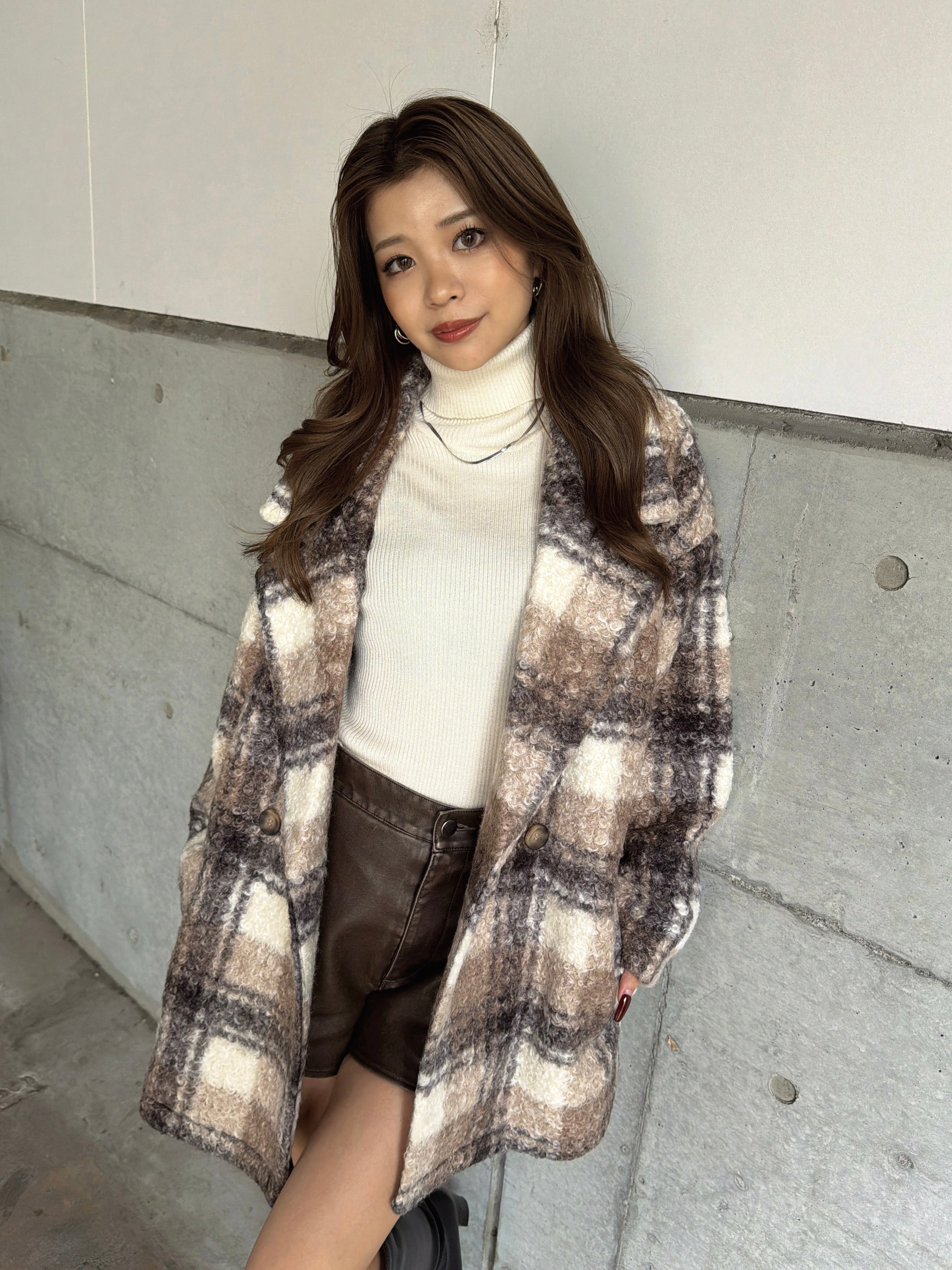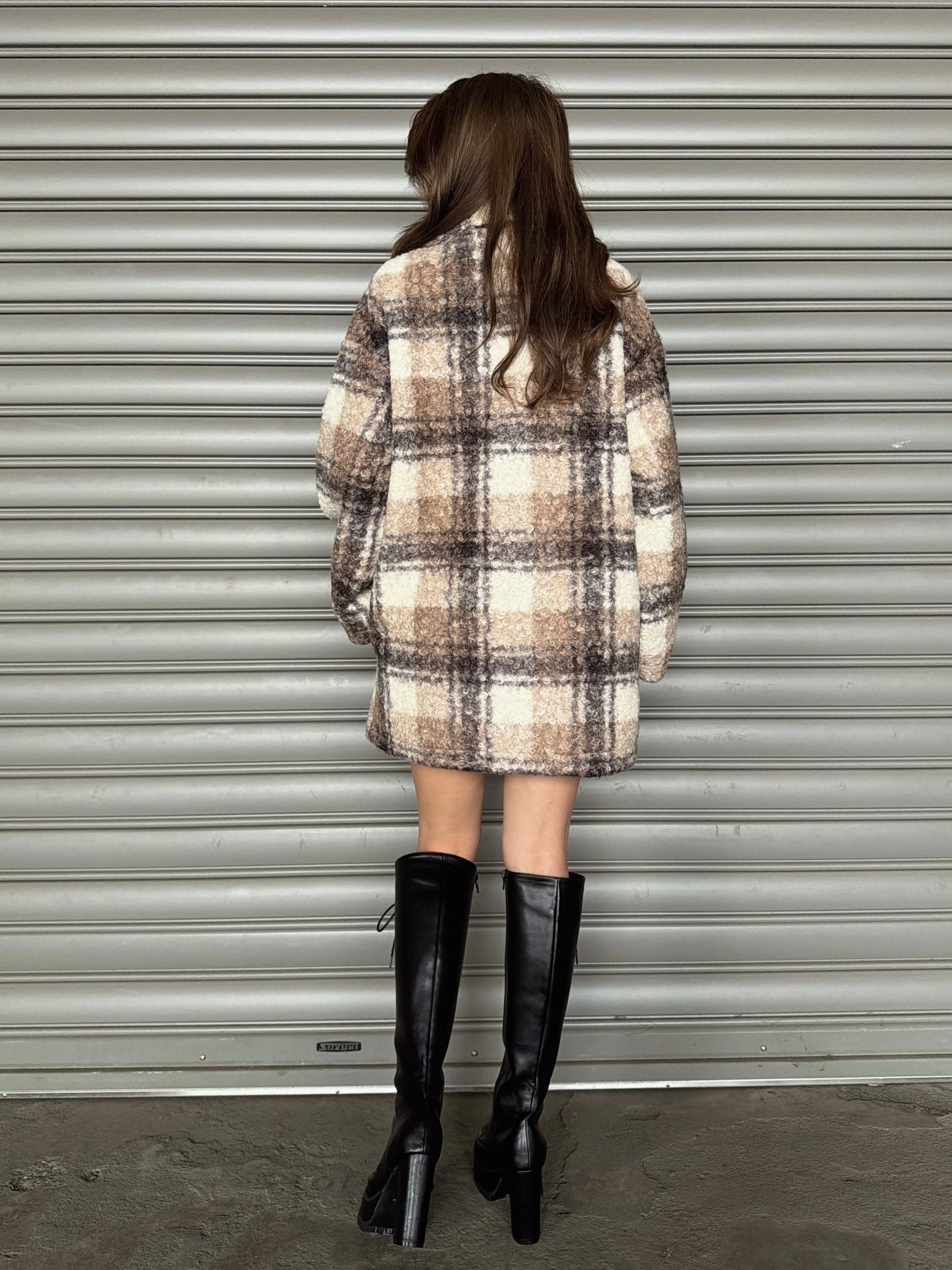 商品説明 大柄のチェック柄が目を惹くコートは膨らみ感があり、表面を起毛させた暖かみのある素材を使用。羽織るだけでサマになり、女性らしさを際立てます。ゆったりとしたサイジングながらもレディライクで大人な印象のシルエットを意識したデザインに仕上げました。大きめの衿で小顔効果も抜群。首元があくのでタートルネックのトップスやストールなどの合わせも◎袖回りもゆったりしているので厚手ニットの上からでも羽織りやすいです。ミドル丈なので冬のマストアイテムのロングブーツと相性が良いのも嬉しいポイント。柄もののアウターはシンプルなコーデにプラスするだけで一気にこなれ感がでます。