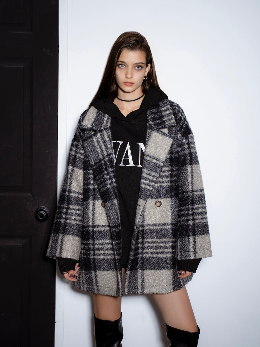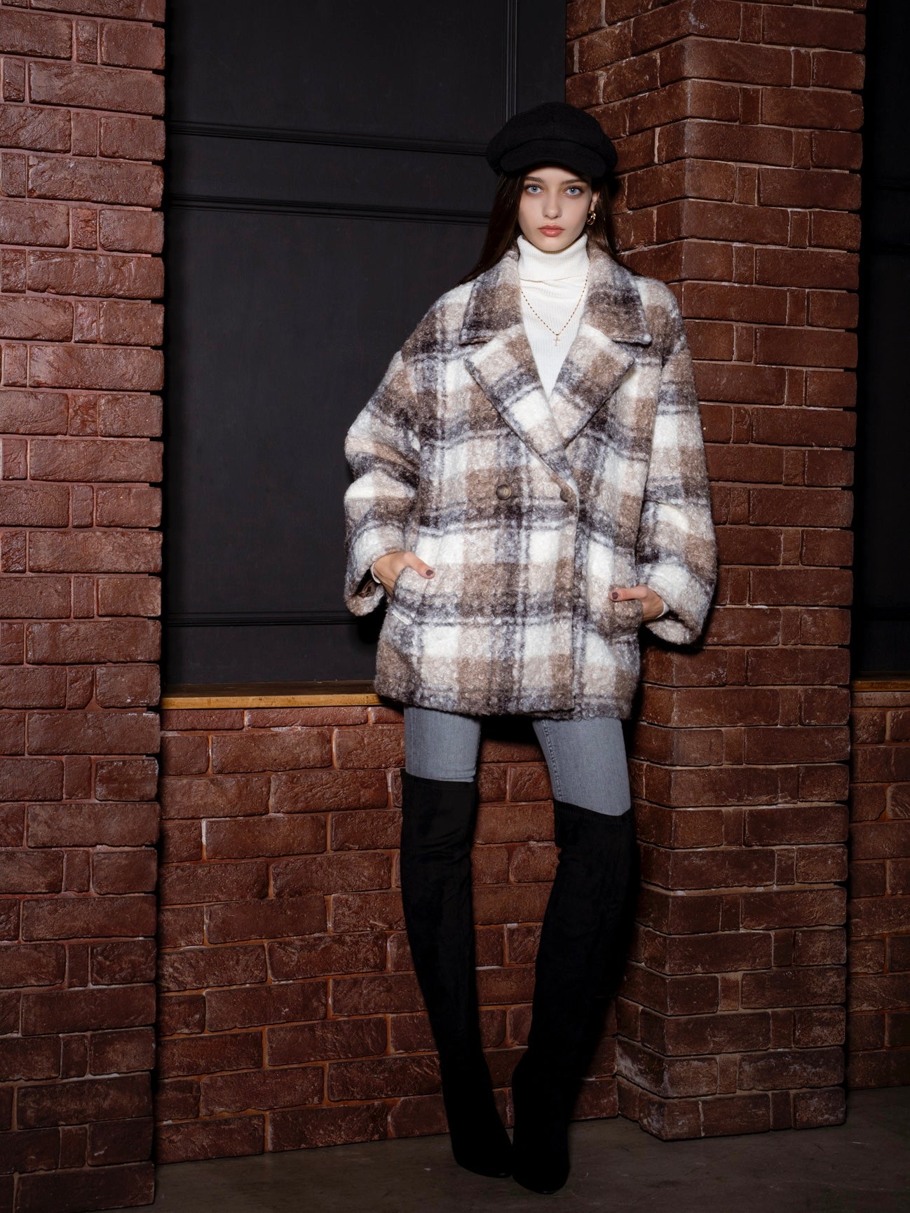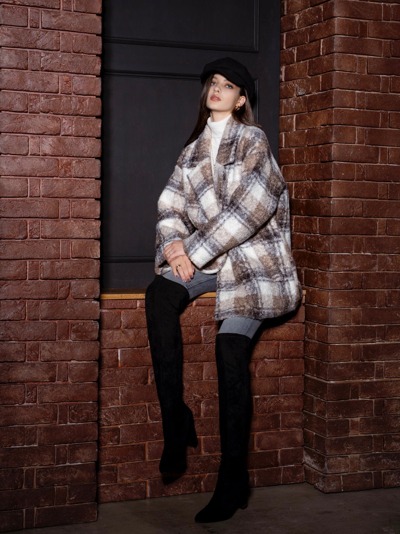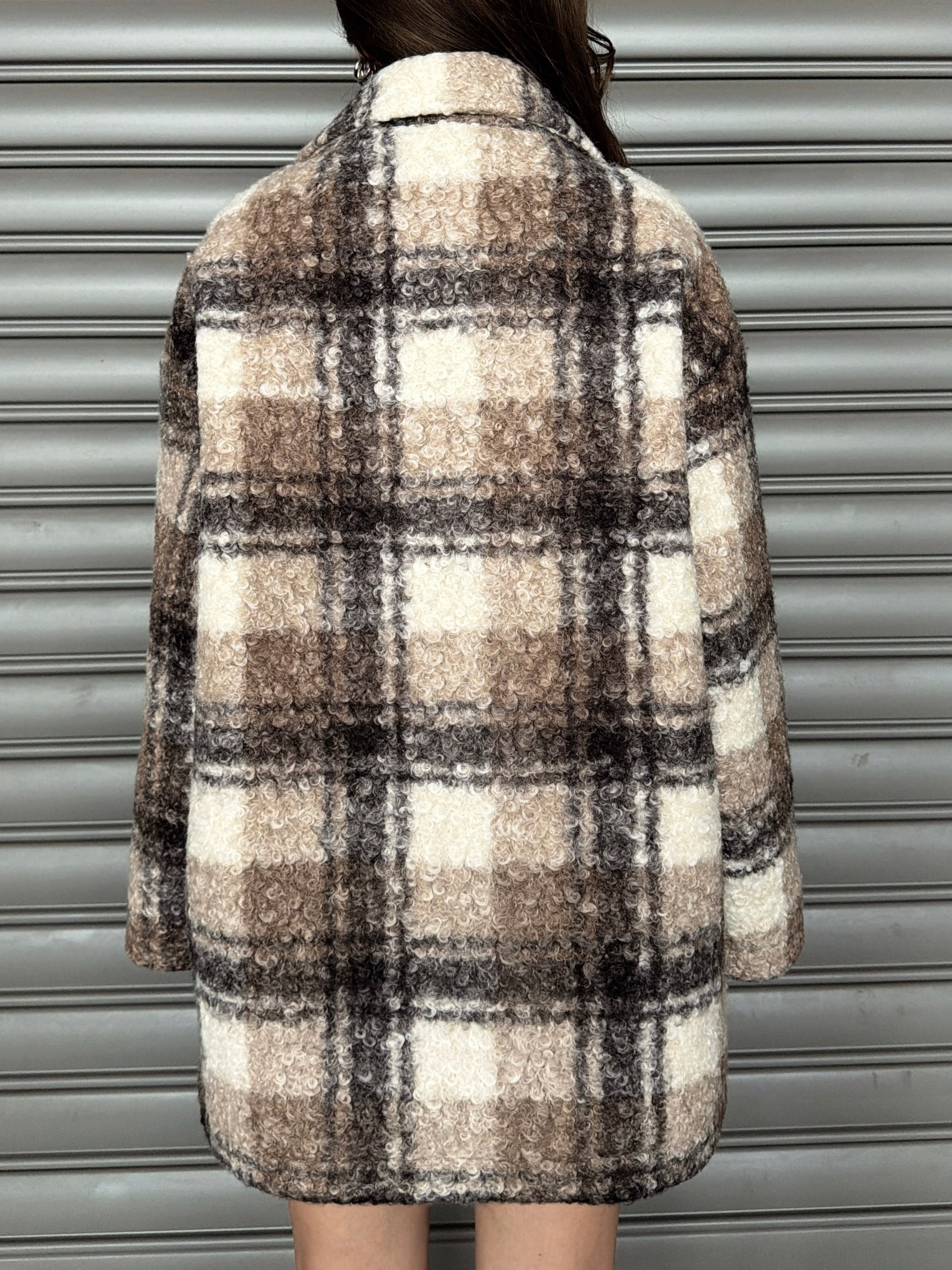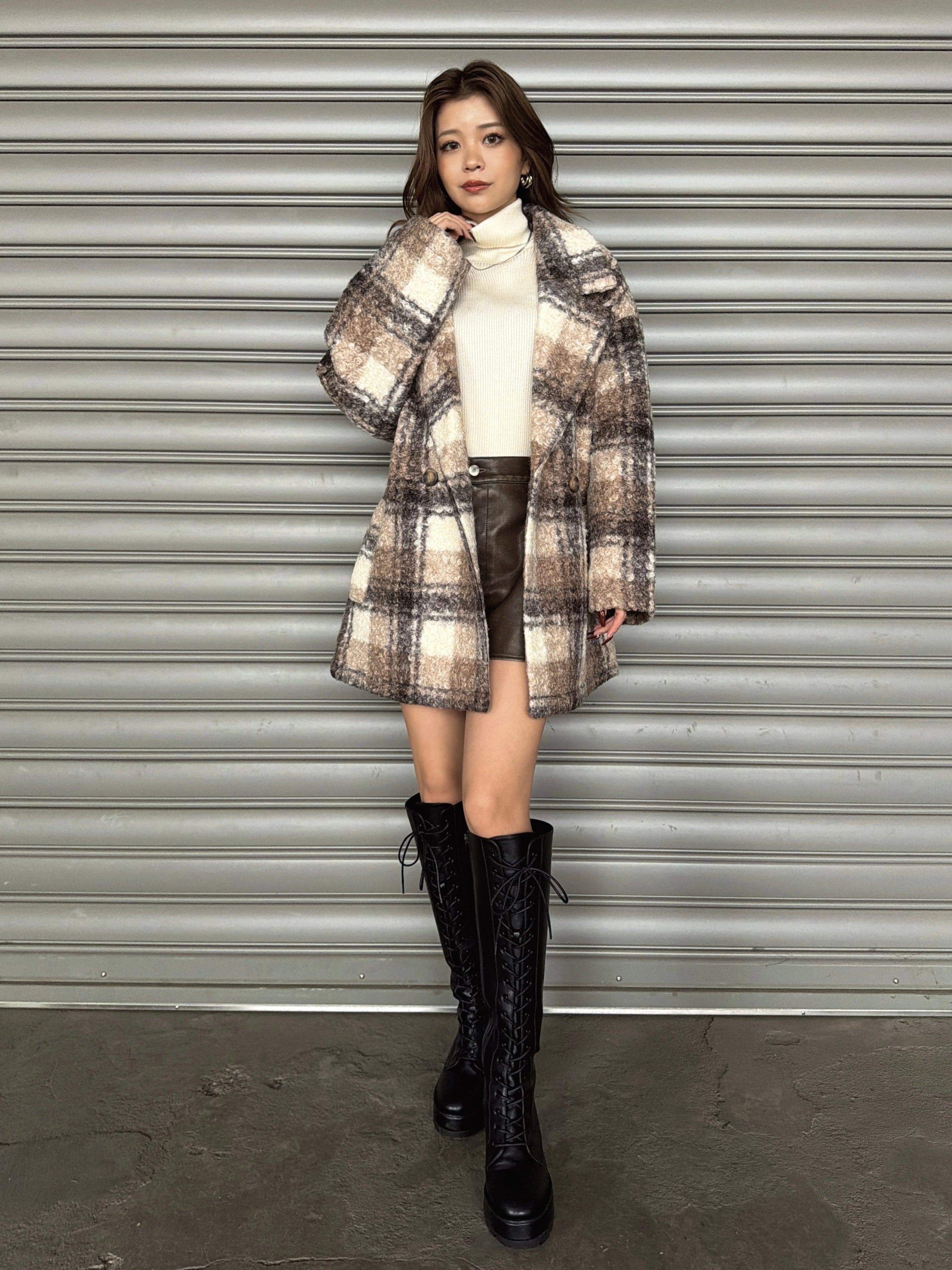 商品説明 大柄のチェック柄が目を惹くコートは膨らみ感があり、表面を起毛させた暖かみのある素材を使用。羽織るだけでサマになり、女性らしさを際立てます。ゆったりとしたサイジングながらもレディライクで大人な印象のシルエットを意識したデザインに仕上げました。大きめの衿で小顔効果も抜群。首元があくのでタートルネックのトップスやストールなどの合わせも◎袖回りもゆったりしているので厚手ニットの上からでも羽織りやすいです。ミドル丈なので冬のマストアイテムのロングブーツと相性が良いのも嬉しいポイント。柄もののアウターはシンプルなコーデにプラスするだけで一気にこなれ感がでます。