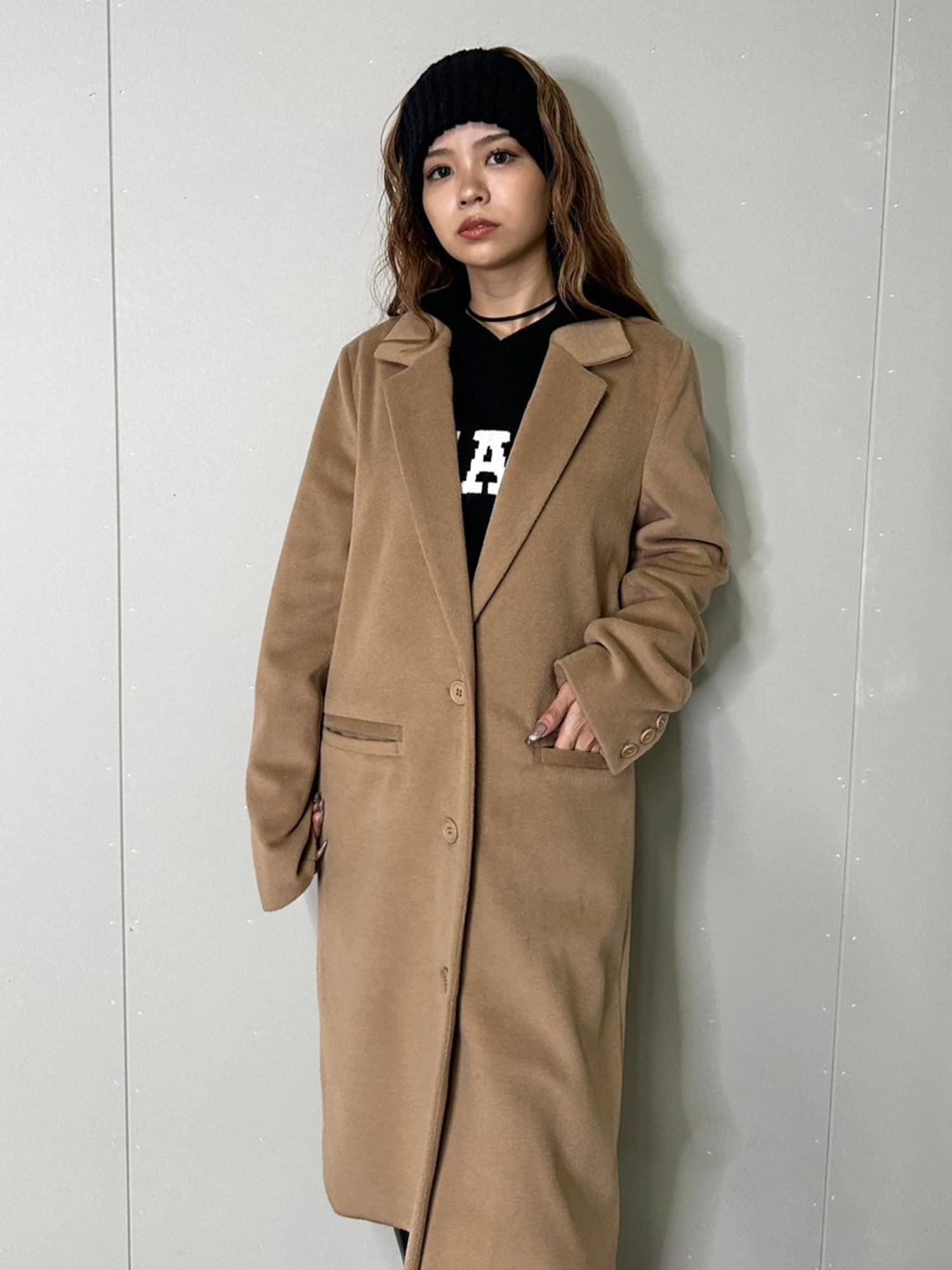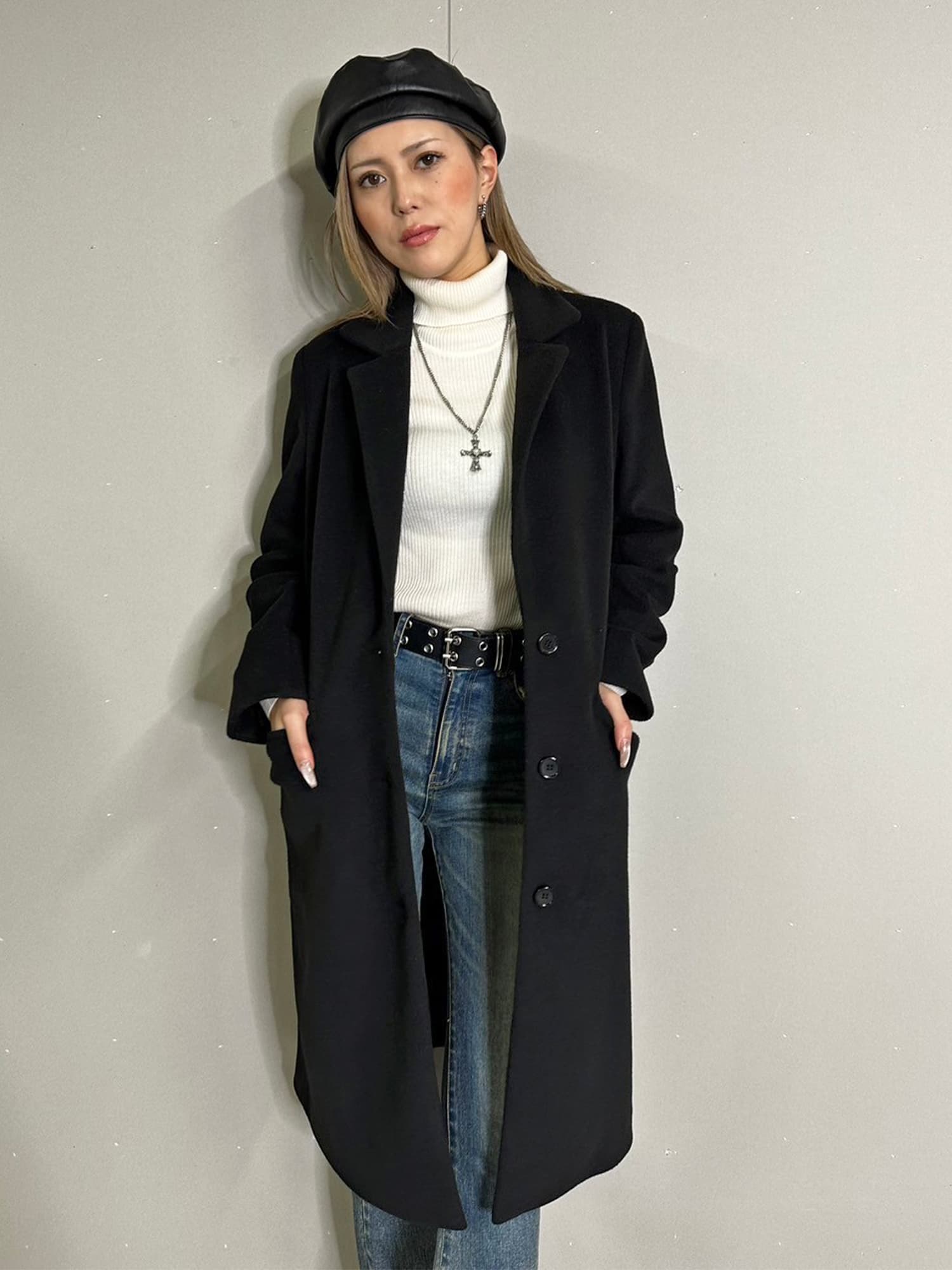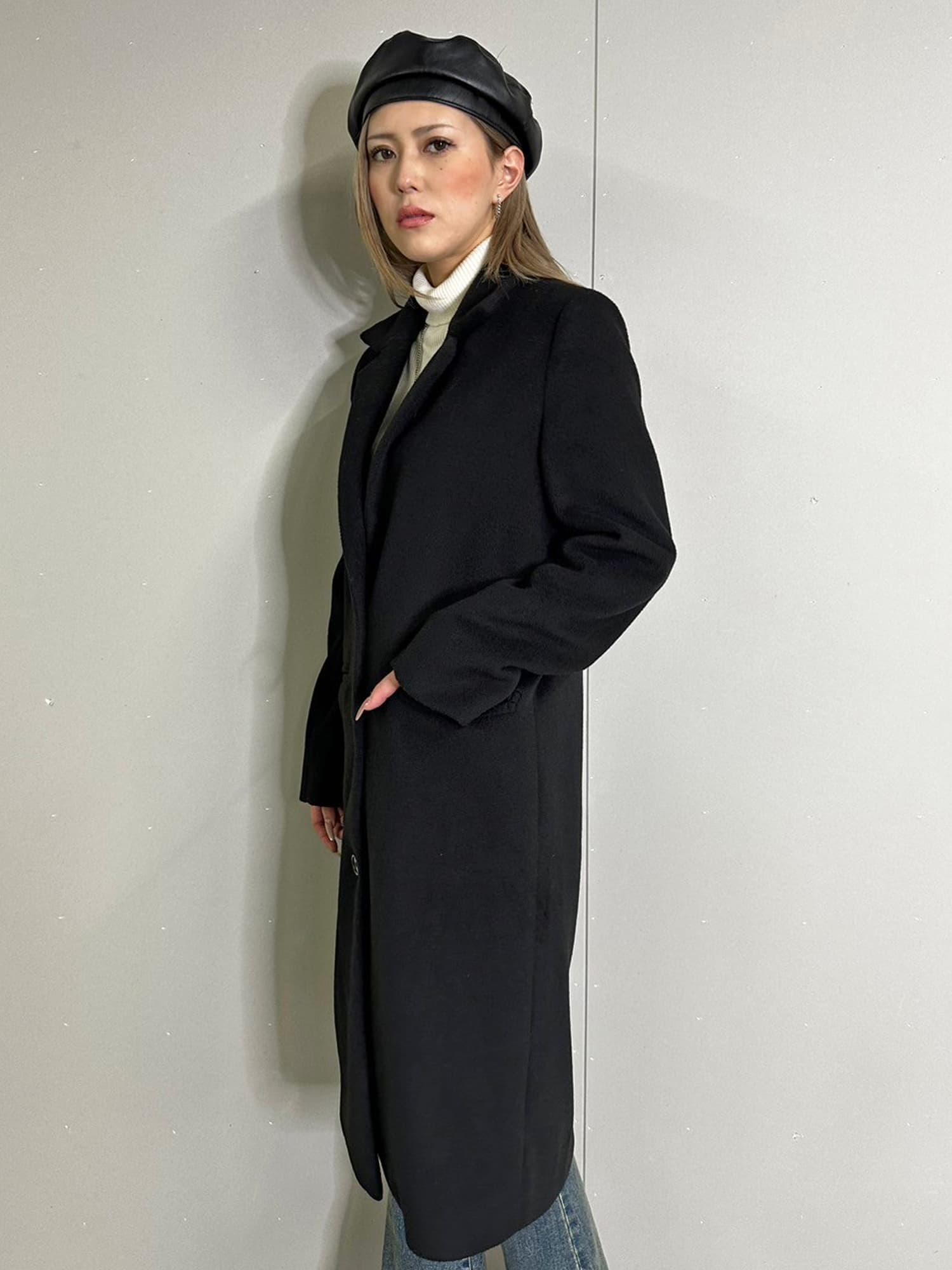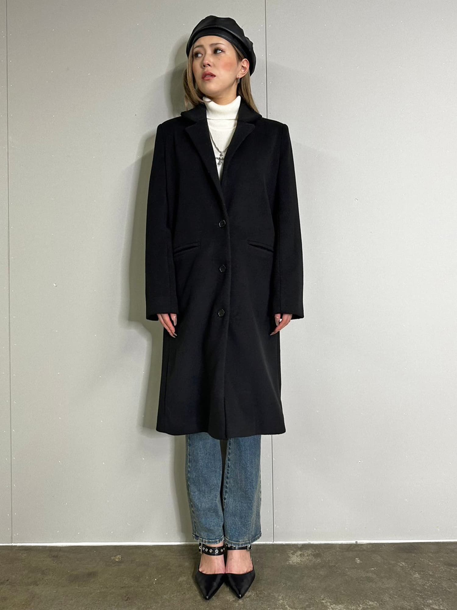Iラインを綺麗に見せてくれるので、タイトなインナーでスタイリッシュに着こなすのがマスト。