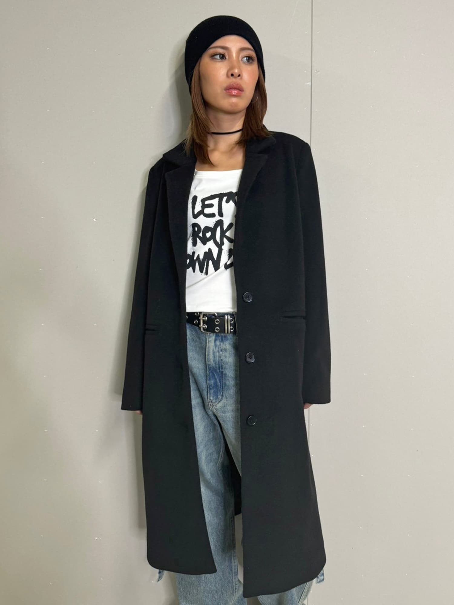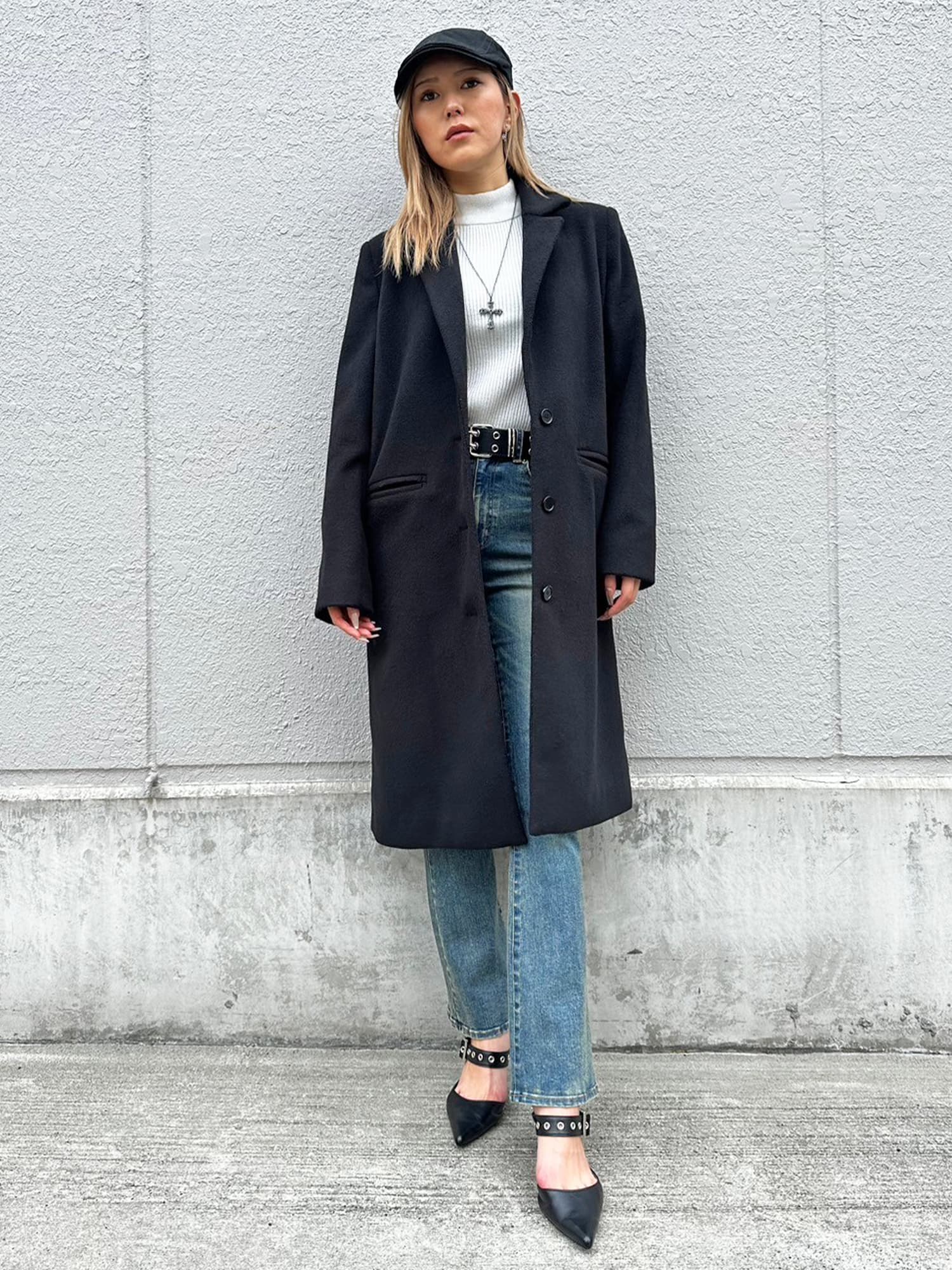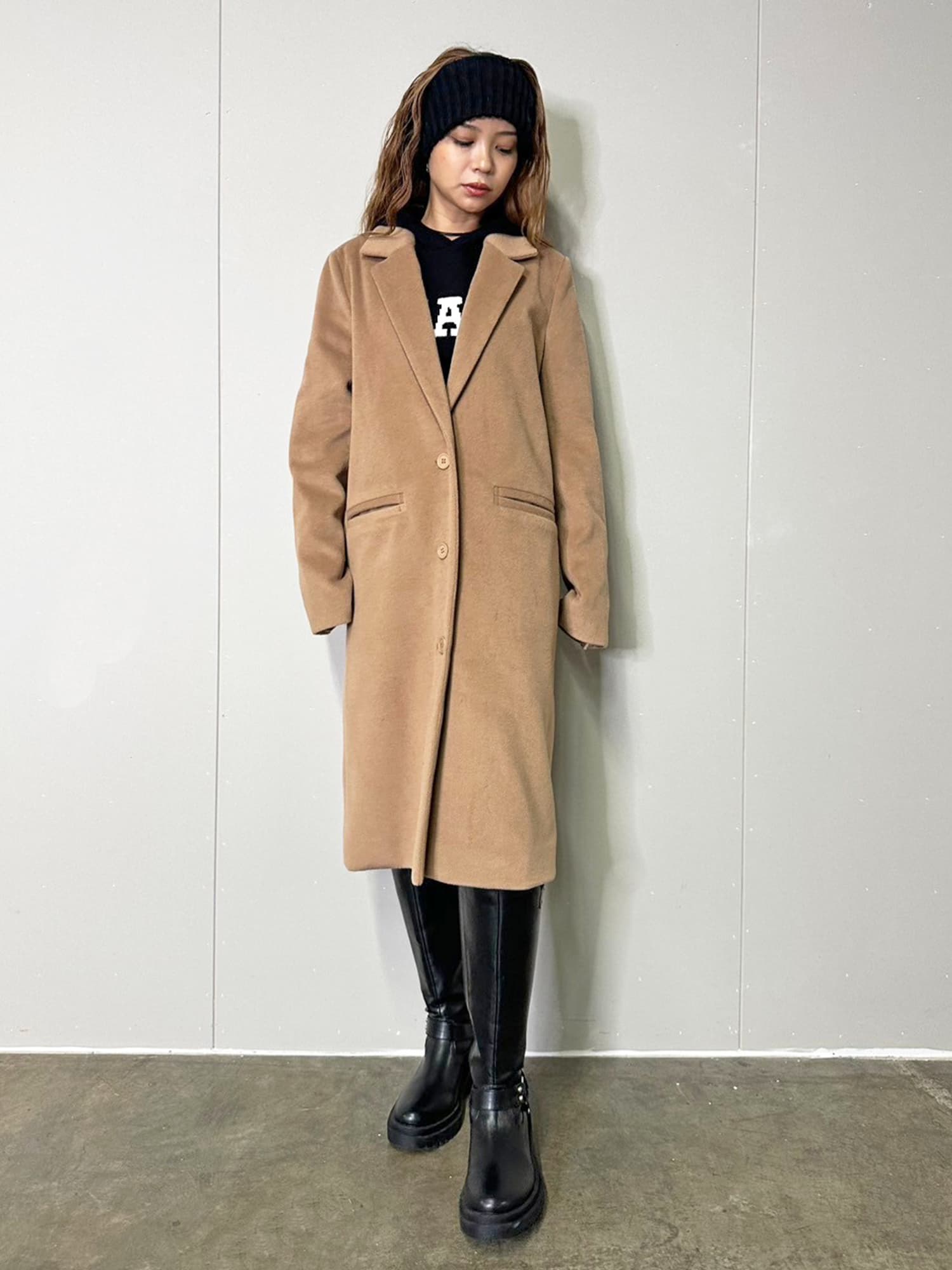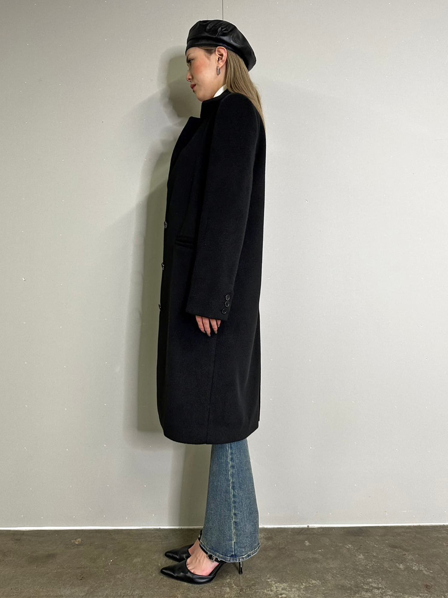 Iラインを綺麗に見せてくれるので、タイトなインナーでスタイリッシュに着こなすのがマスト。