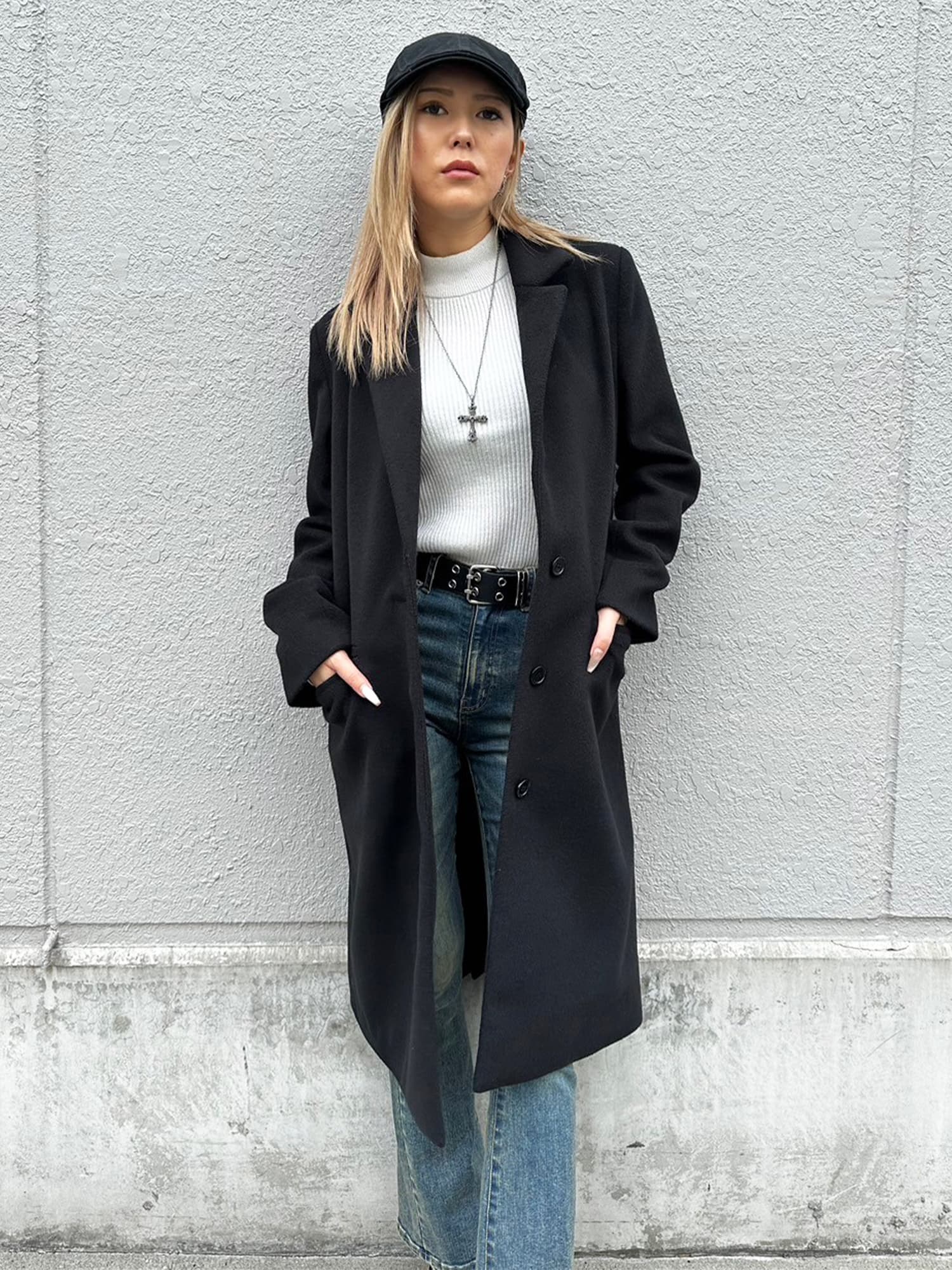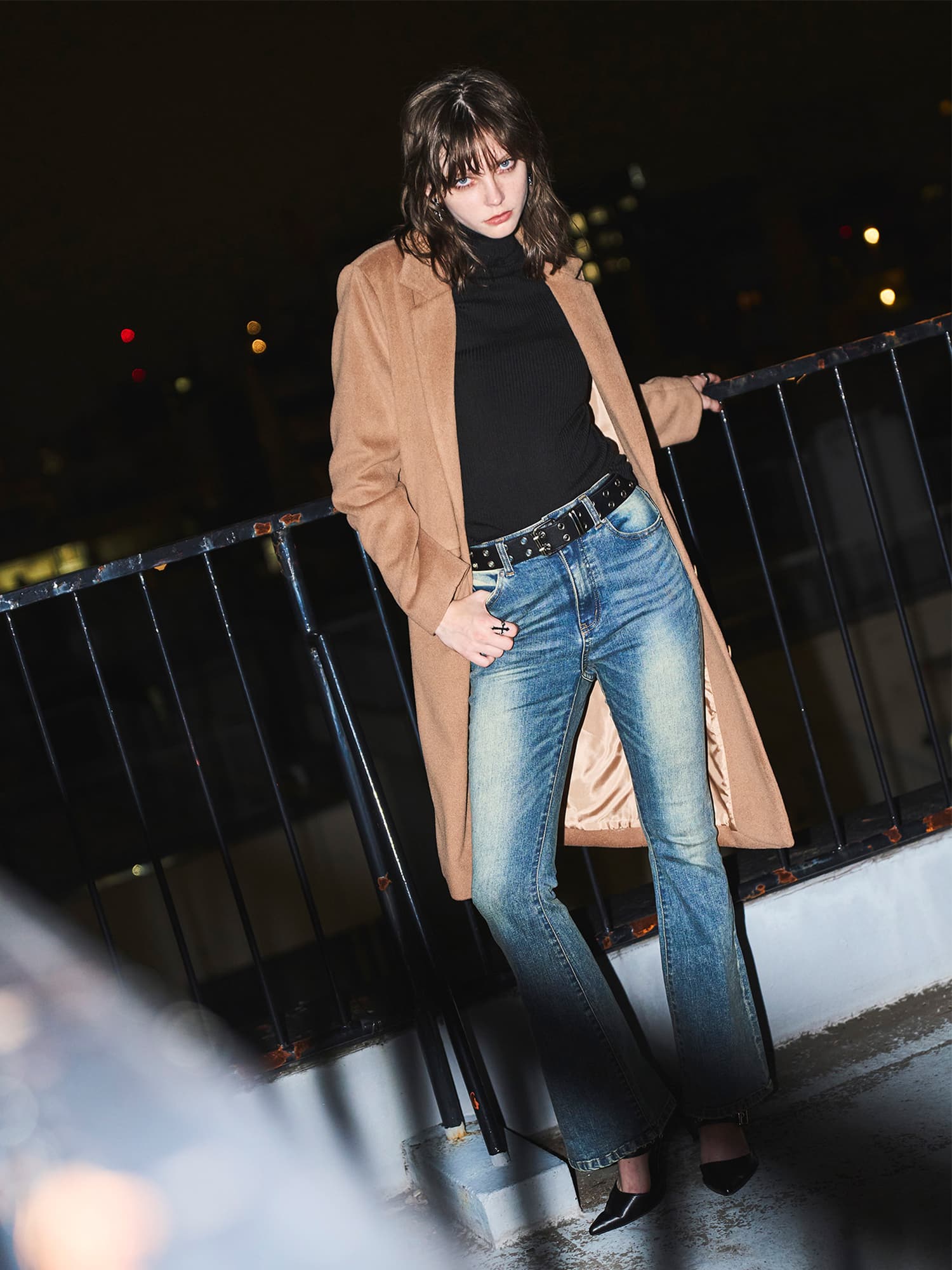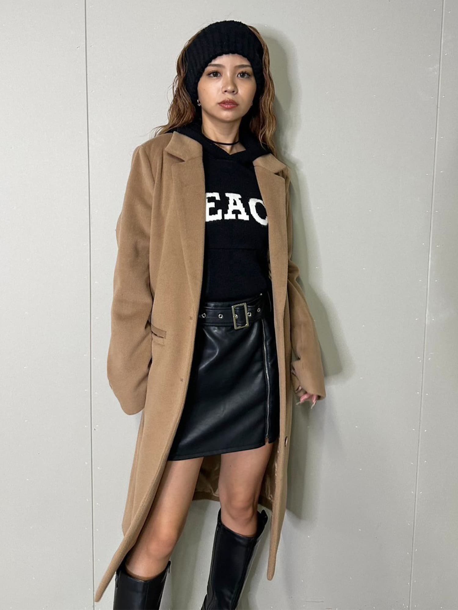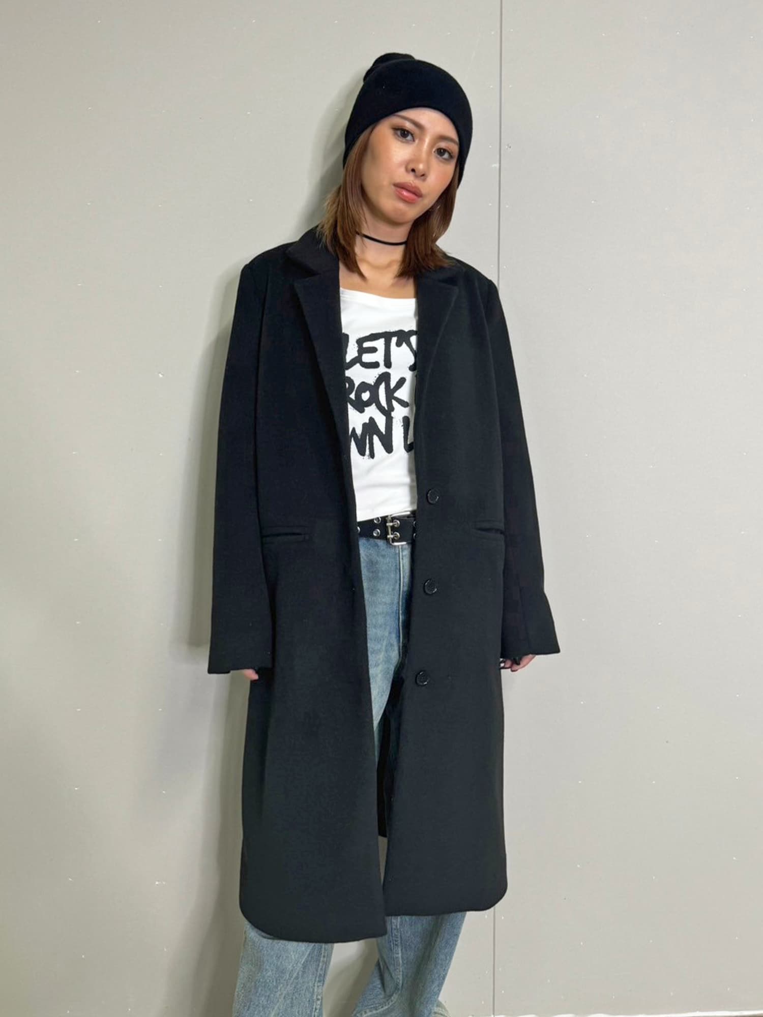 Iラインを綺麗に見せてくれるので、タイトなインナーでスタイリッシュに着こなすのがマスト。