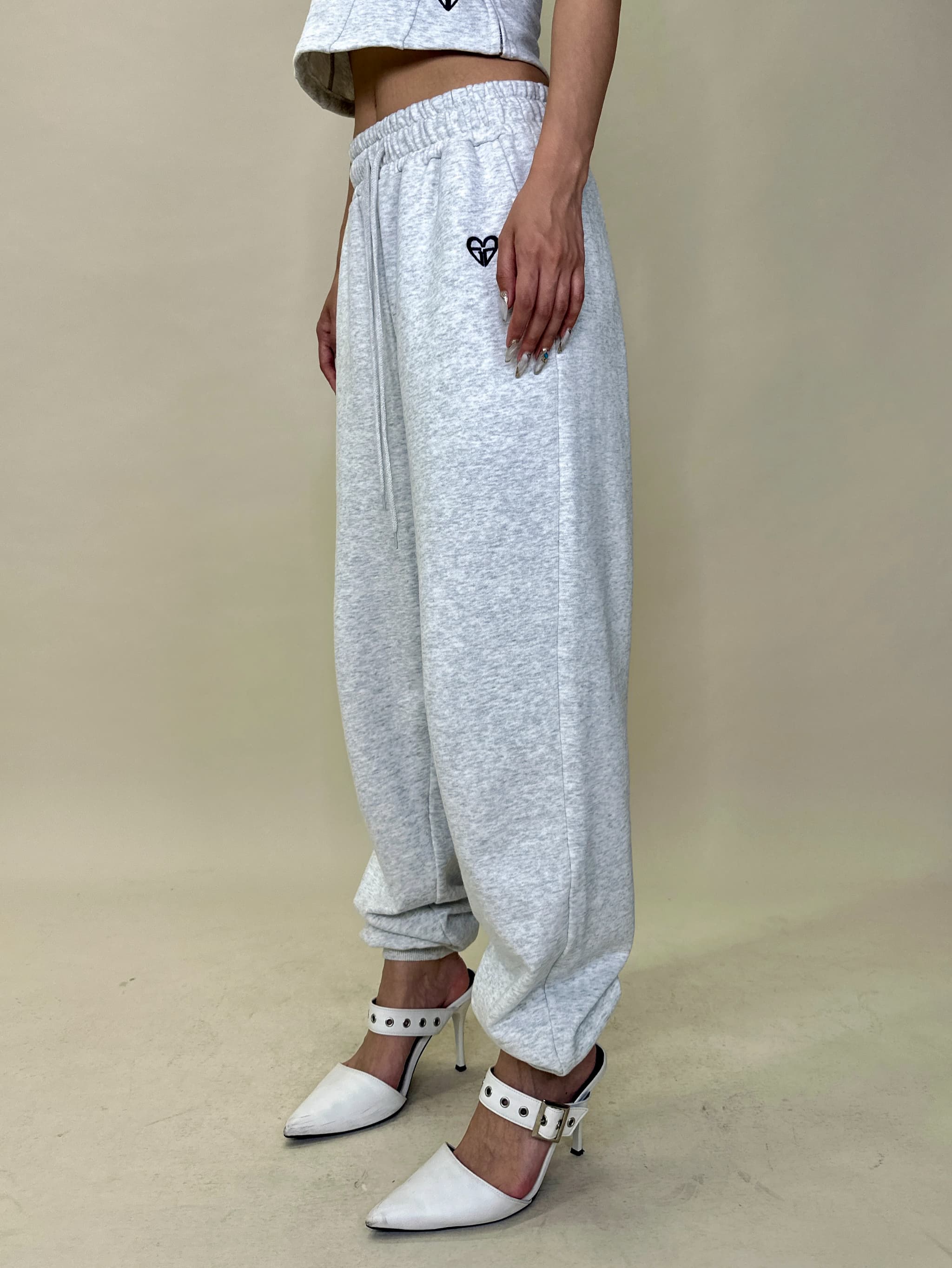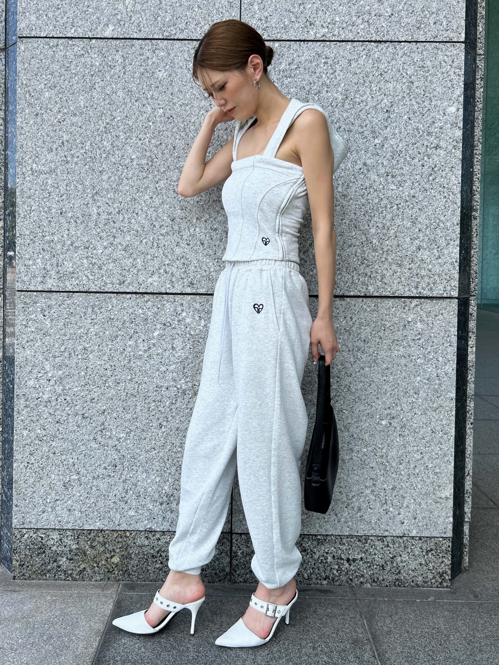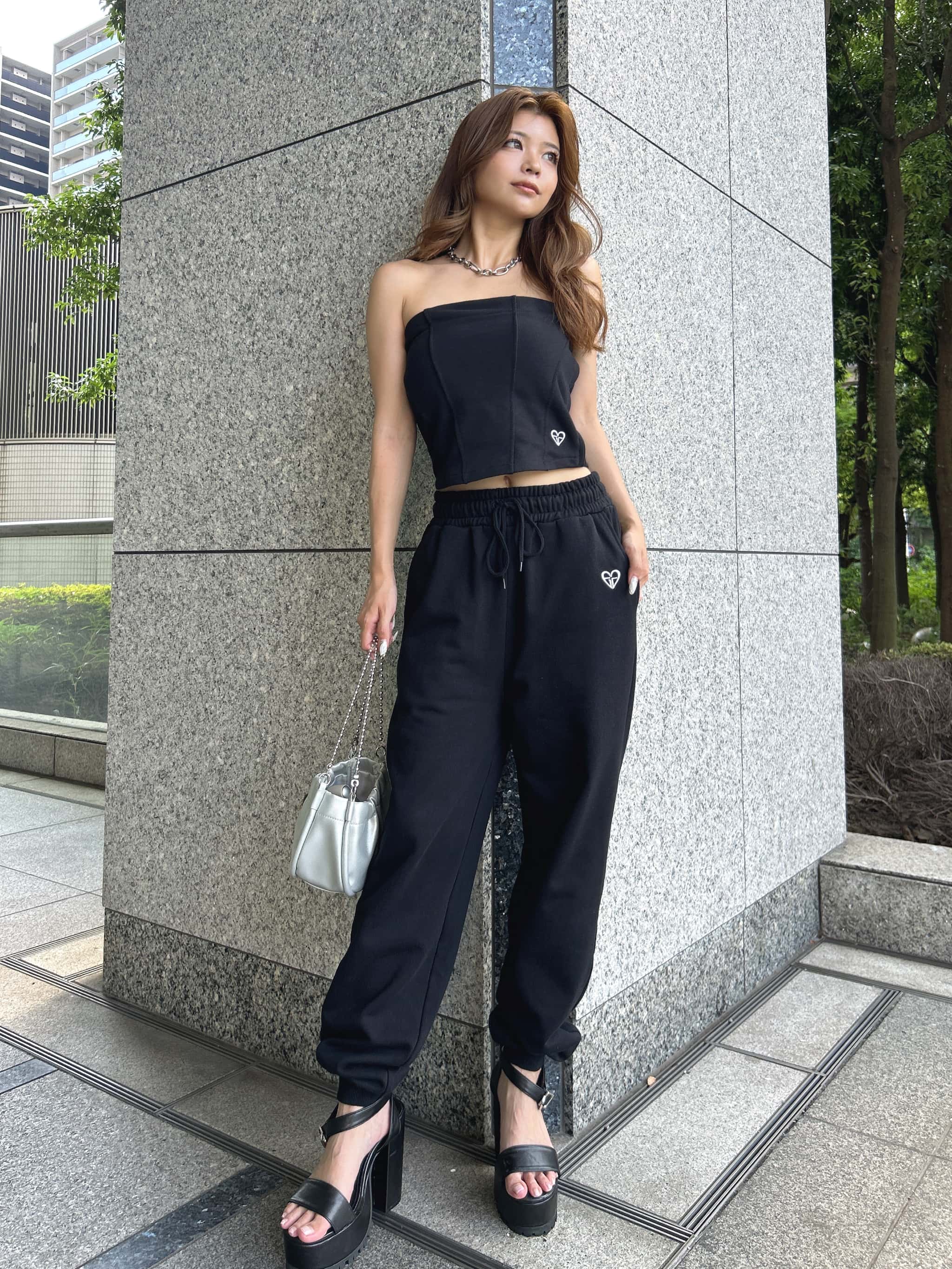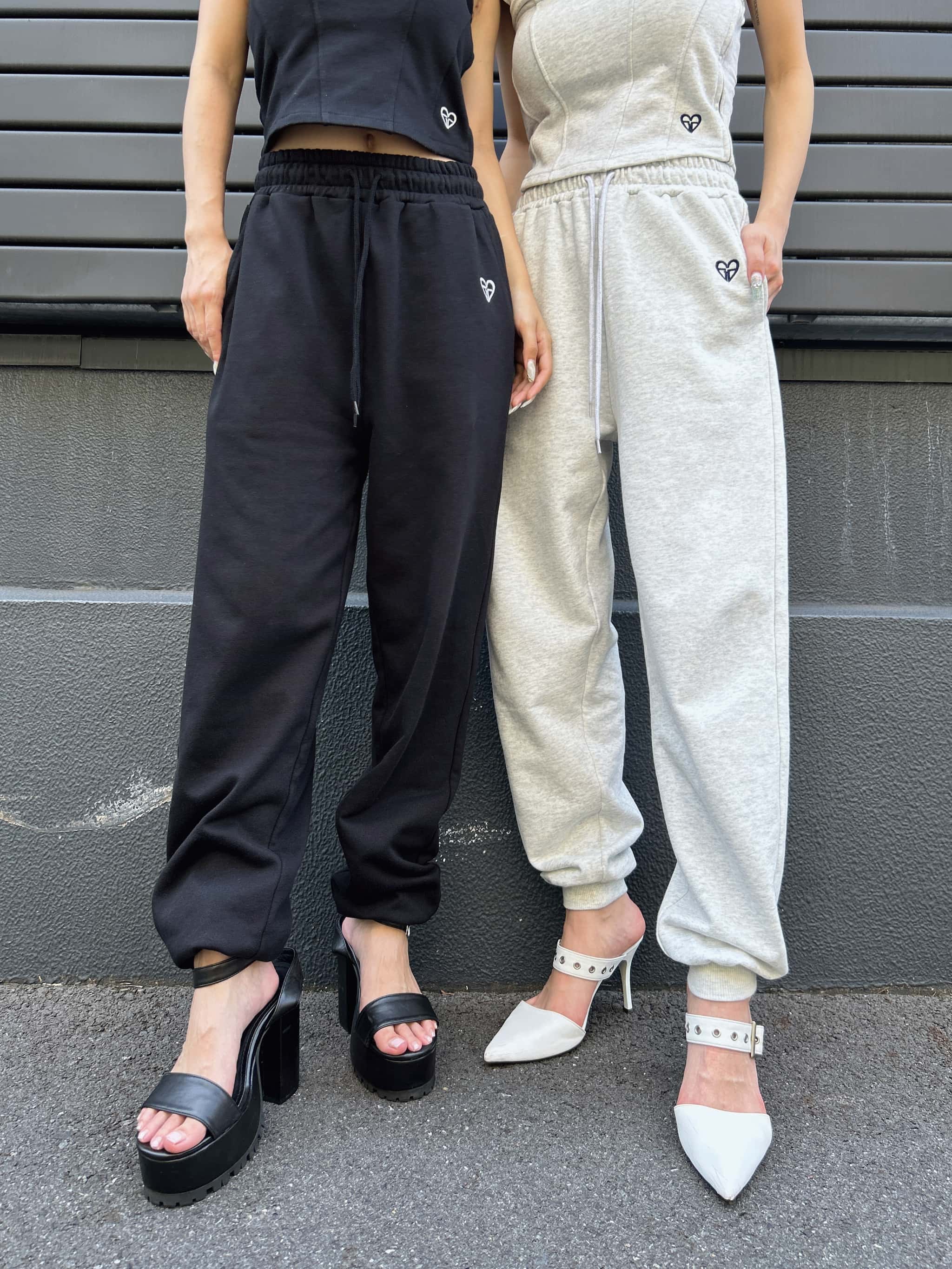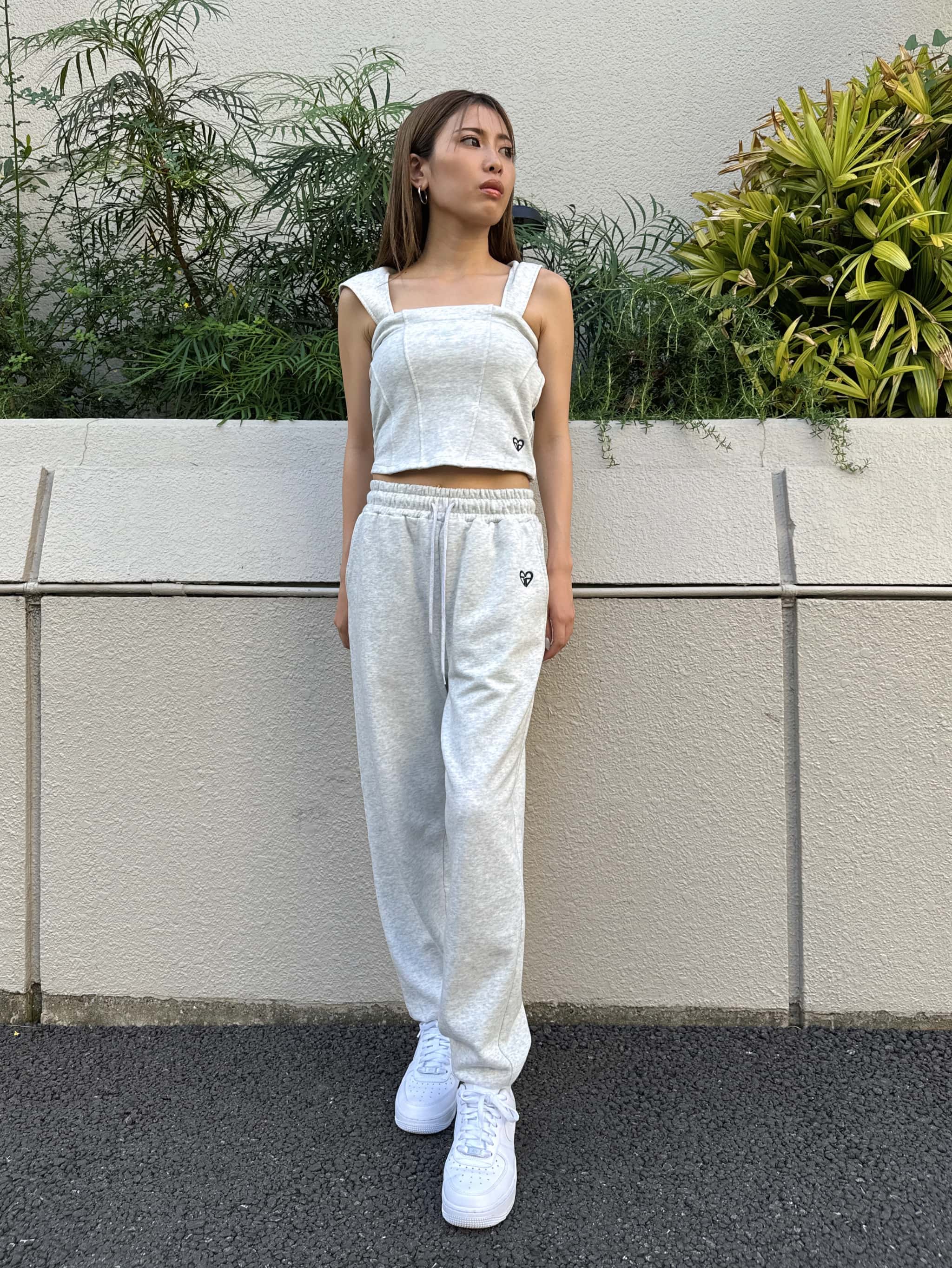 商品説明 左脇のオリジナルHEARTロゴ刺繍がワンポイントになった裏毛ジョガーパンツ。