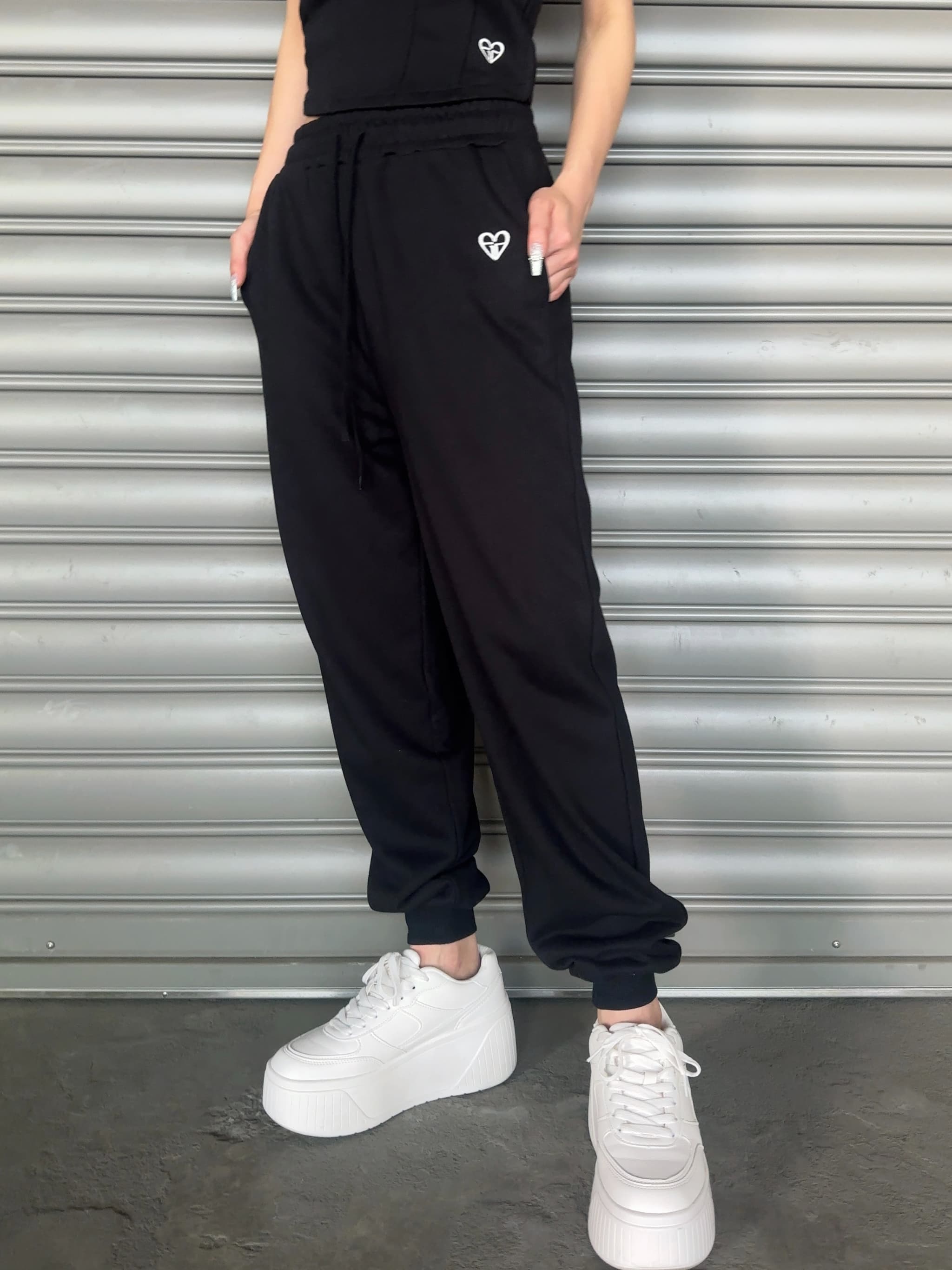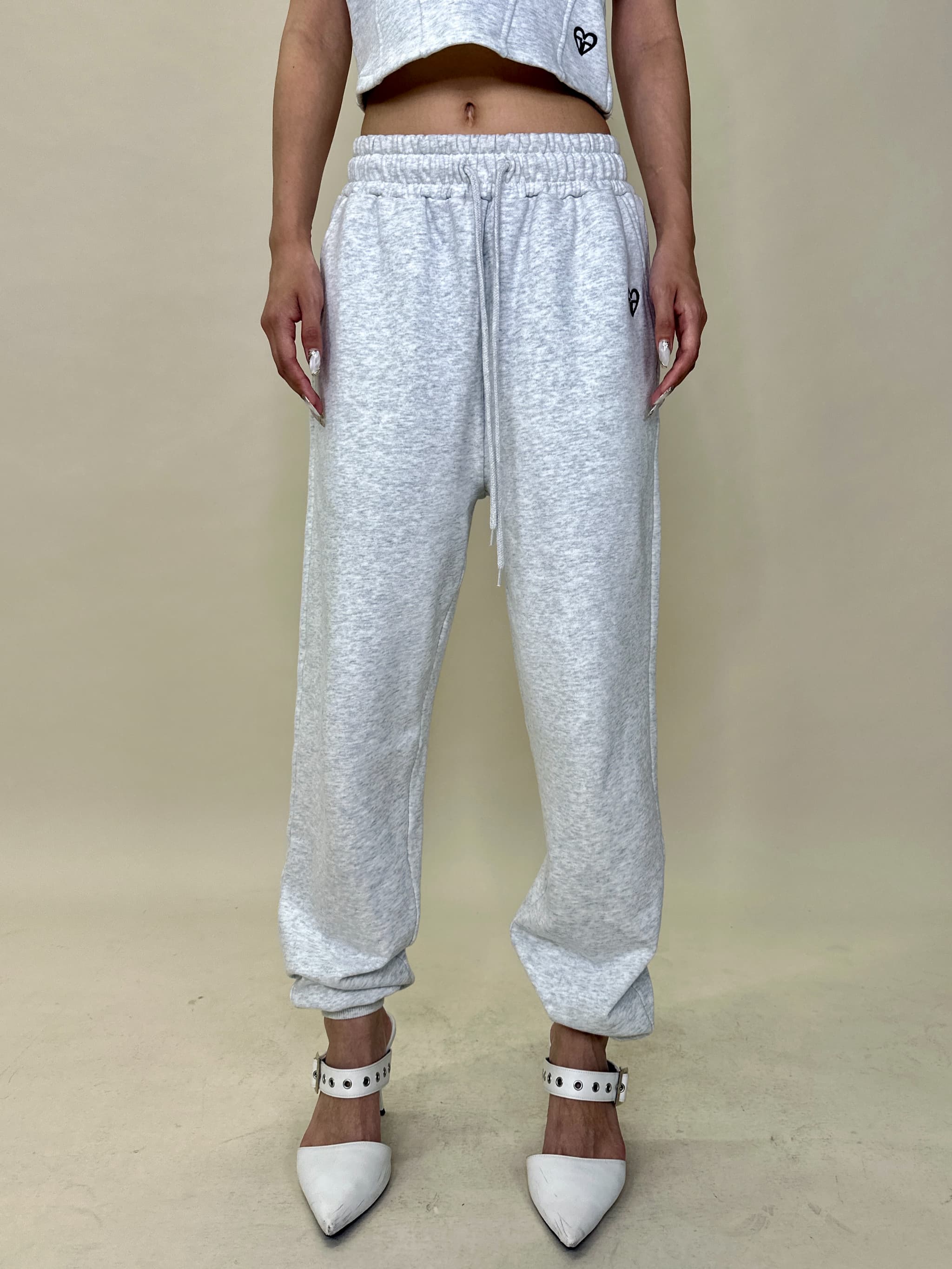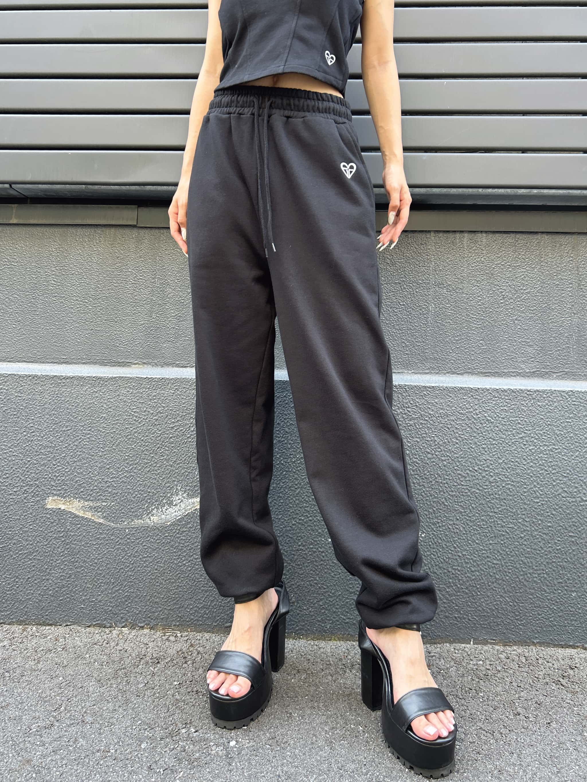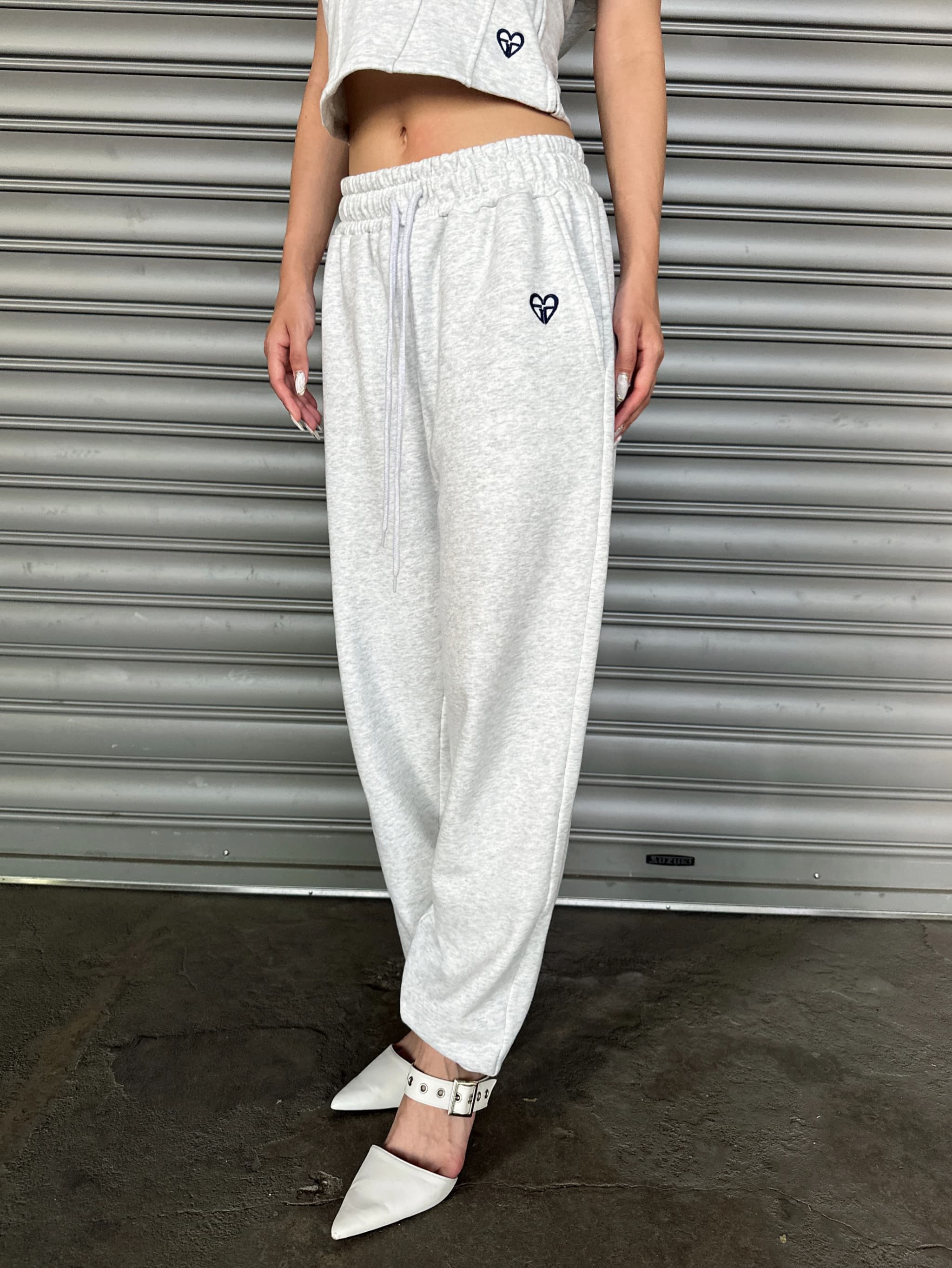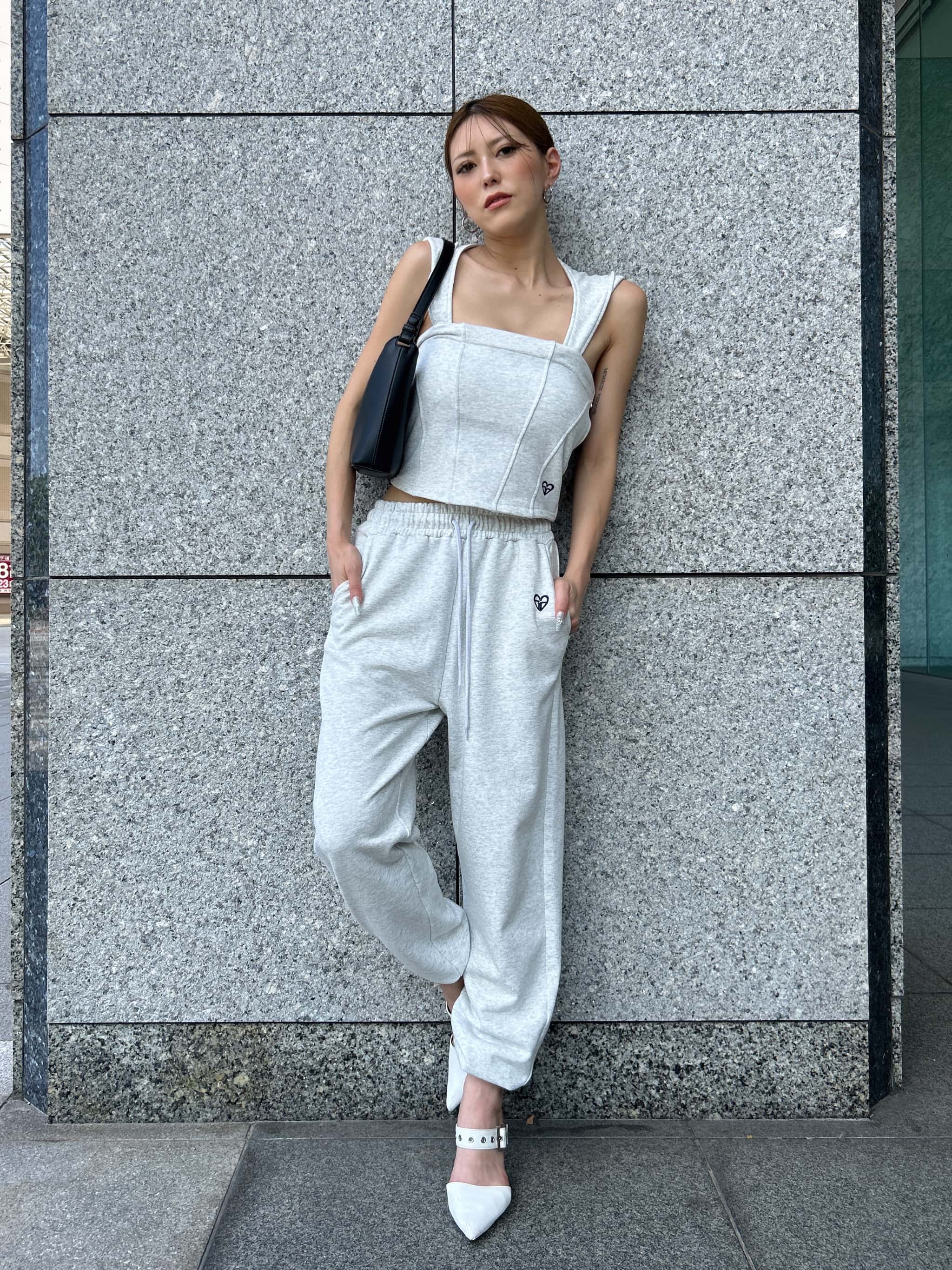 商品説明 左脇のオリジナルHEARTロゴ刺繍がワンポイントになった裏毛ジョガーパンツ。