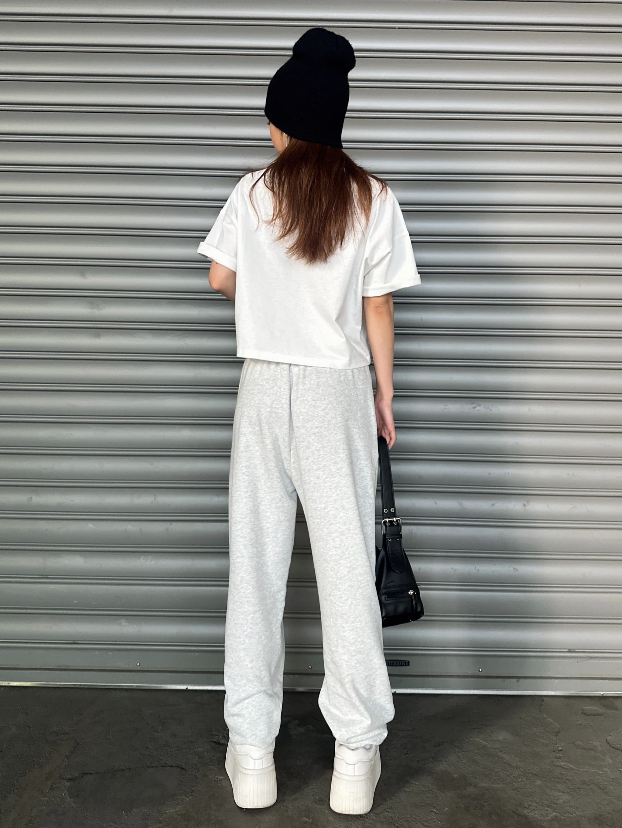 脚のラインを拾わずゆったりとしたサイジングで足元へルーズに溜まるシルエットがこなれ感を演出します。