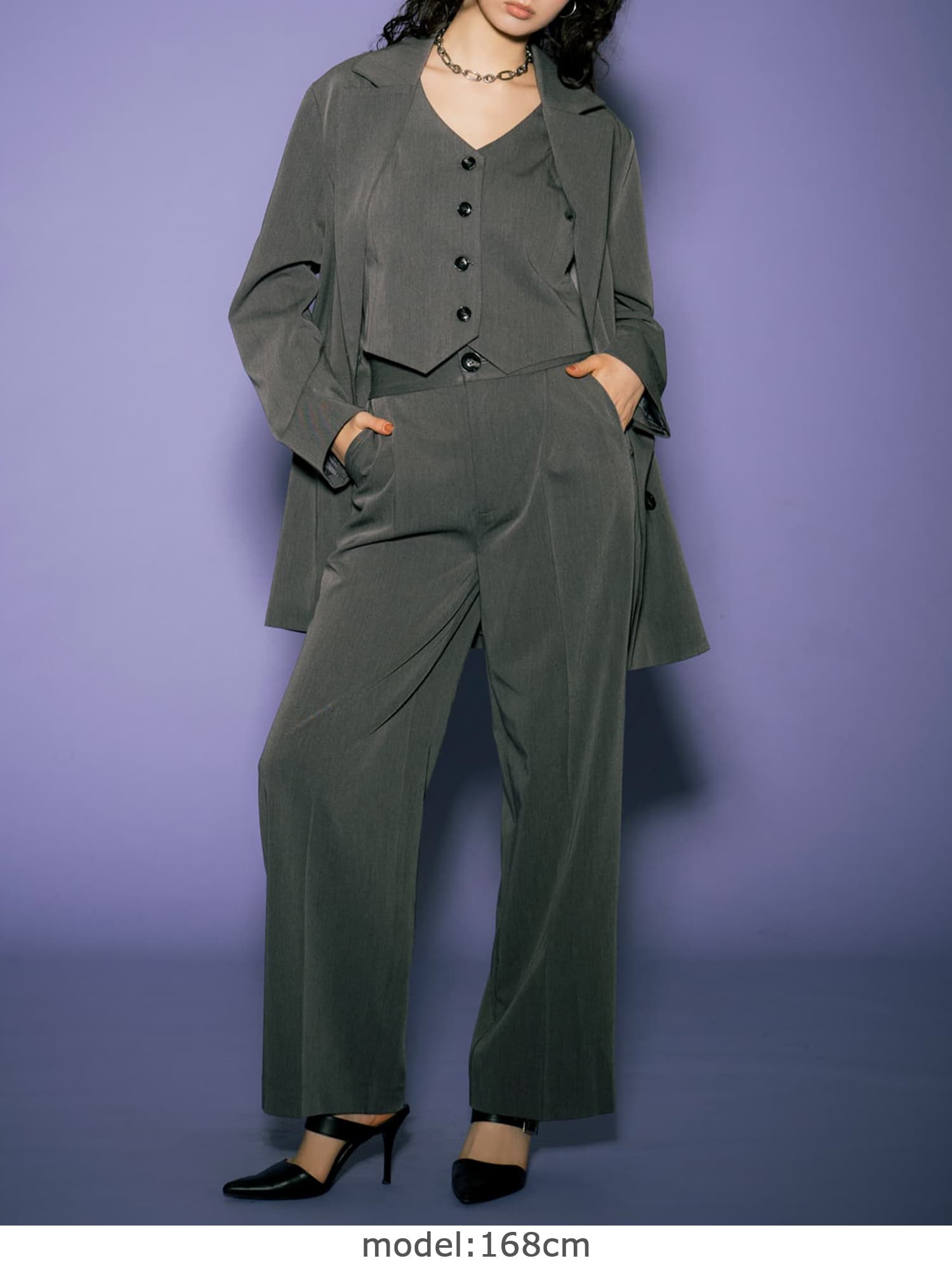 | 素材 | 表地:ポリエステル80%、レーヨン15%、ポリウレタン5% |