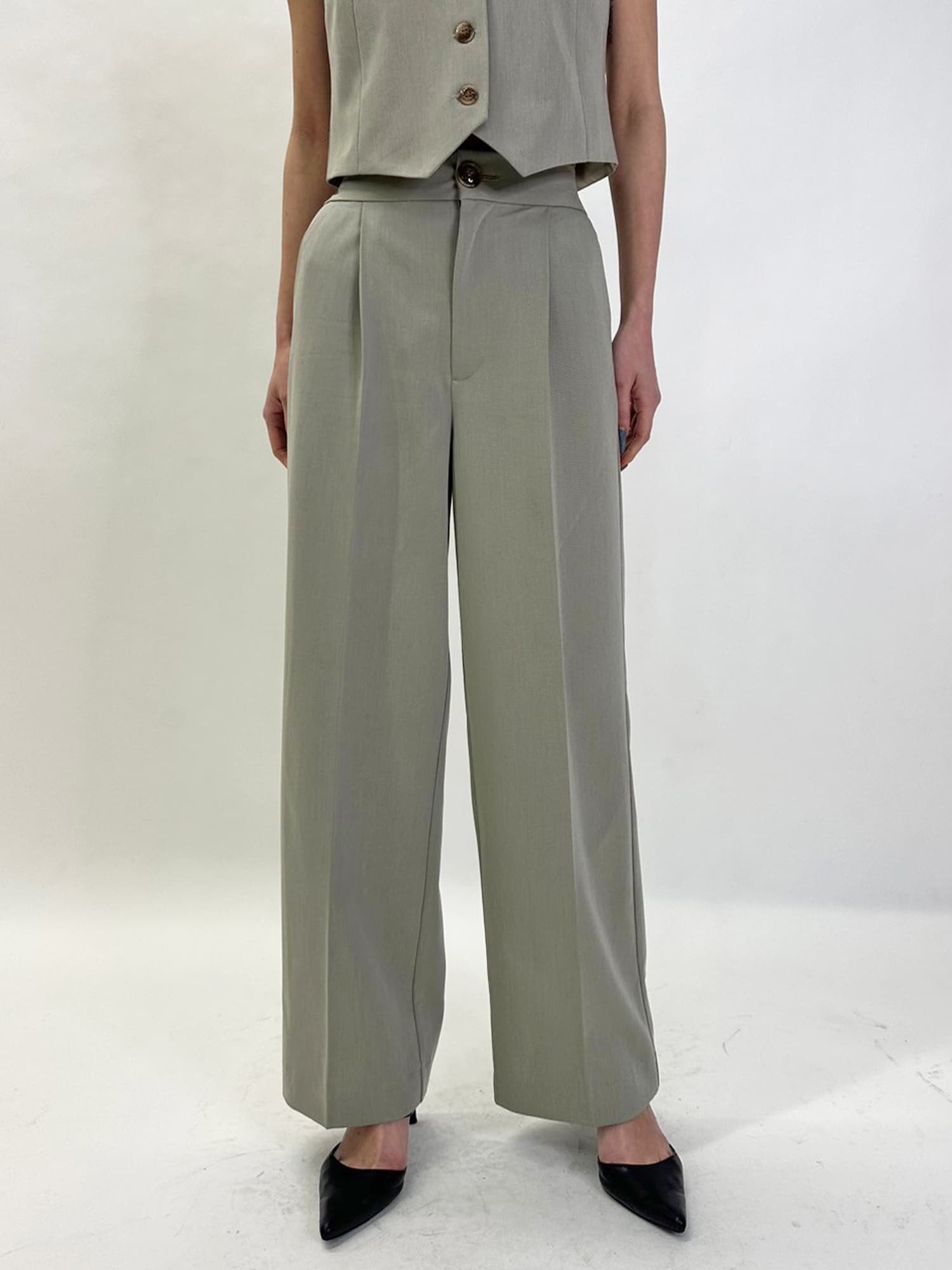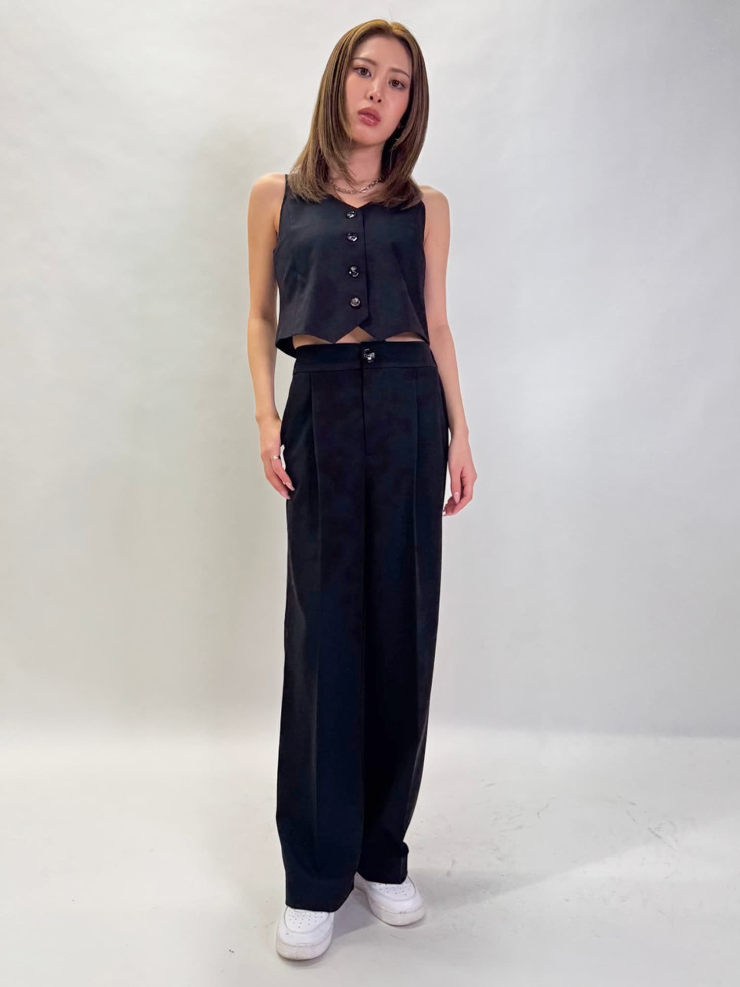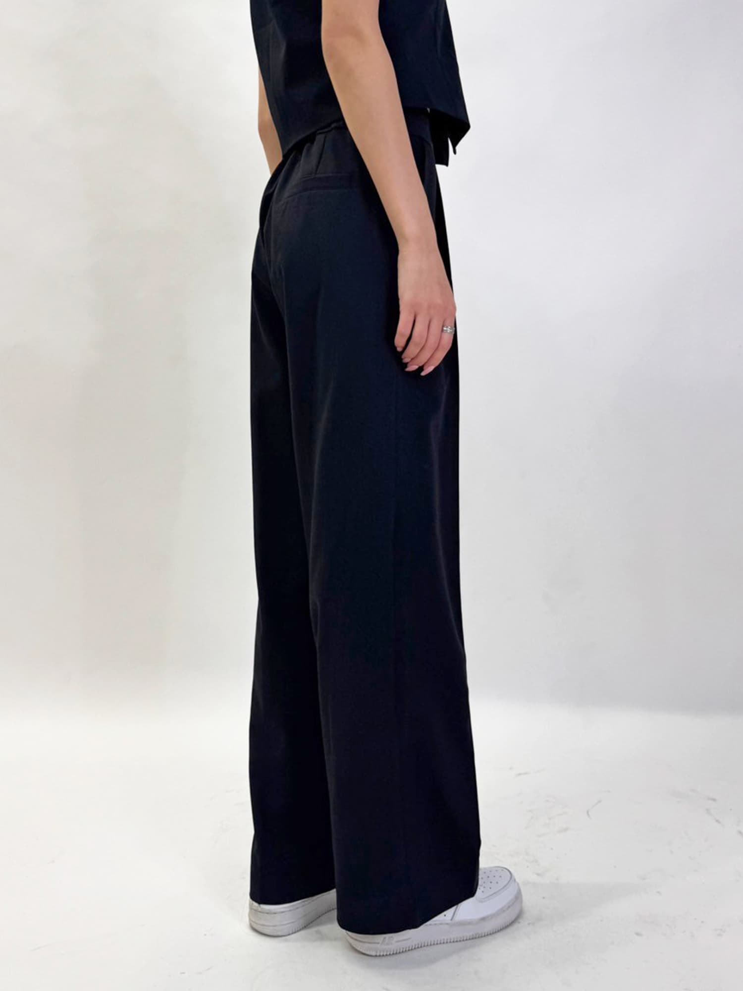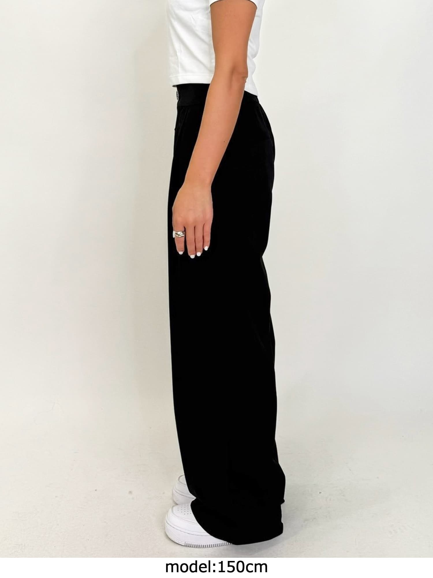 商品説明 ワイドなシルエットでありながら、センタープレスの縦ラインですっきりと魅せたワイドパンツ。
