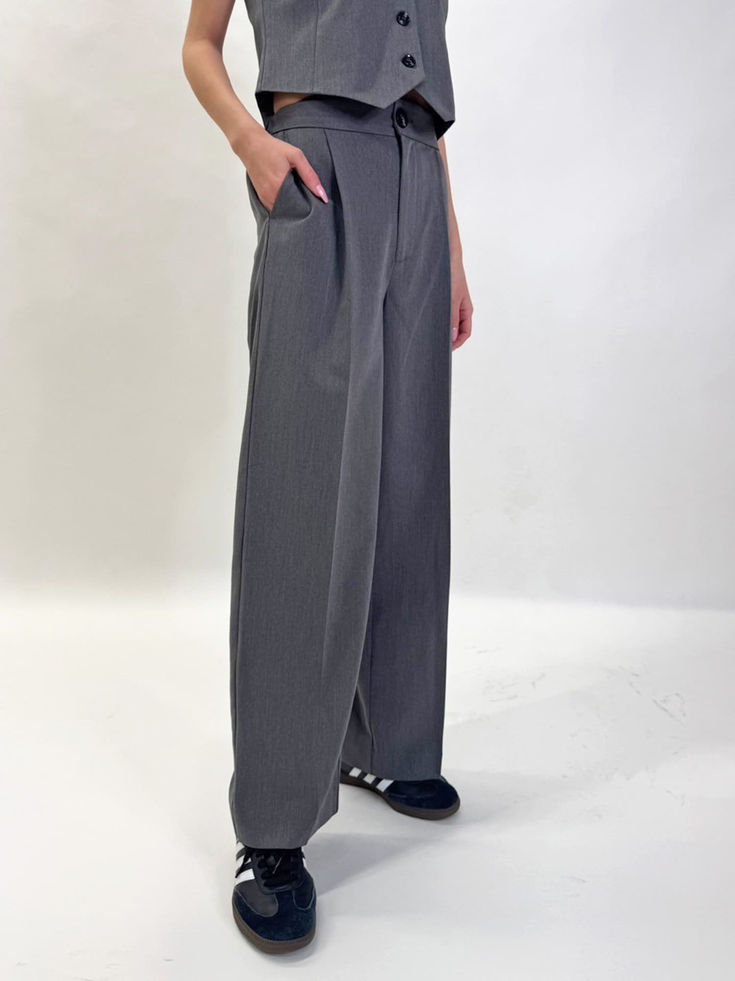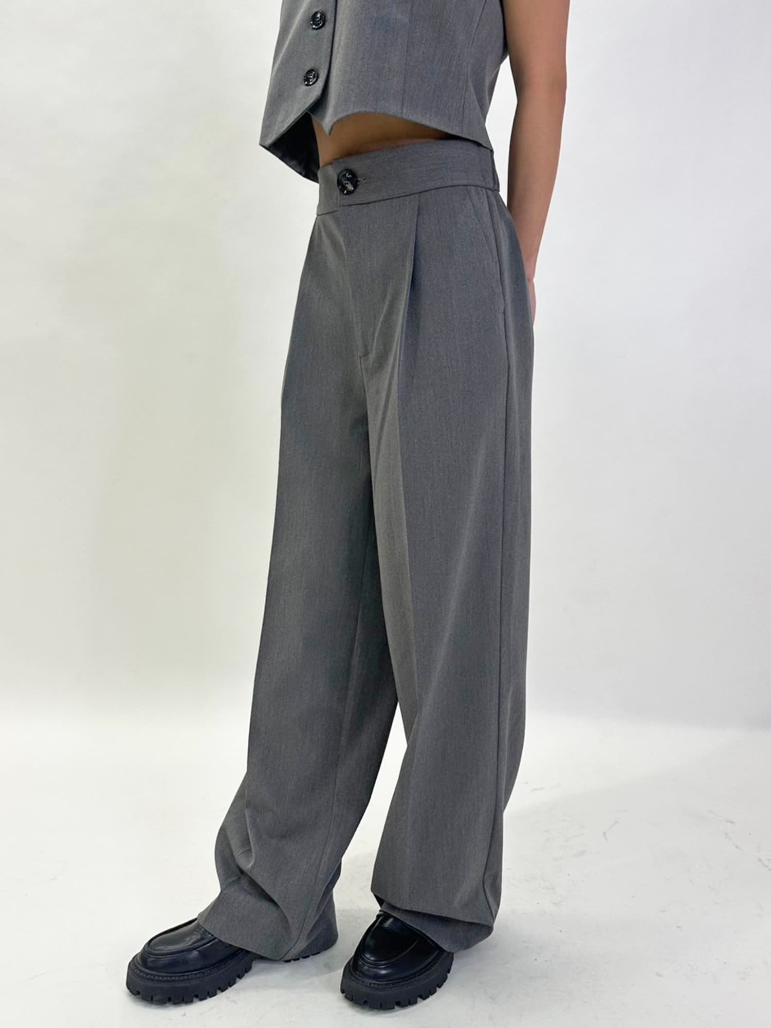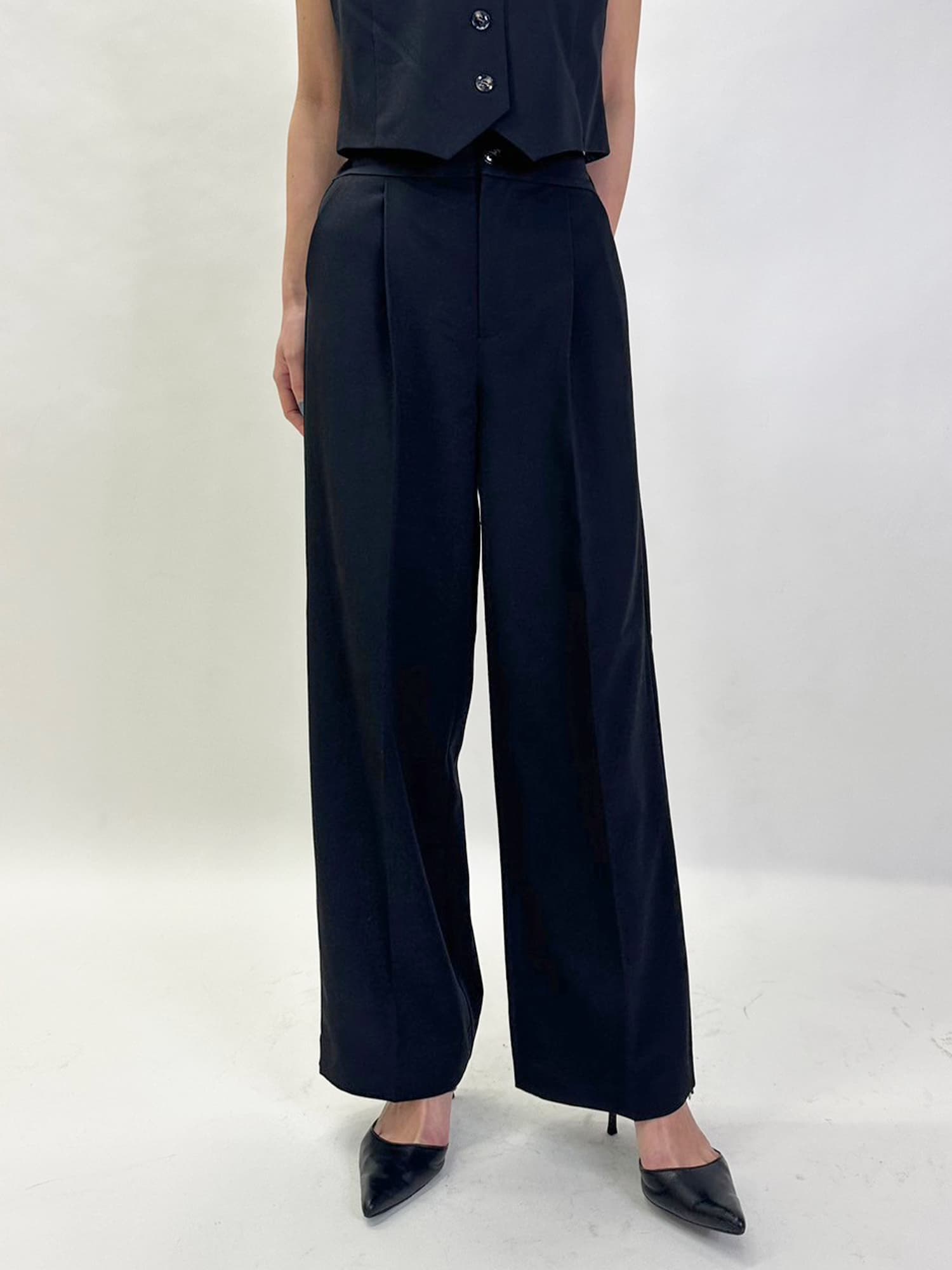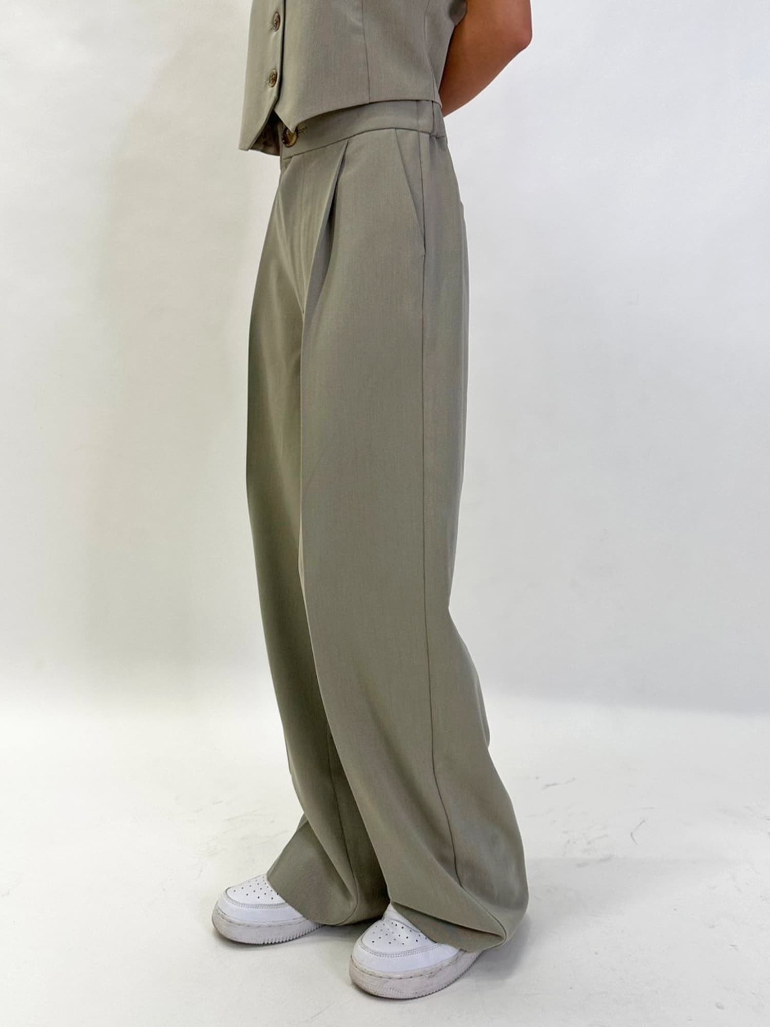 商品説明 ワイドなシルエットでありながら、センタープレスの縦ラインですっきりと魅せたワイドパンツ。