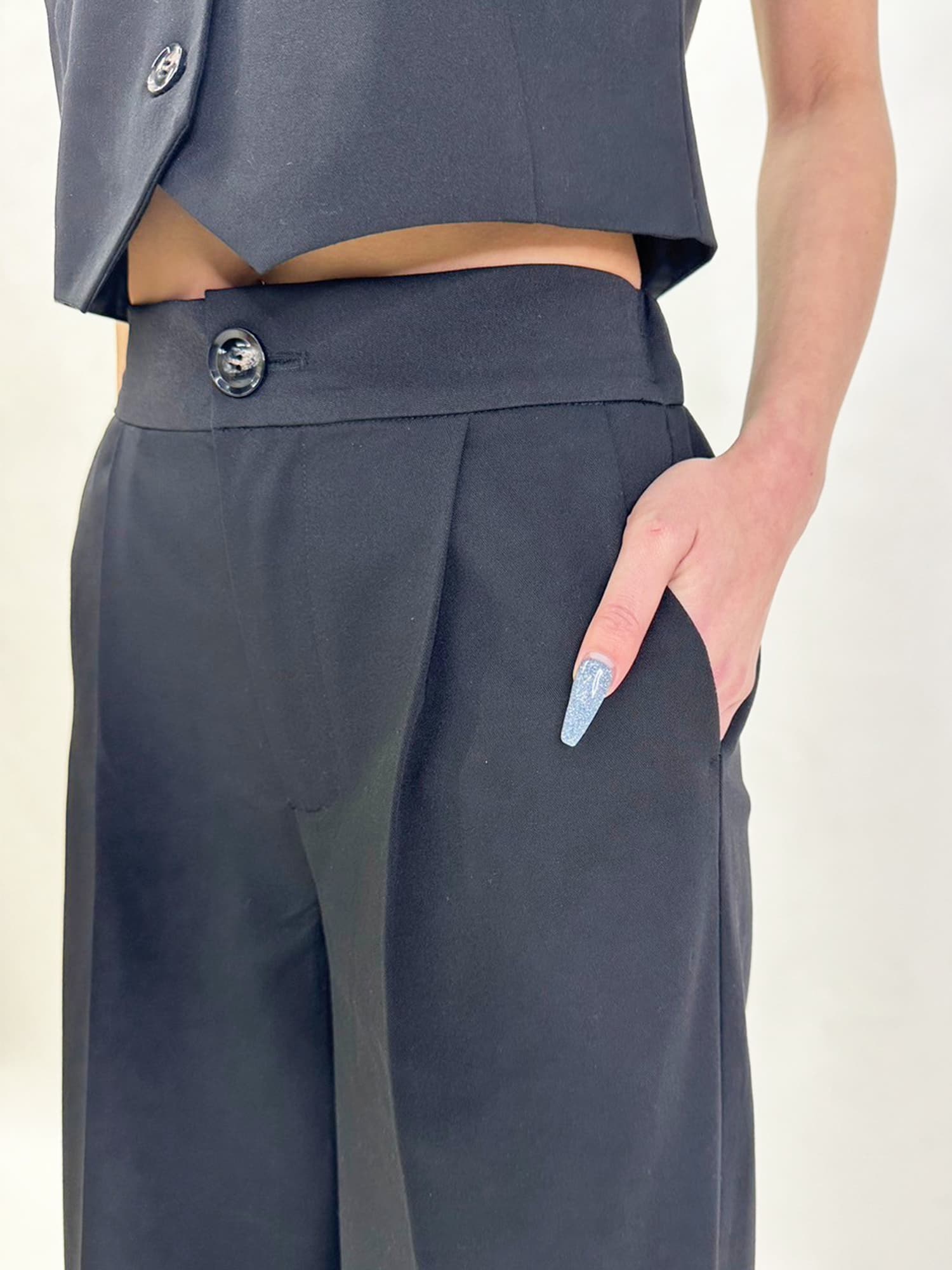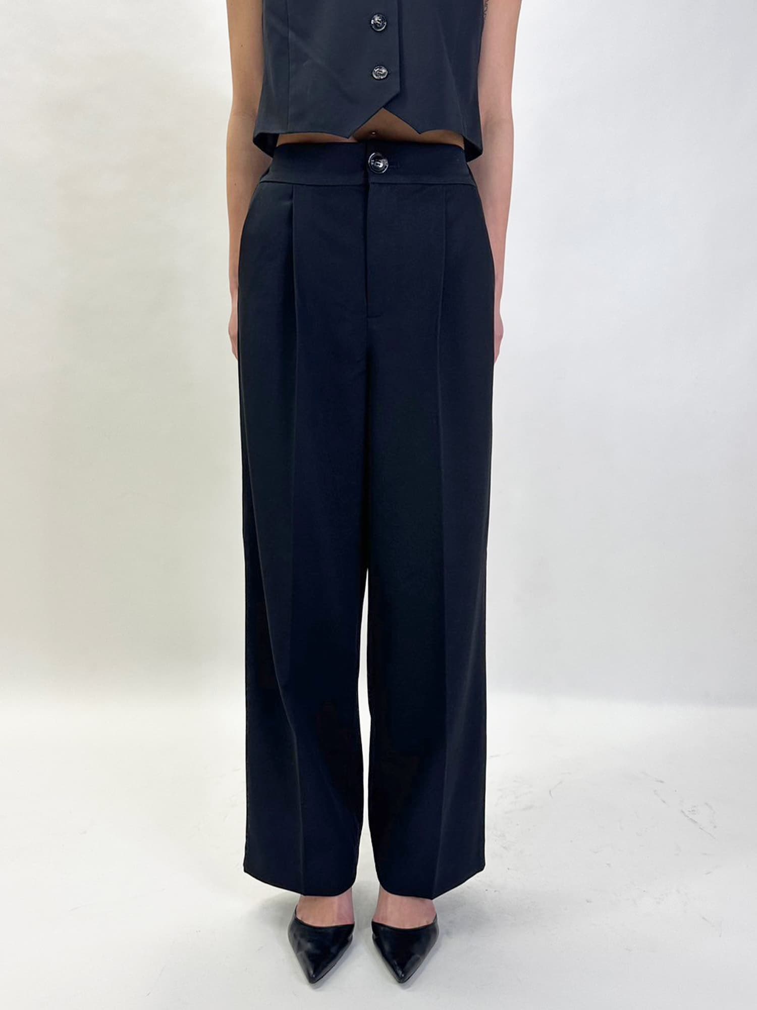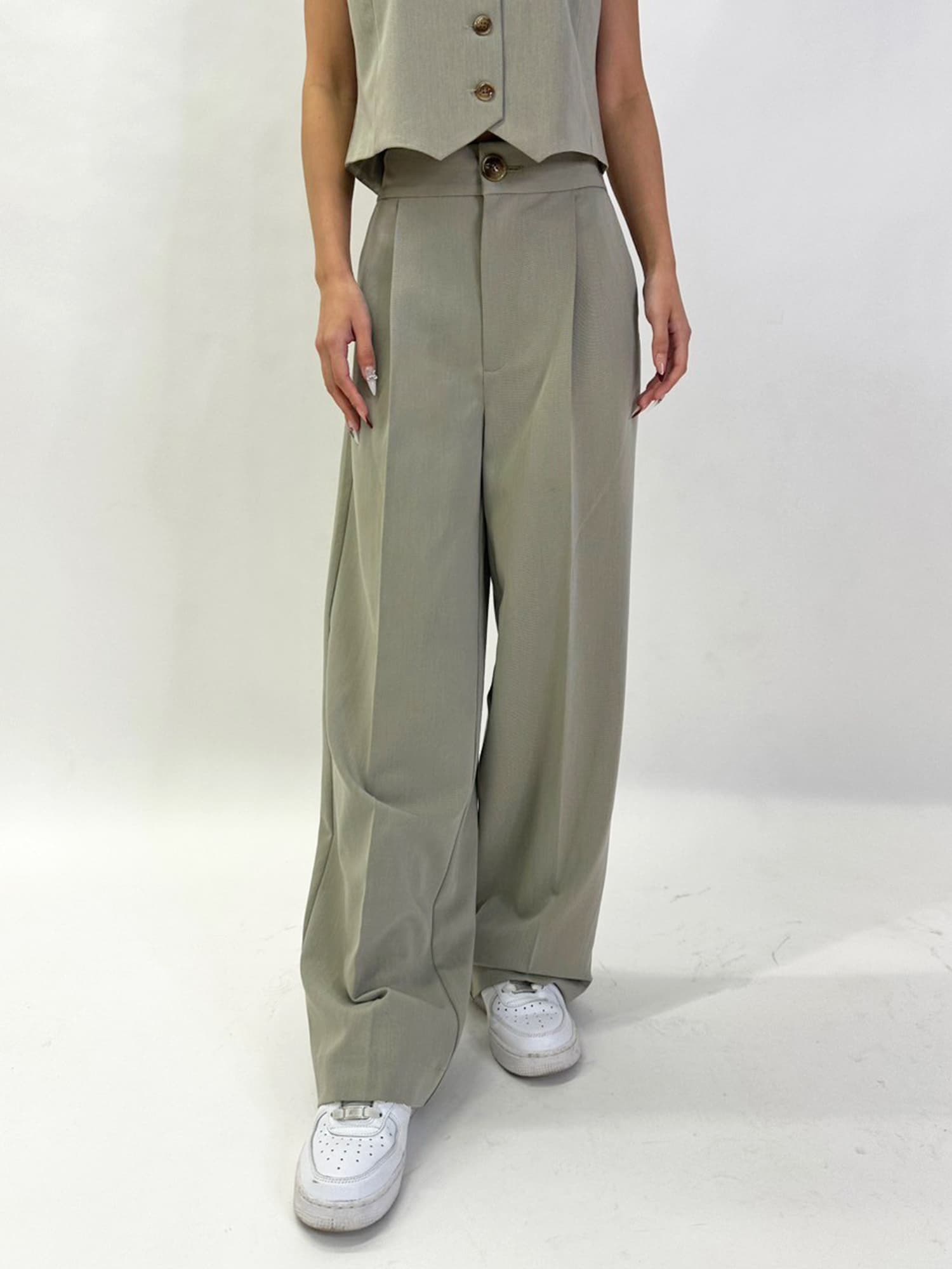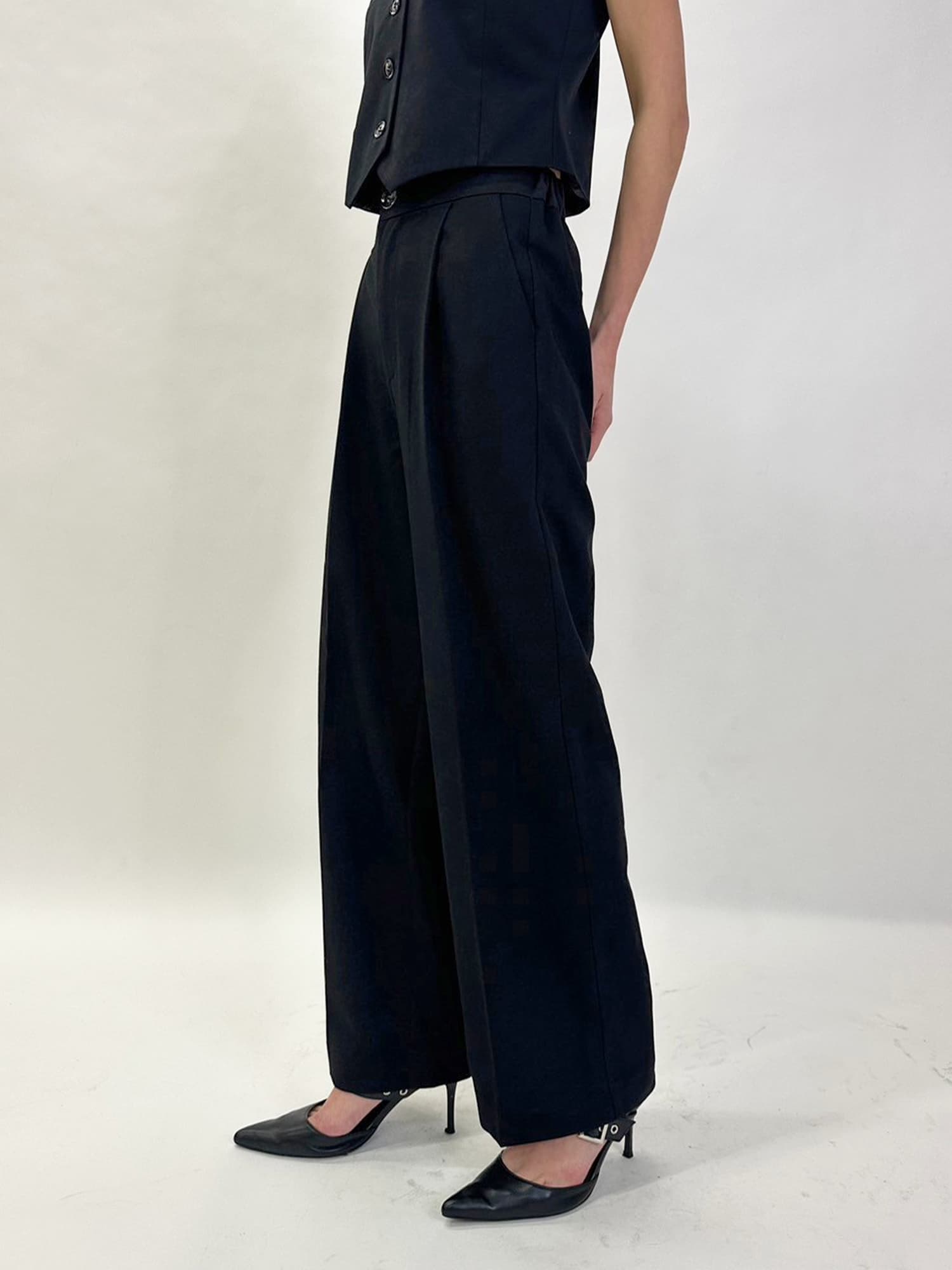 商品説明 ワイドなシルエットでありながら、センタープレスの縦ラインですっきりと魅せたワイドパンツ。