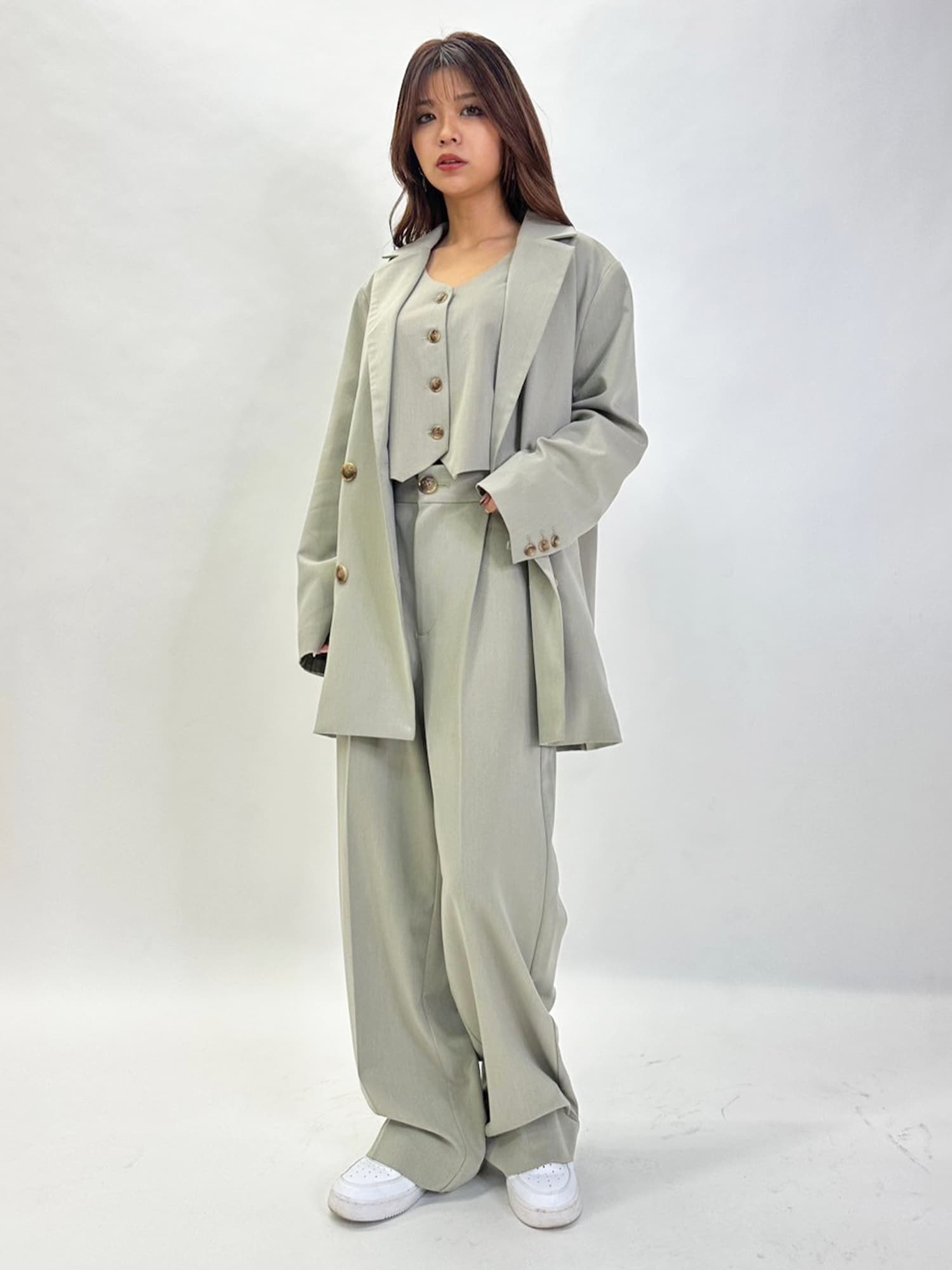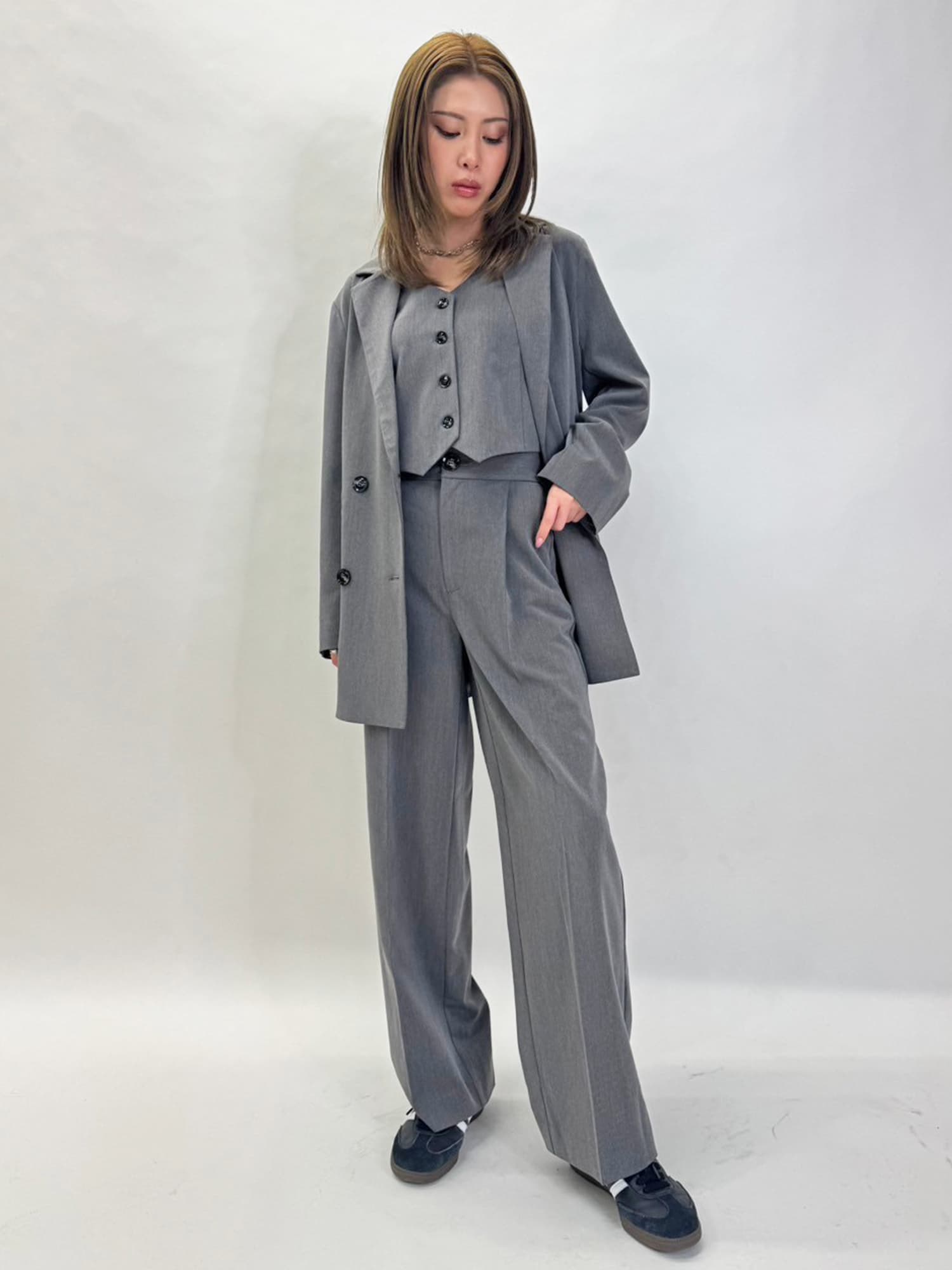 カジュアルに着こなしたい方はスニーカー合わせがおススメ。