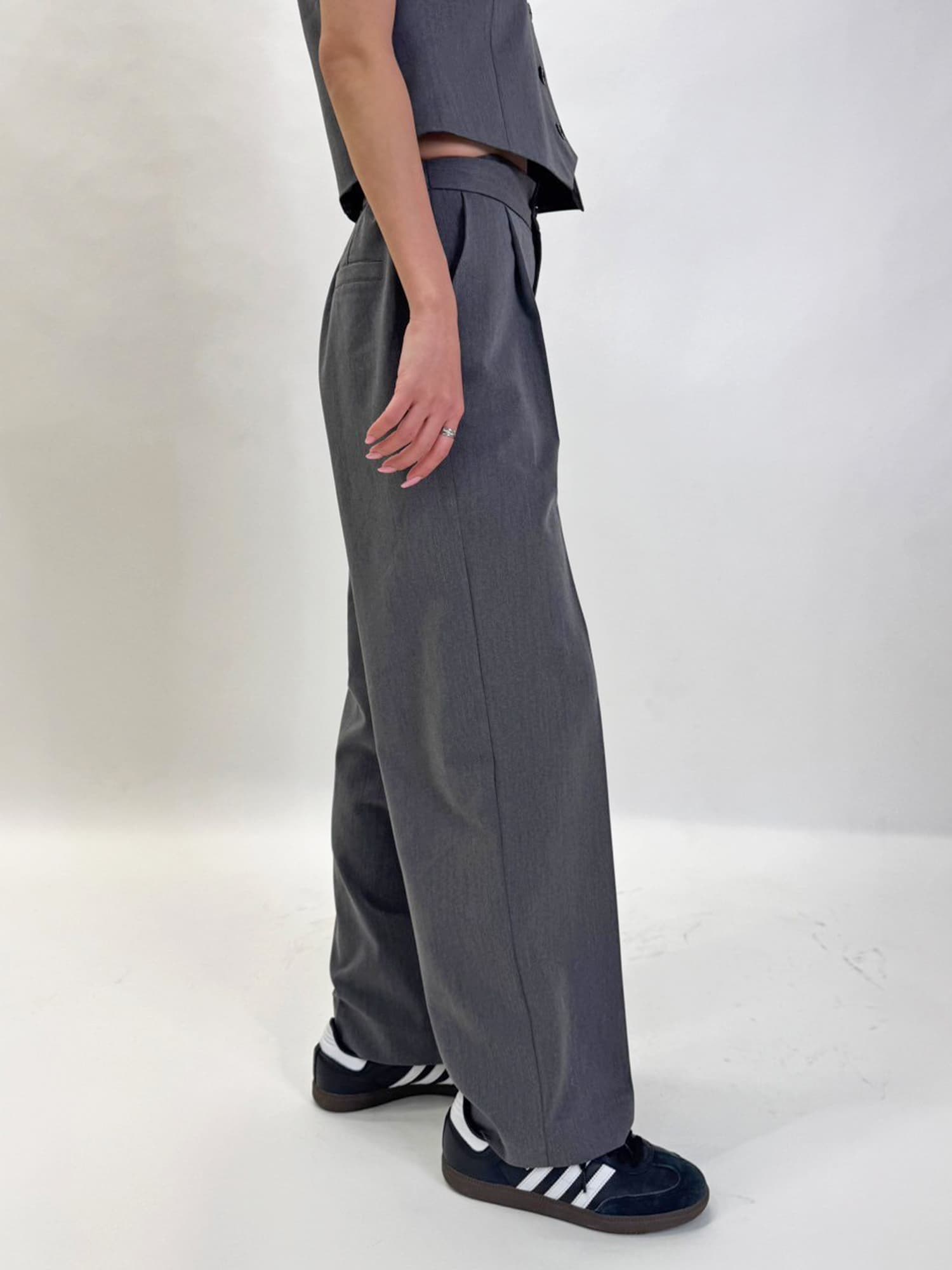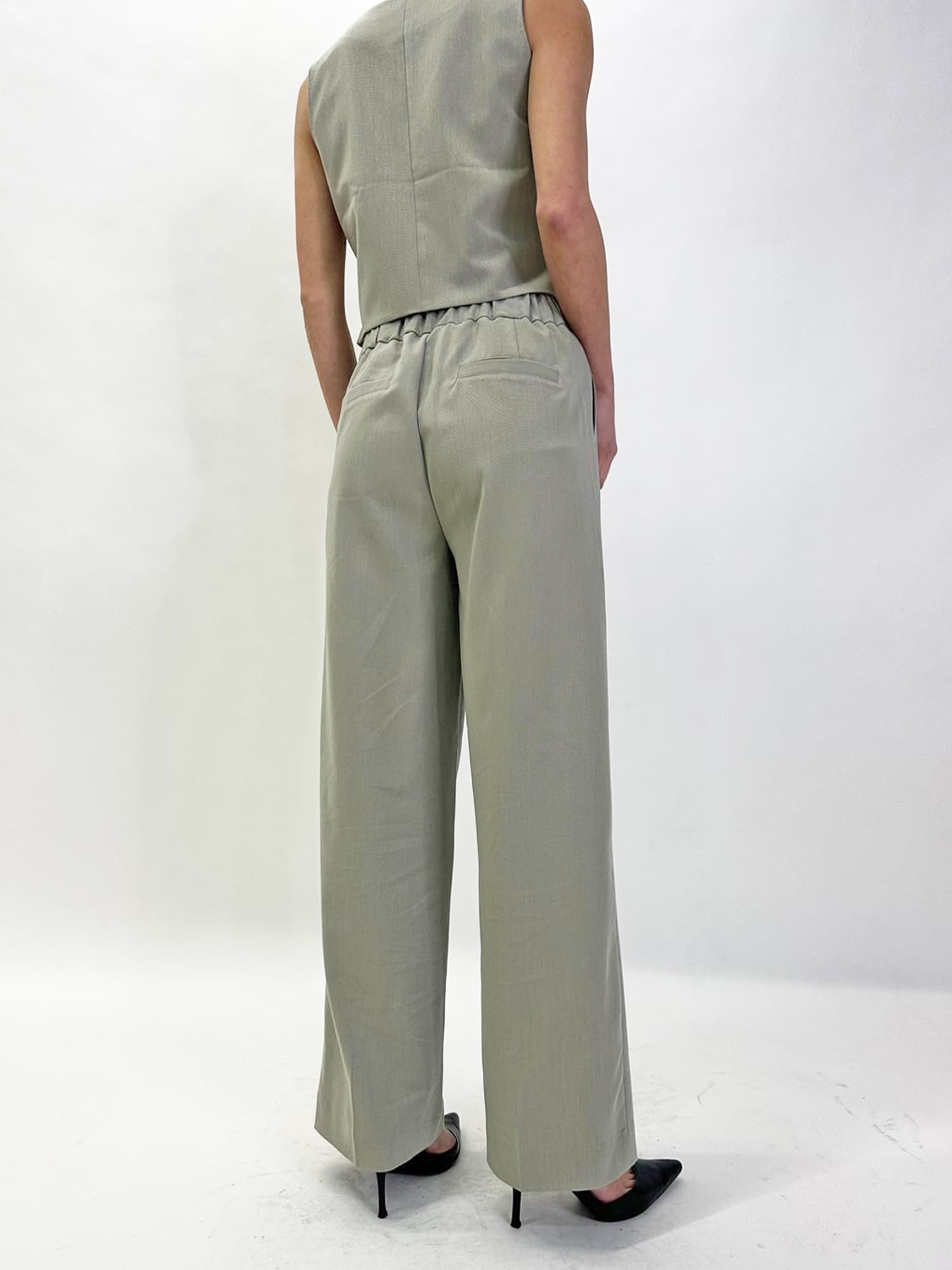きちんと見えですが後ろウエストにはゴムが入っているので着脱もしやすくかっちりしすぎないのが嬉しいポイント。