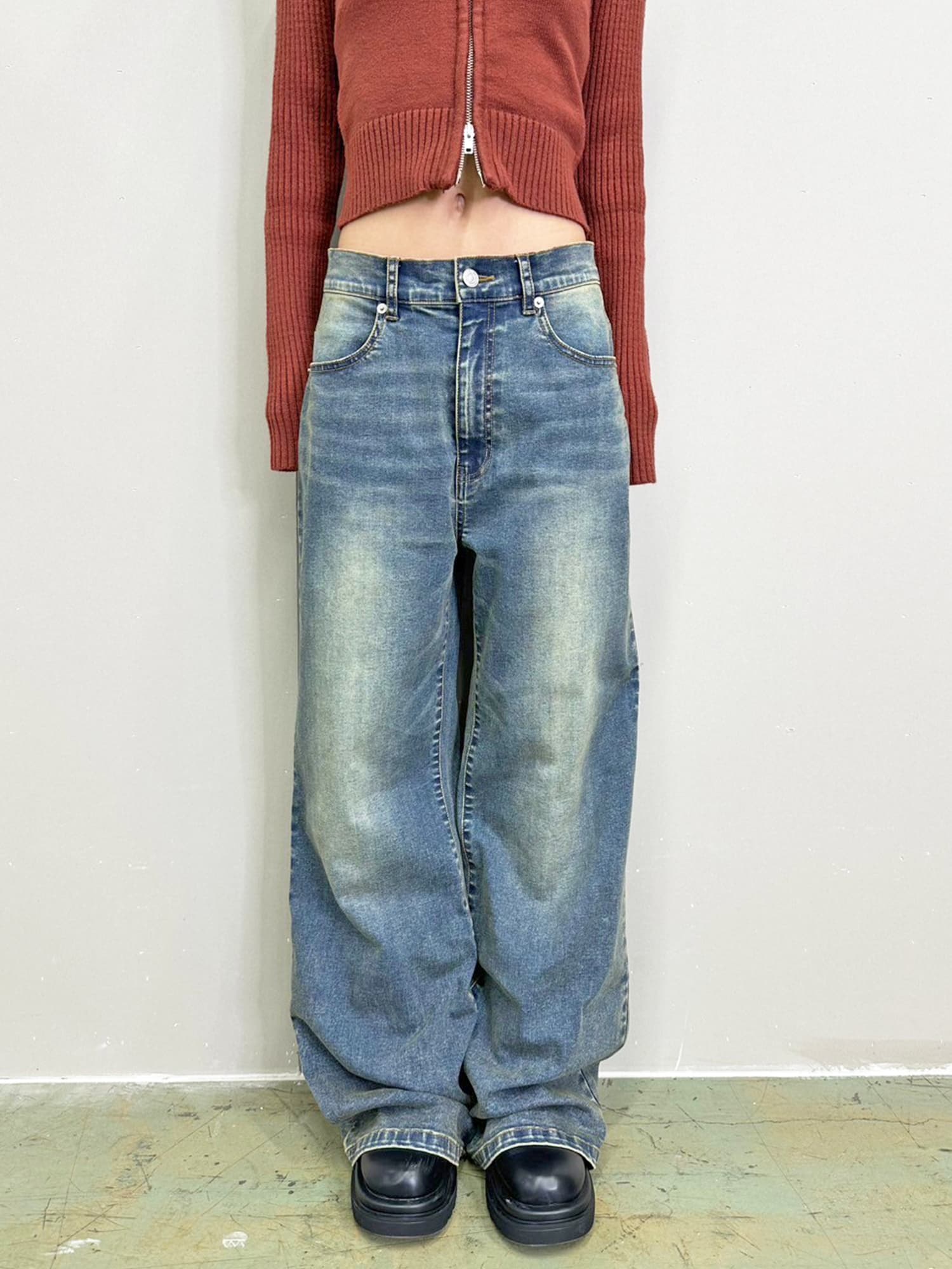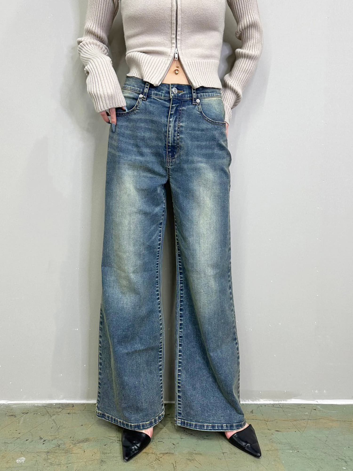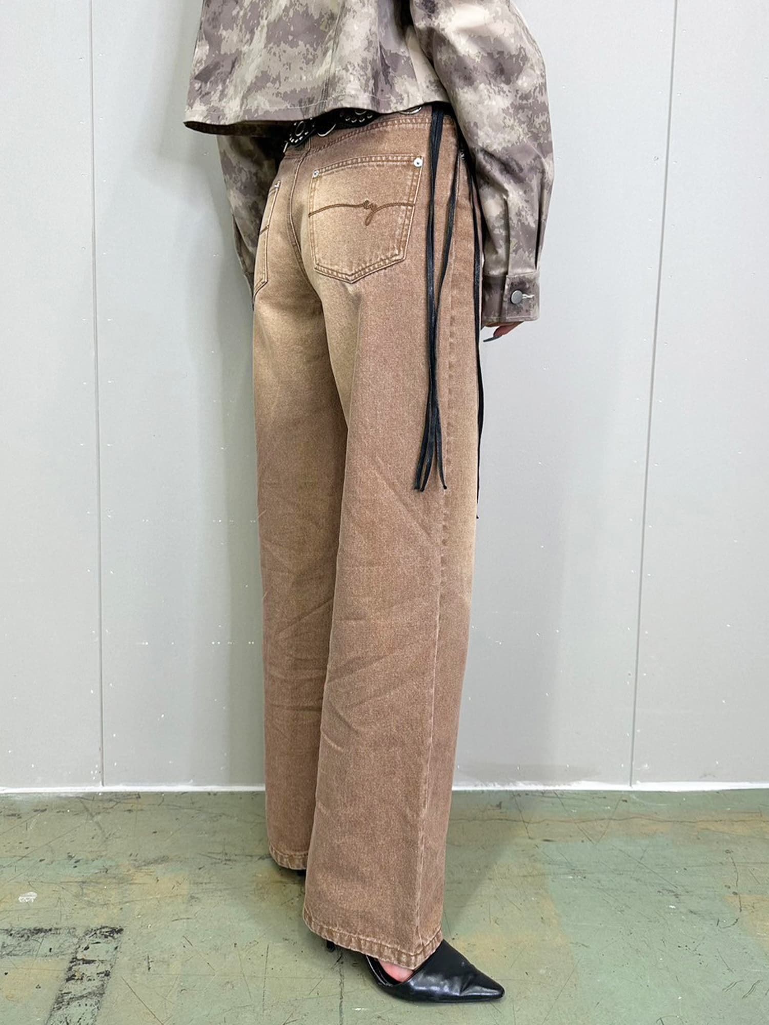 商品説明 加工で色落ちさせ、何年も履きこなしたかのようなヴィンテージ調の風合いが特徴となっているワイドパンツ。