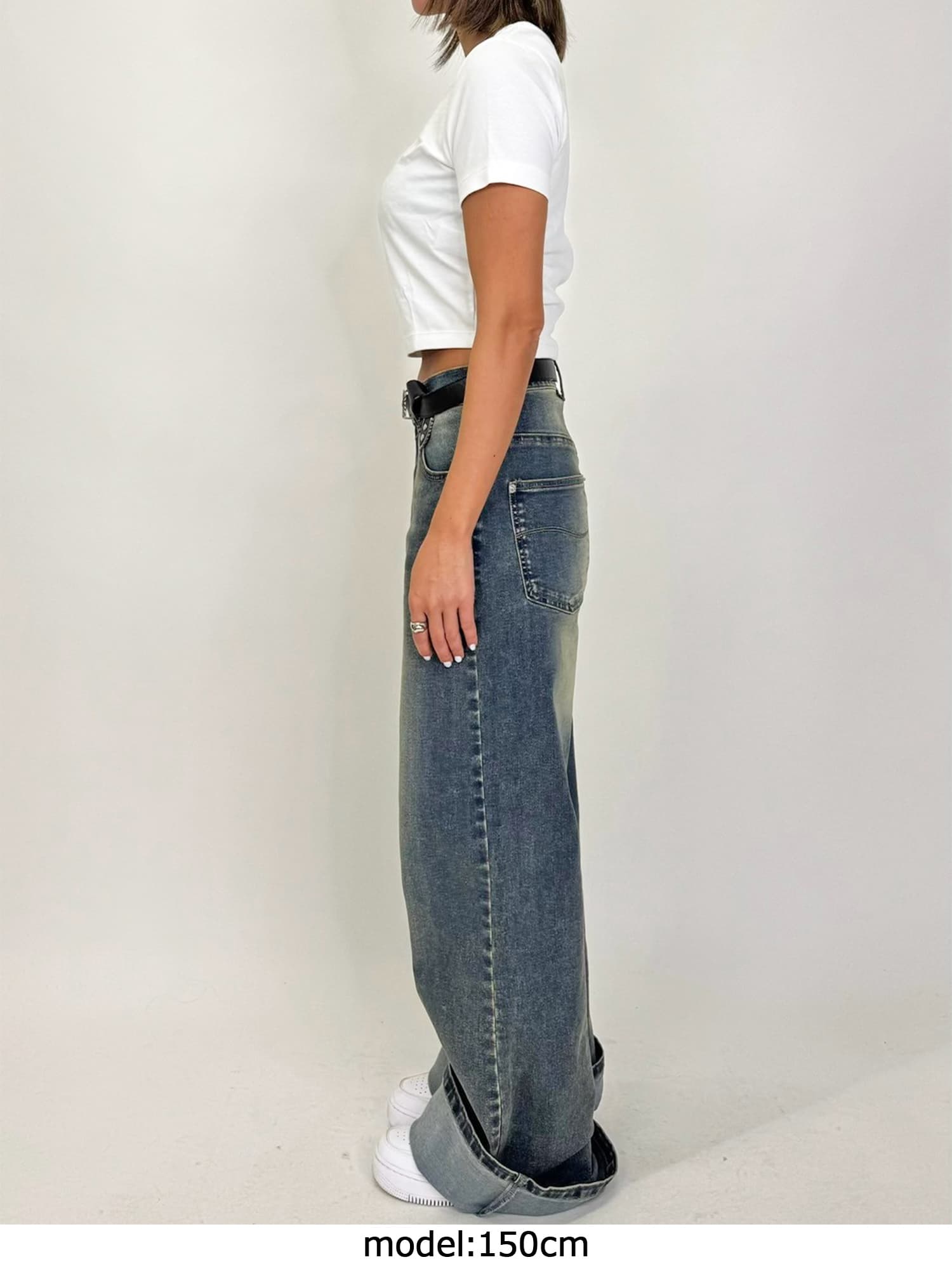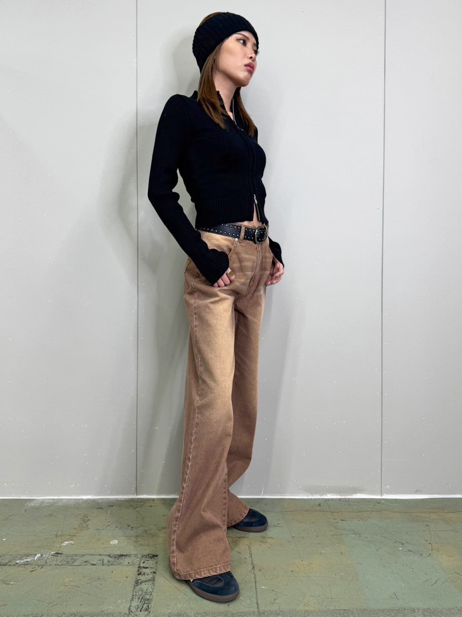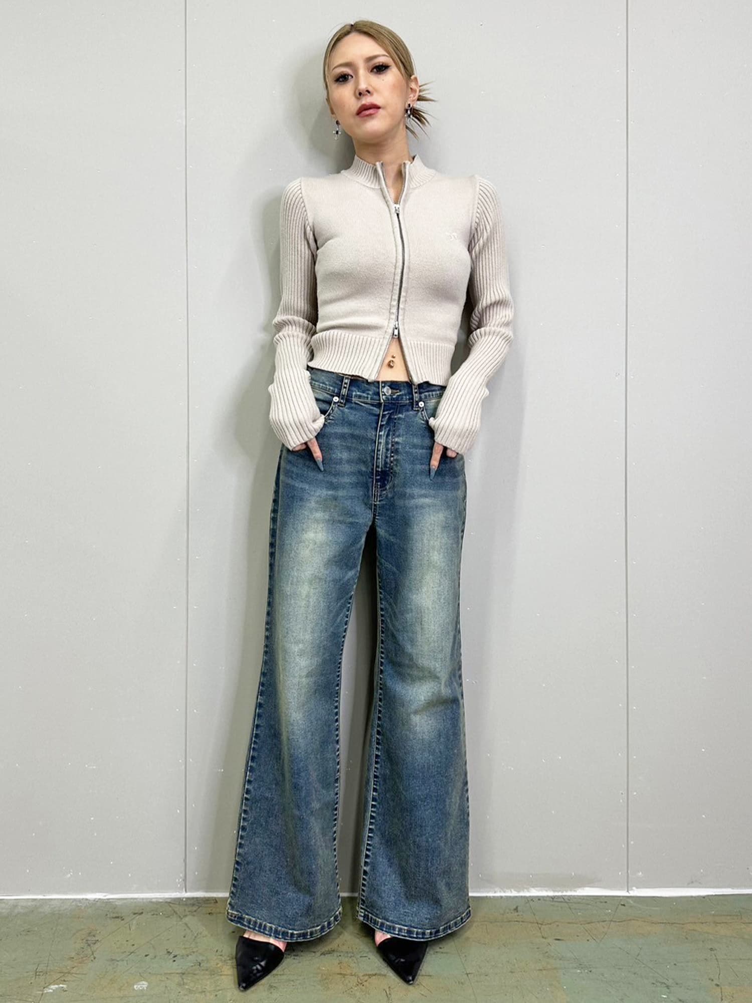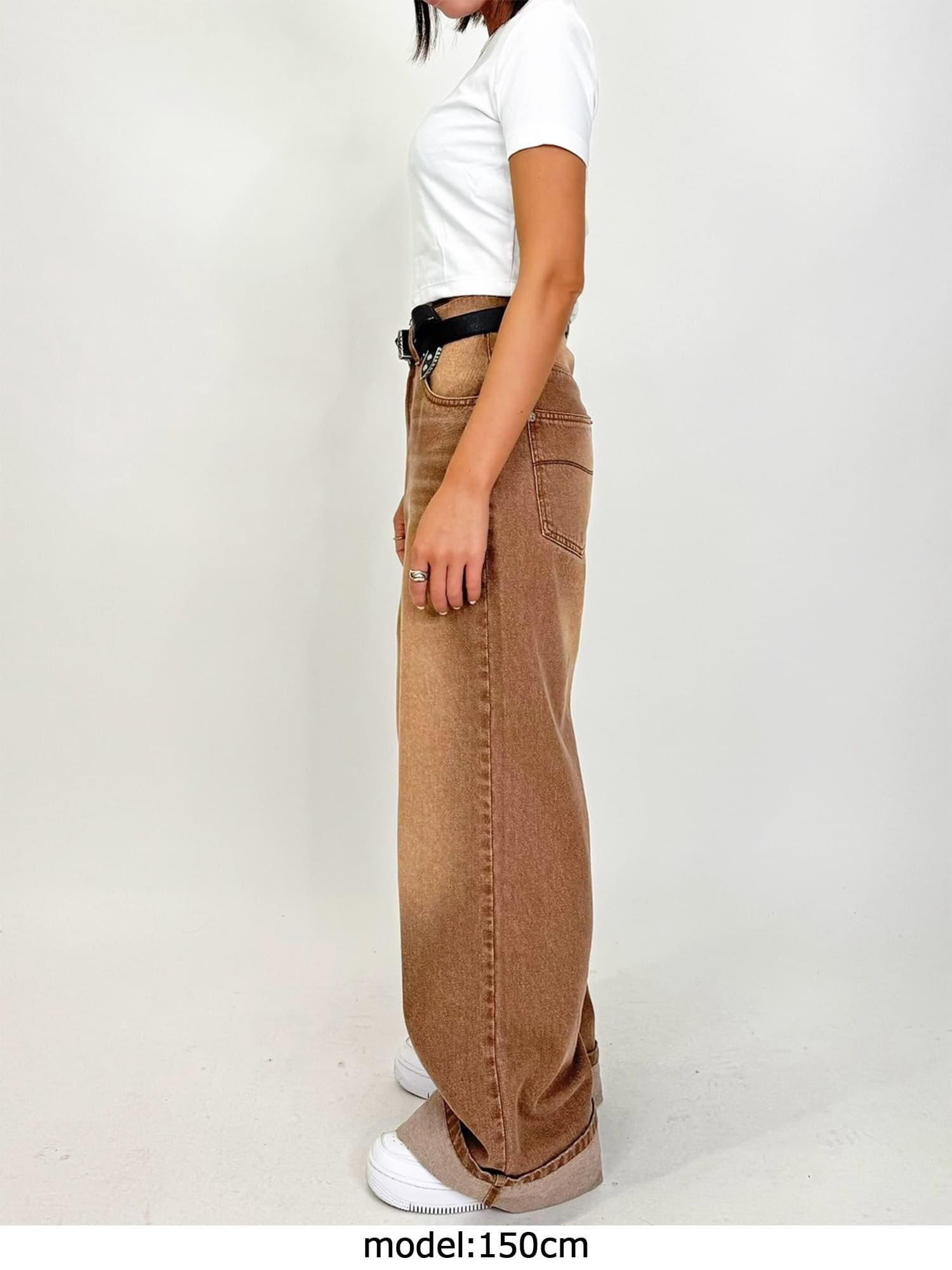ジャストウエストなのでウエスト周りの安定感もあり、幅広いカテゴリーのトップスと相性抜群。