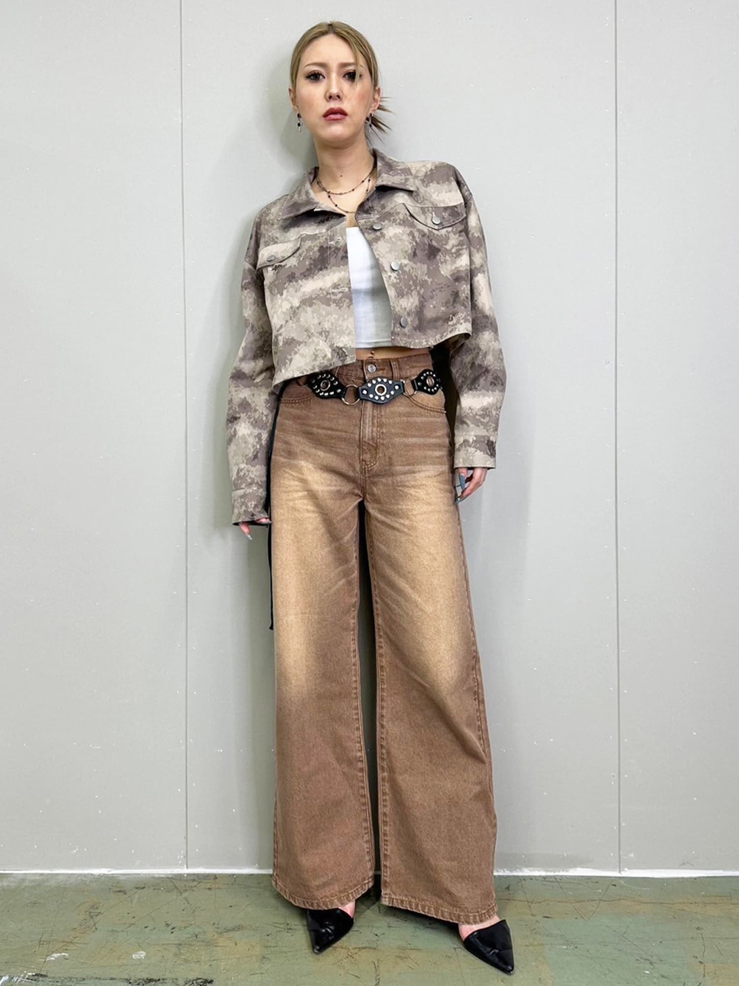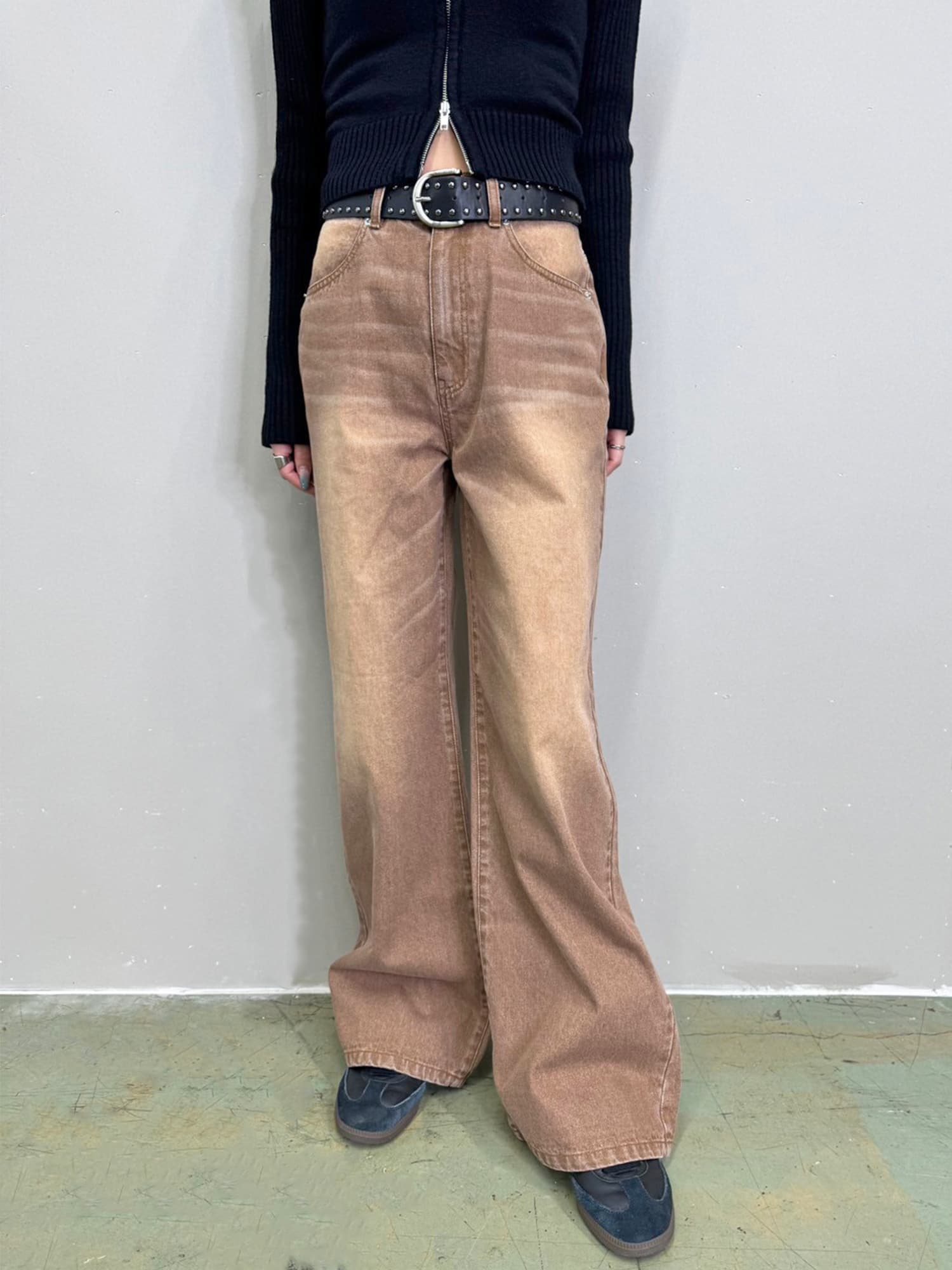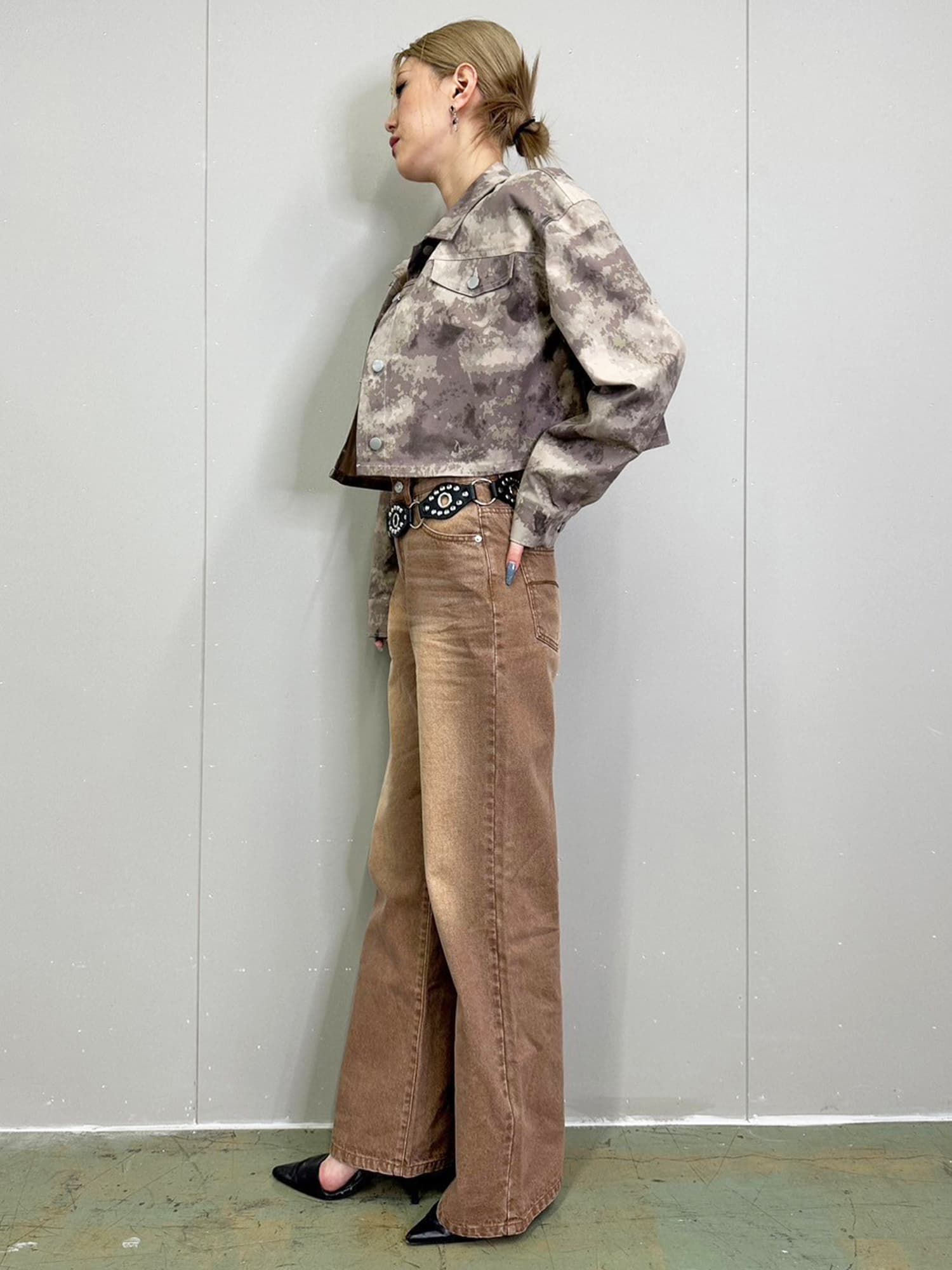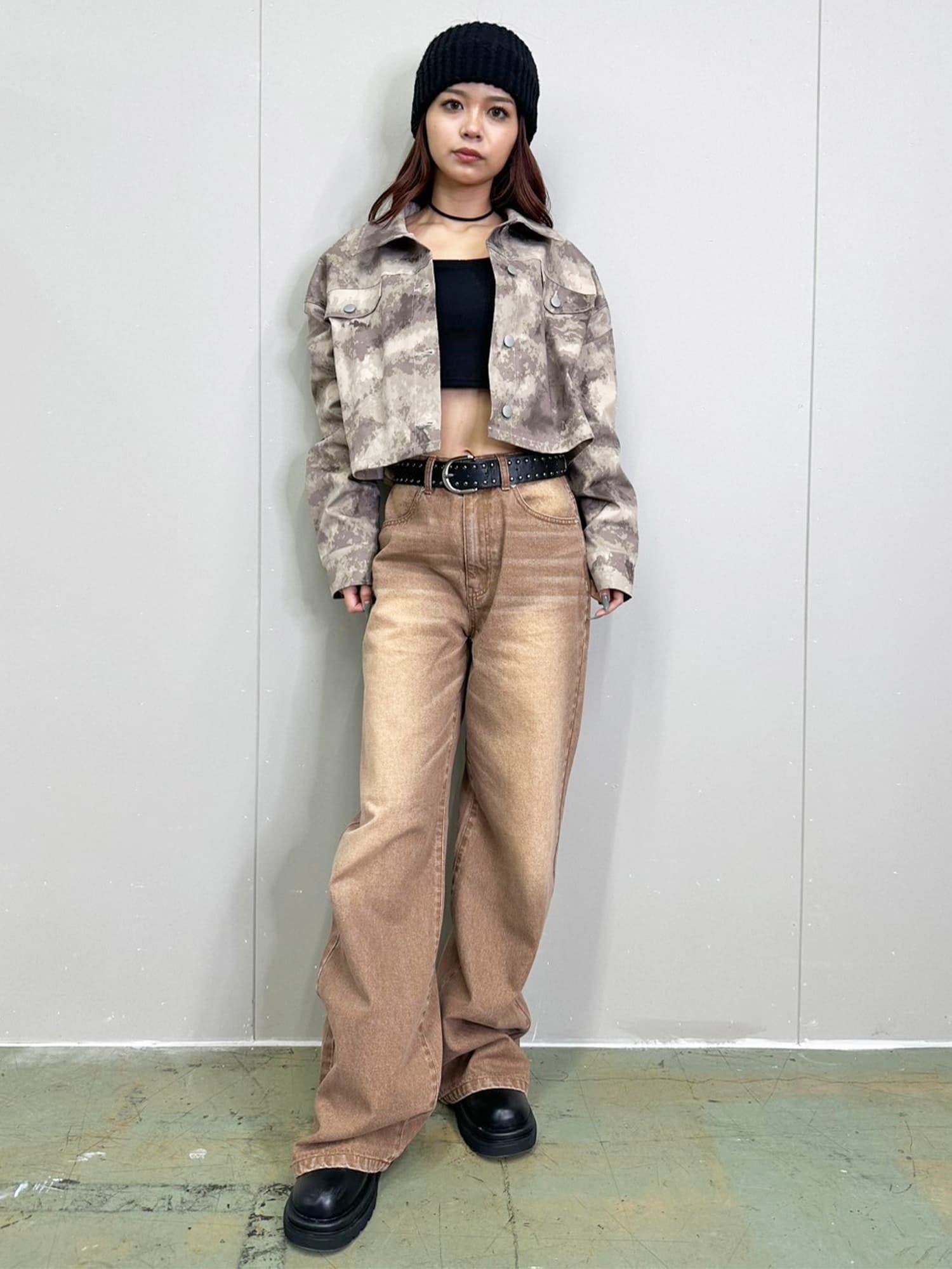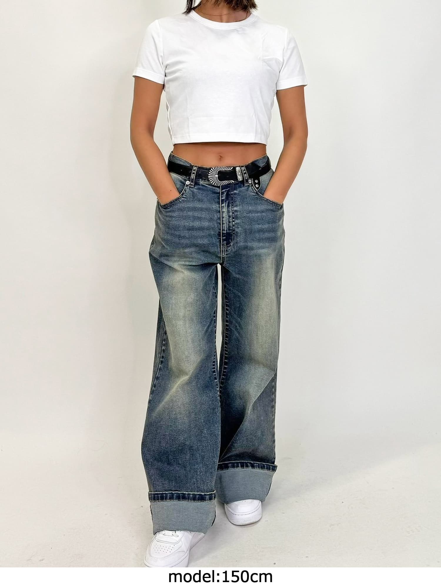 ジャストウエストなのでウエスト周りの安定感もあり、幅広いカテゴリーのトップスと相性抜群。