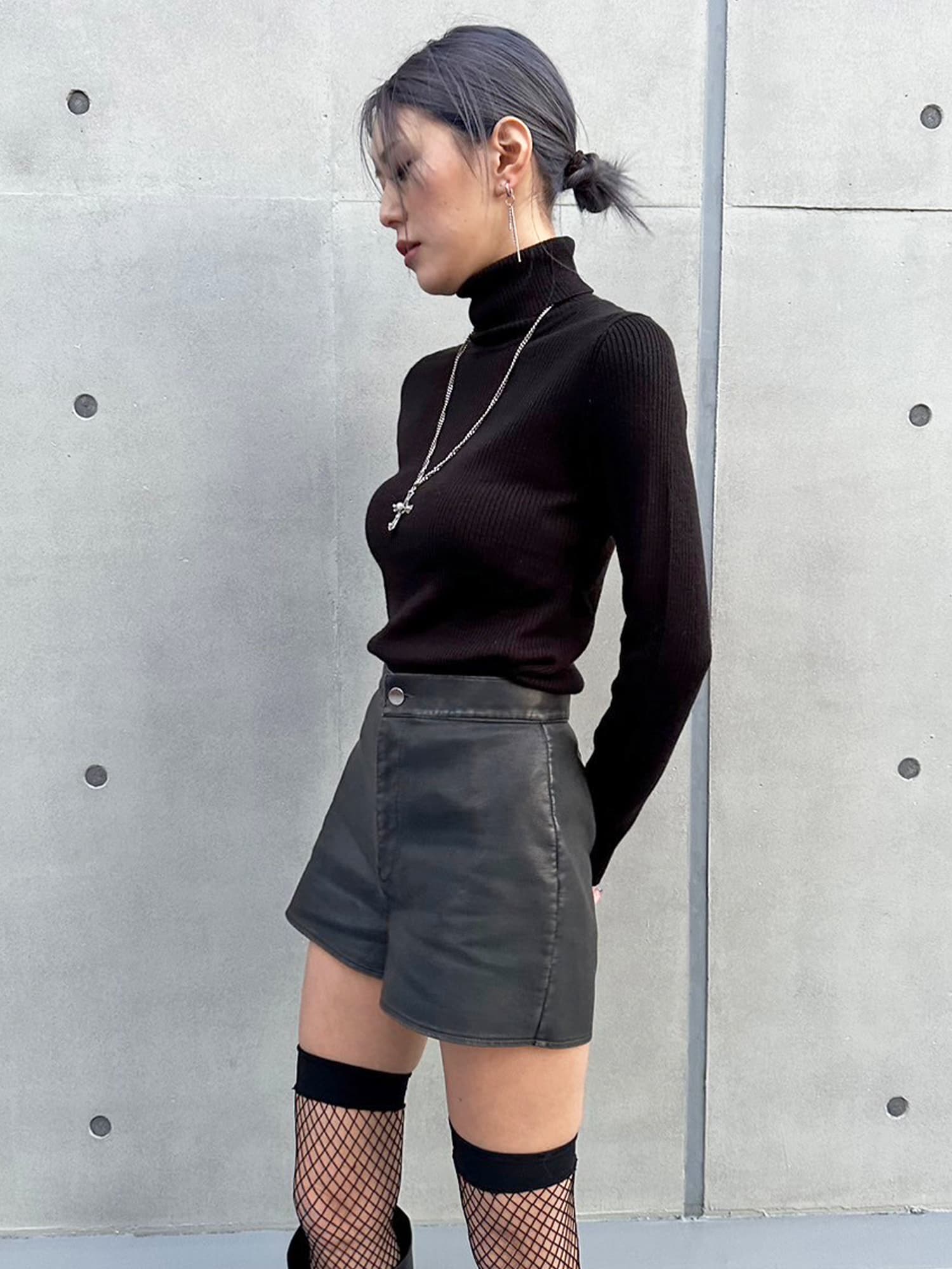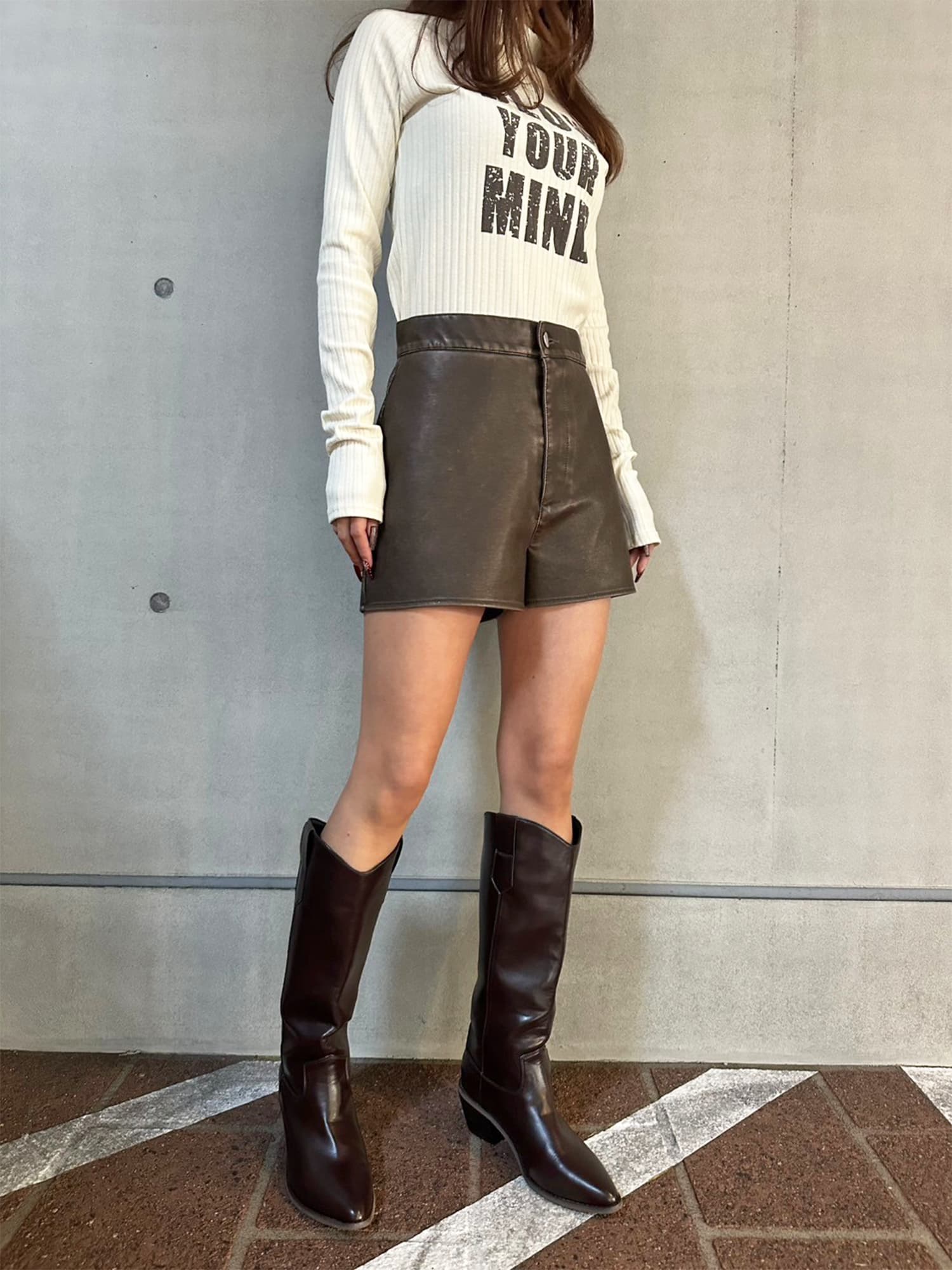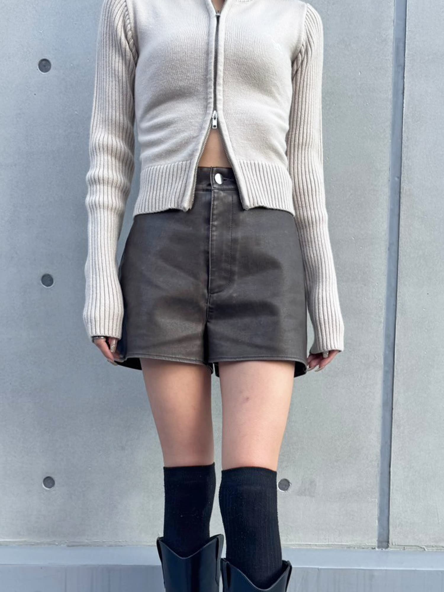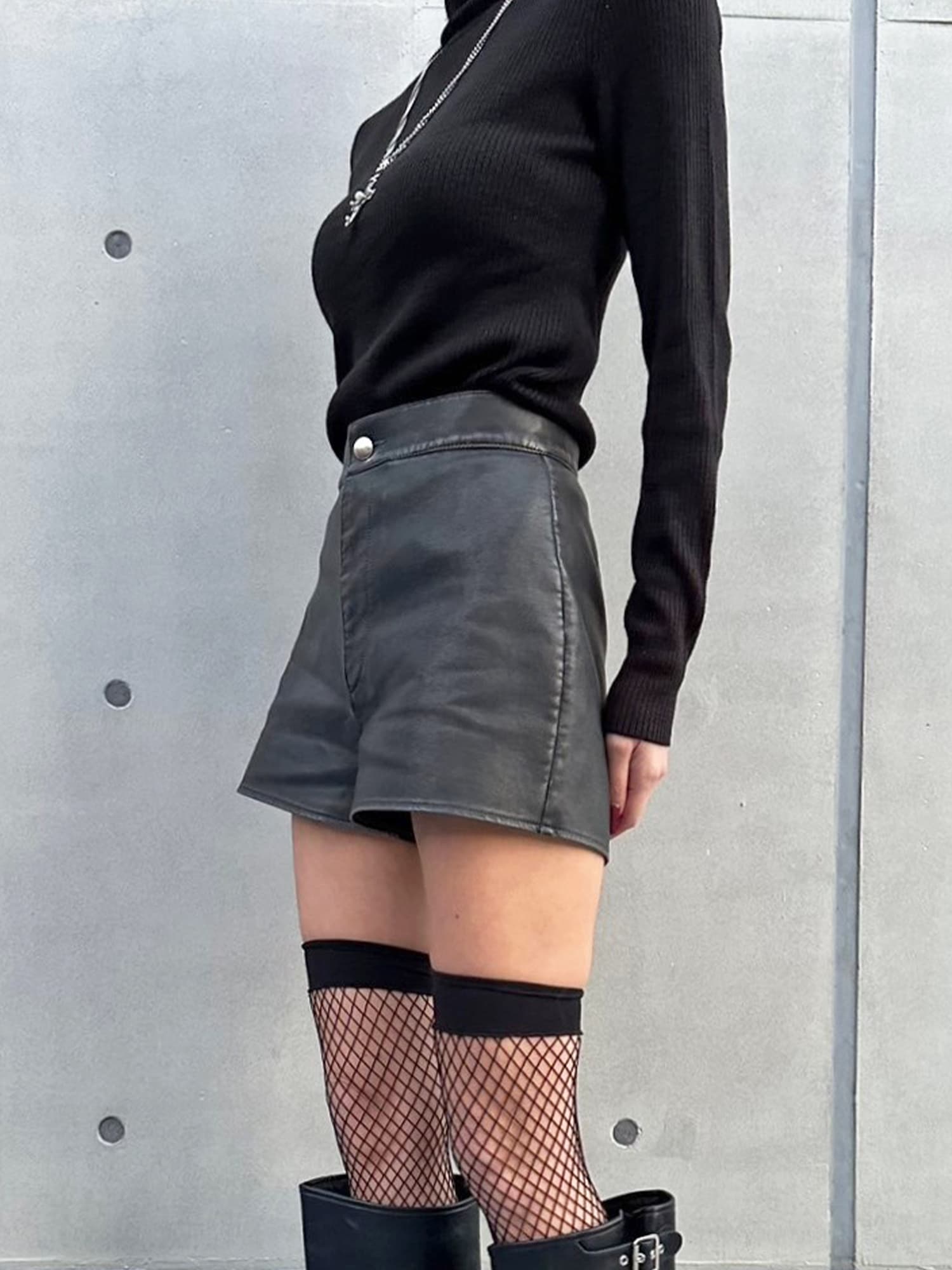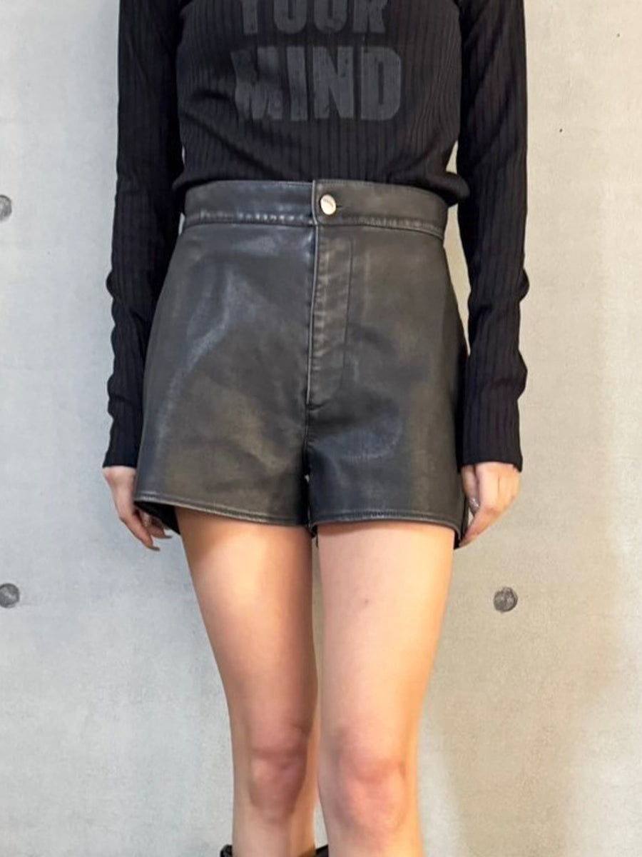 - ヴィンテージ風フェイクレザーショートパンツ