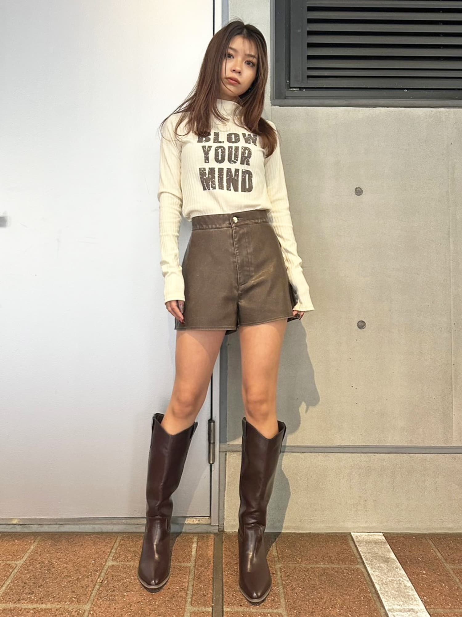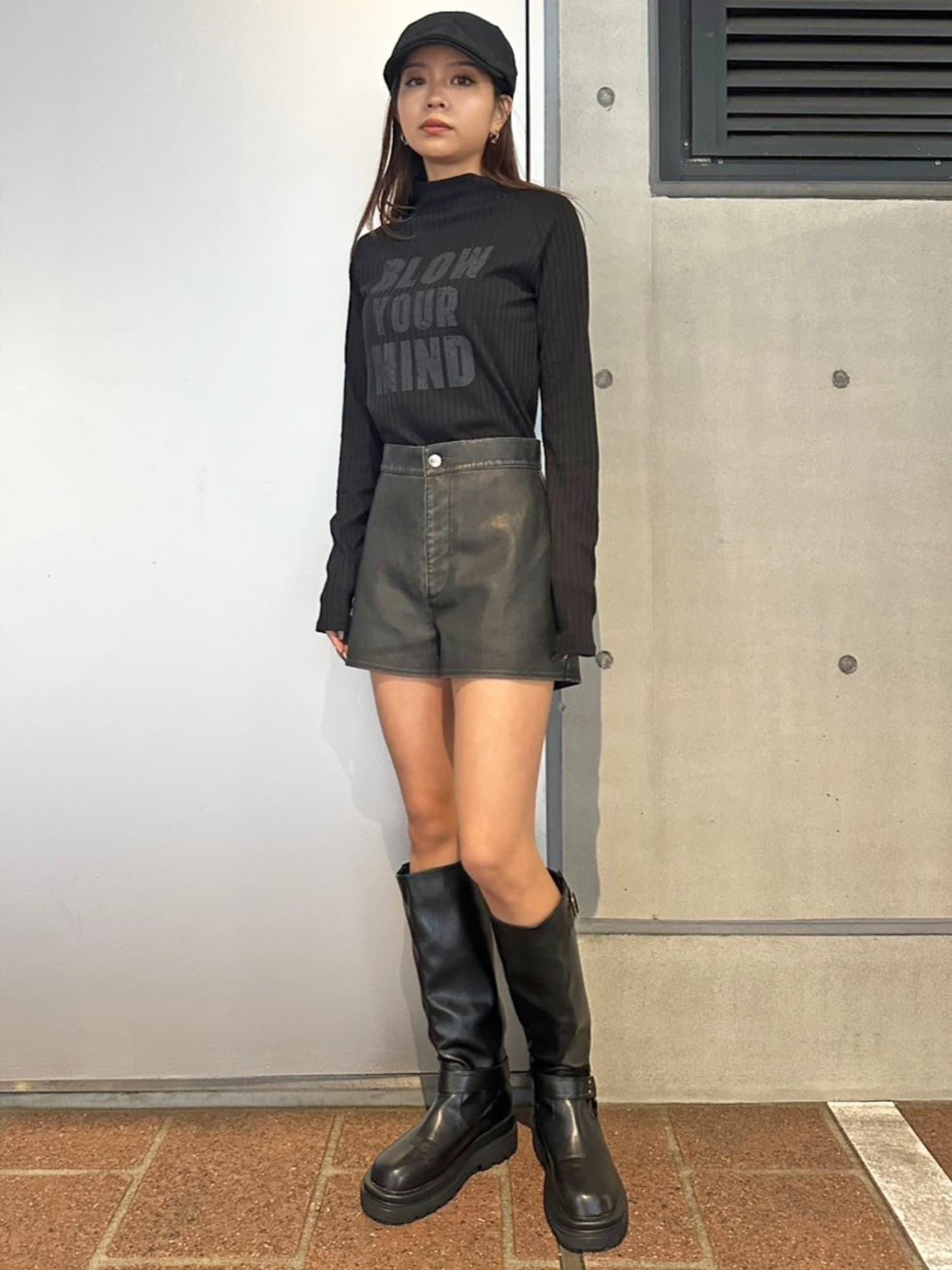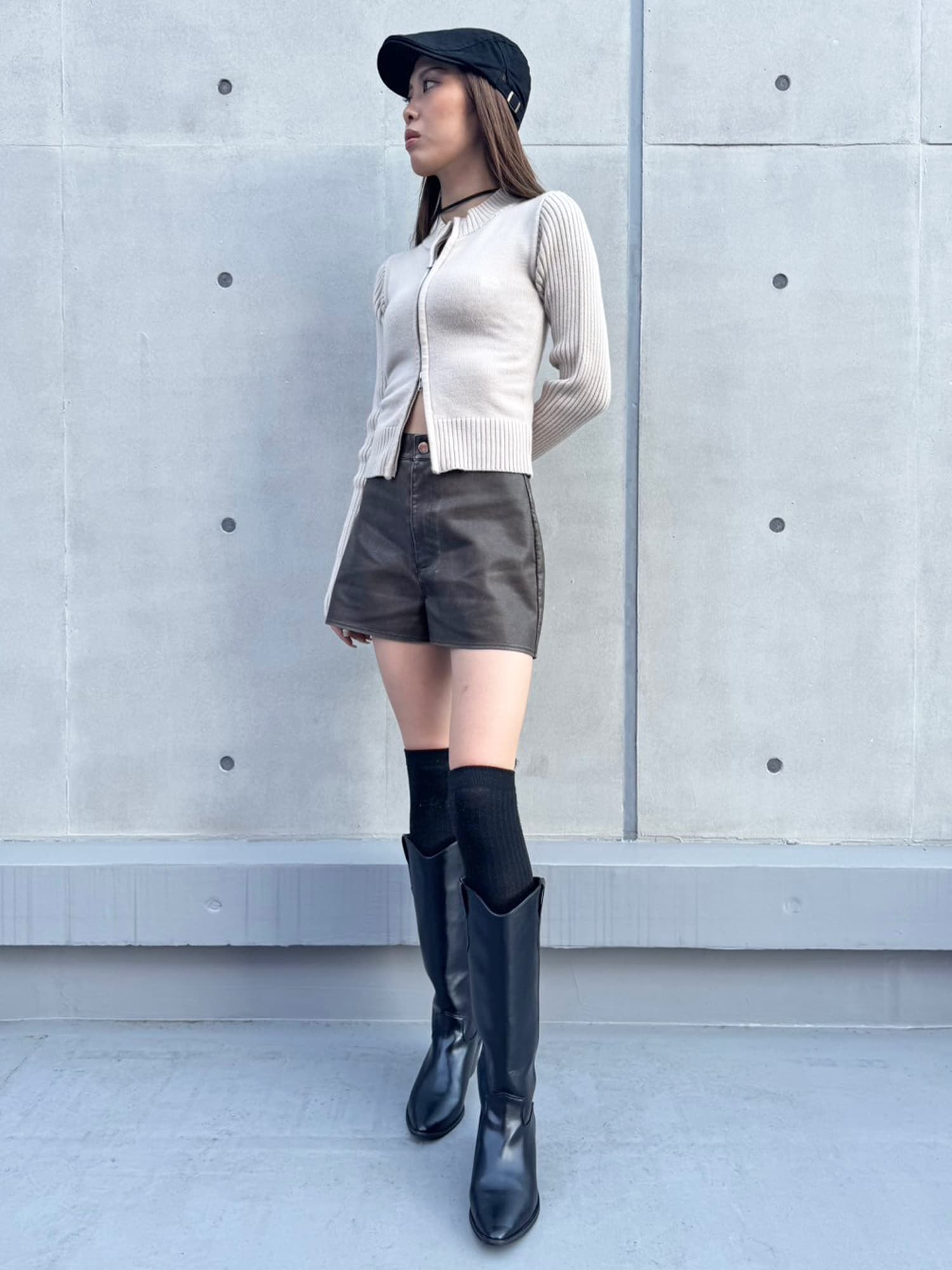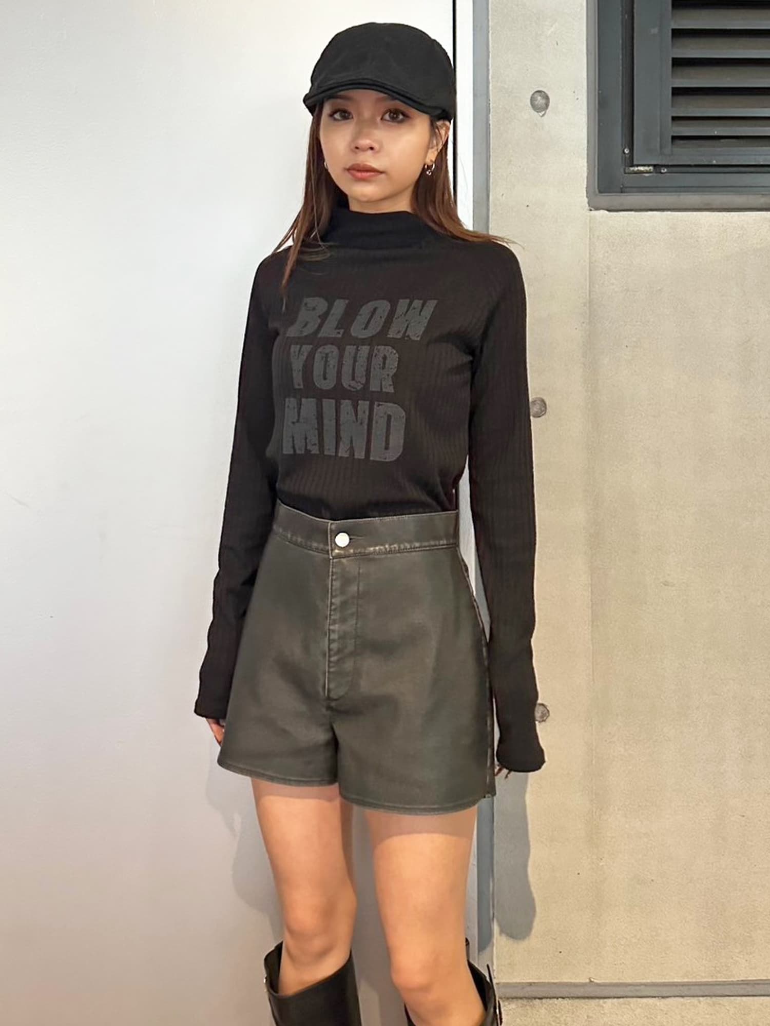 - ヴィンテージ風フェイクレザーショートパンツ