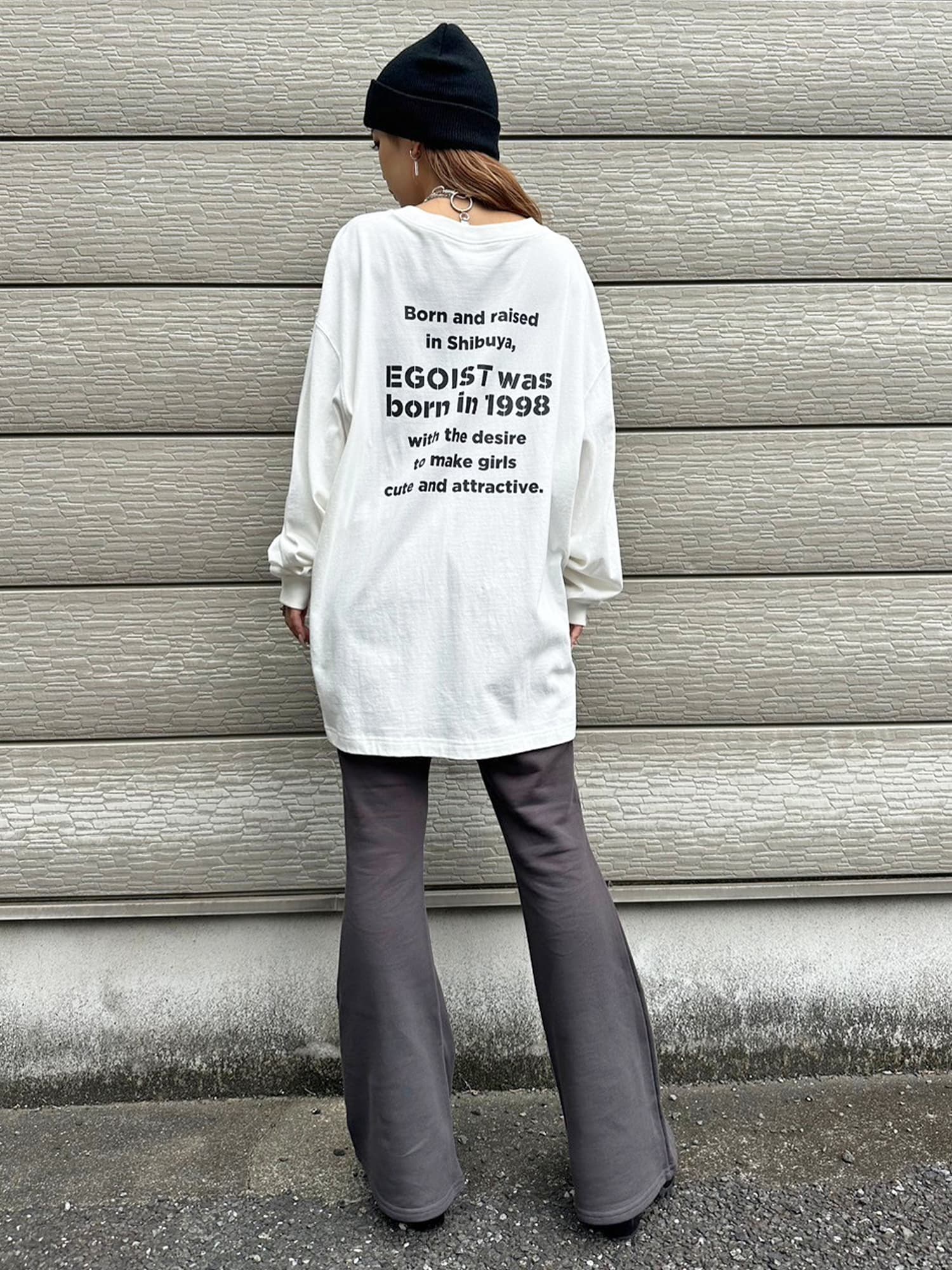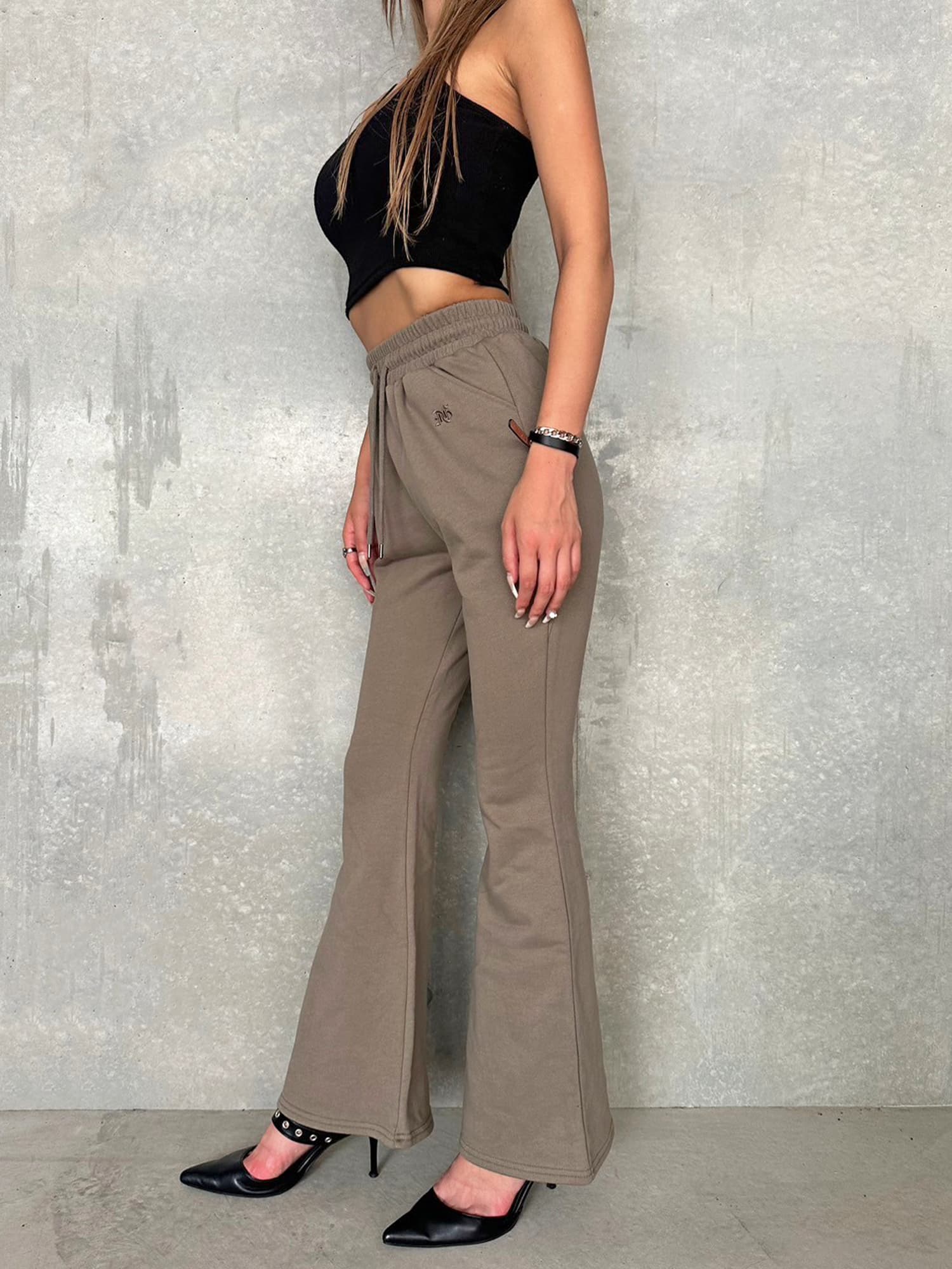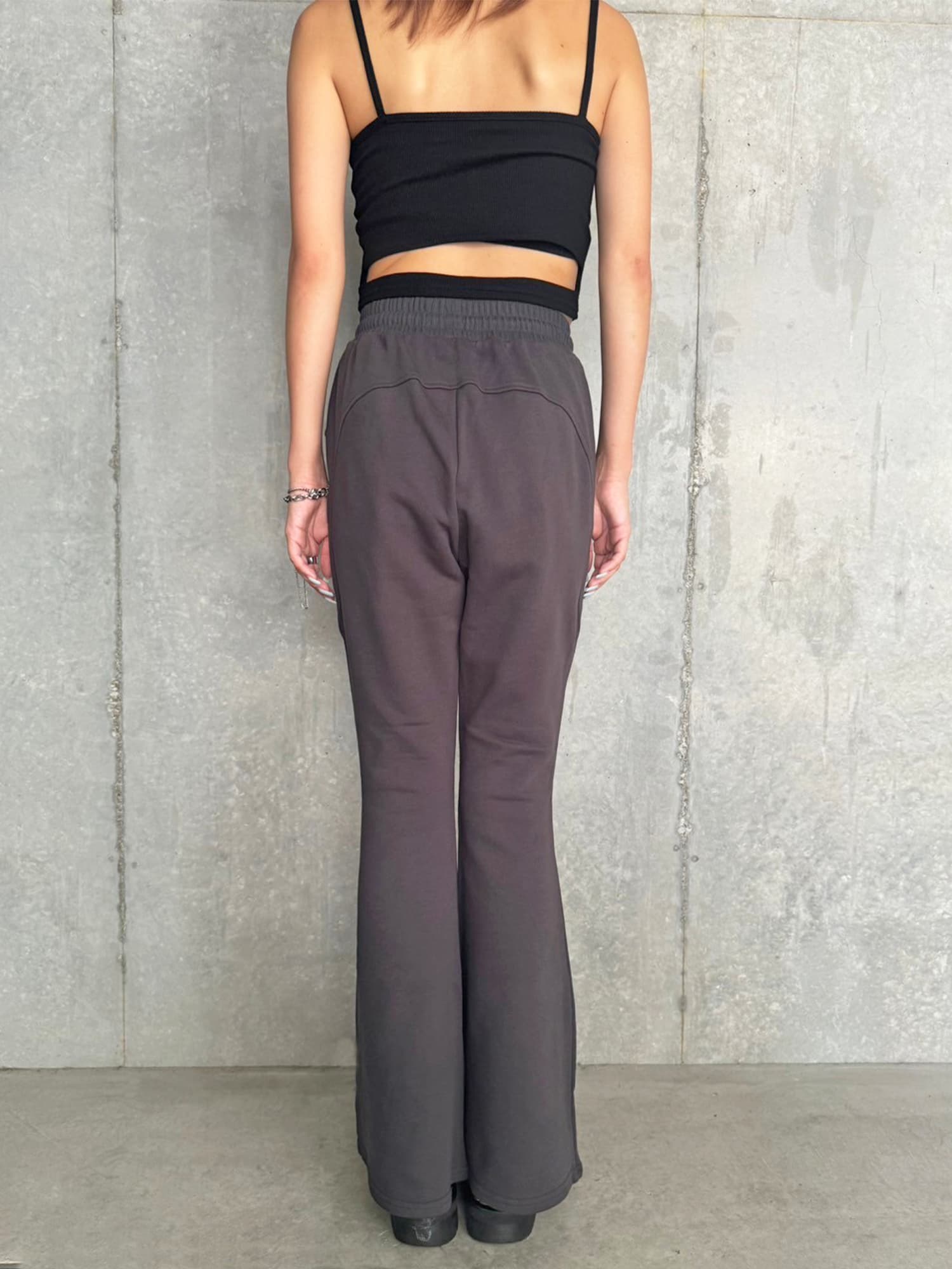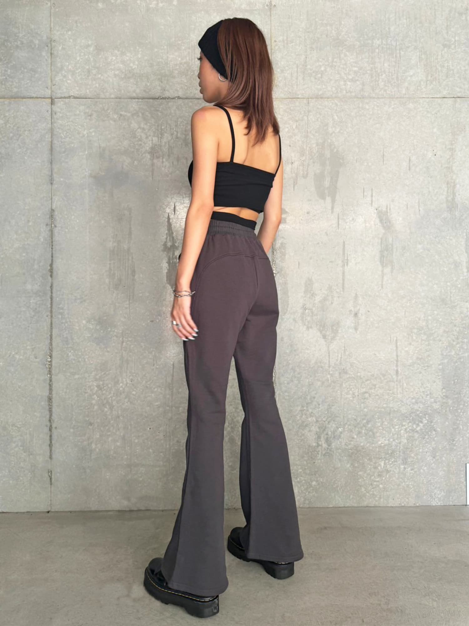 商品説明 ウエストゴムで着脱楽チンなフレアパンツはくびれシルエットでメリハリをつけ美脚効果抜群。左の太ももにはオリジナルのロゴ刺繍をいれていますが同色なので目立ちすぎずデイリー使いしやすいです。加工風の裏毛生地を選んでいるのでくすみカラーがヴィンテージ感あり、今季AWテーマの一つでもあるグランジ要素を取り入れたファッションにぴったりなアイテムとなっています。